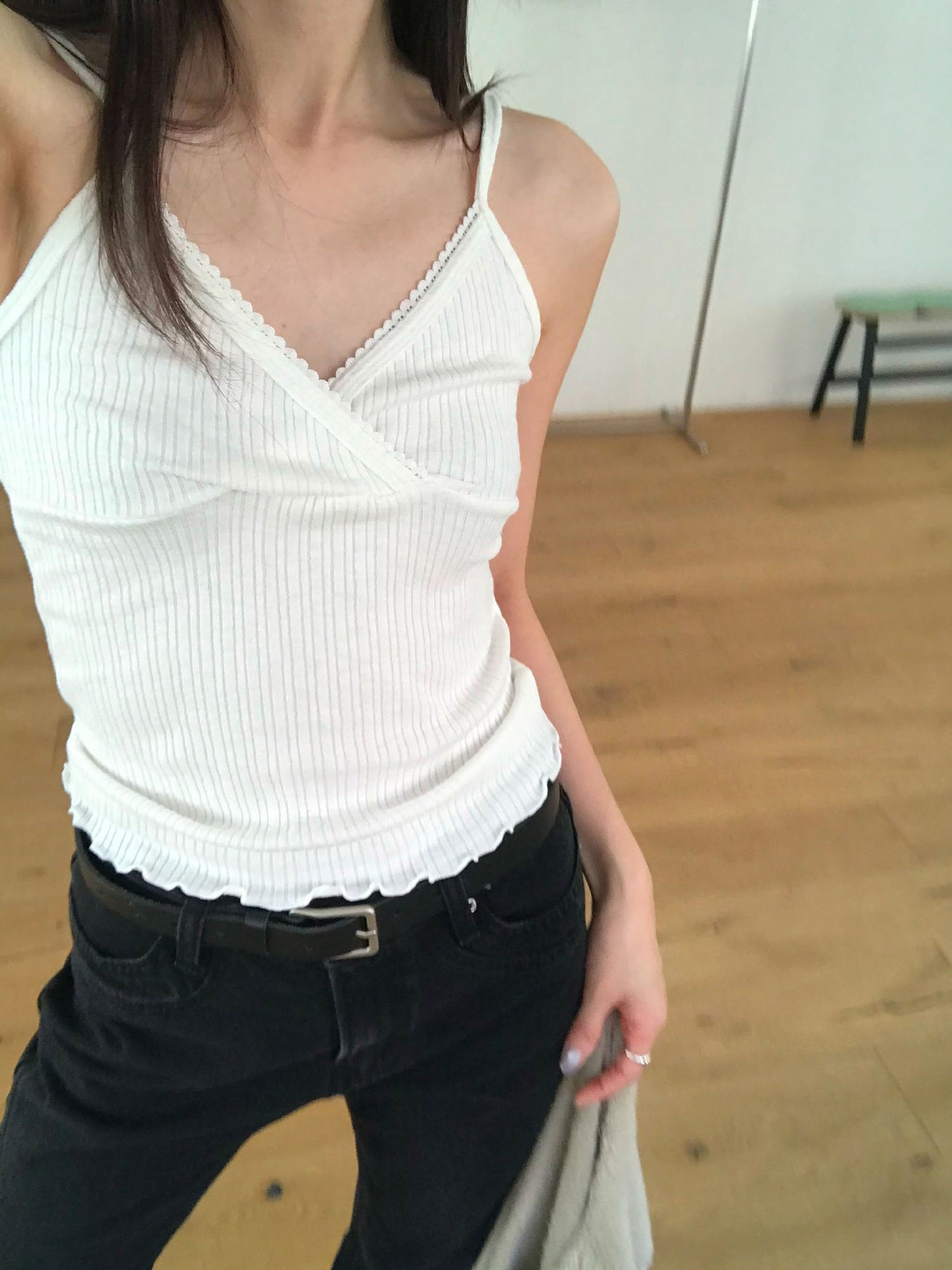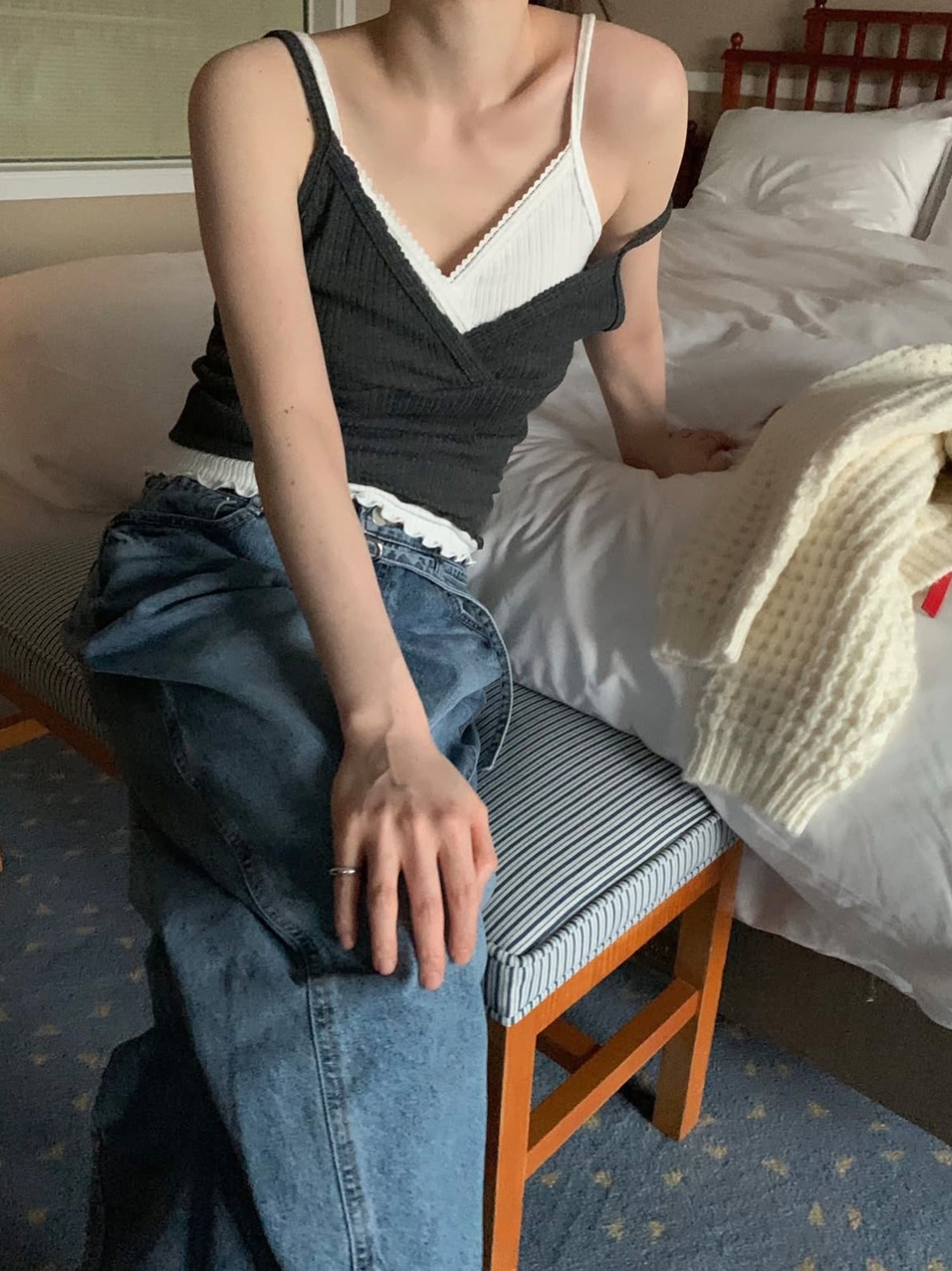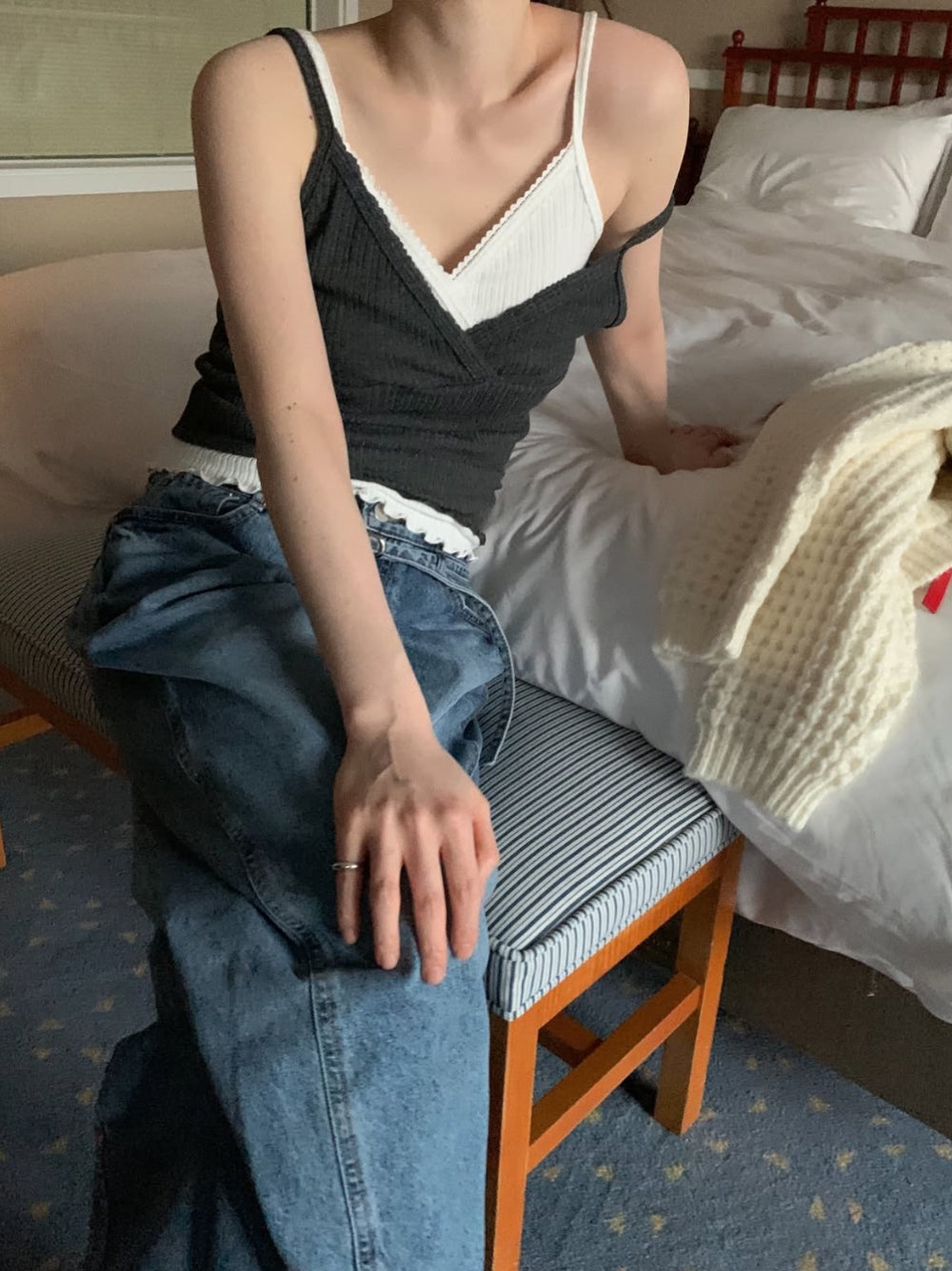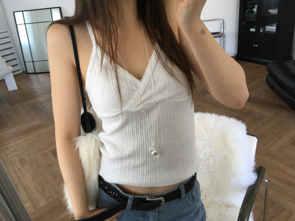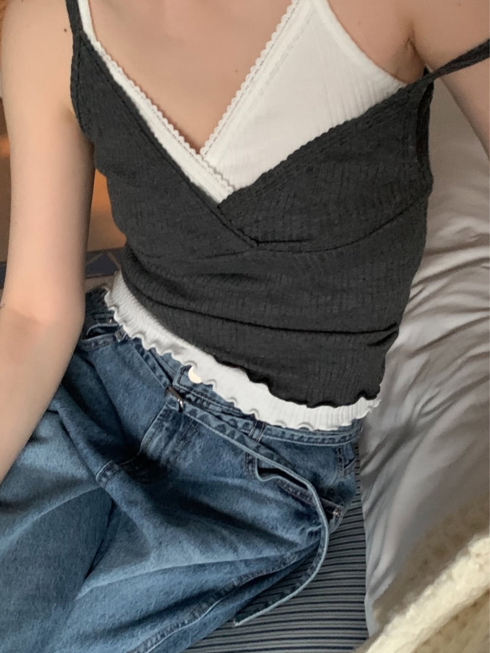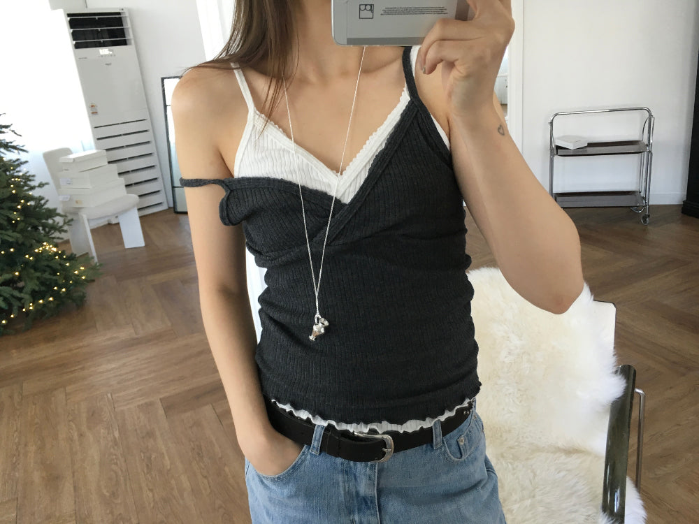 交疊蕾絲捲邊細節背心