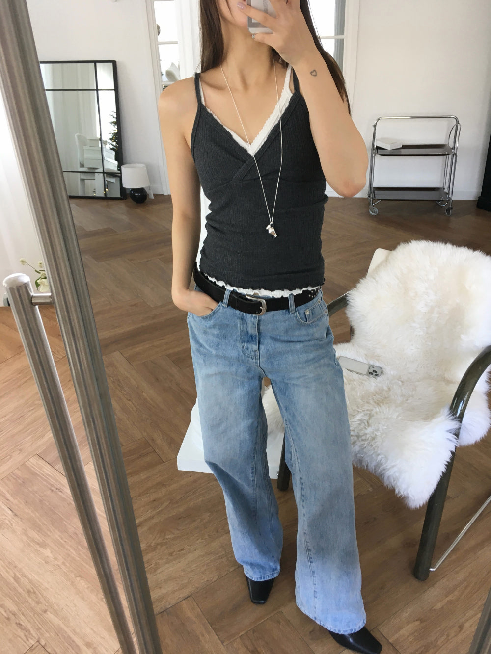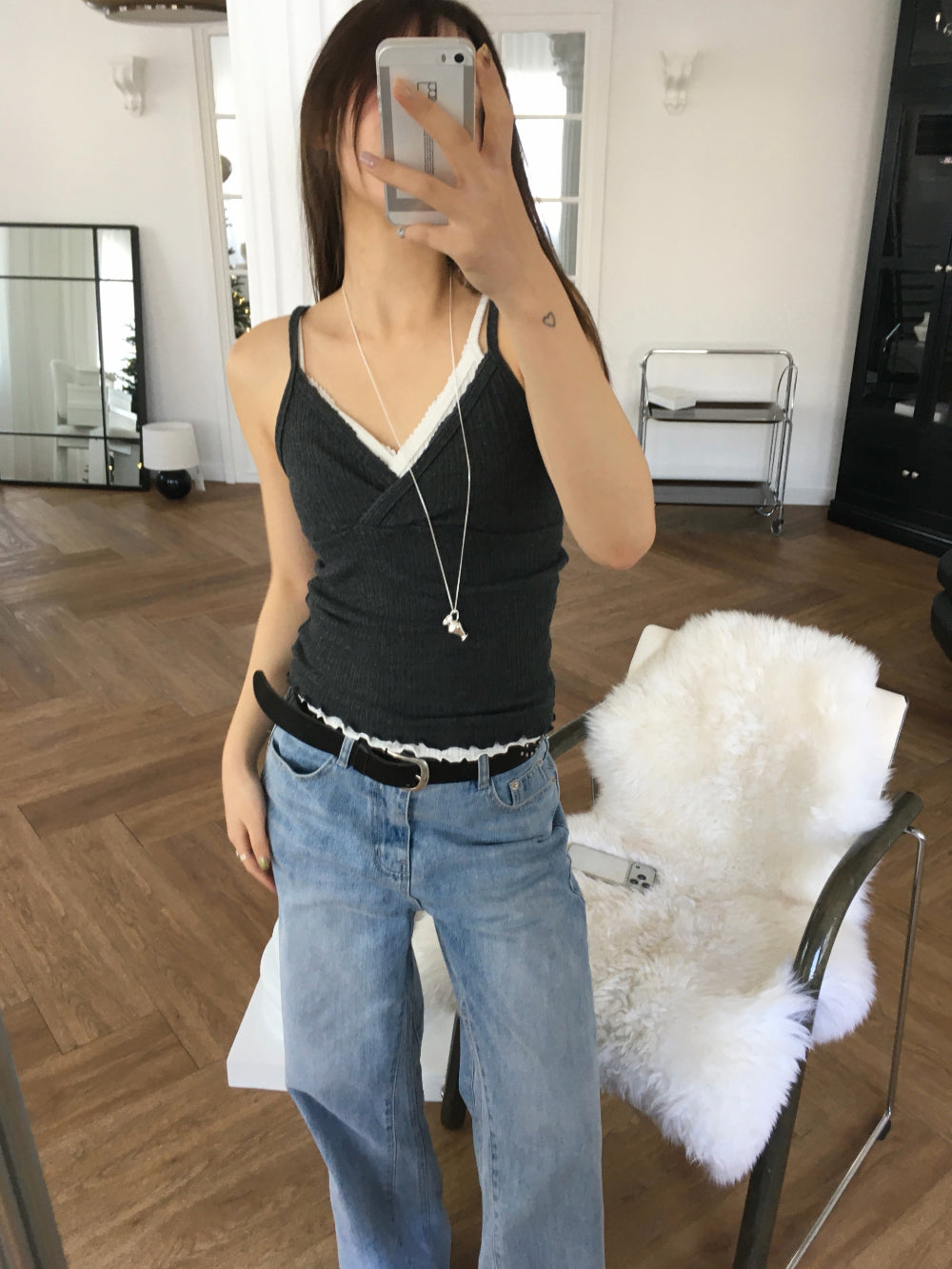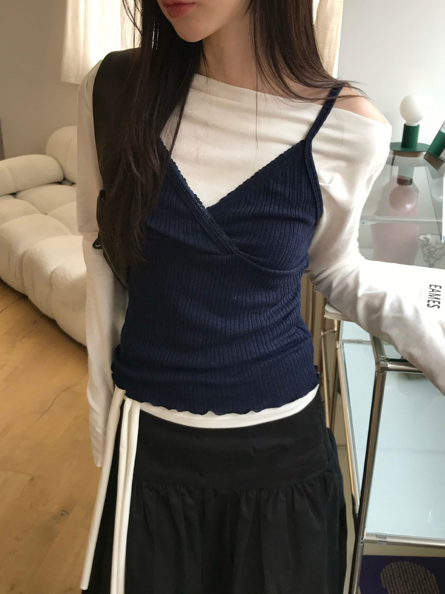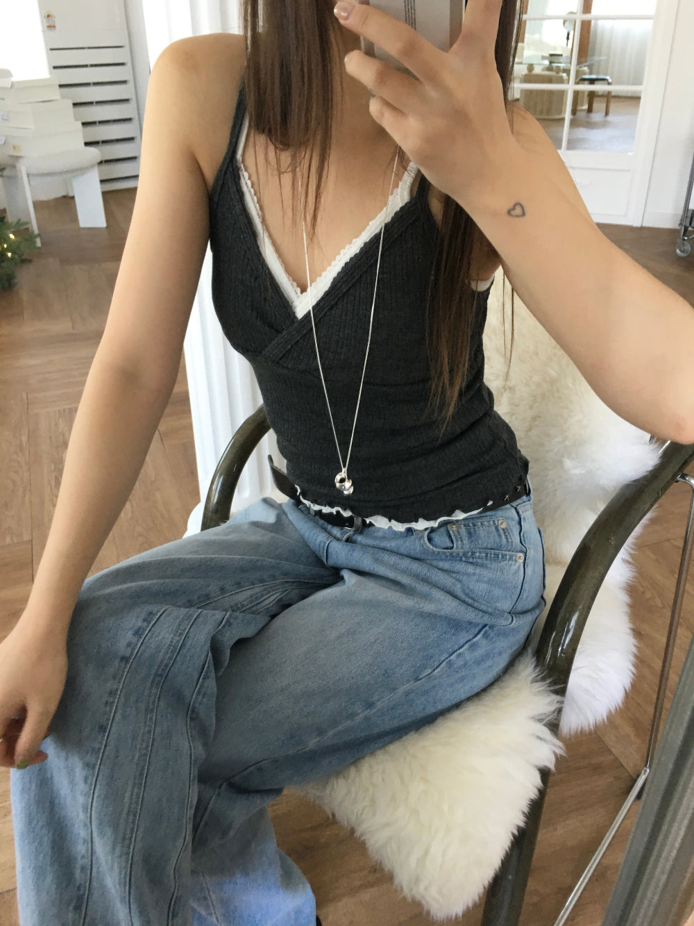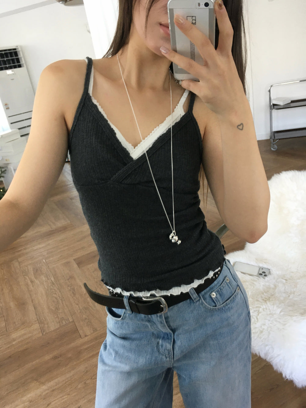 交疊蕾絲捲邊細節背心