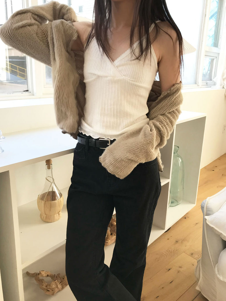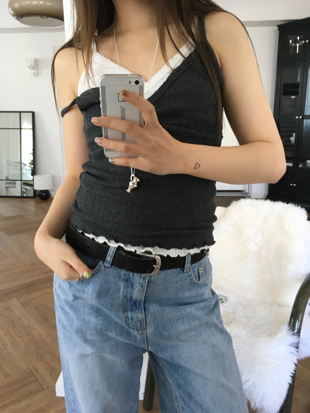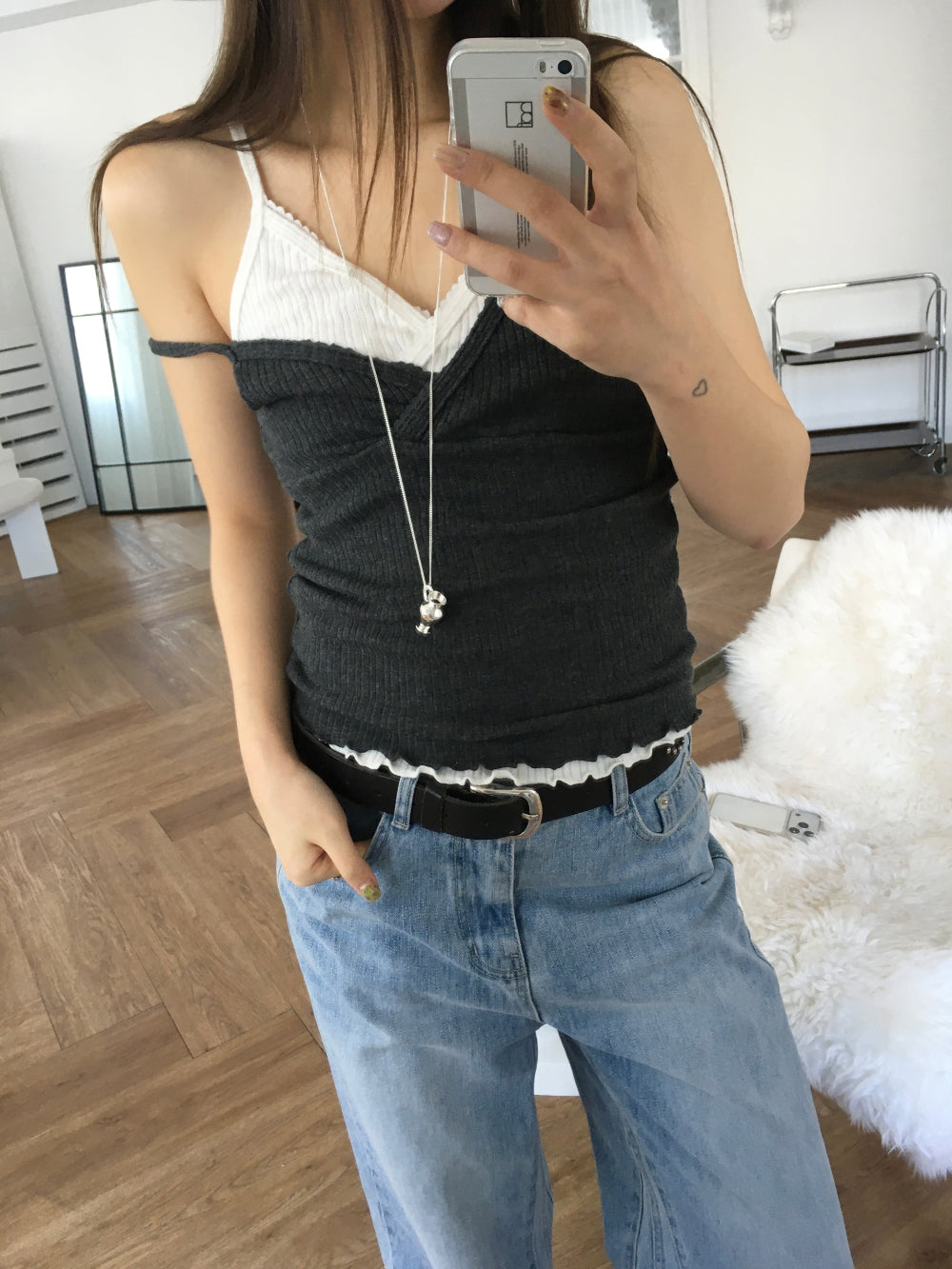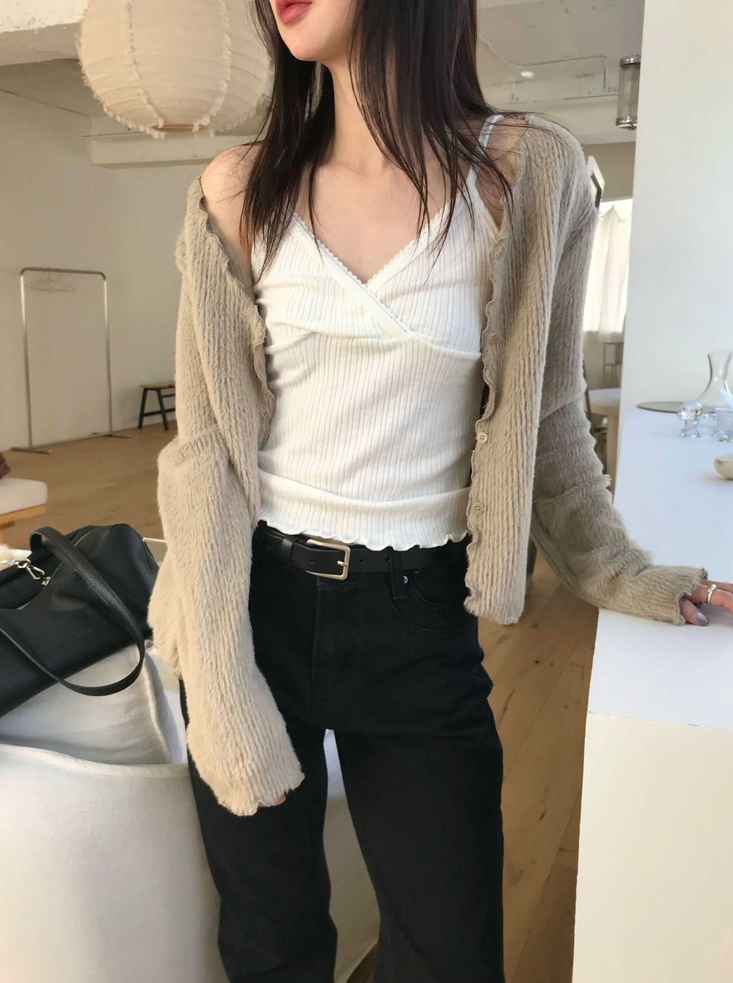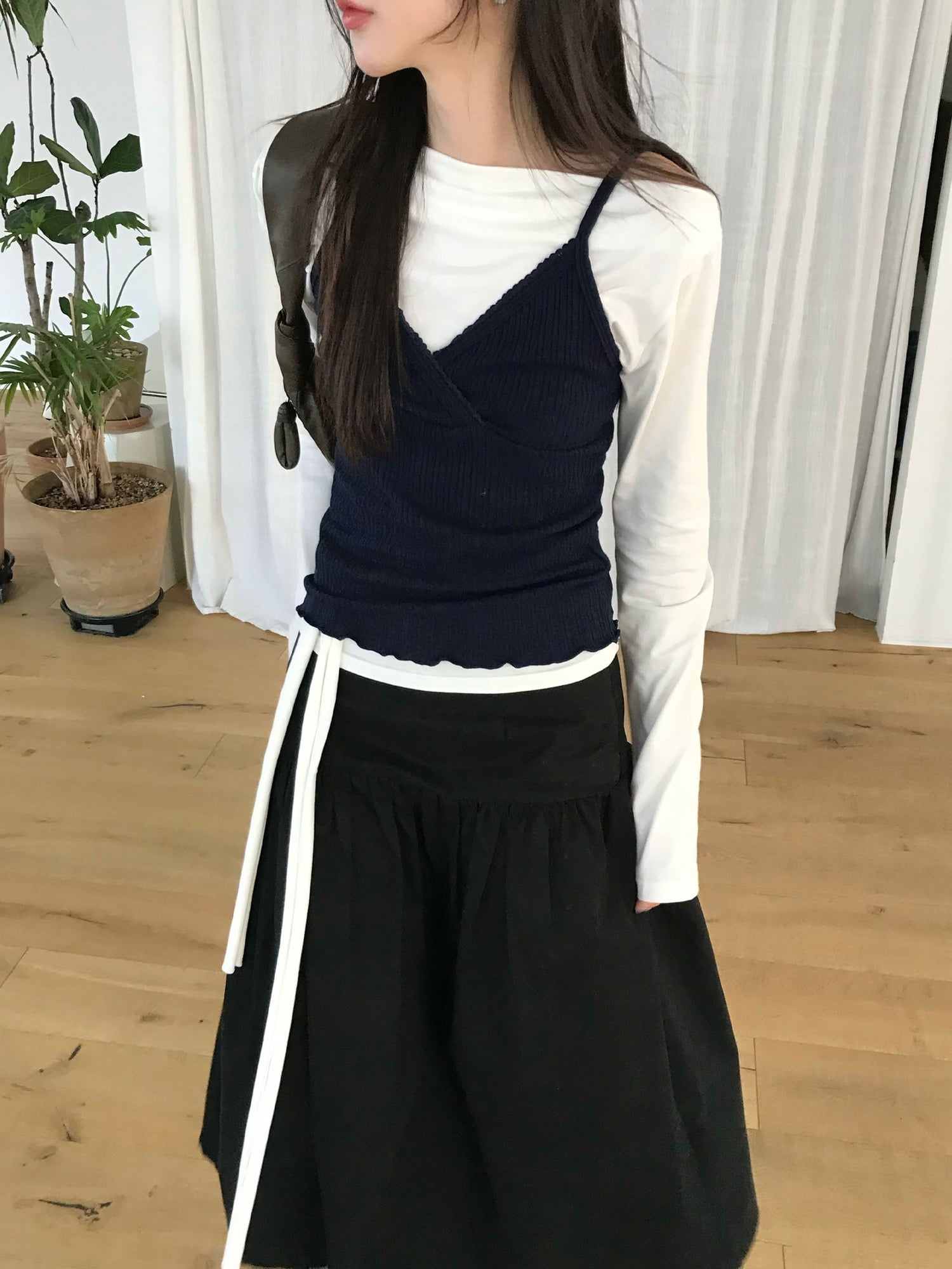 交疊蕾絲捲邊細節背心