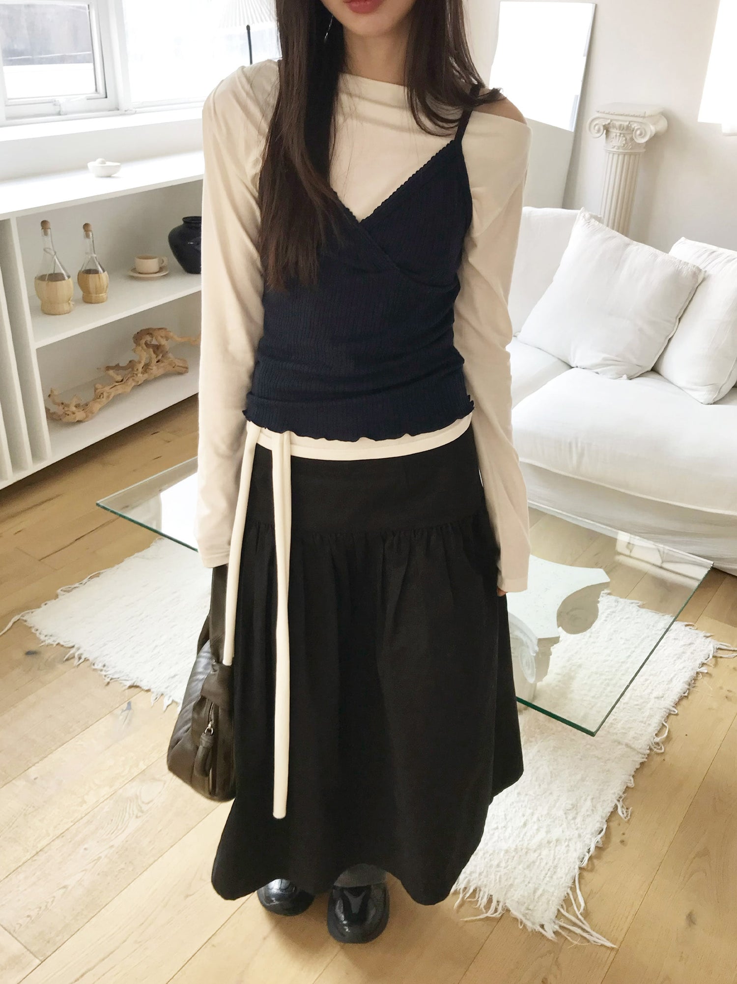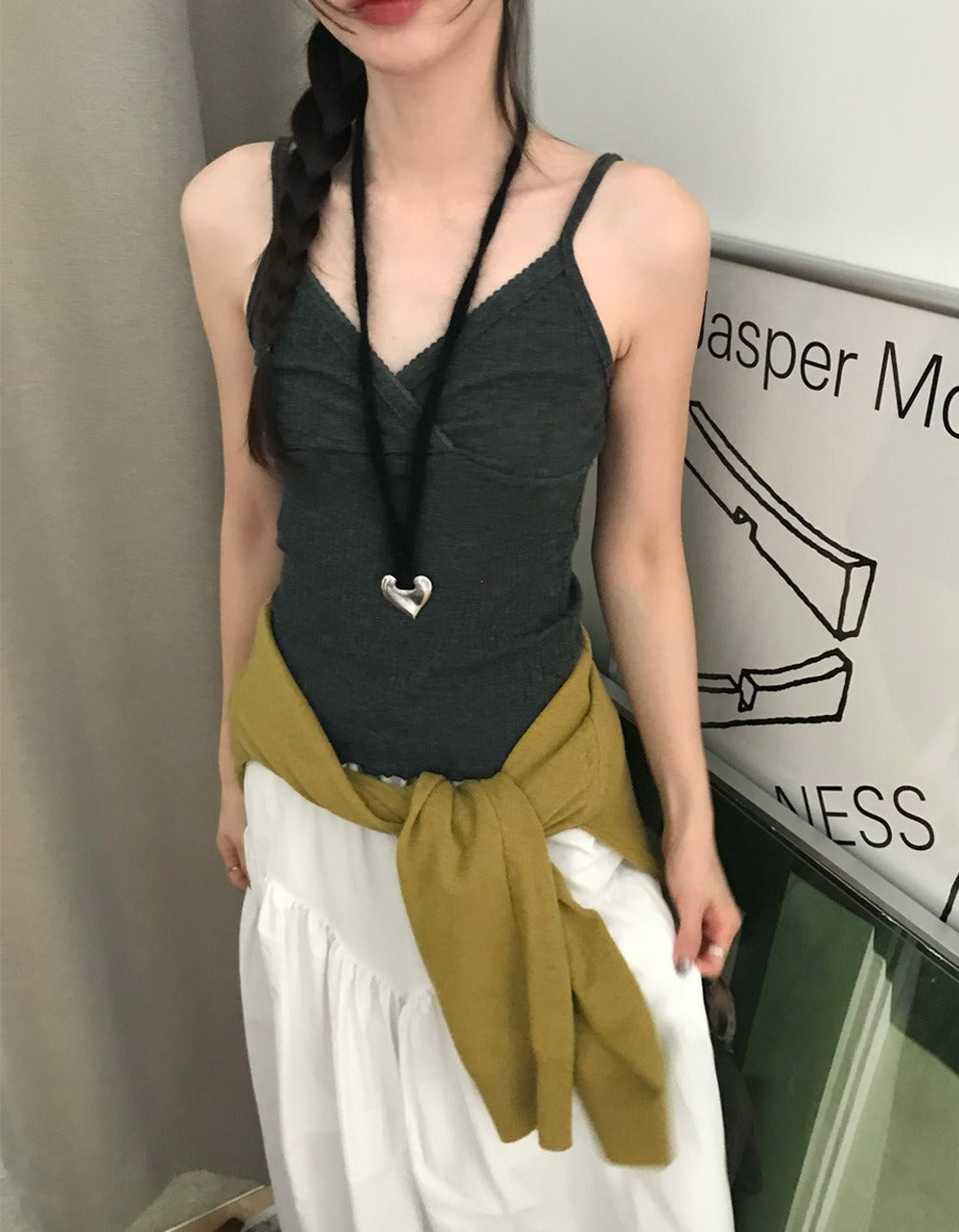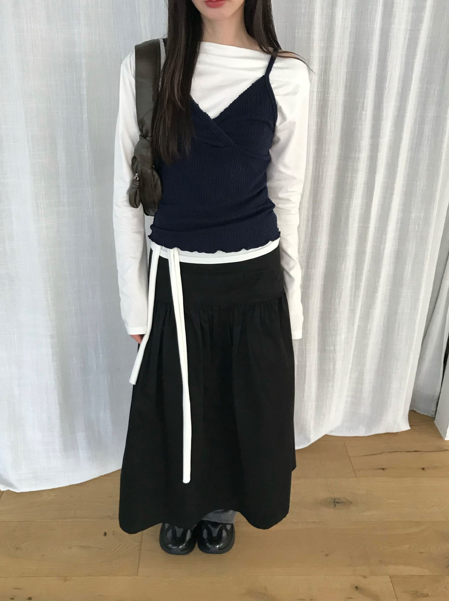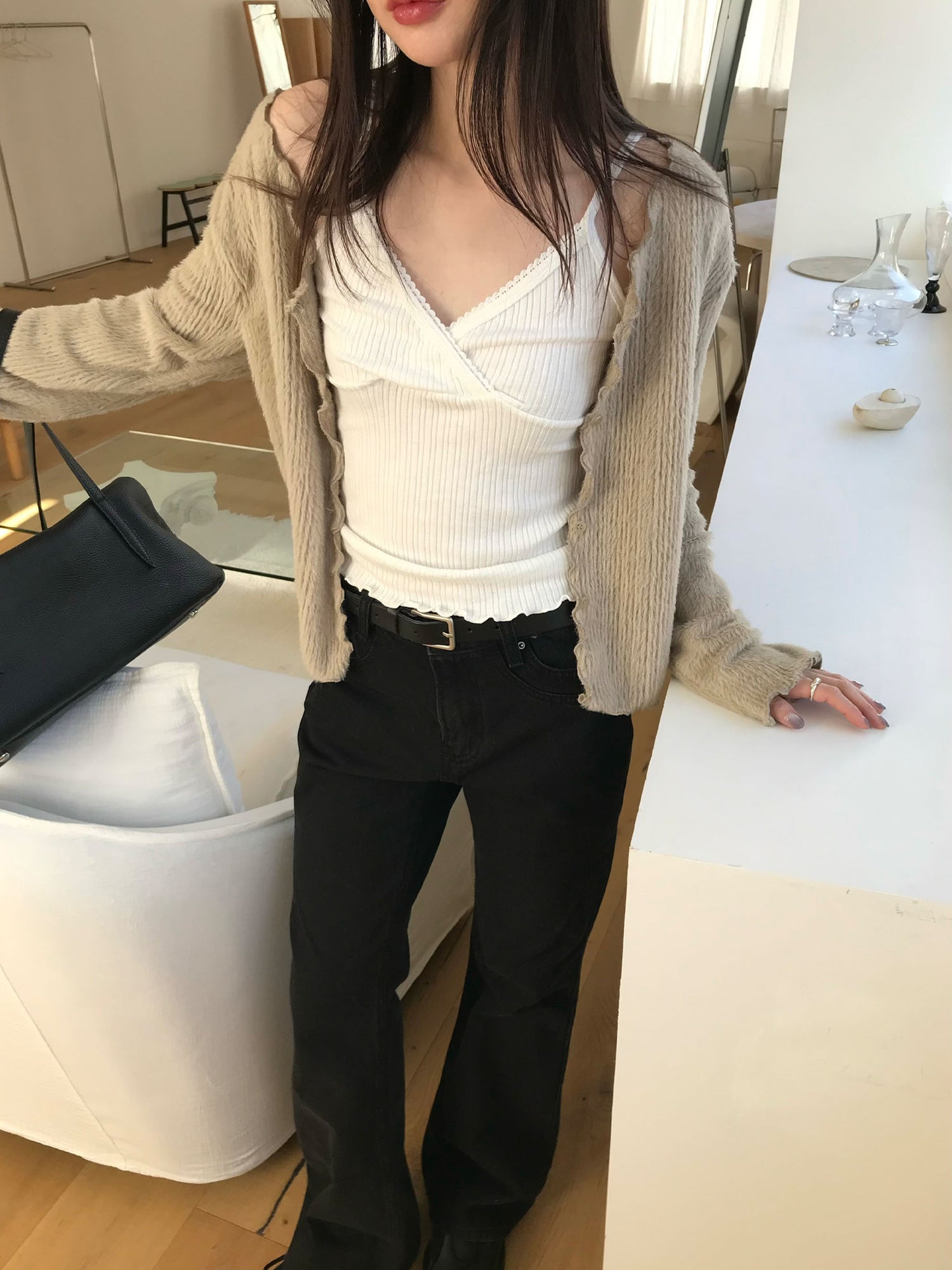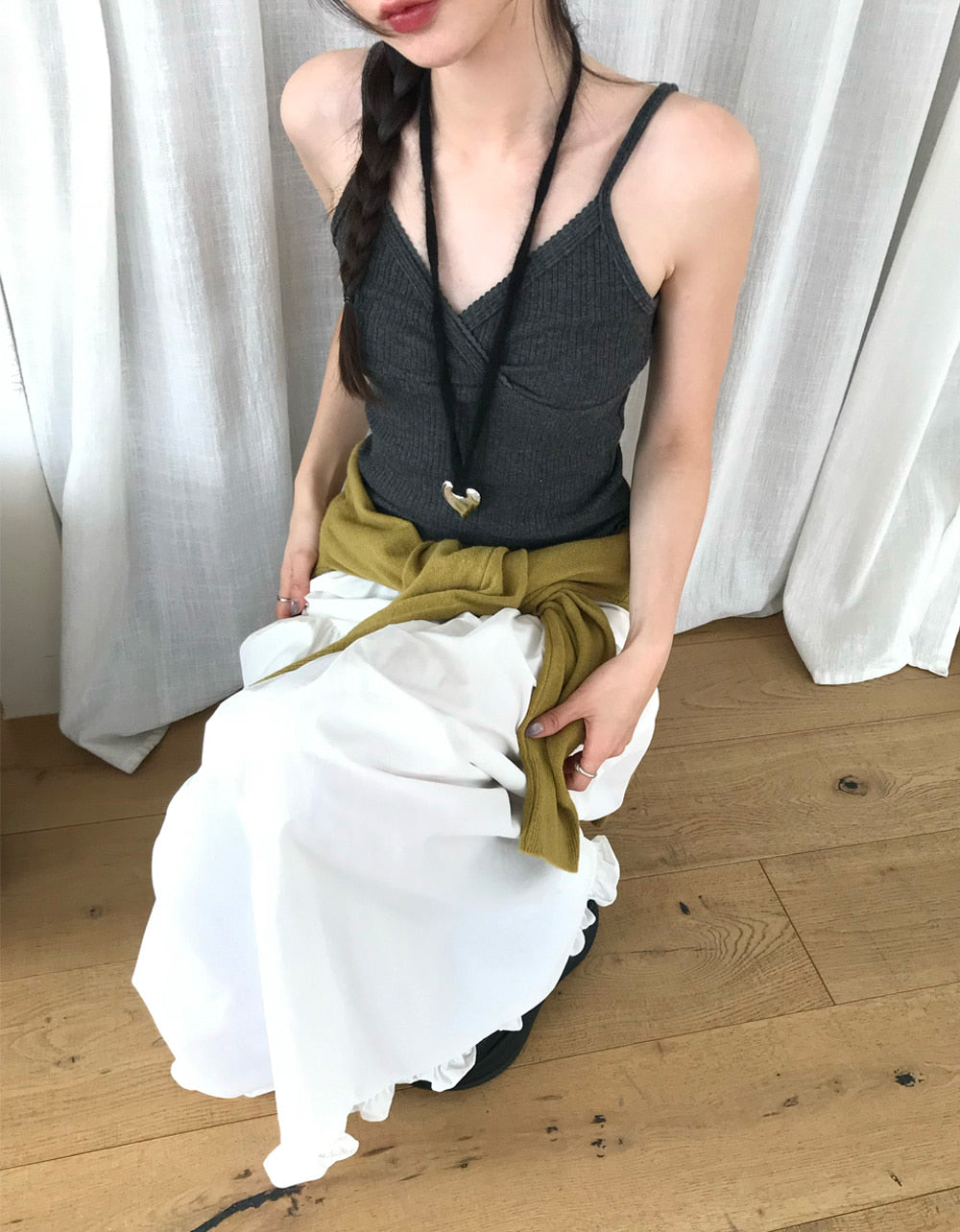 交疊蕾絲捲邊細節背心