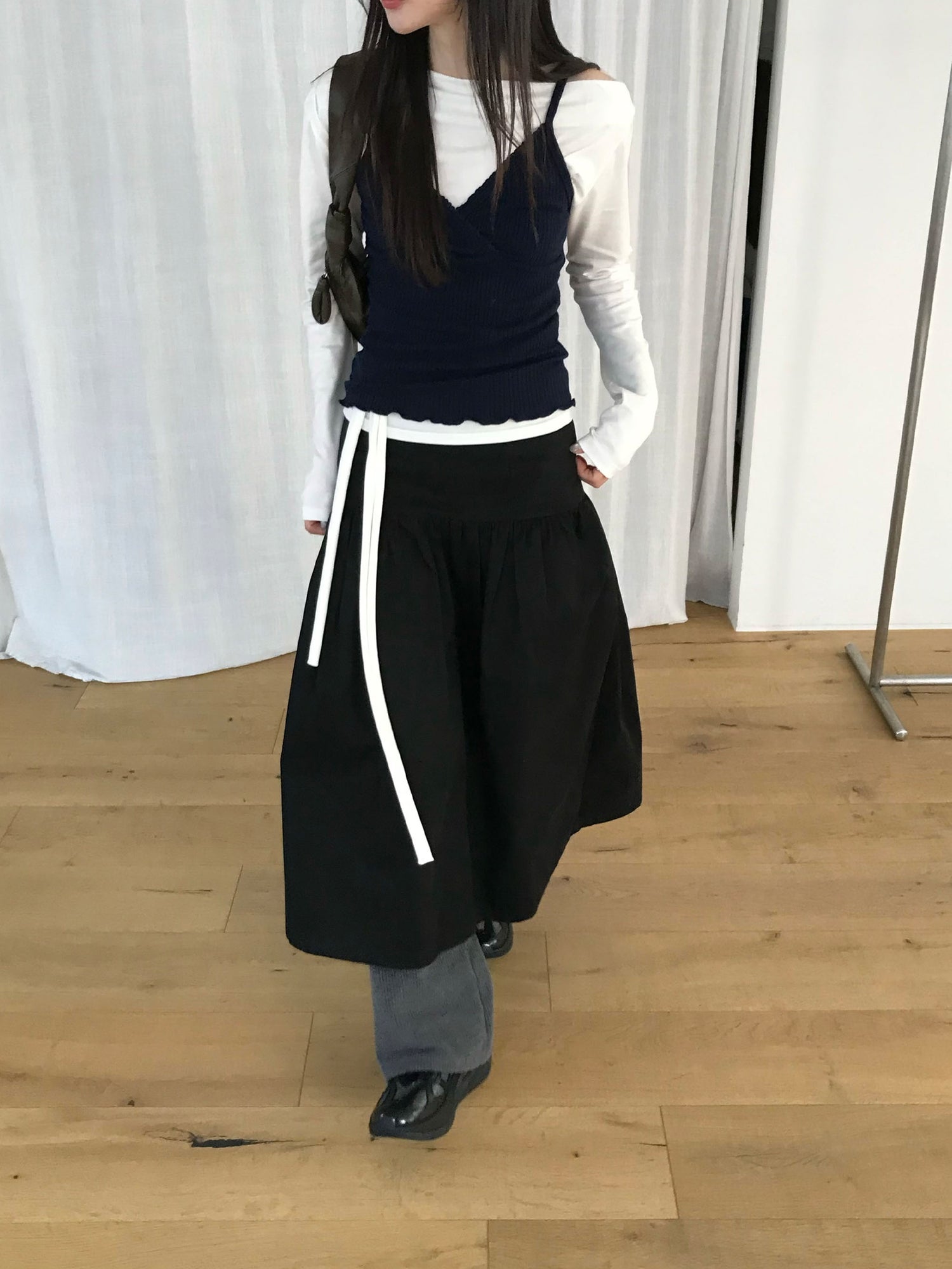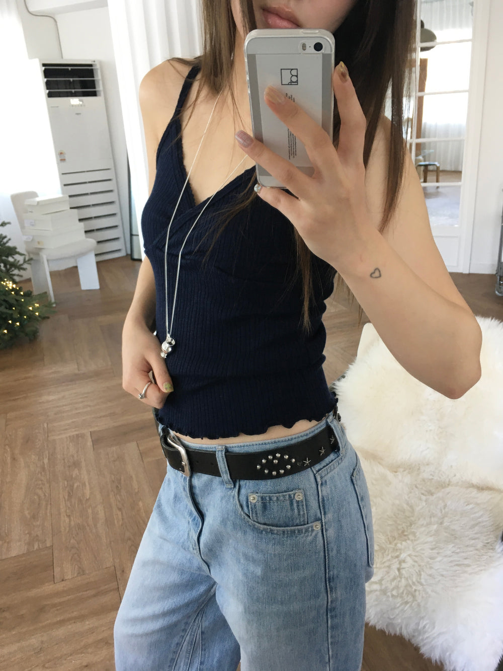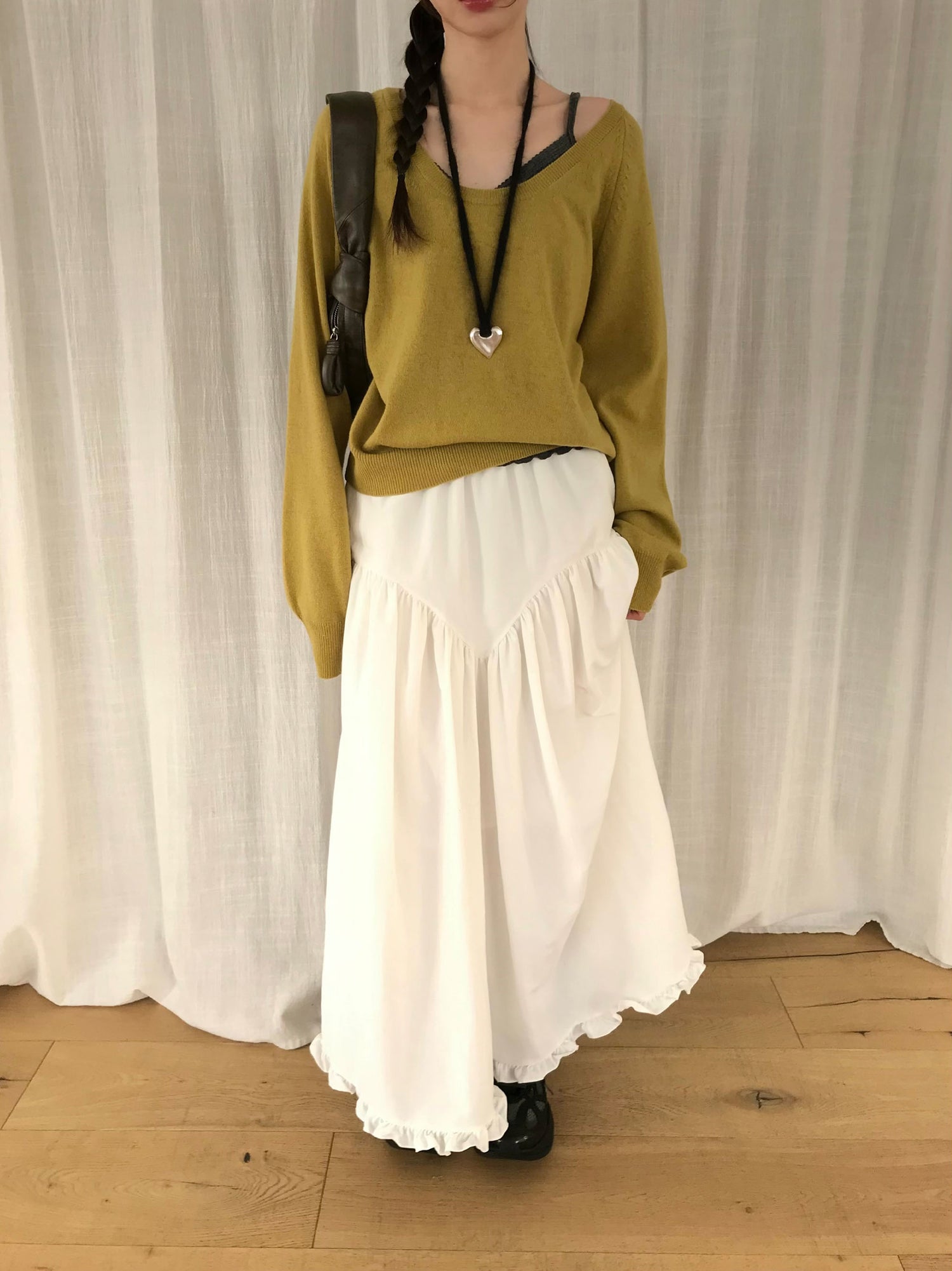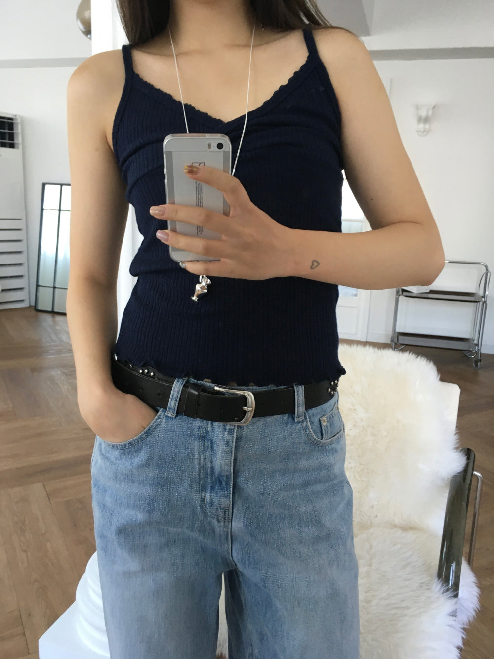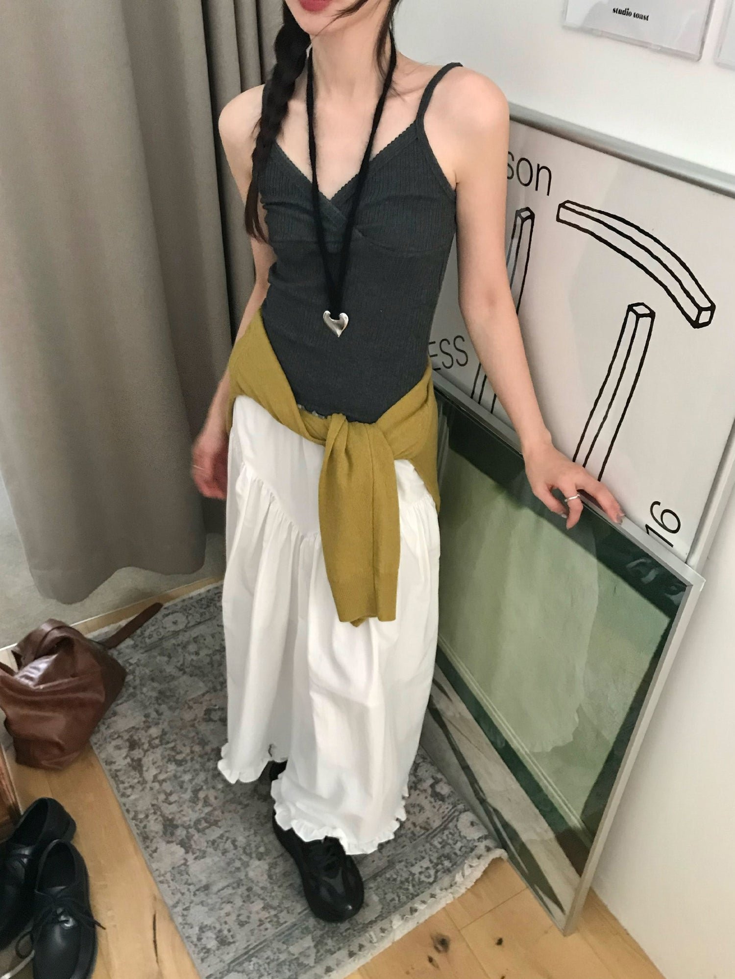 交疊蕾絲捲邊細節背心