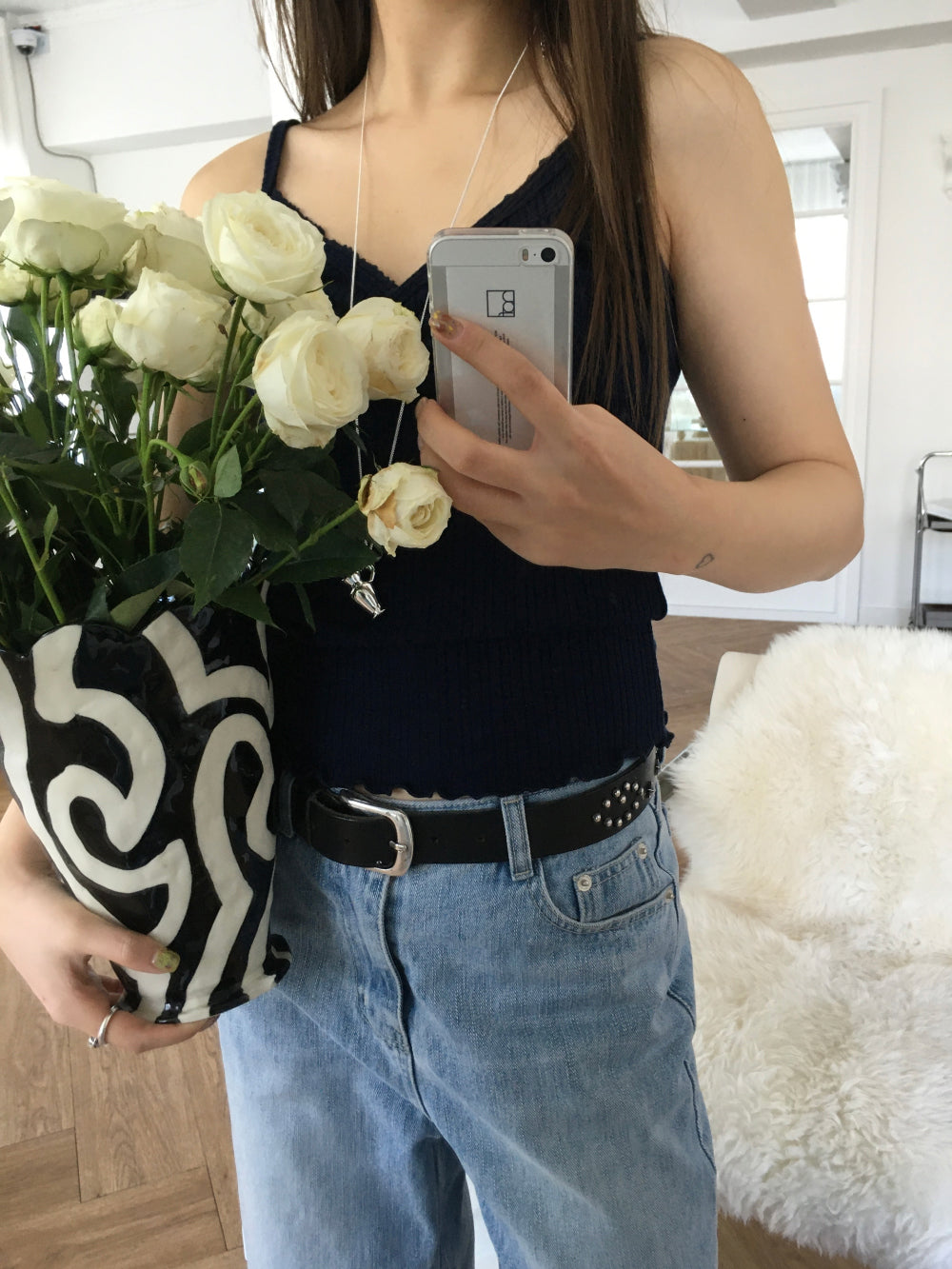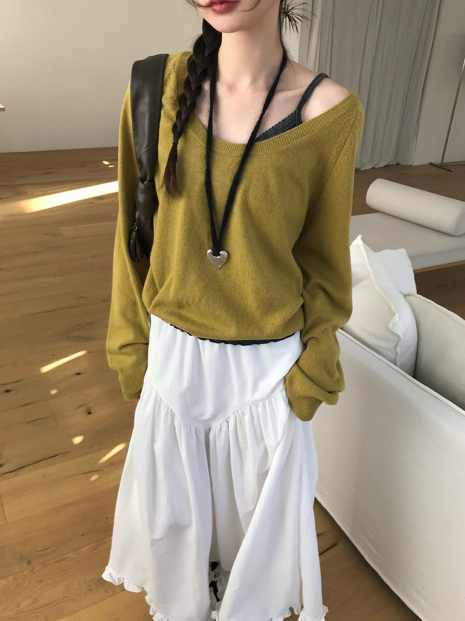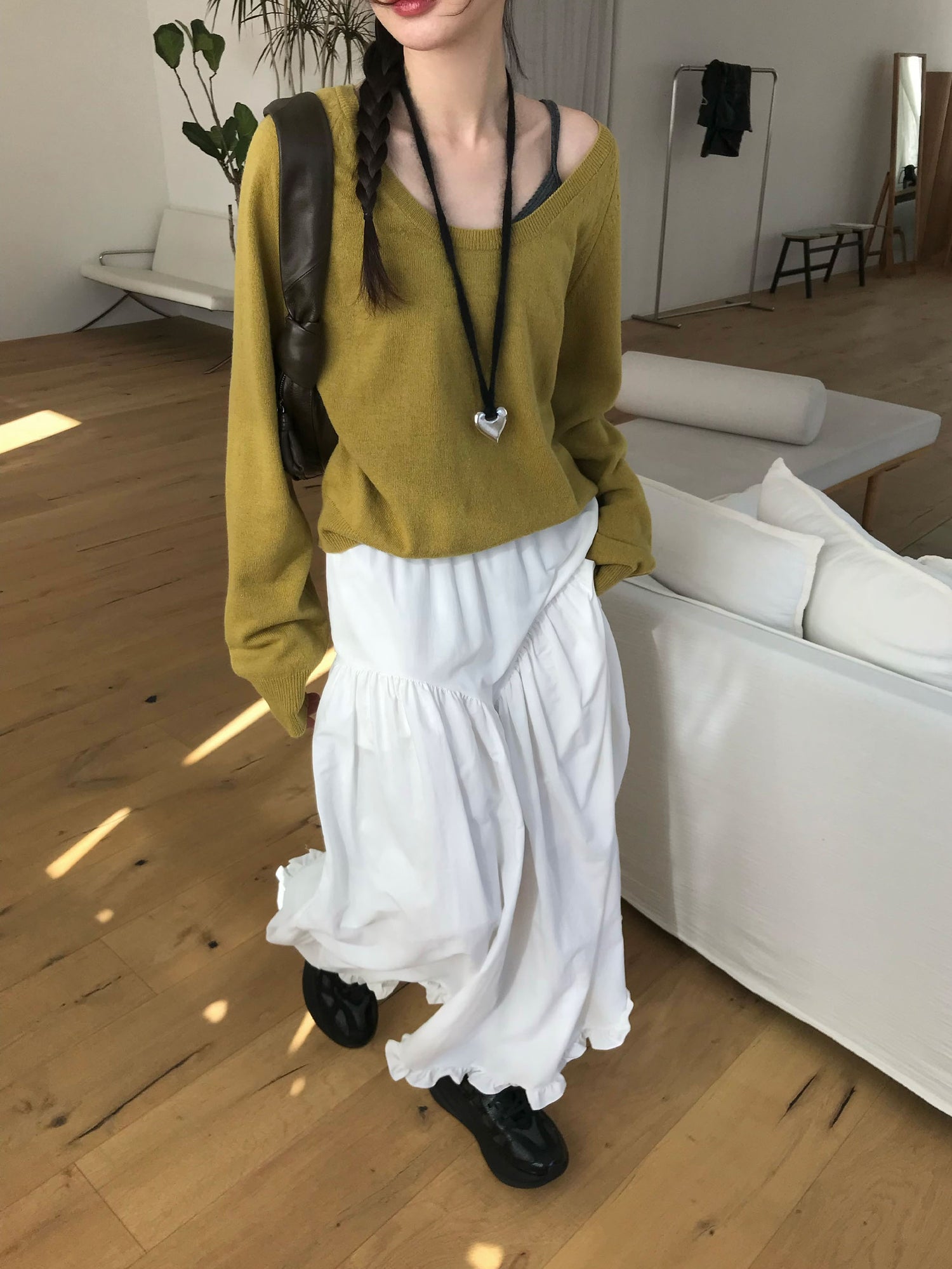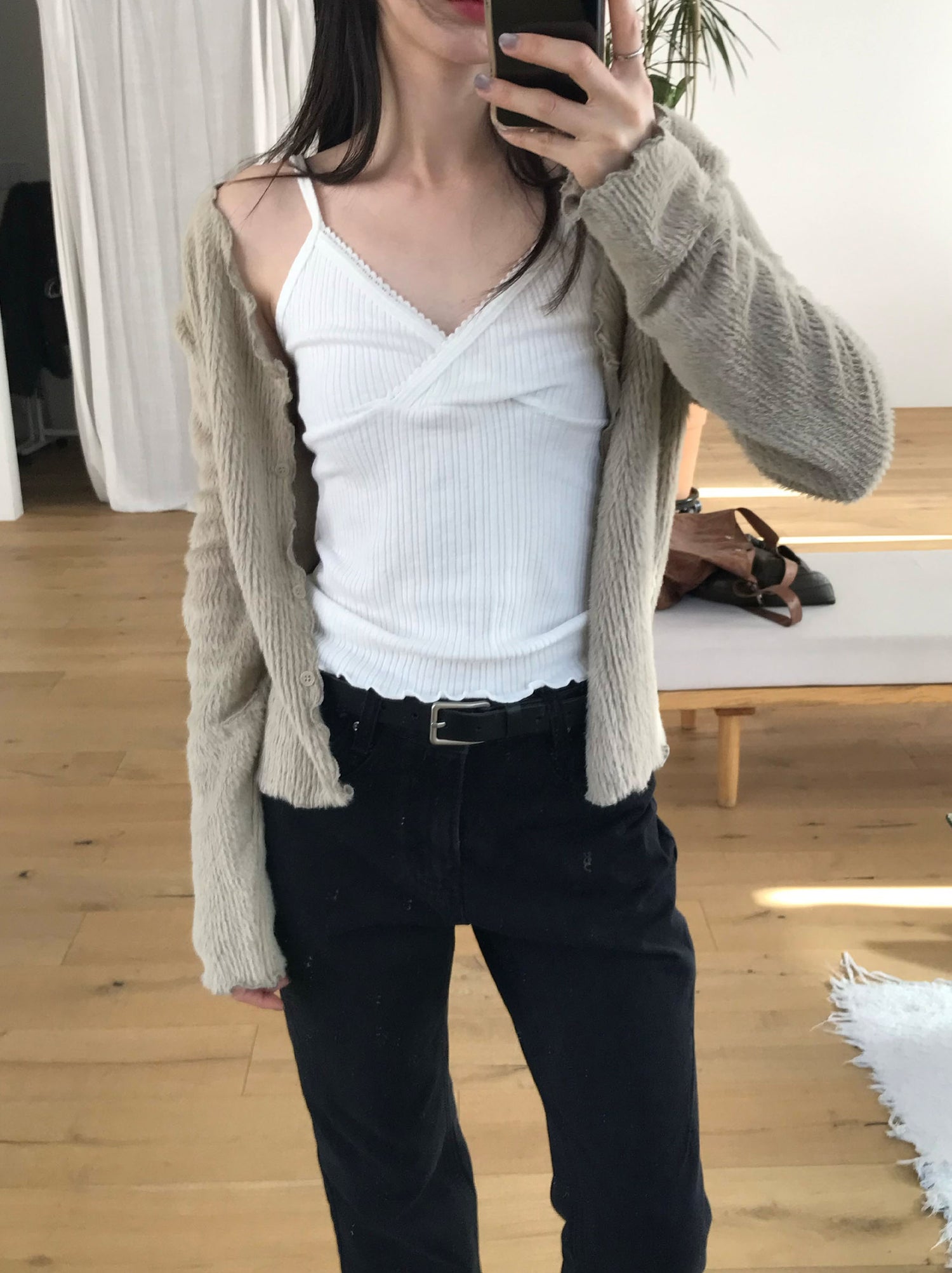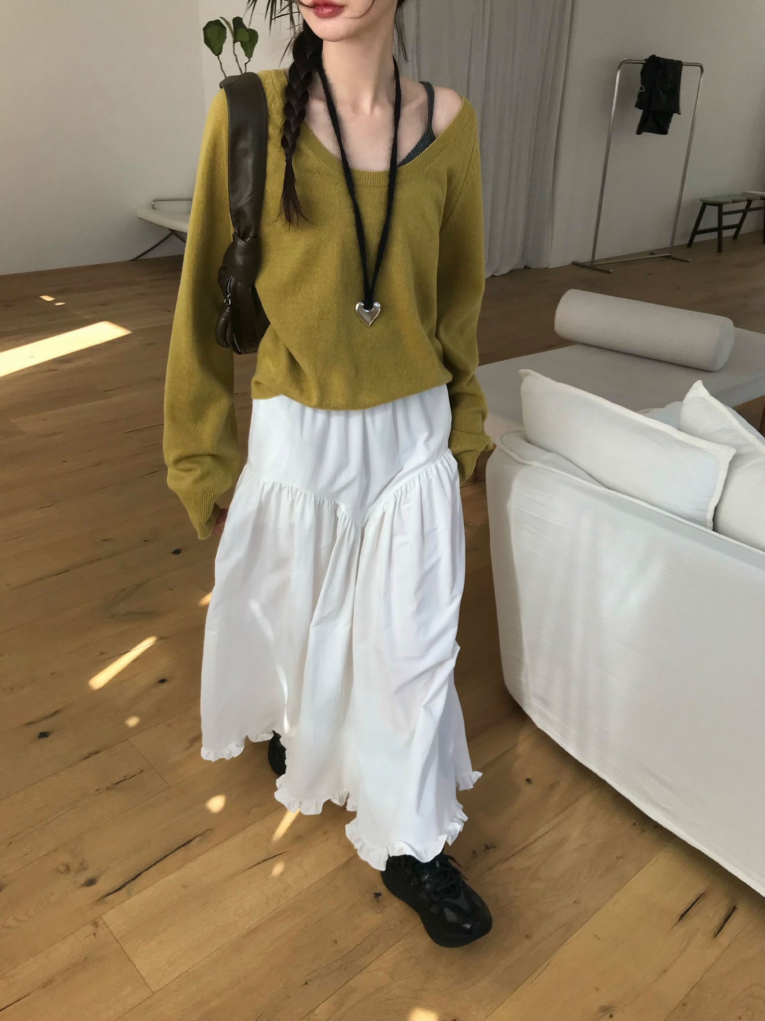 交疊蕾絲捲邊細節背心