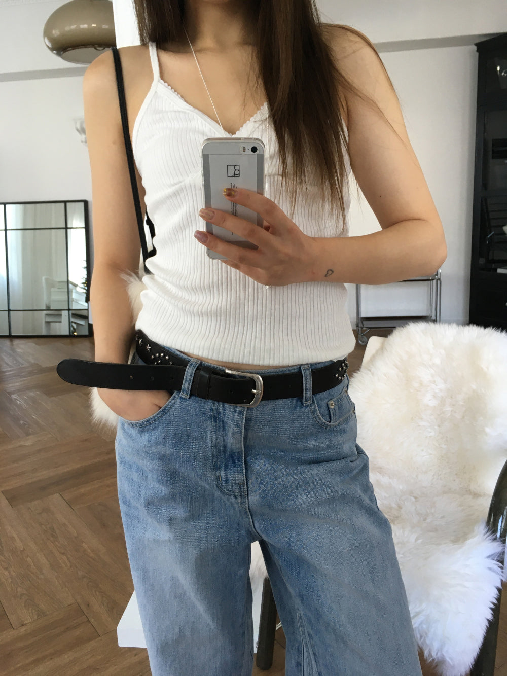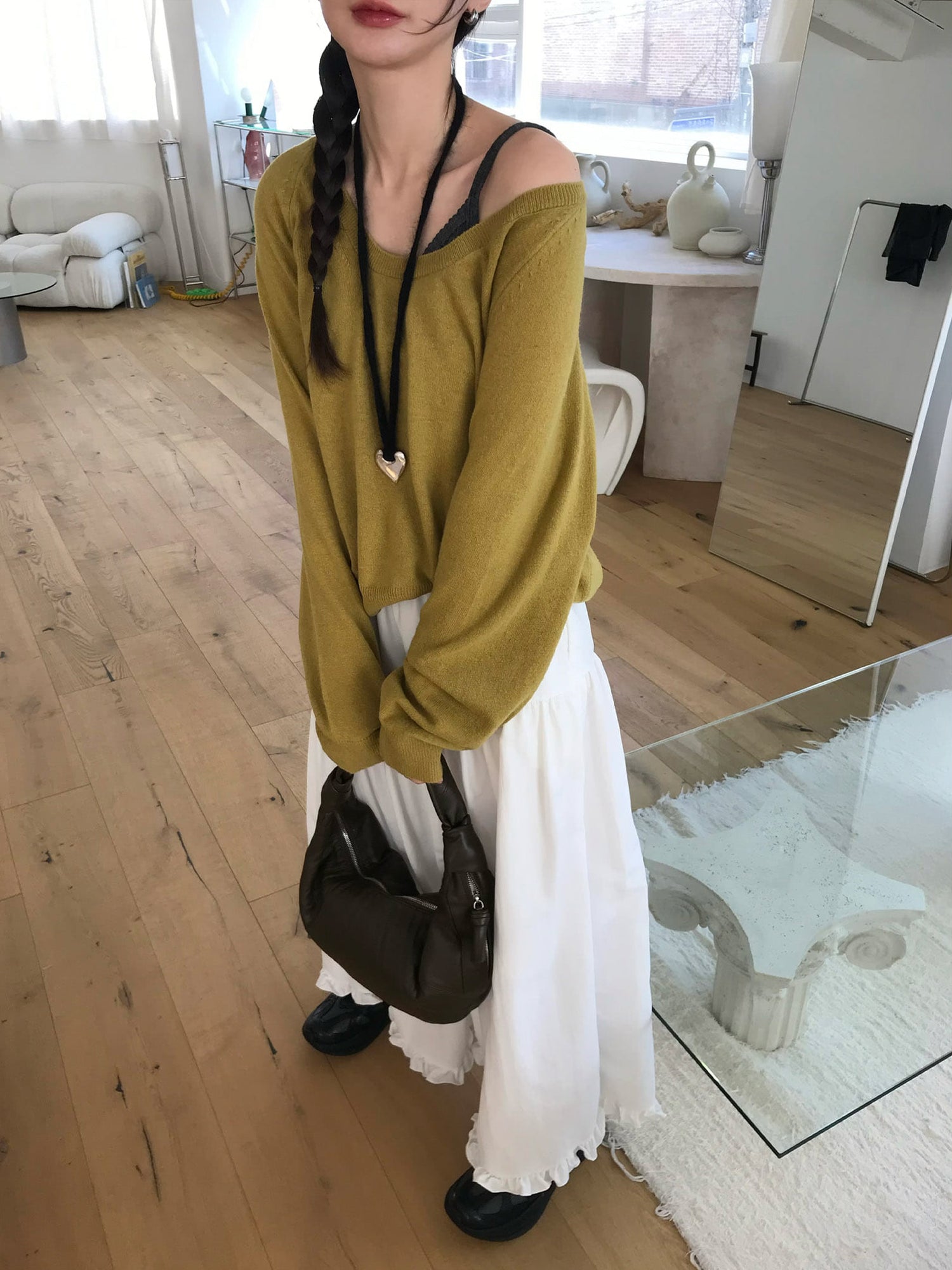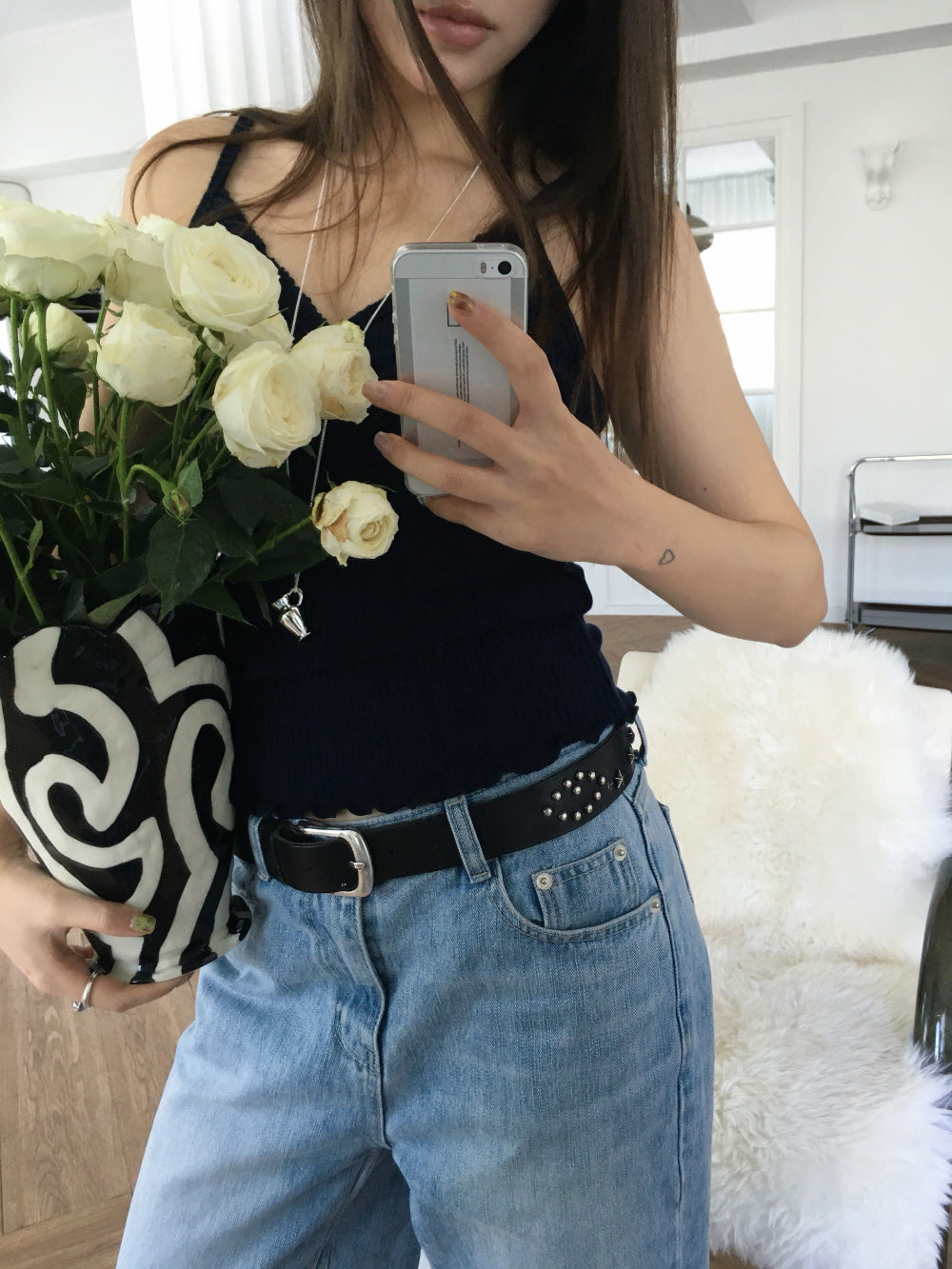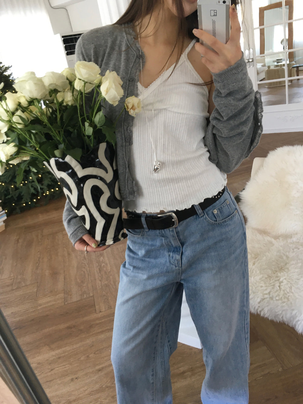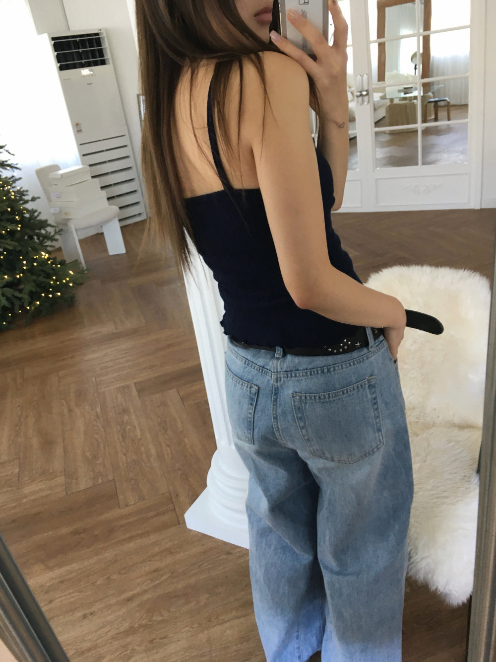 交疊蕾絲捲邊細節背心