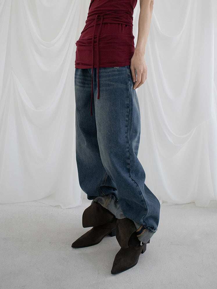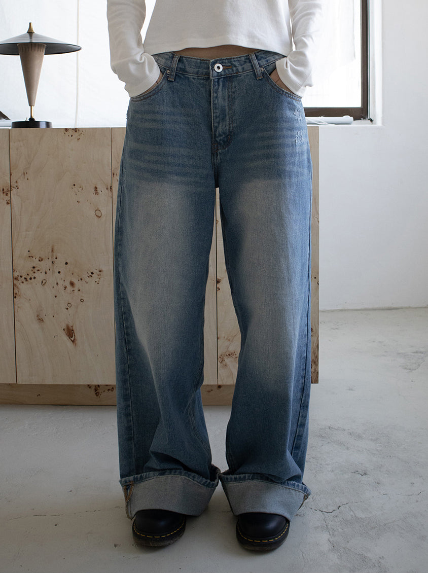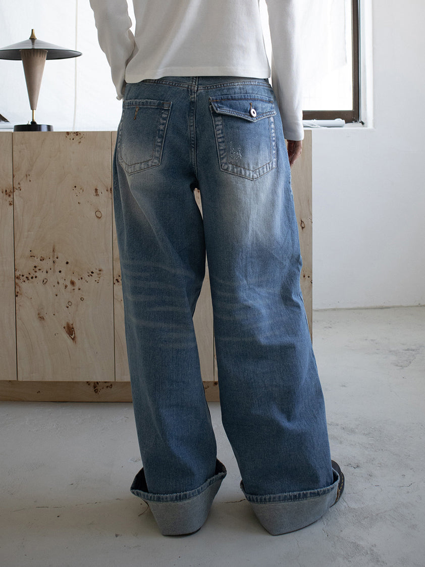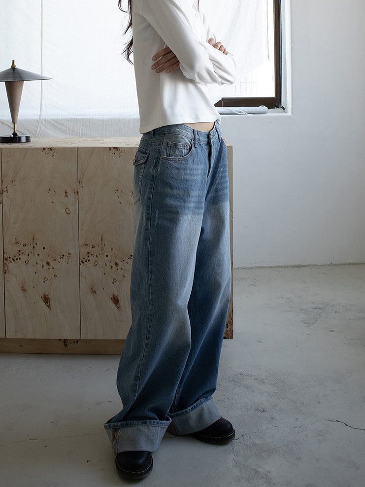 復古美色率性牛仔闊褲