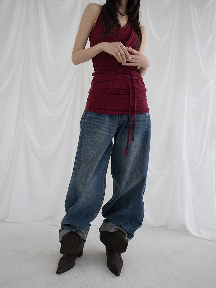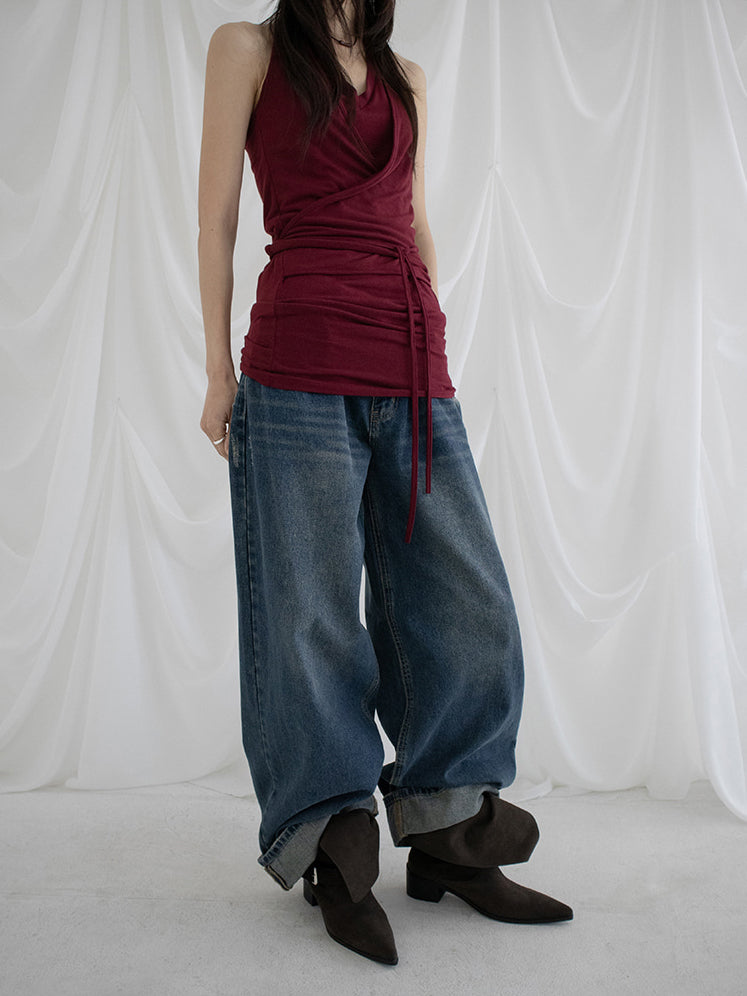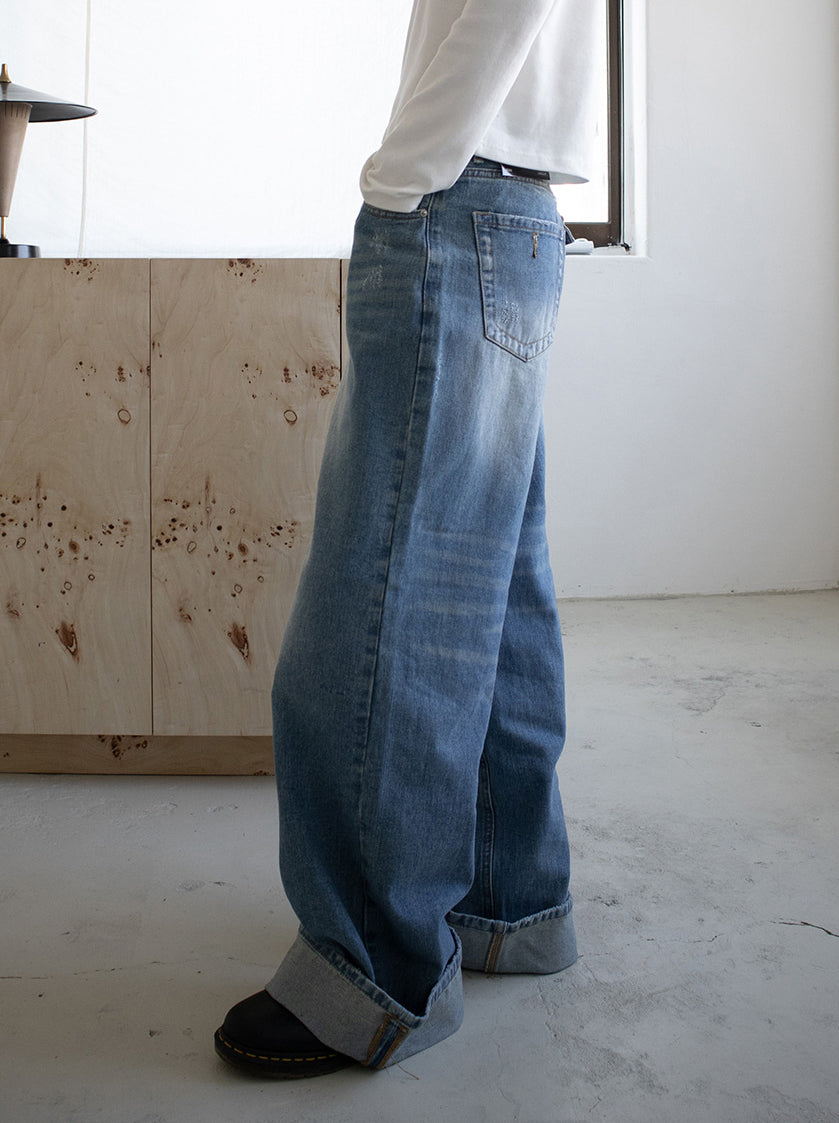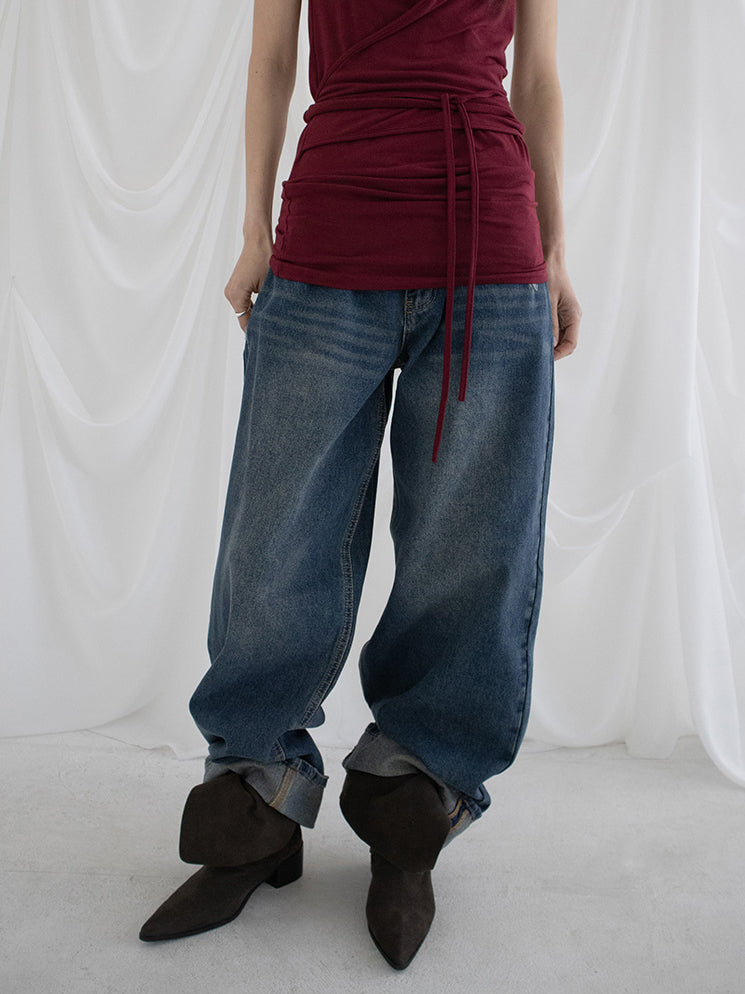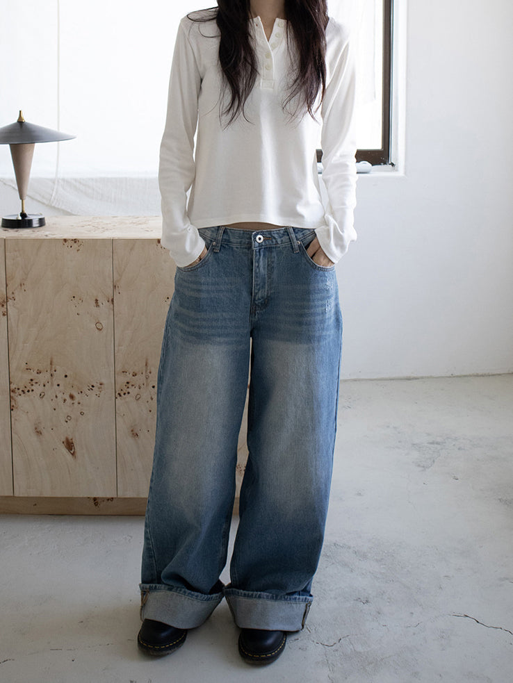 復古美色率性牛仔闊褲