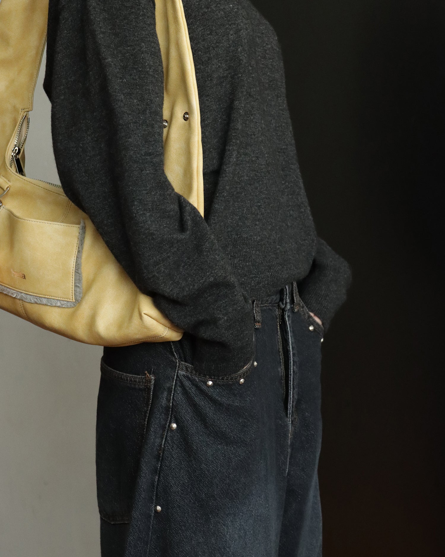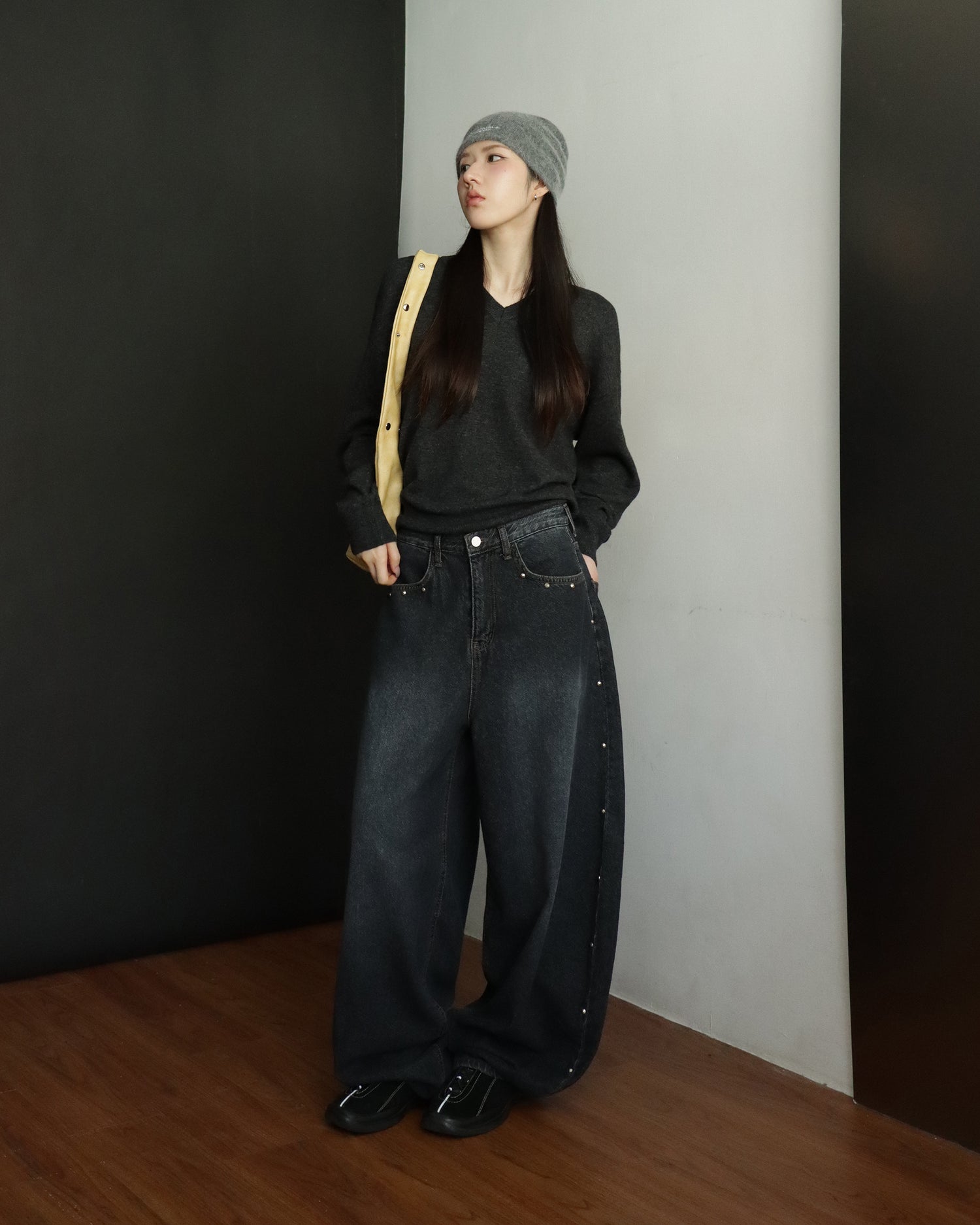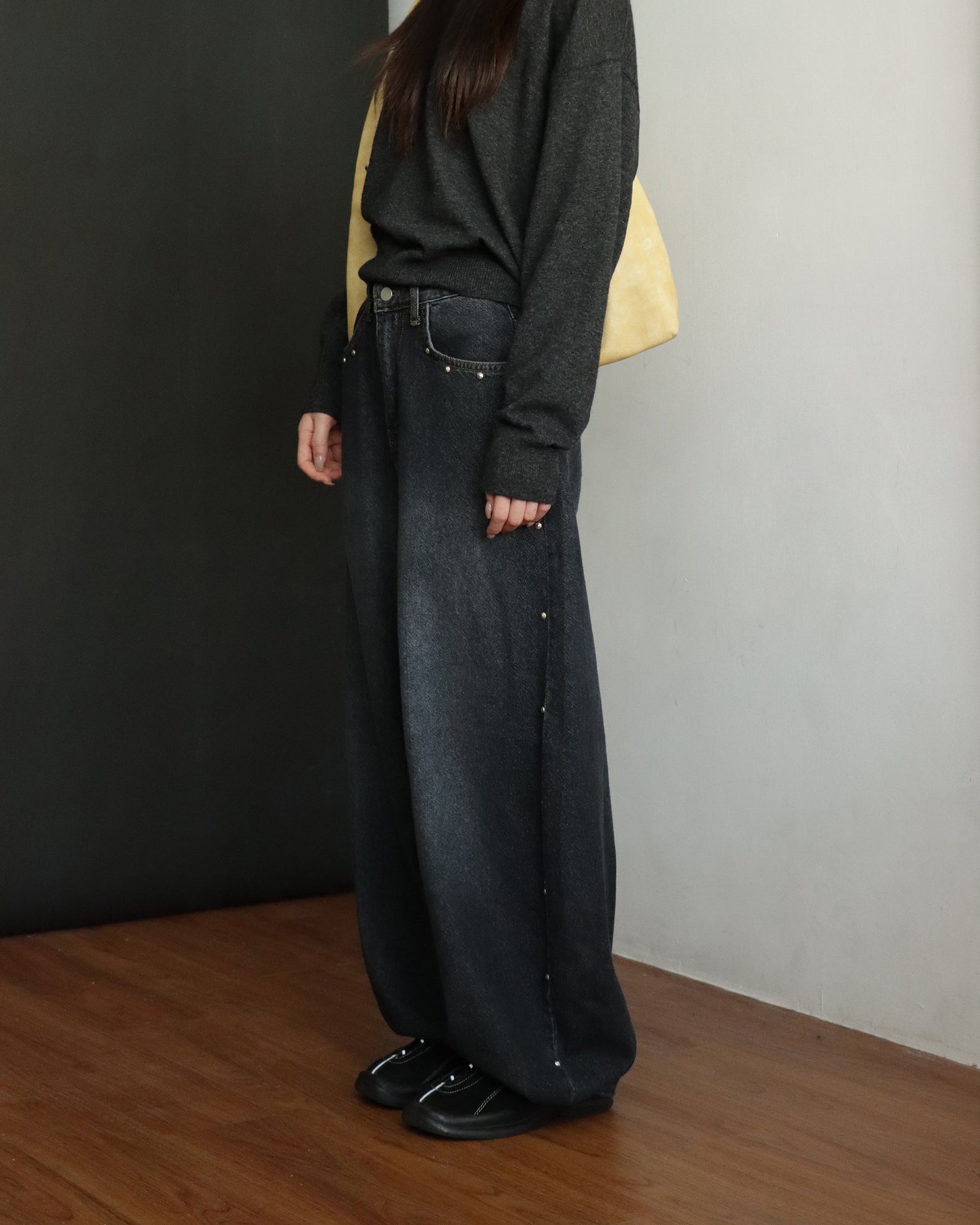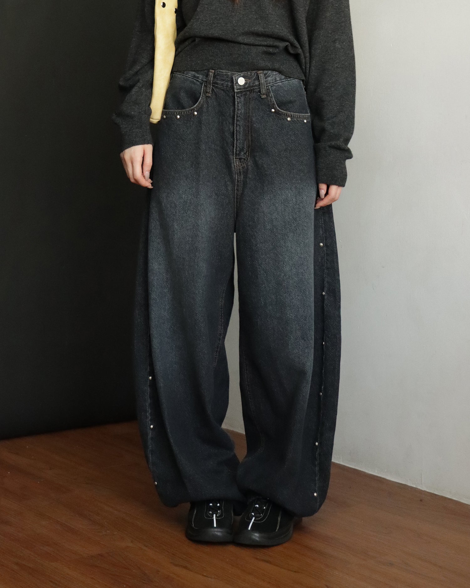 復古側鉚釘細節繭型褲