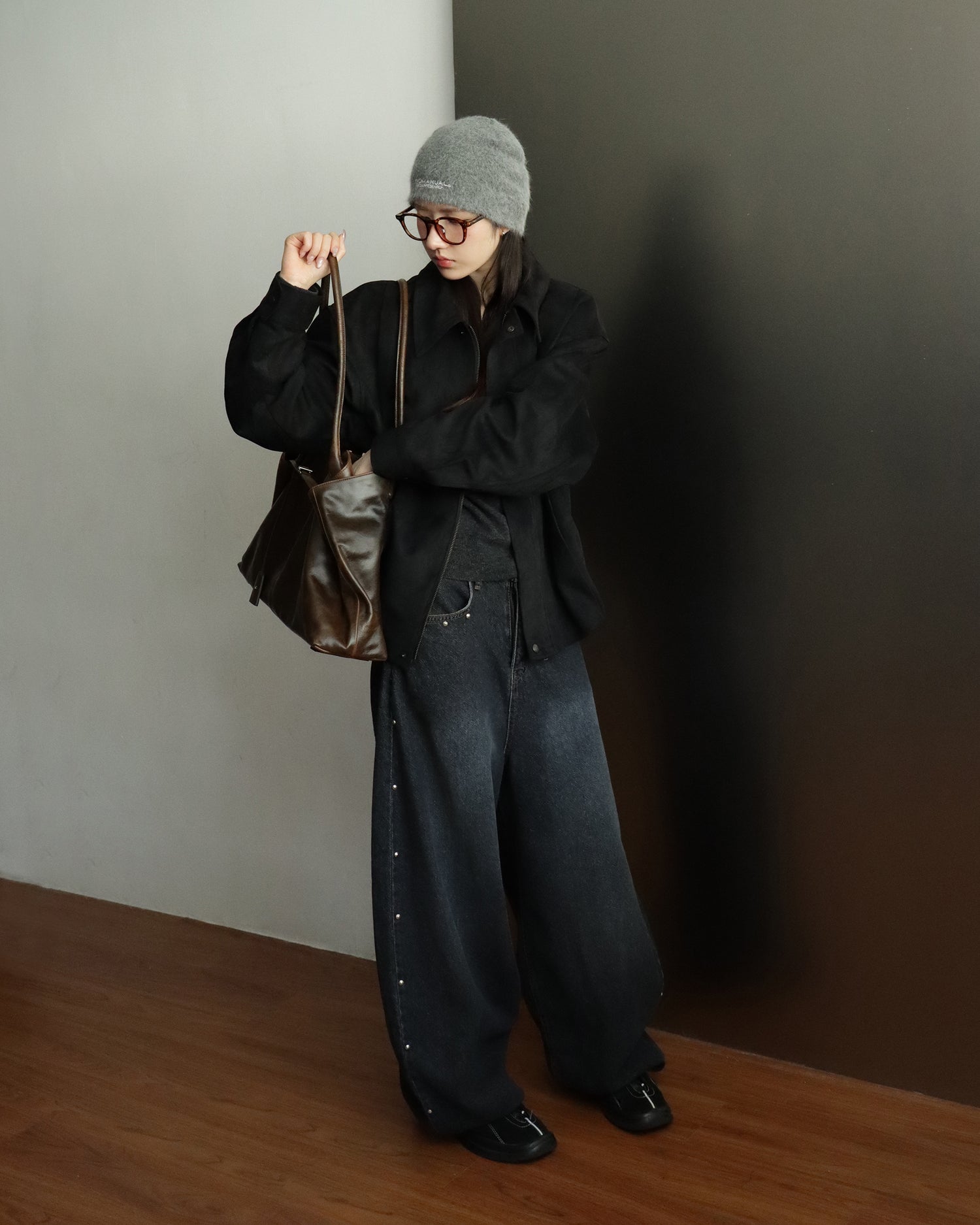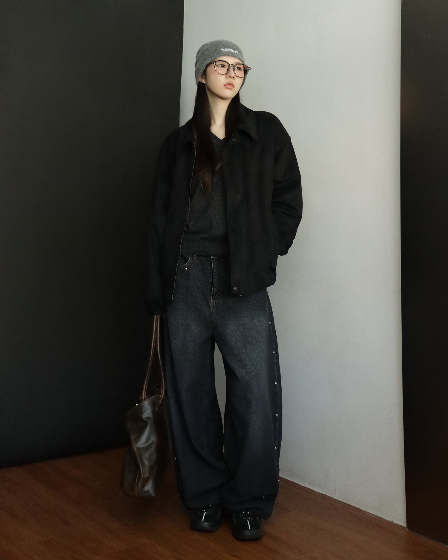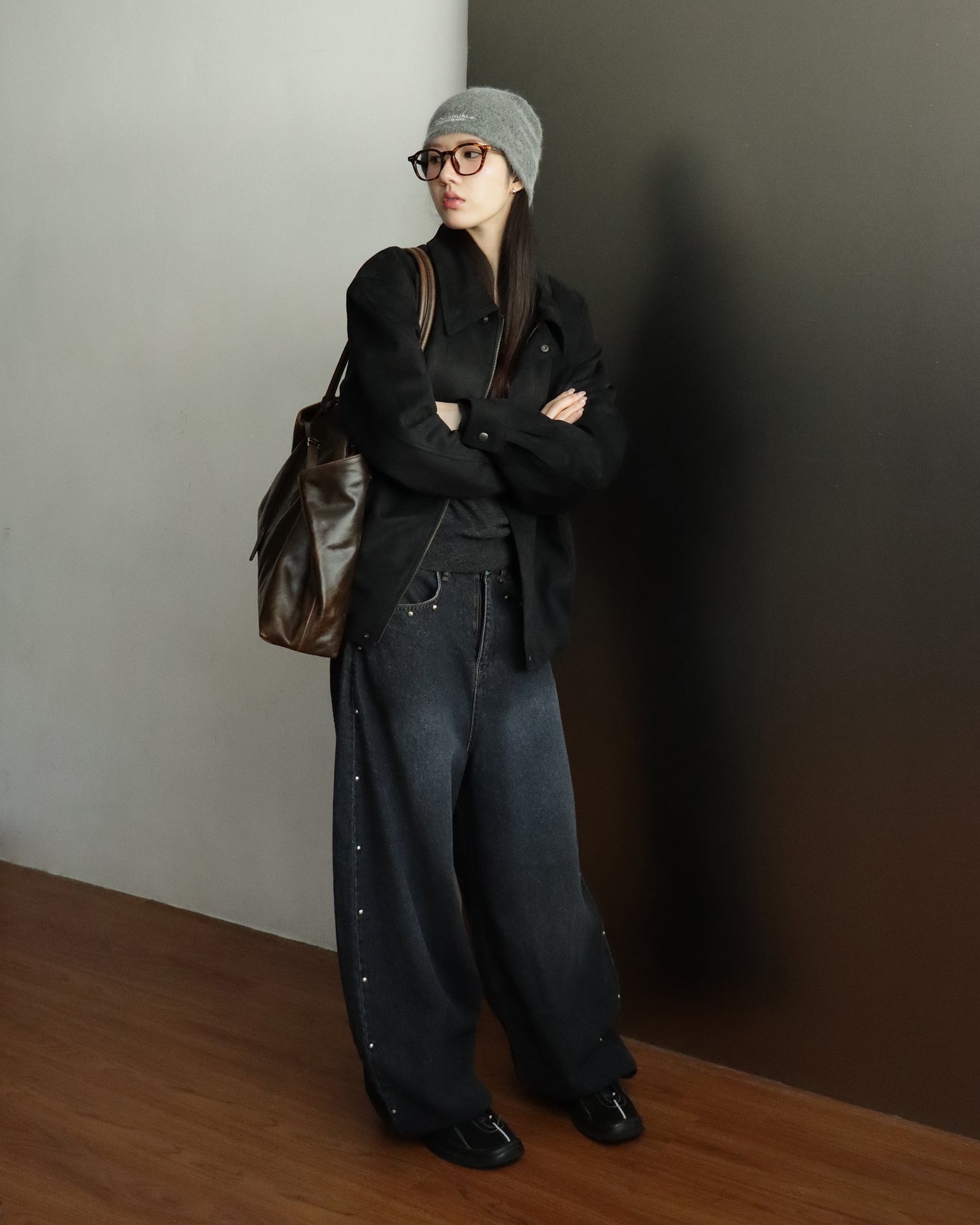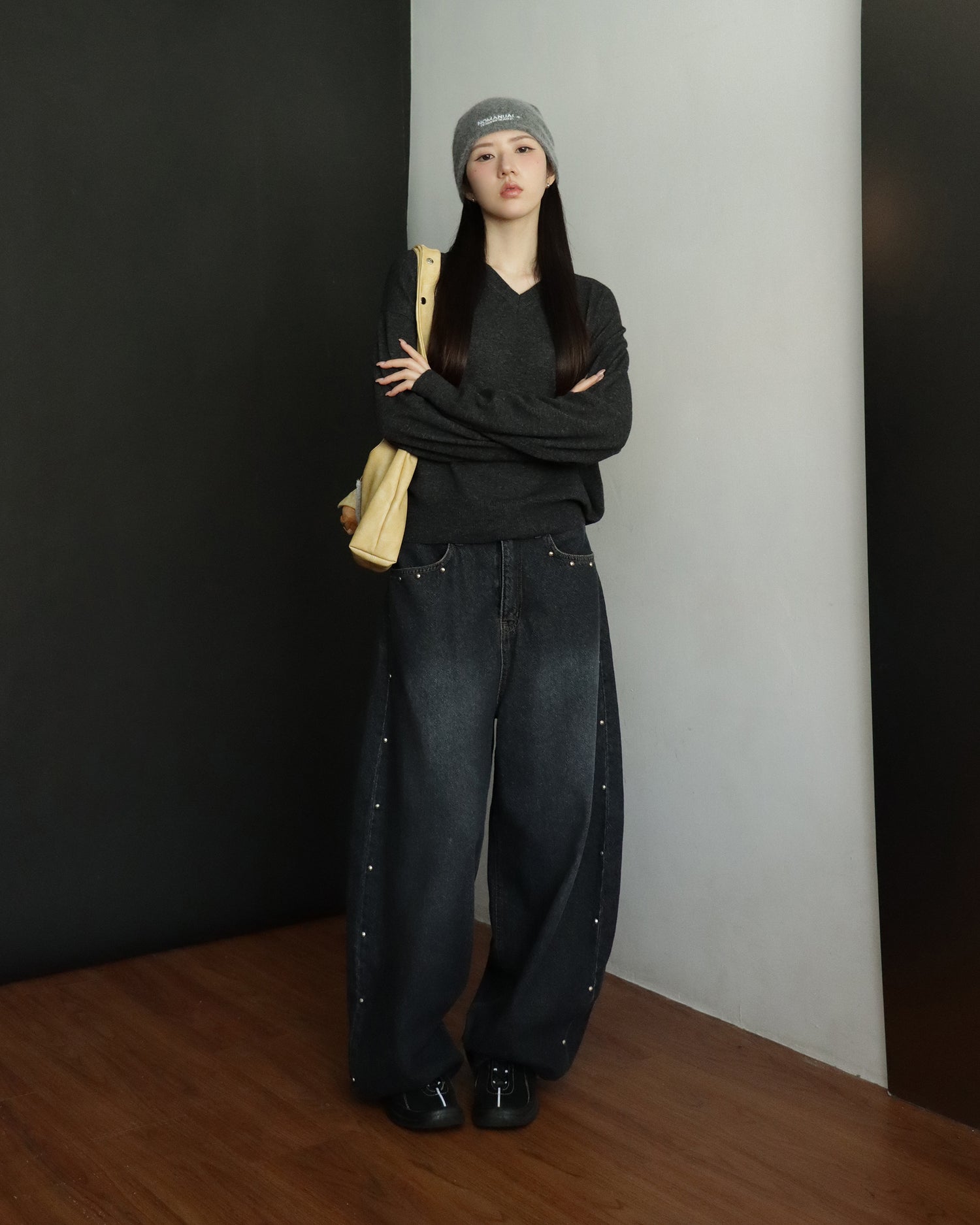 復古側鉚釘細節繭型褲