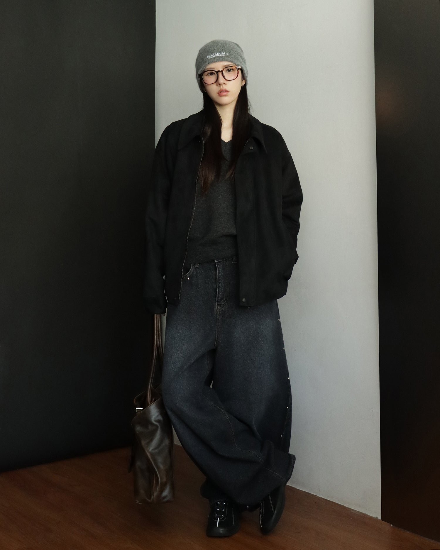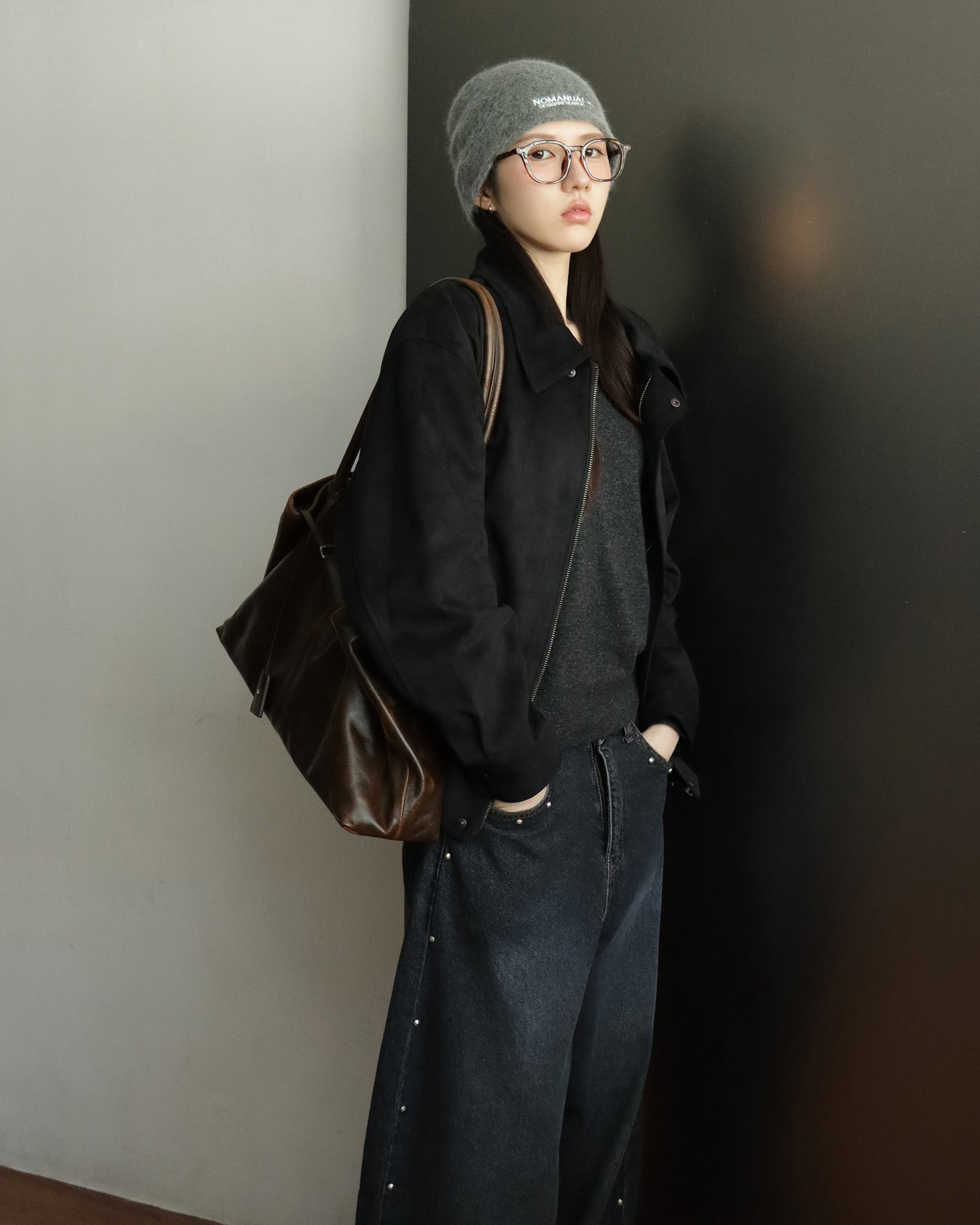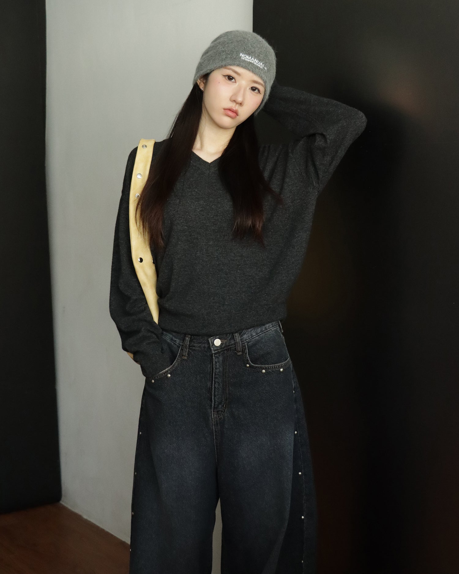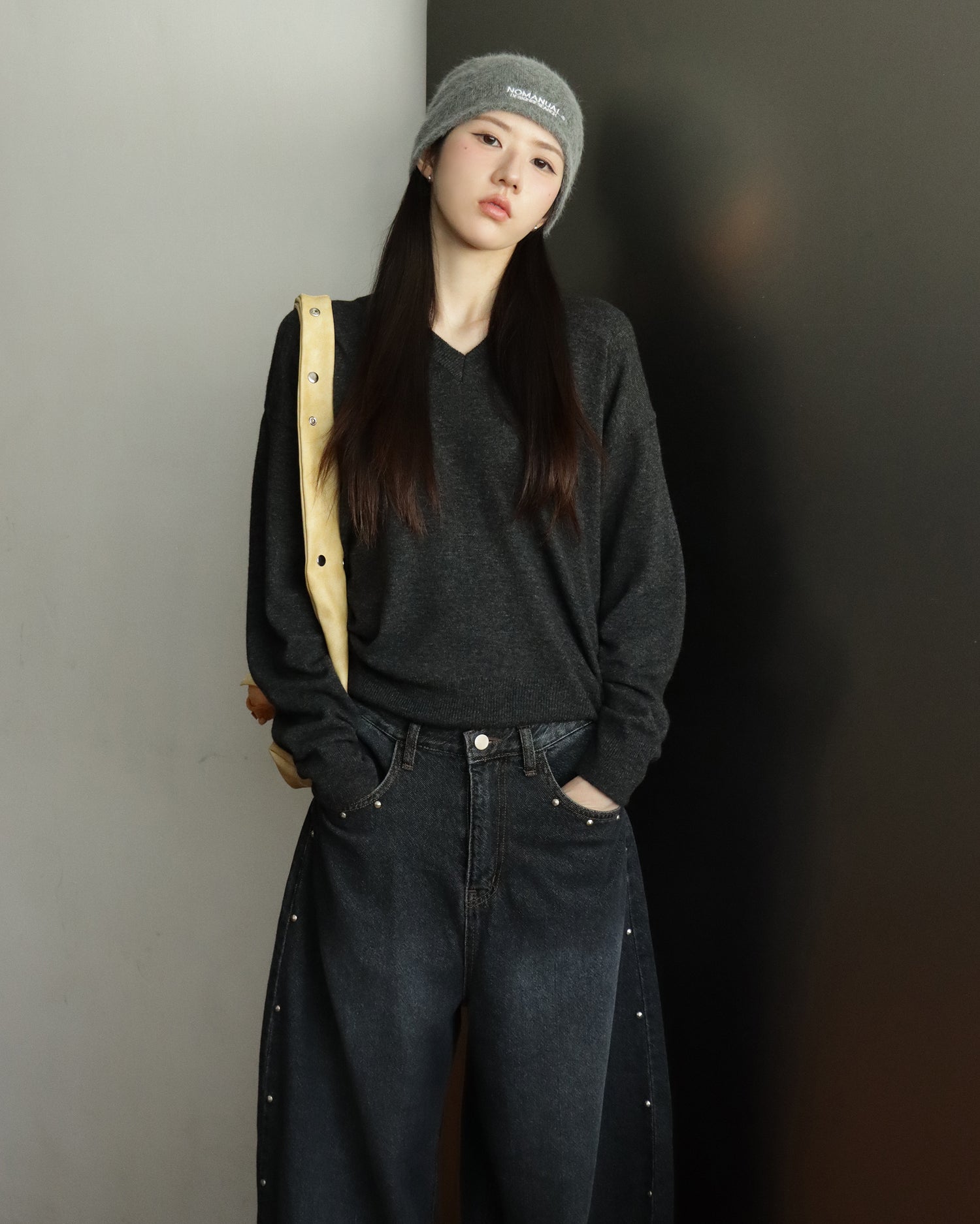 復古側鉚釘細節繭型褲