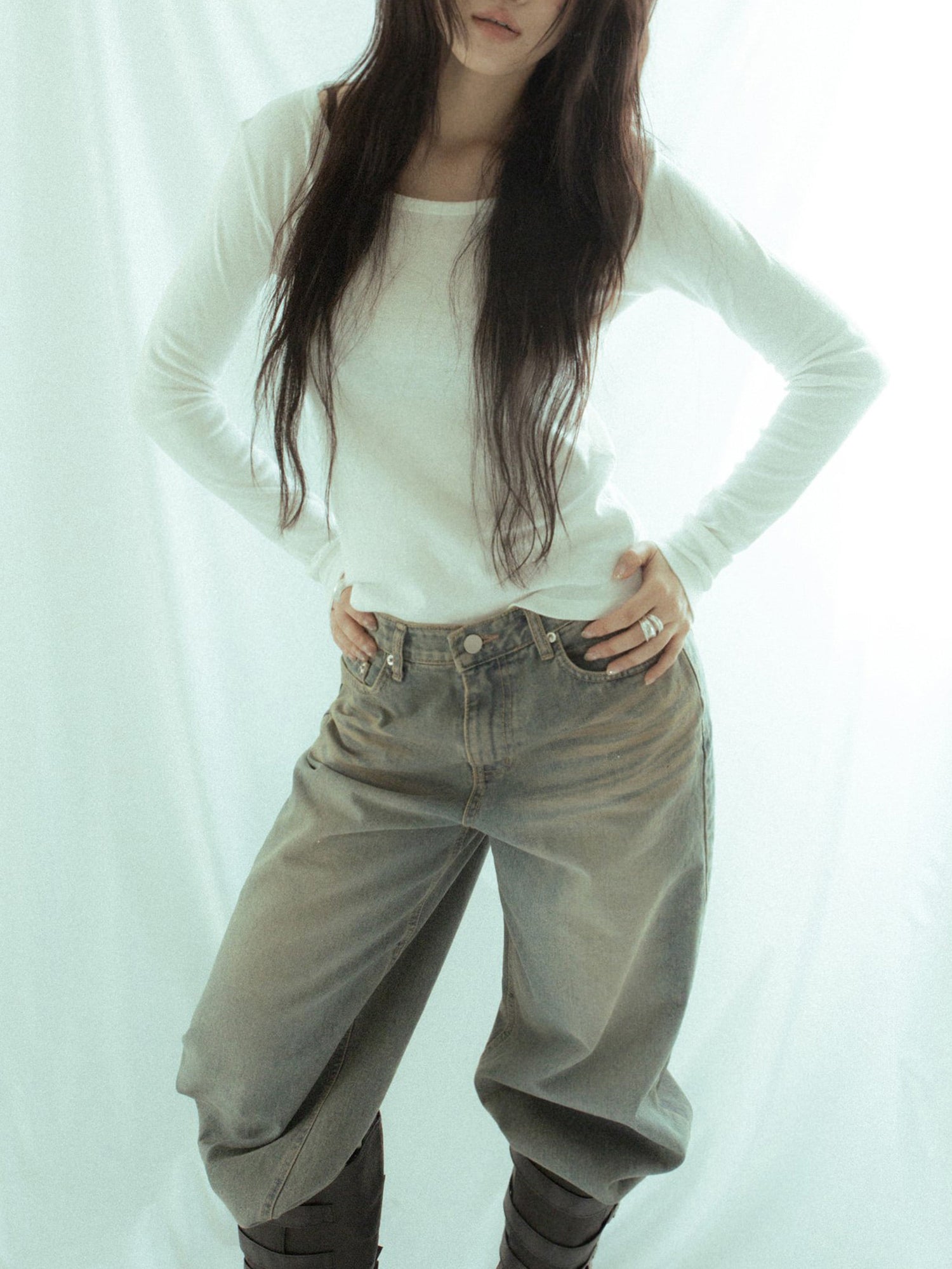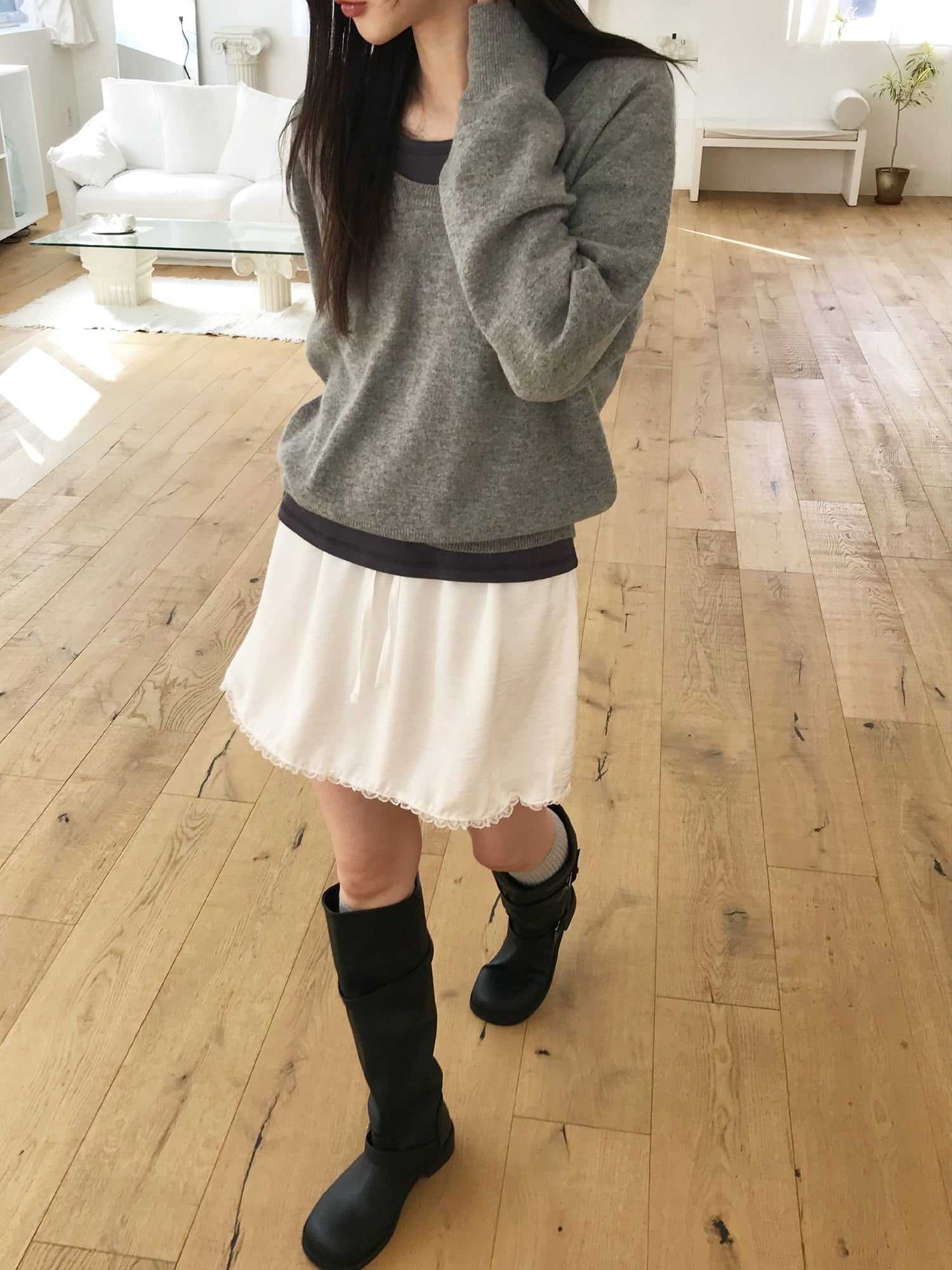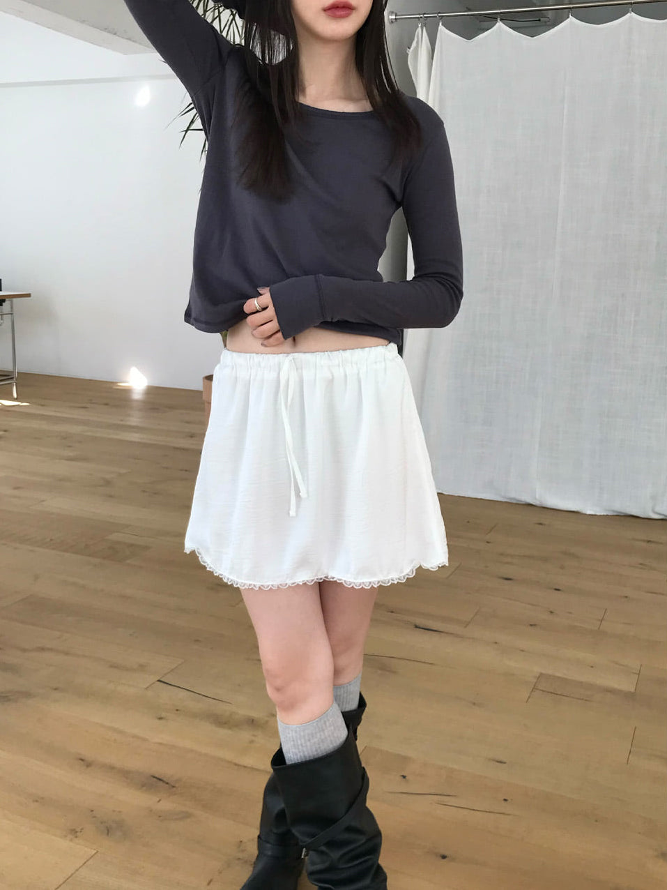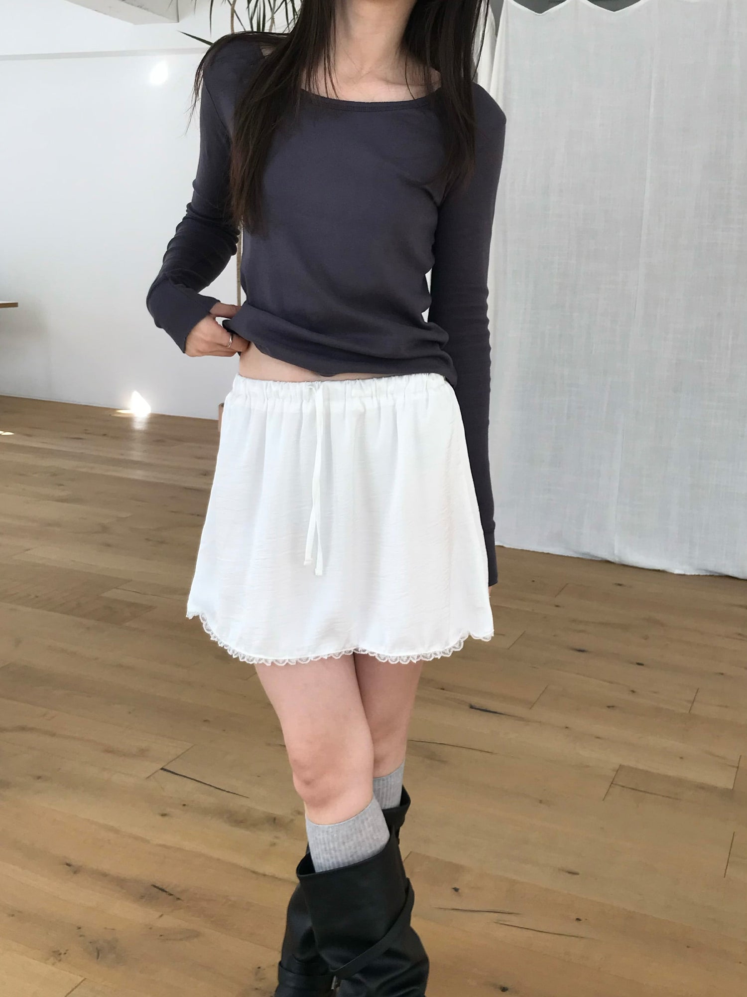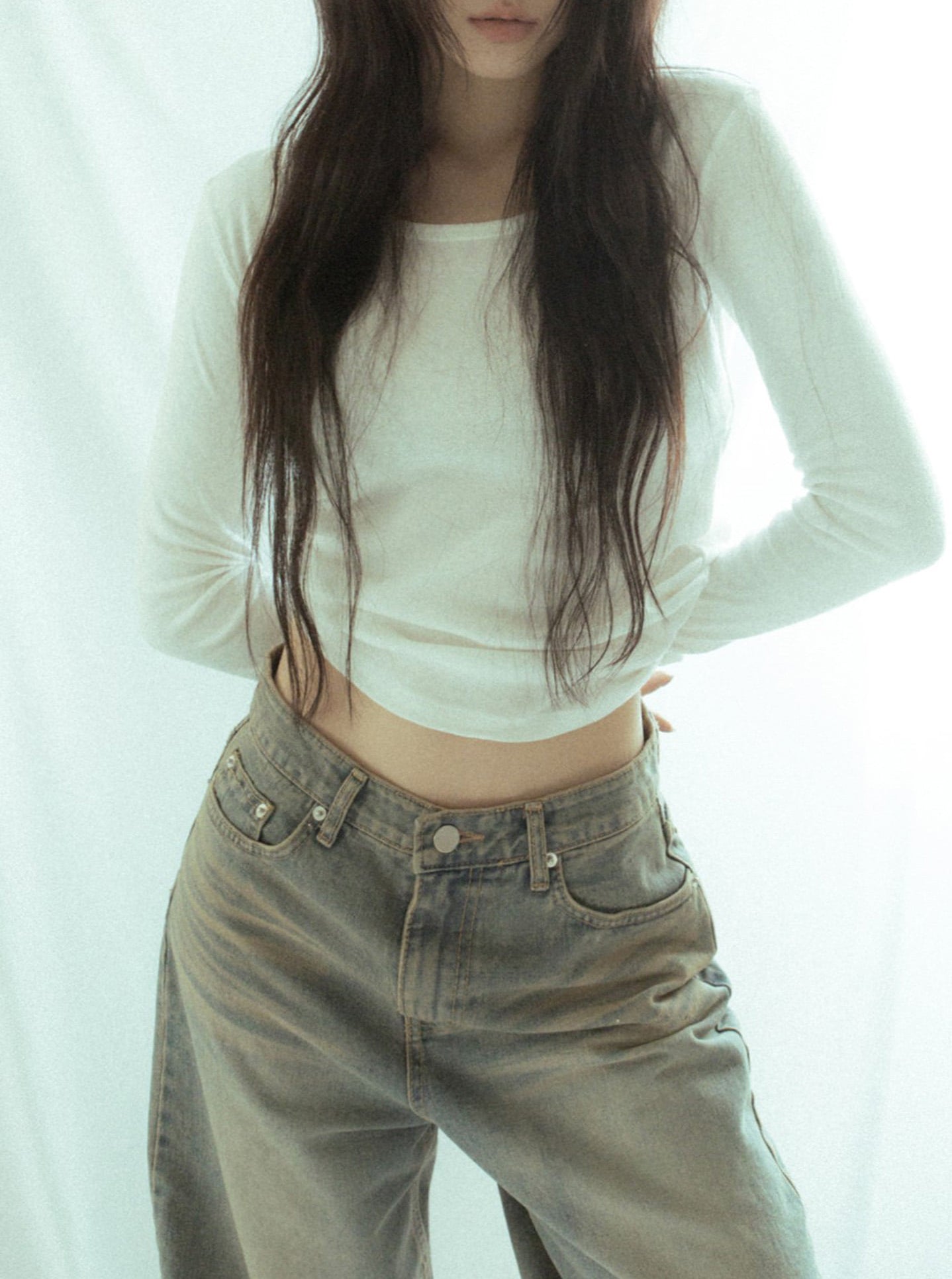 微透美色基礎袖細節上衣