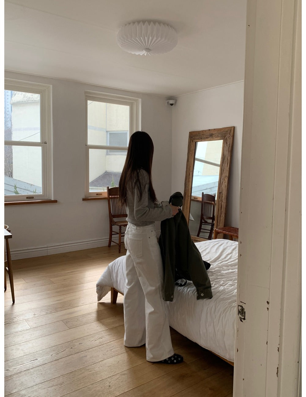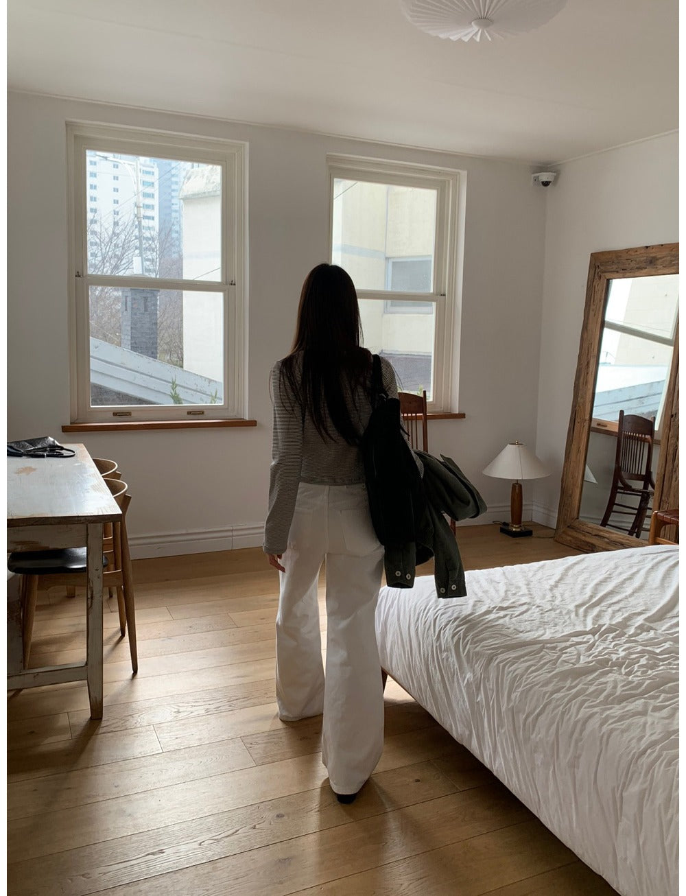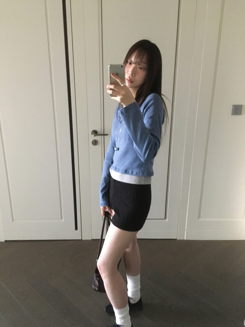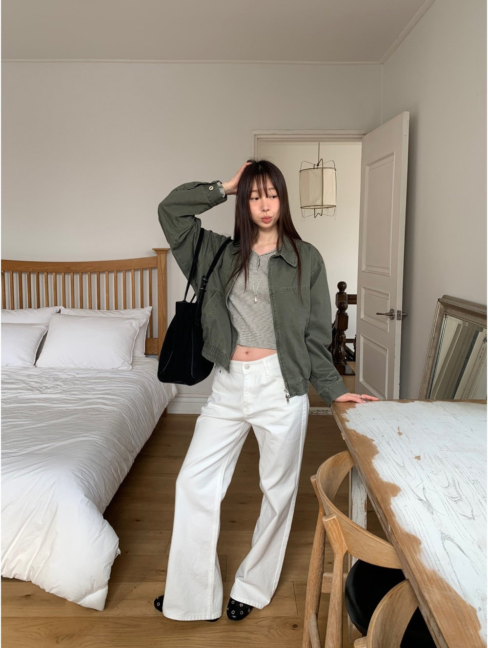 條紋V領暗扣細節上衣