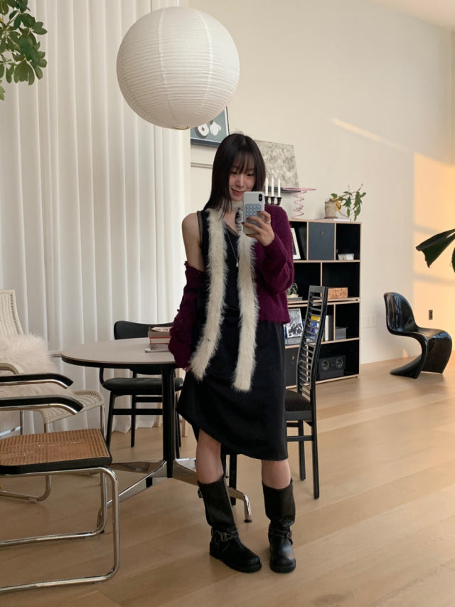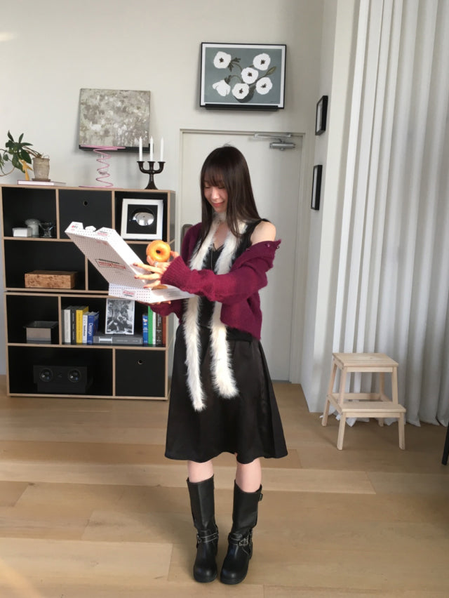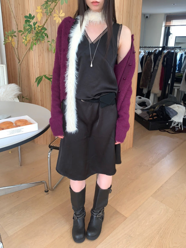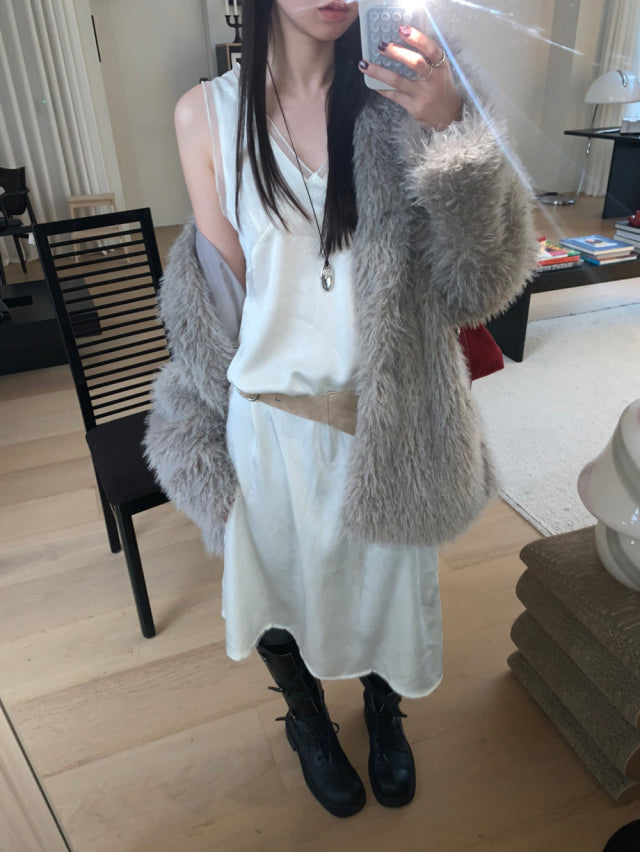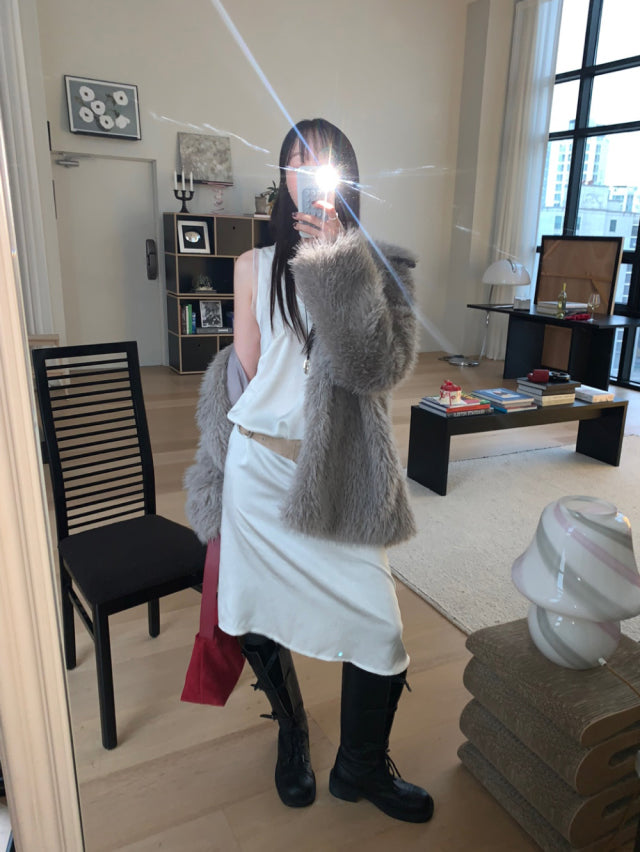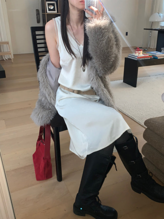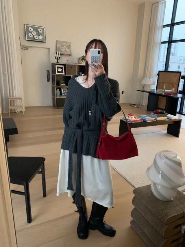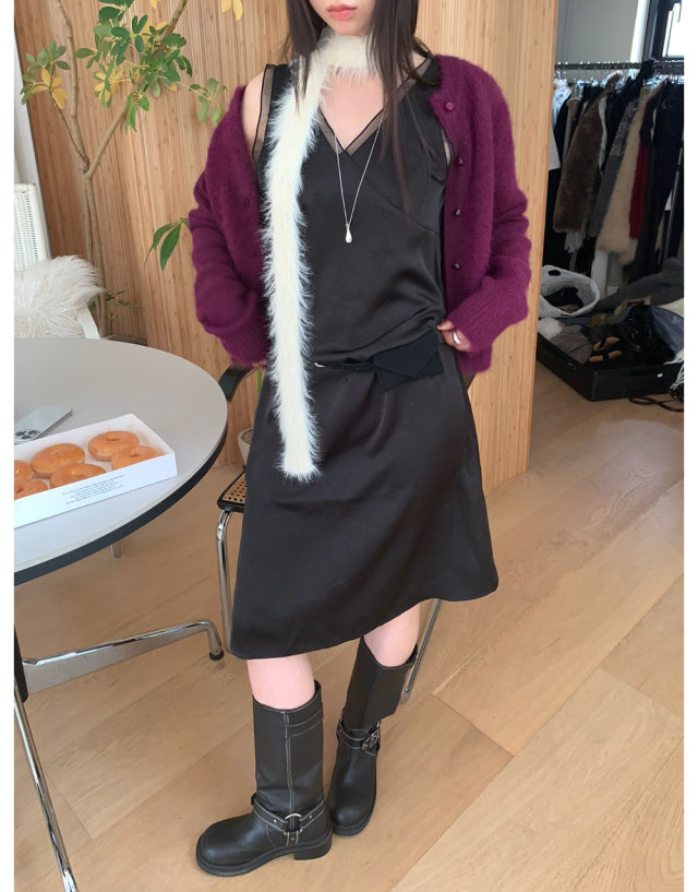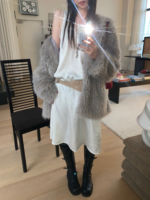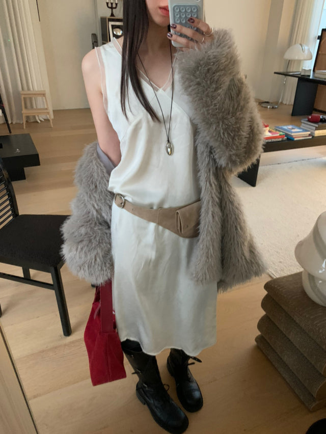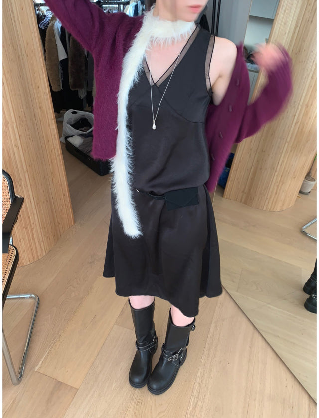 極美雙層透細節綁帶連身裙