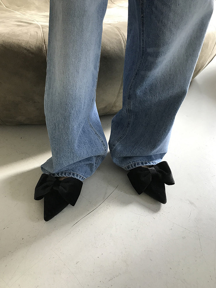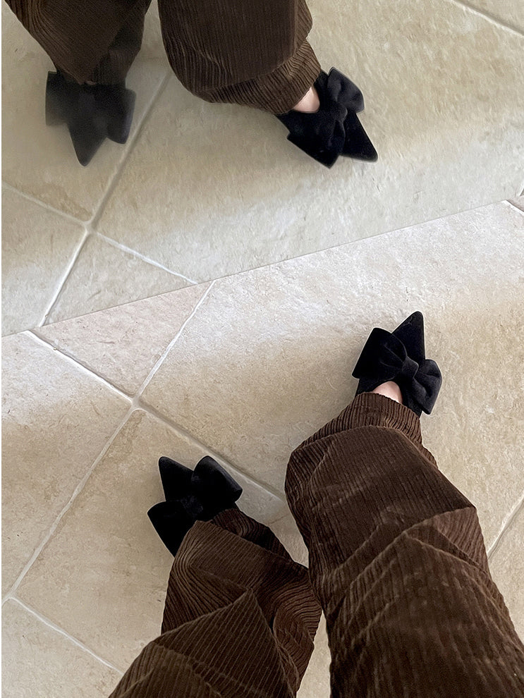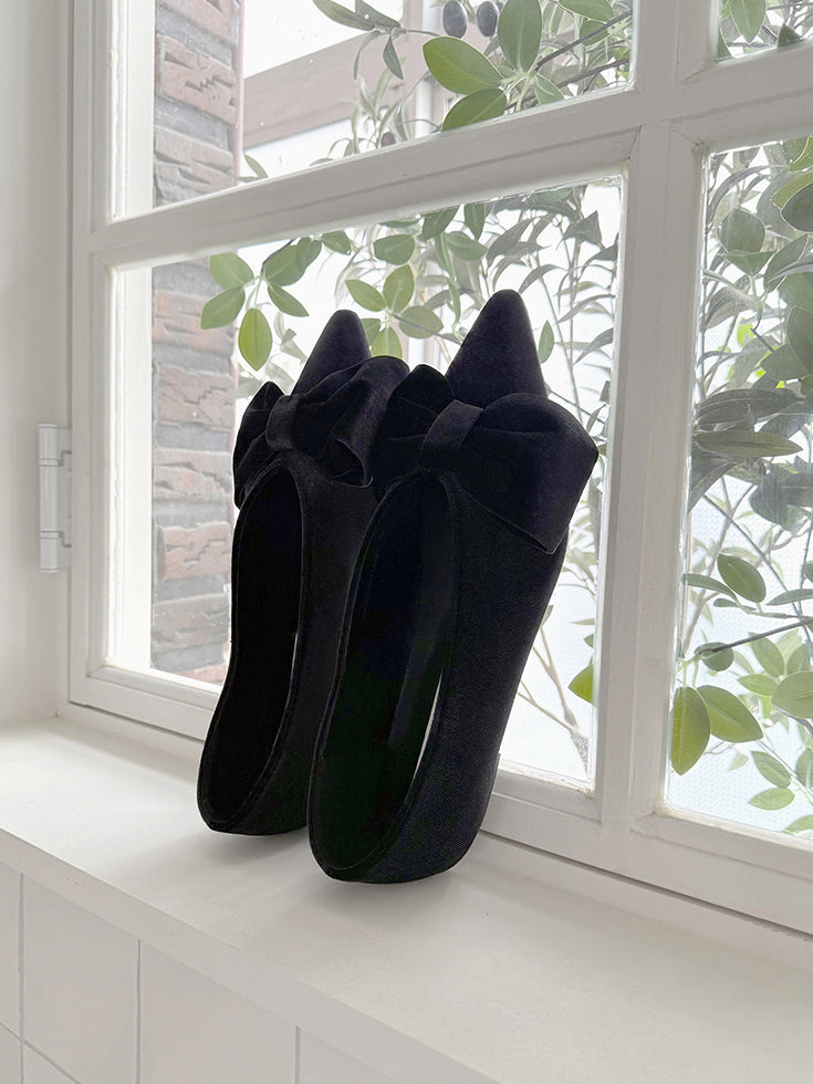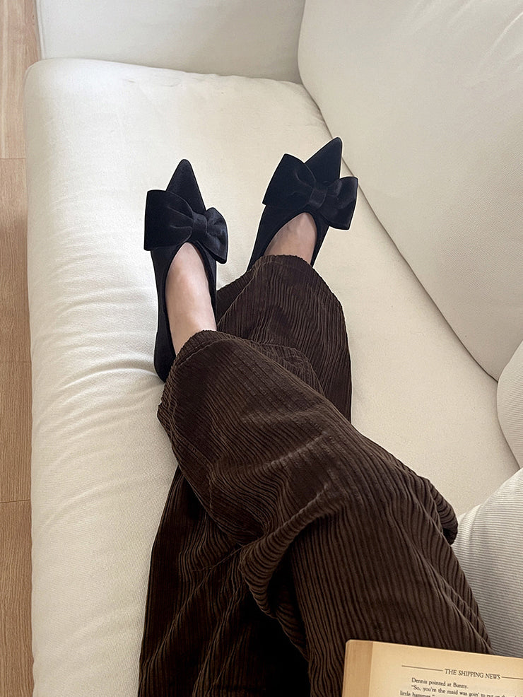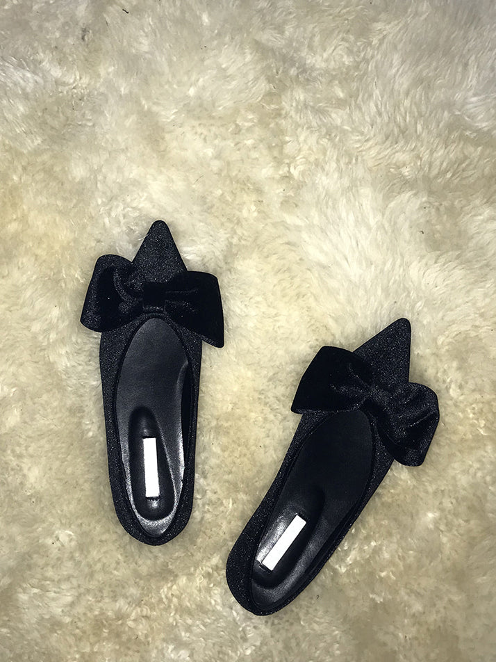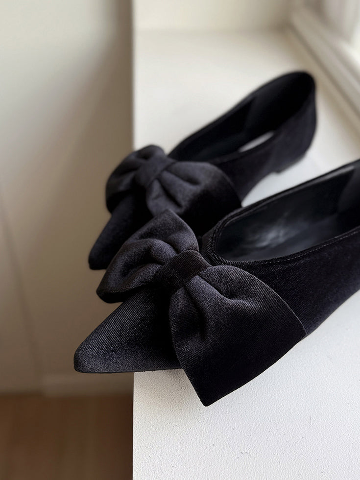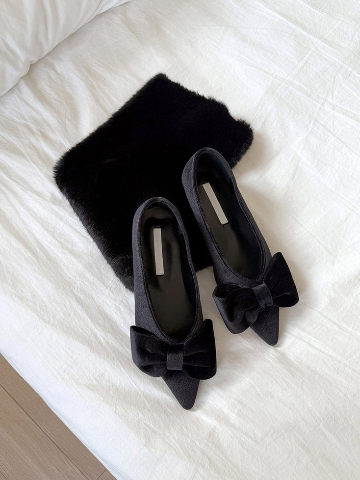 經典蝴蝶結絲絨質感尖頭鞋