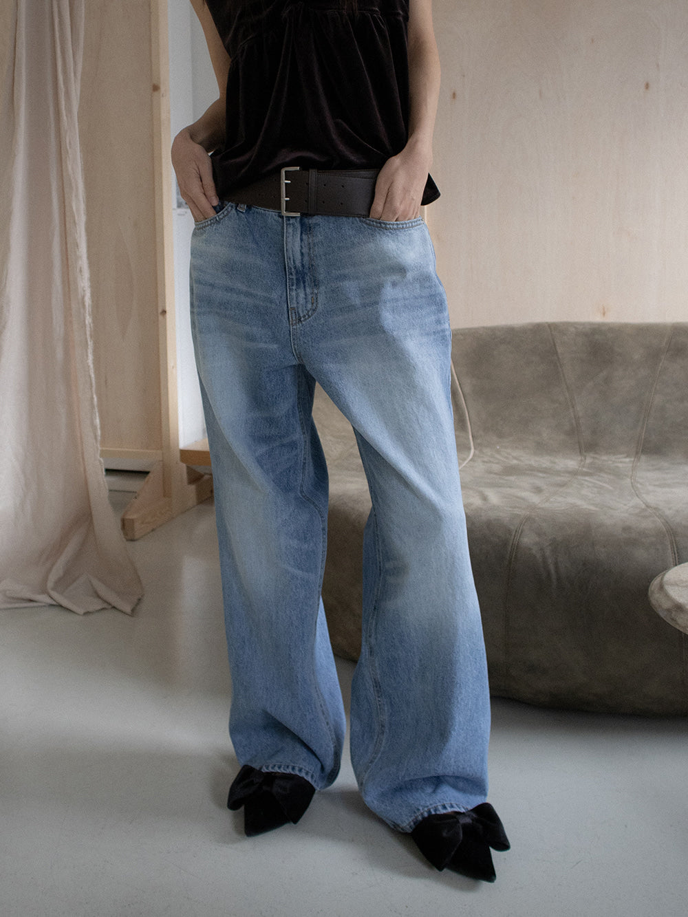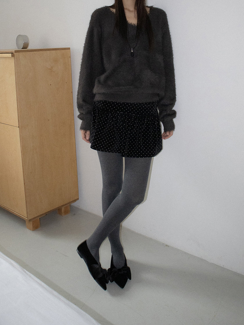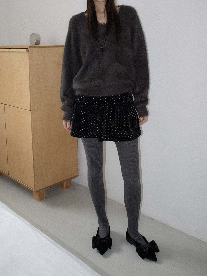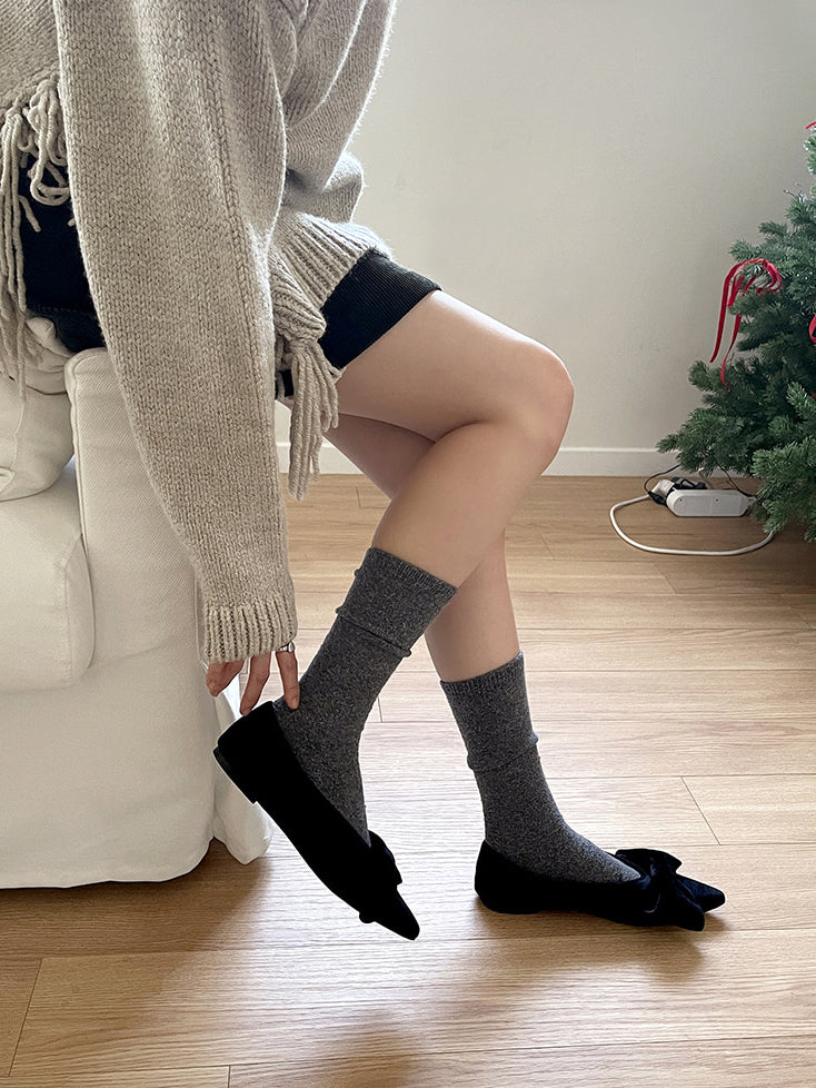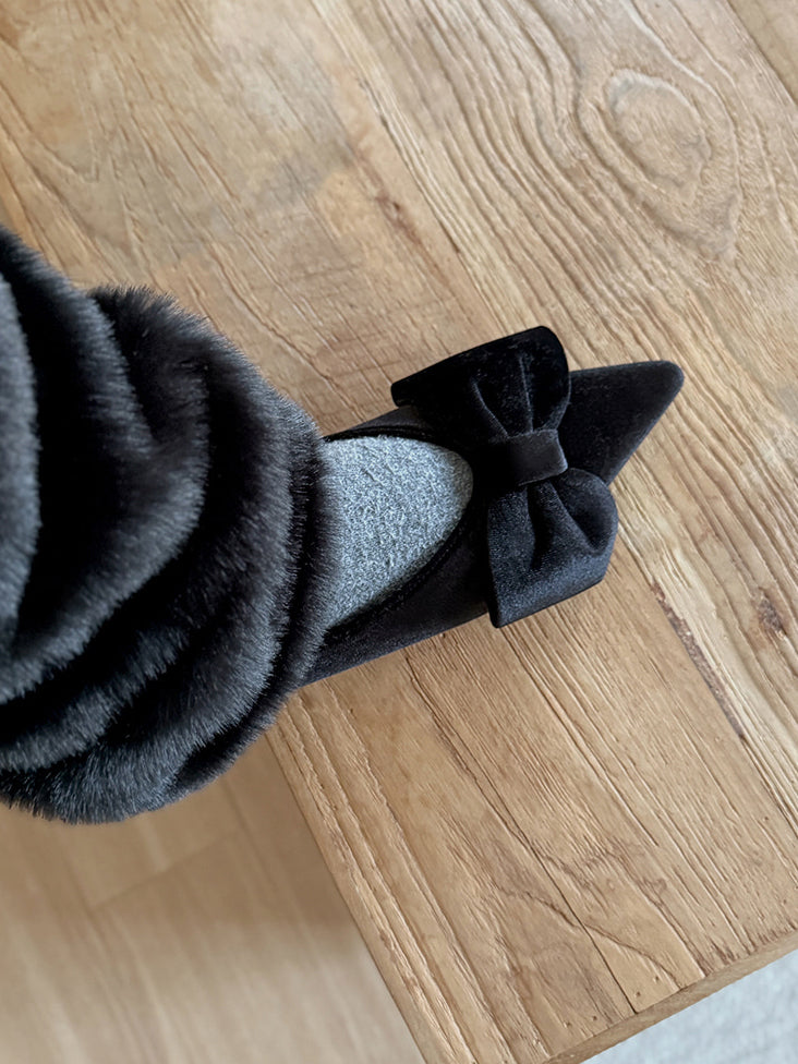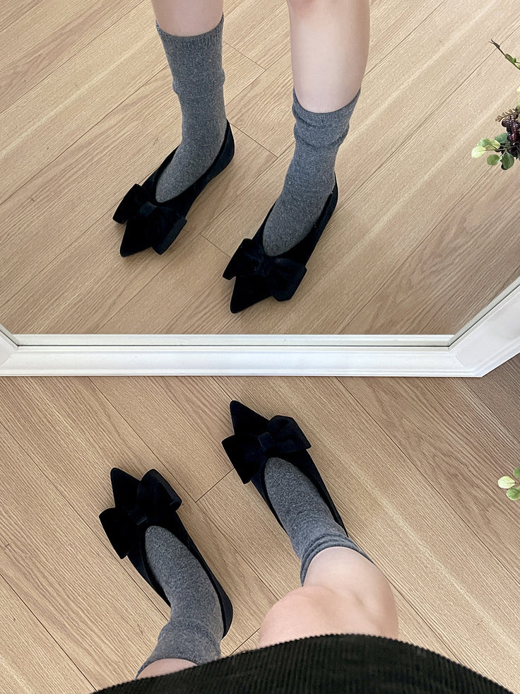 經典蝴蝶結絲絨質感尖頭鞋