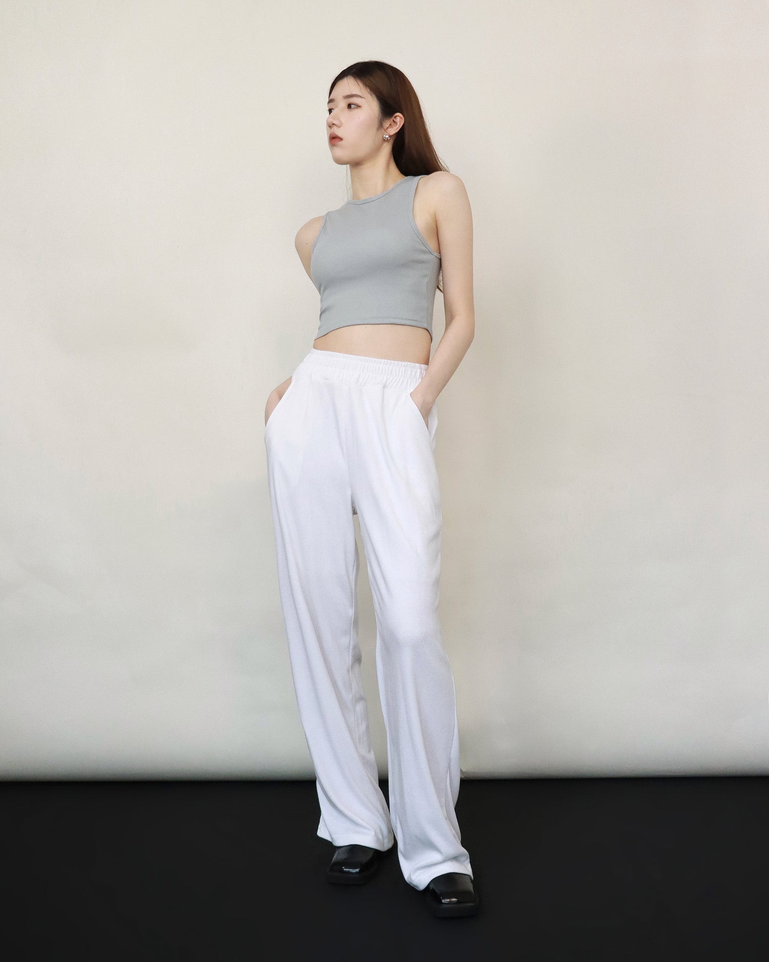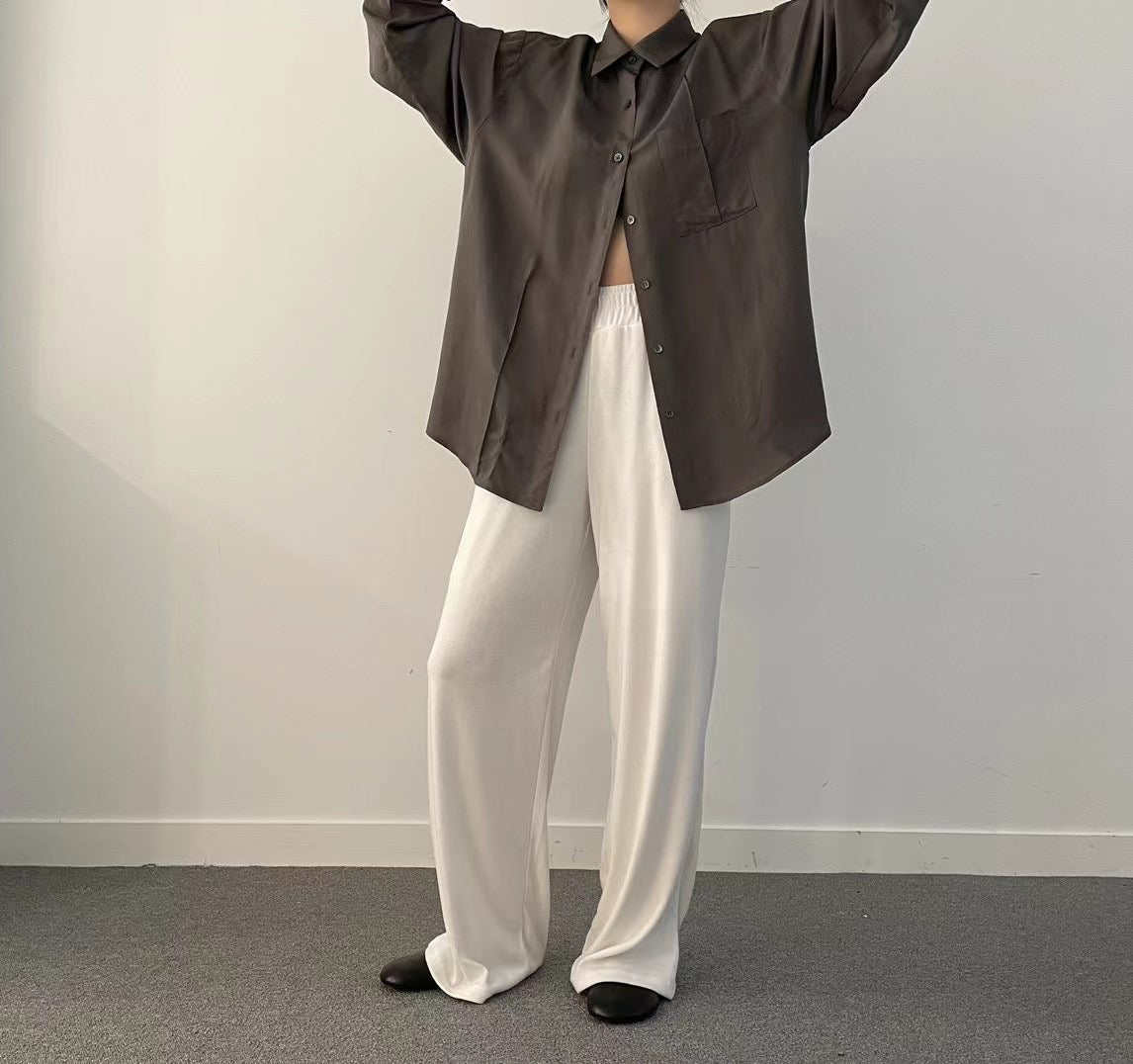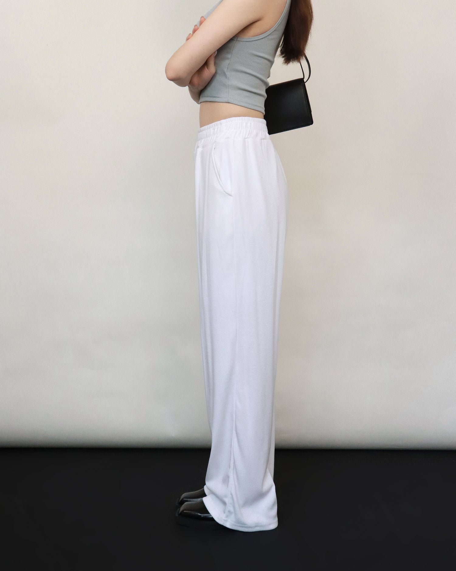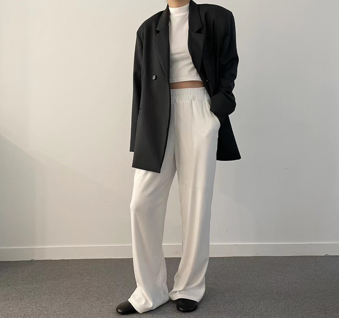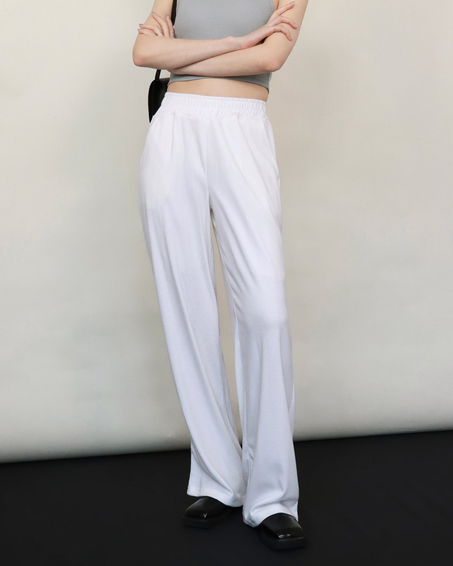 (Fitting)舒適垂感基礎長腿褲-白色