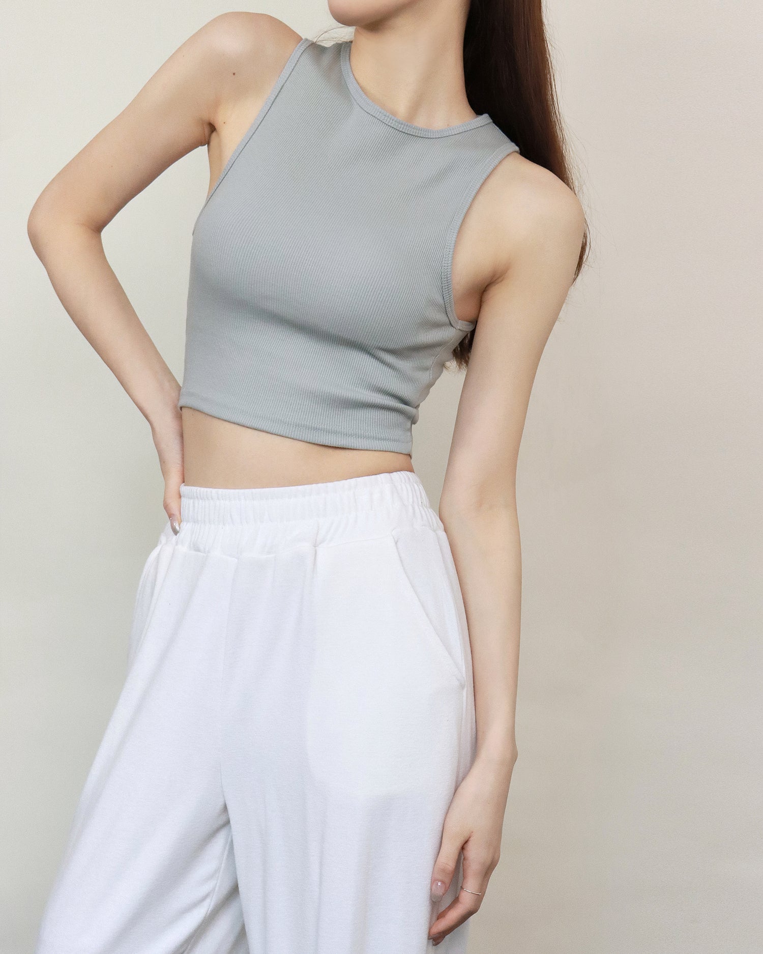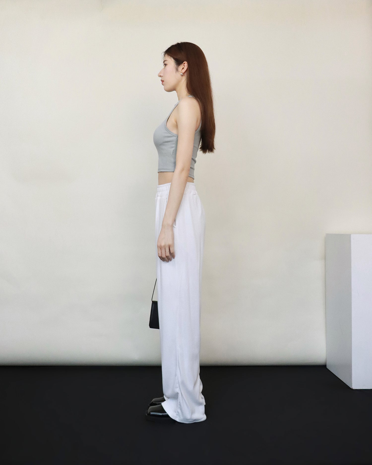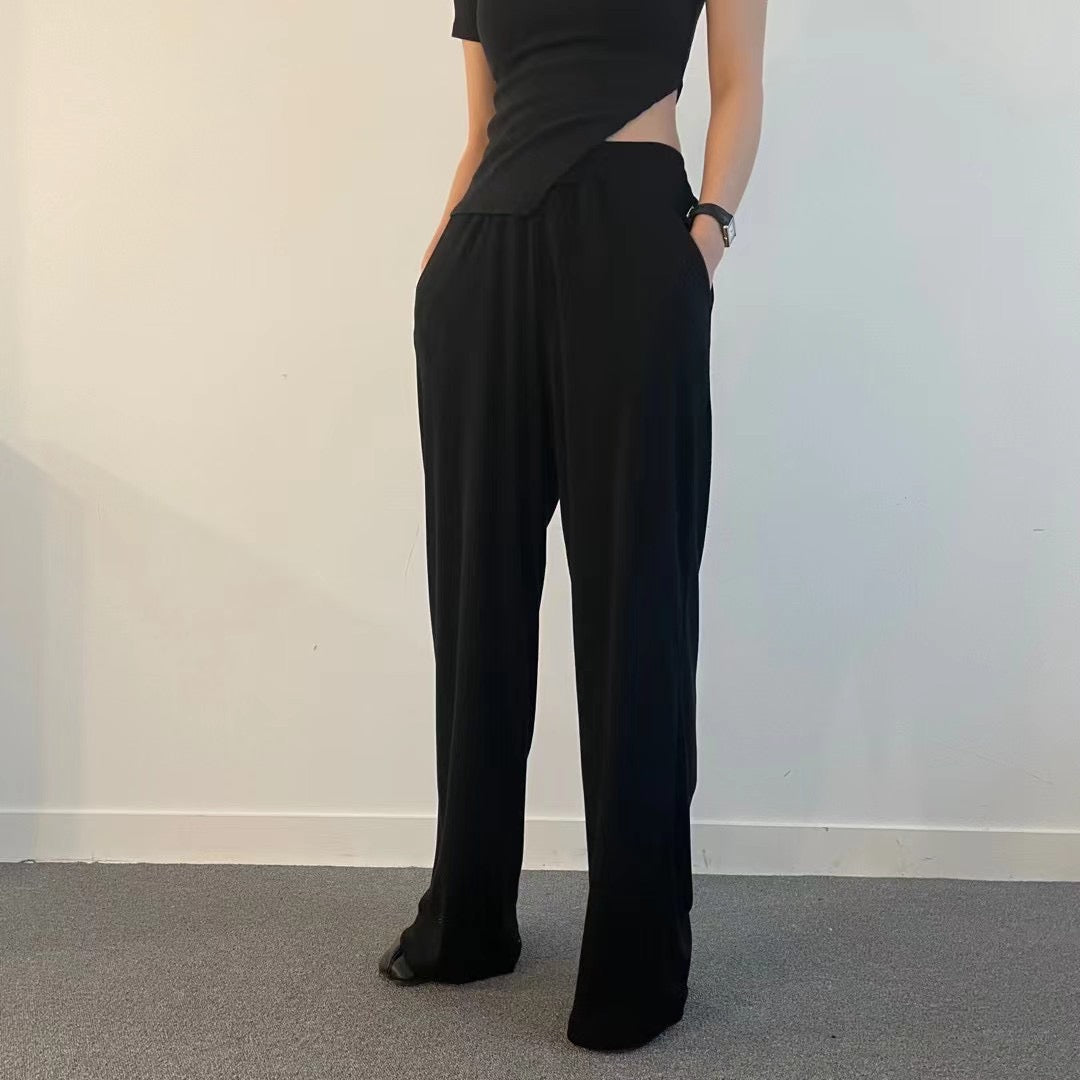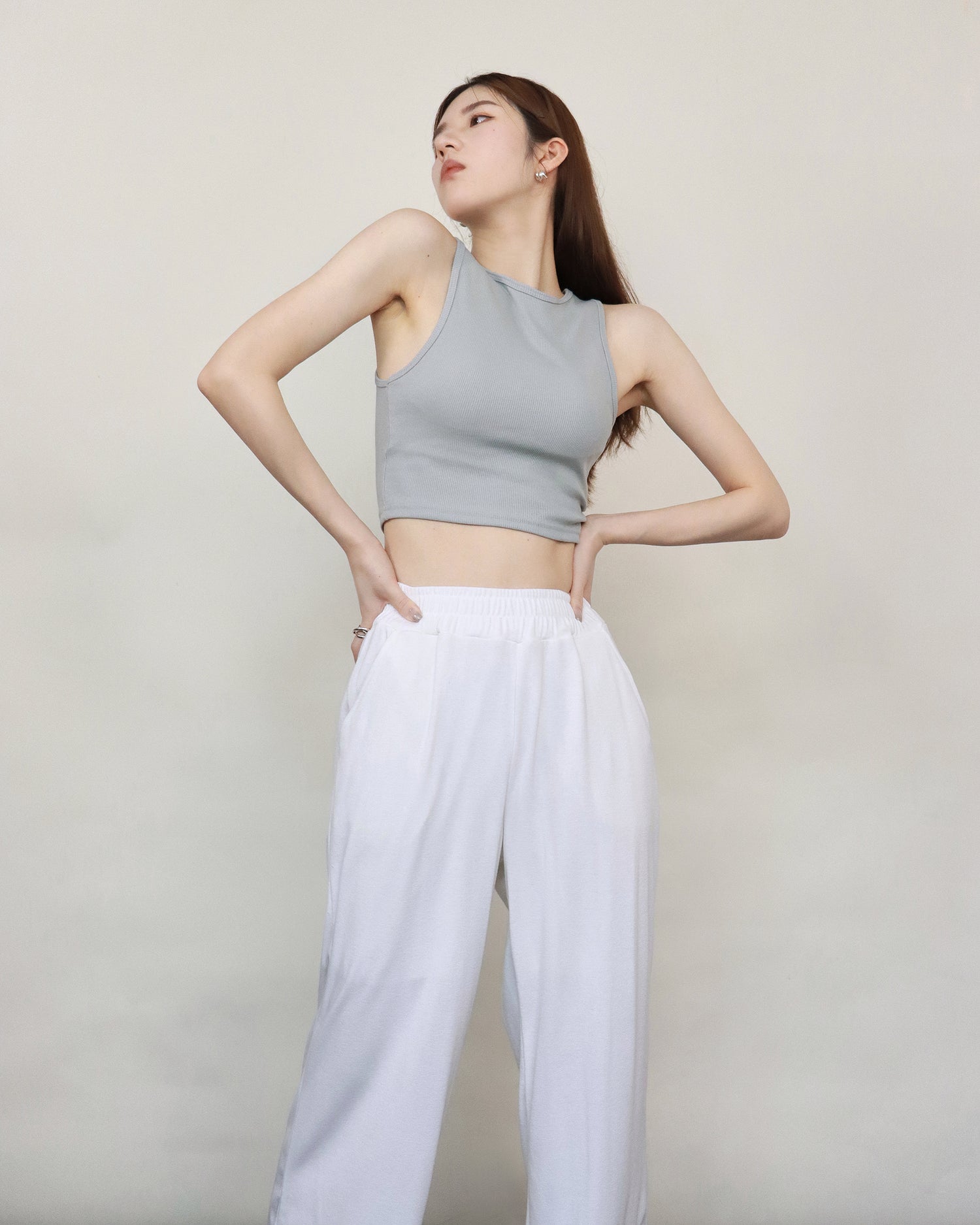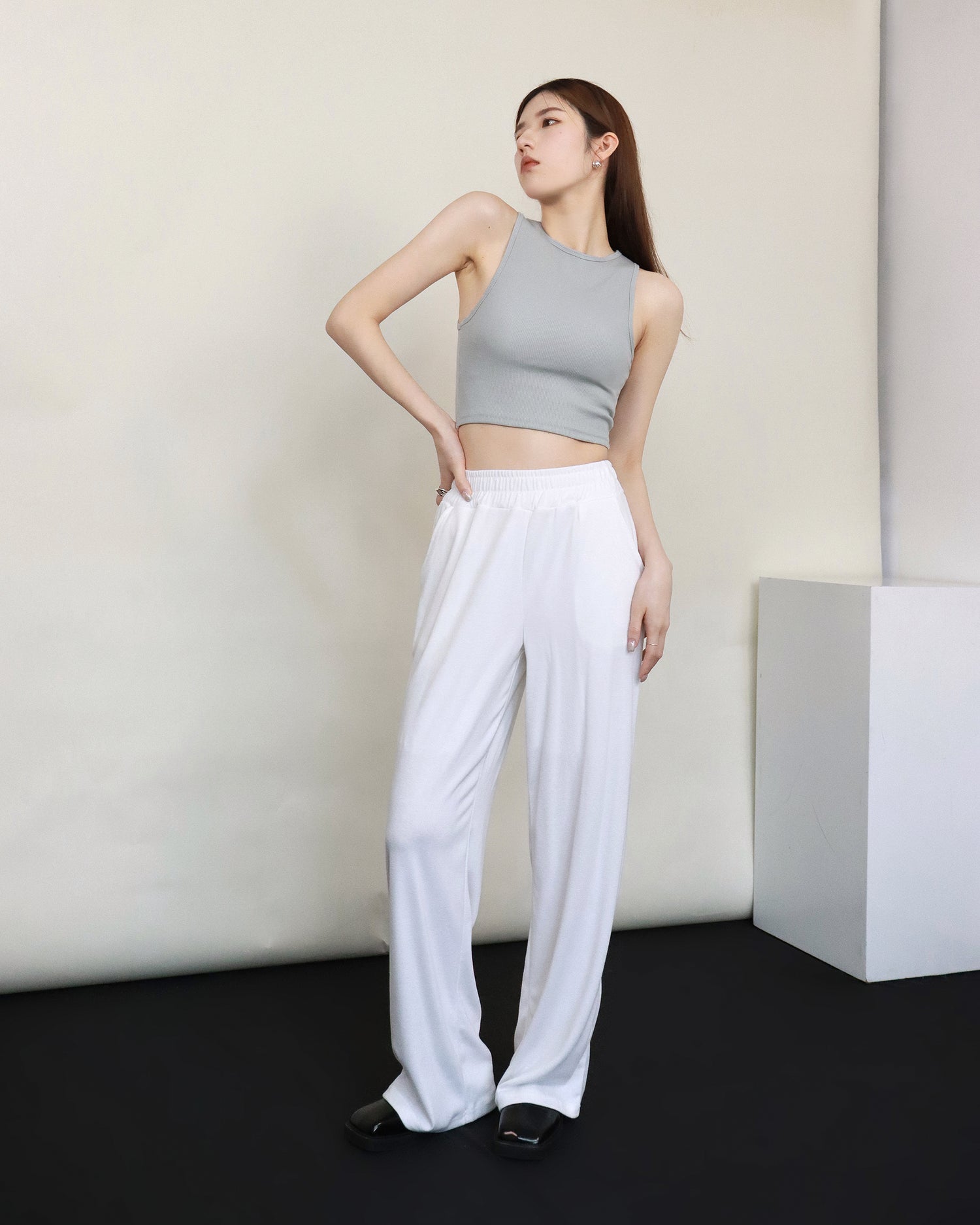 (Fitting)舒適垂感基礎長腿褲-白色
