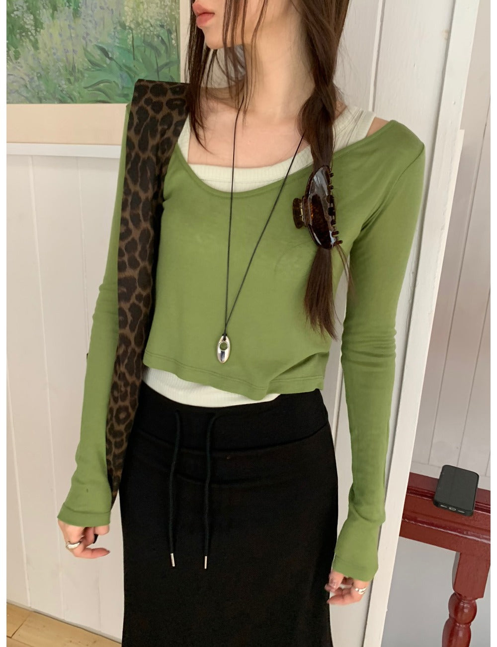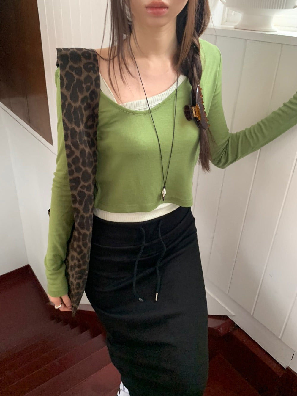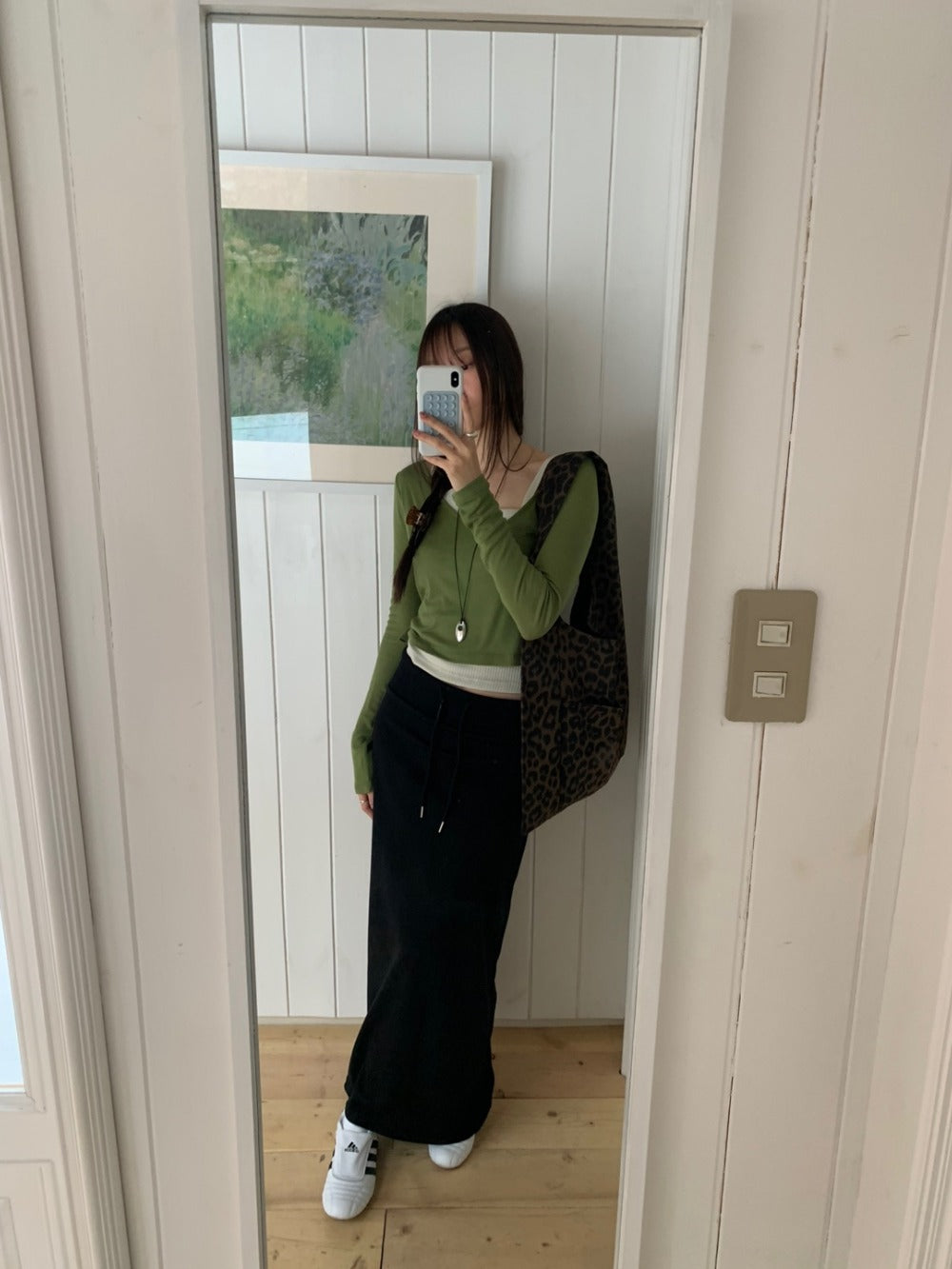 豹紋前口袋細節單肩袋