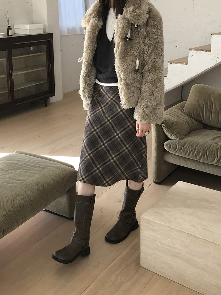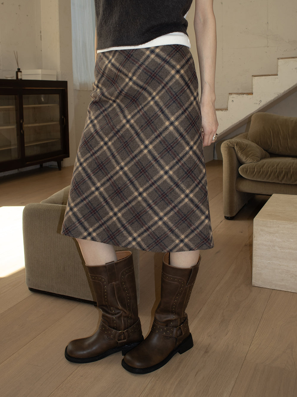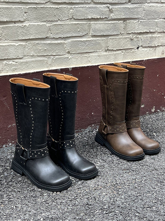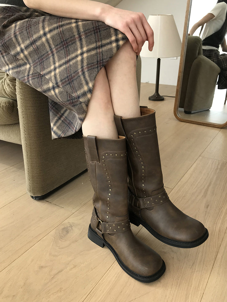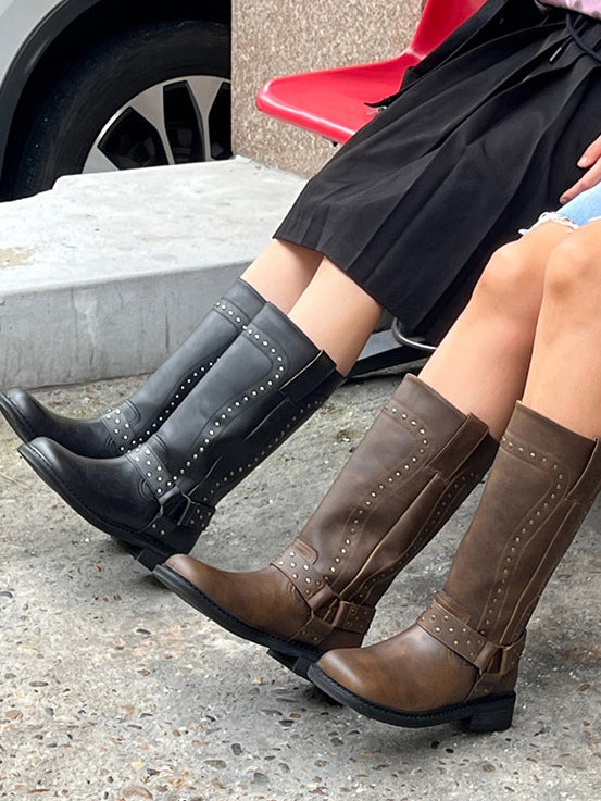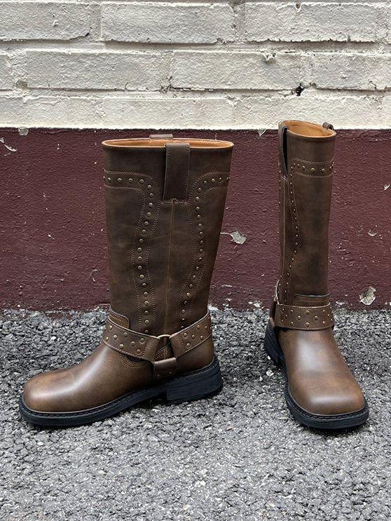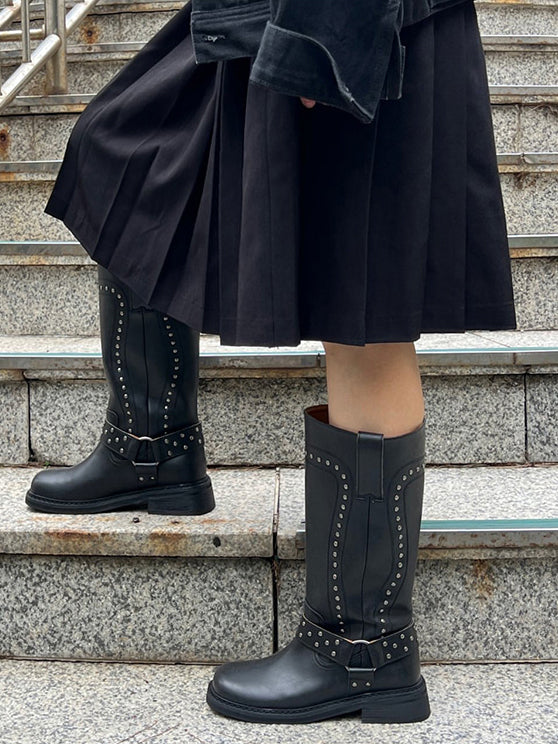 鉚釘側扣方頭中筒靴