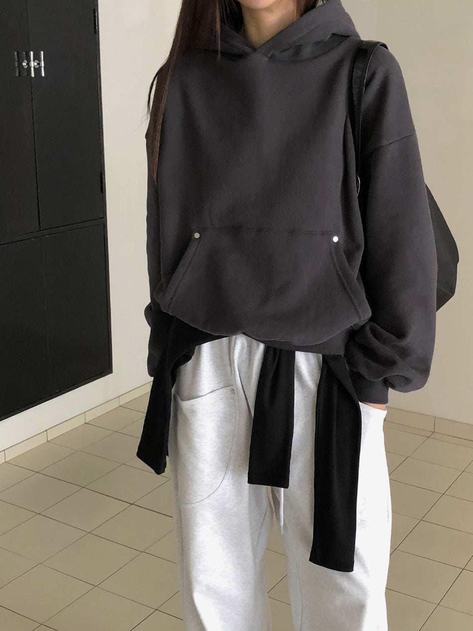 鉚釘細節基礎連帽衛衣