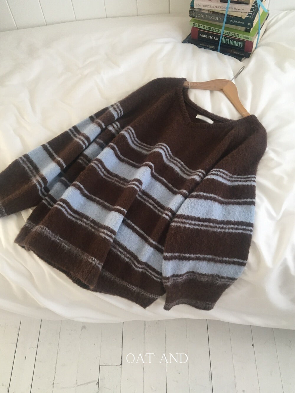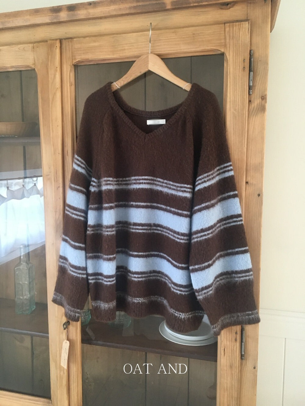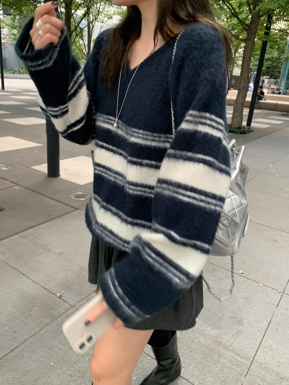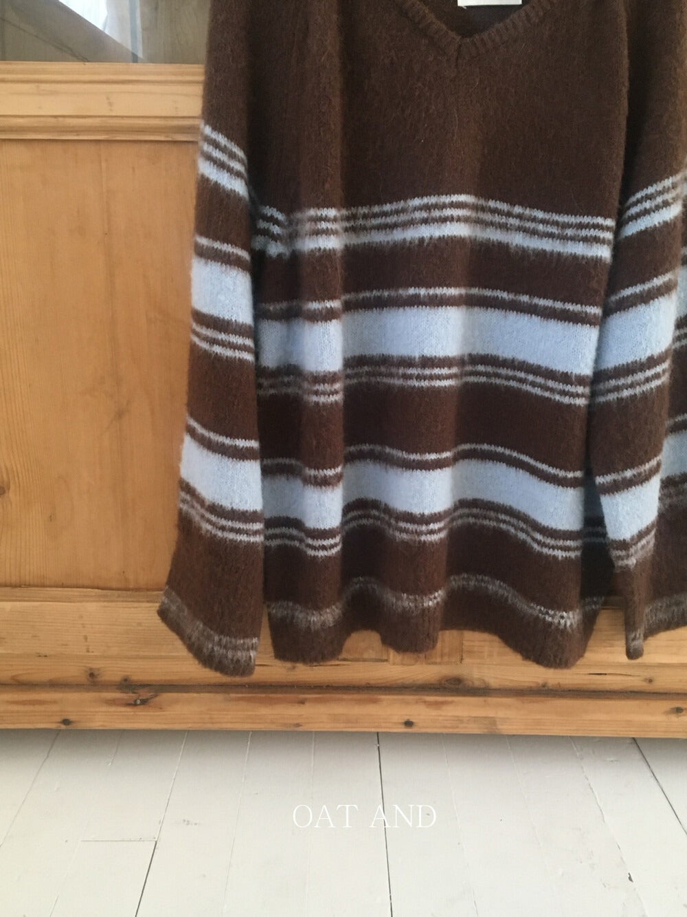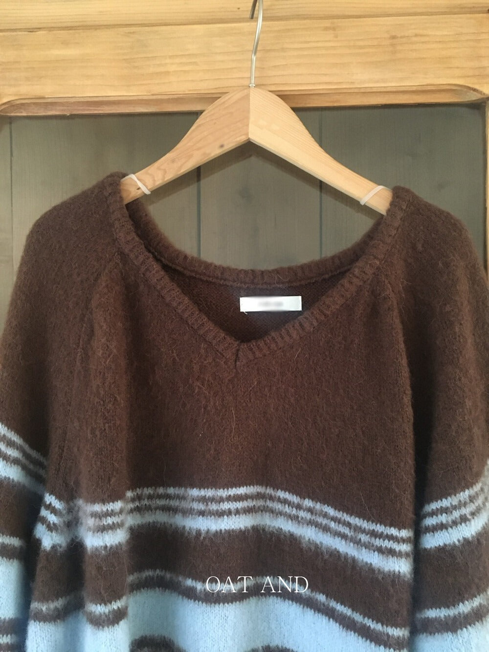 V領撞色條紋細節毛衣
