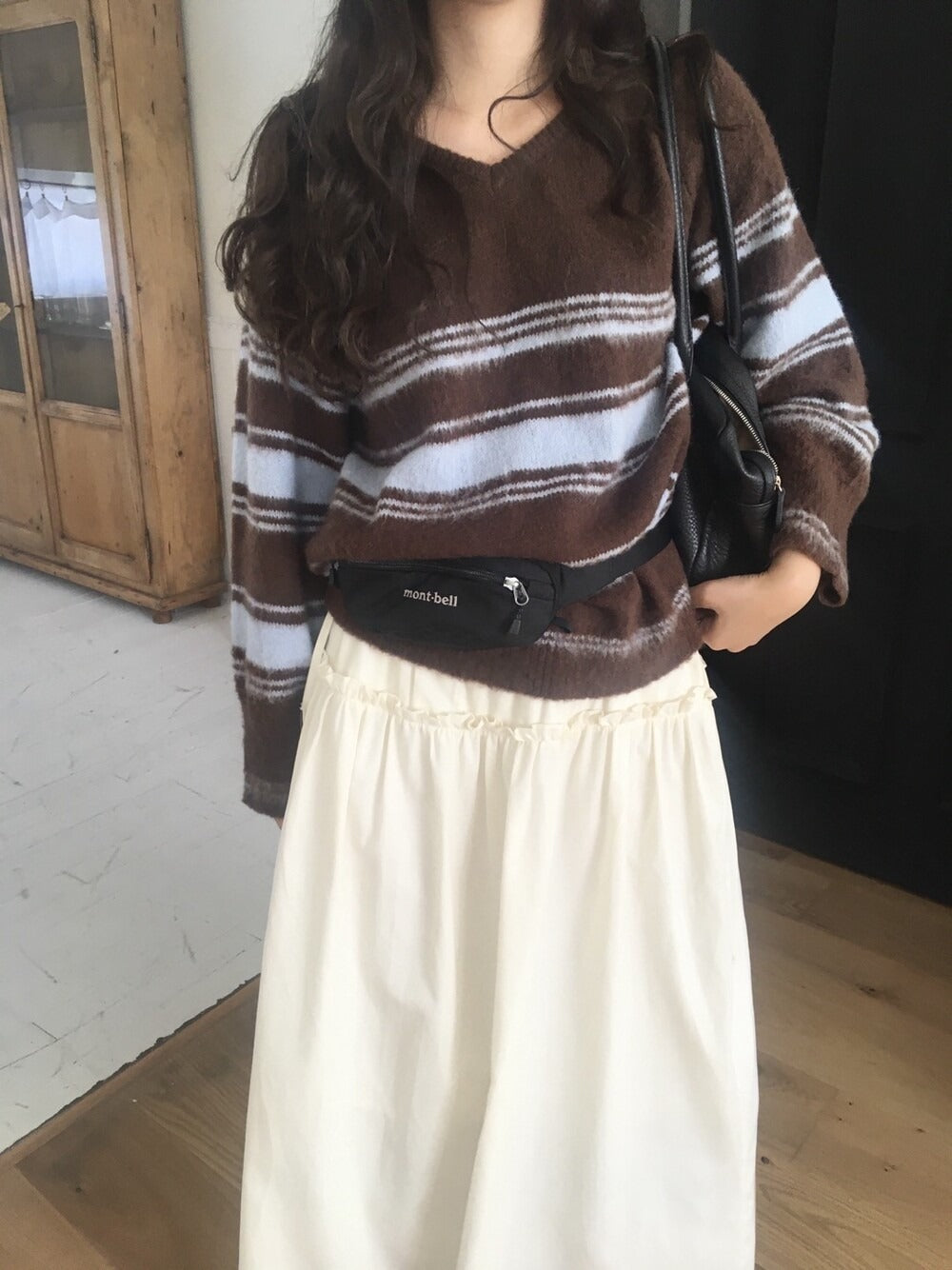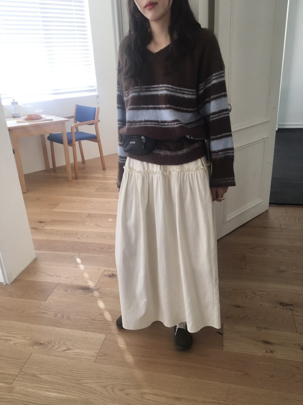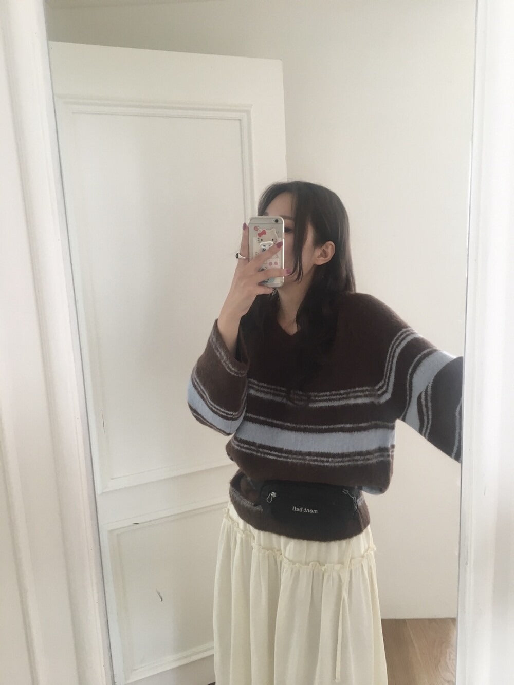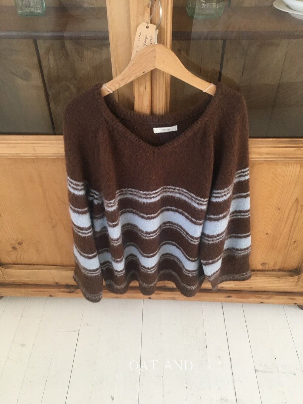 V領撞色條紋細節毛衣