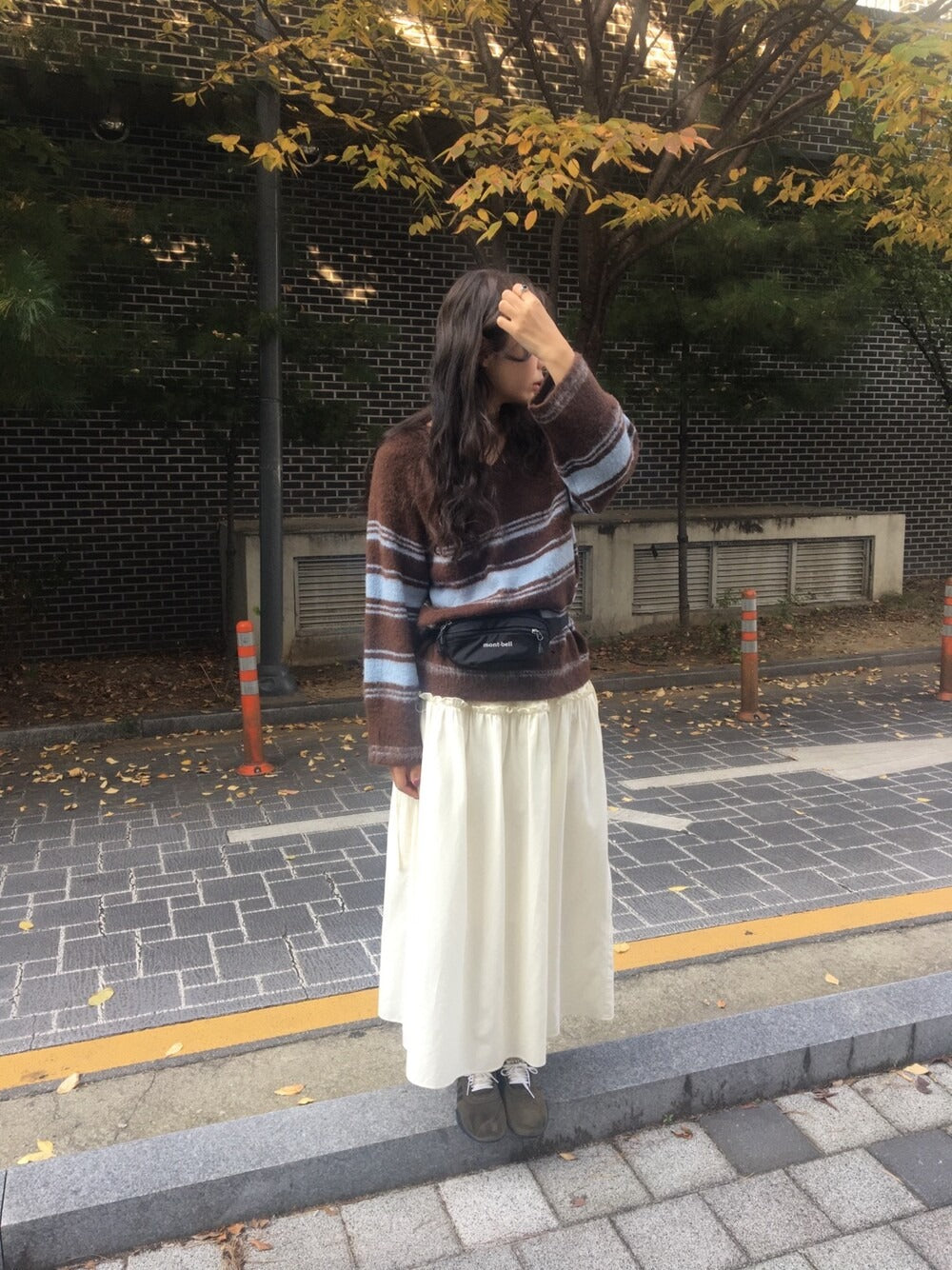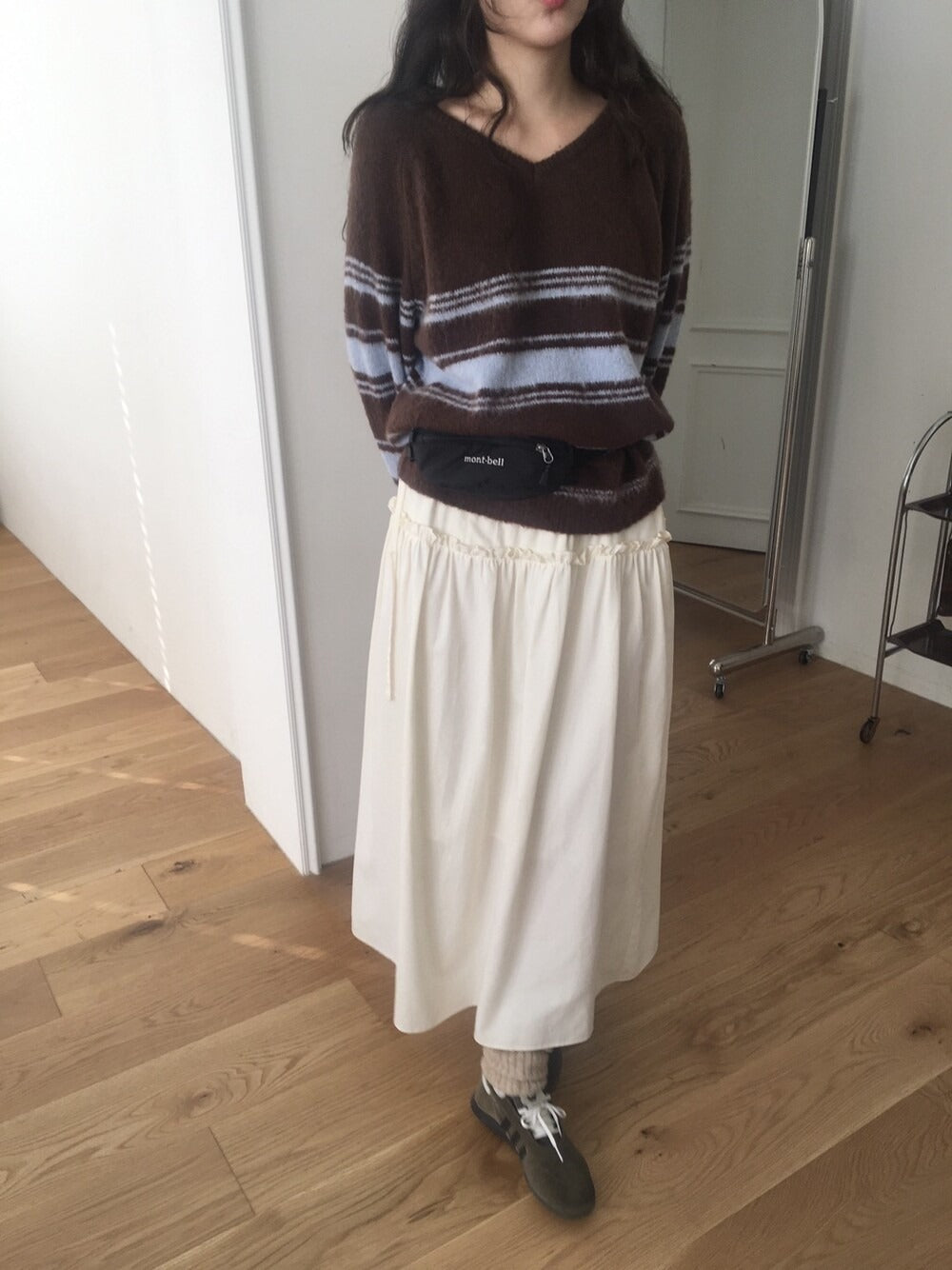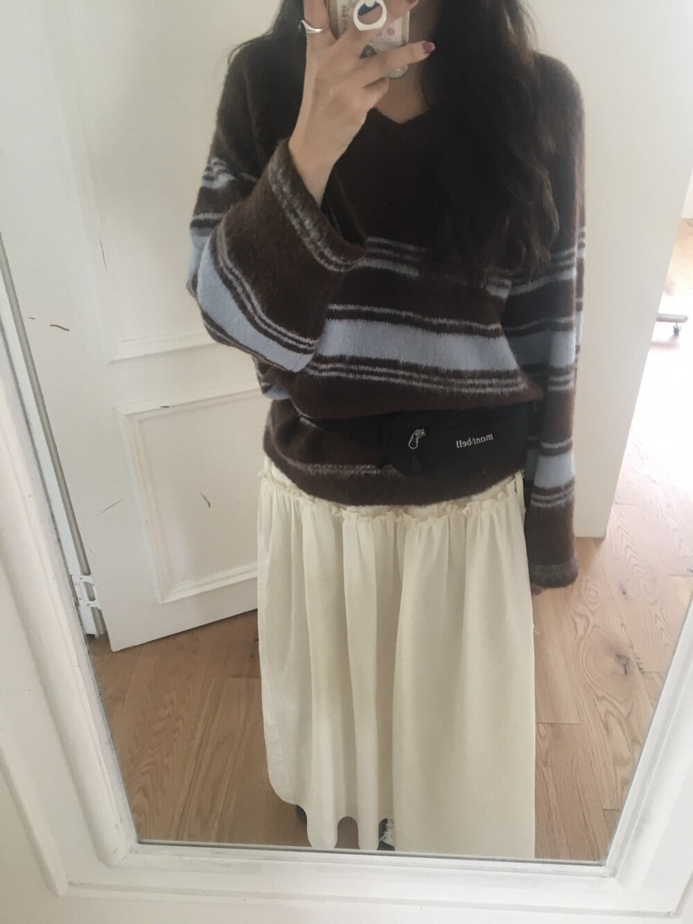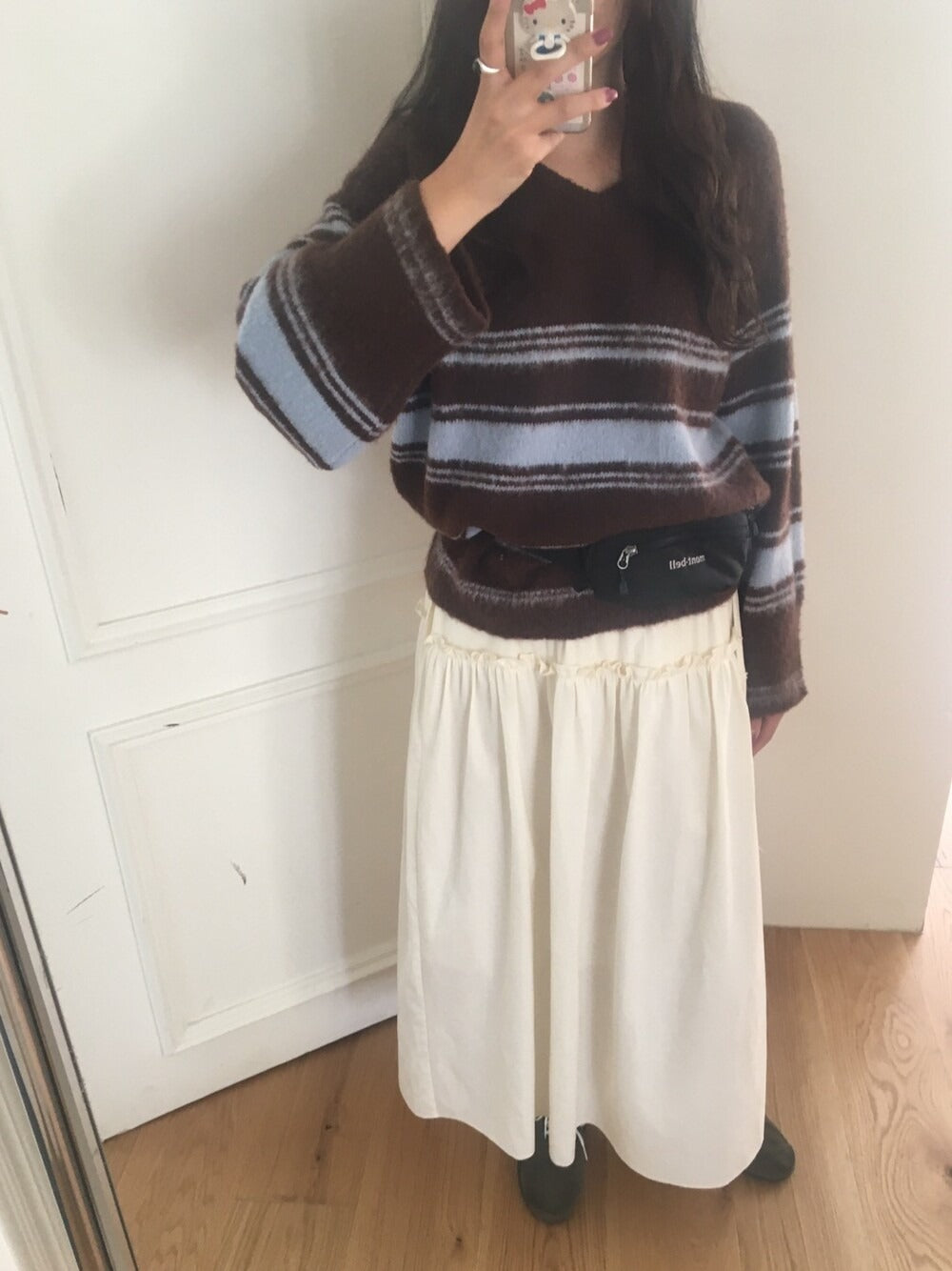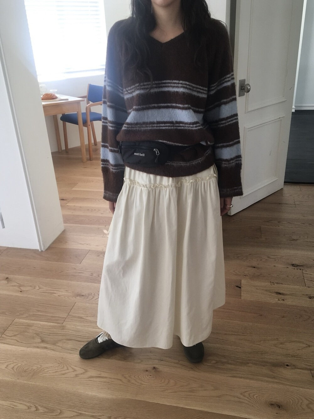 V領撞色條紋細節毛衣