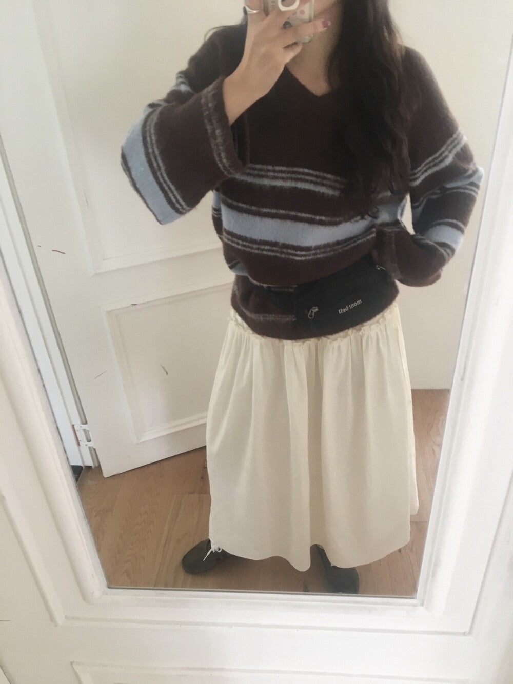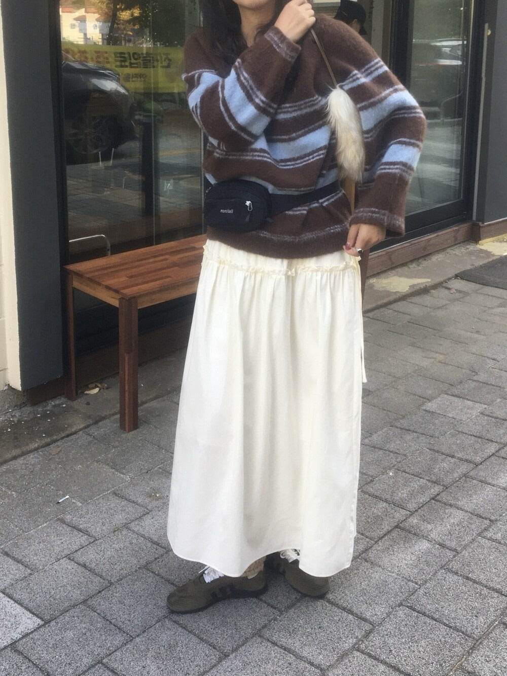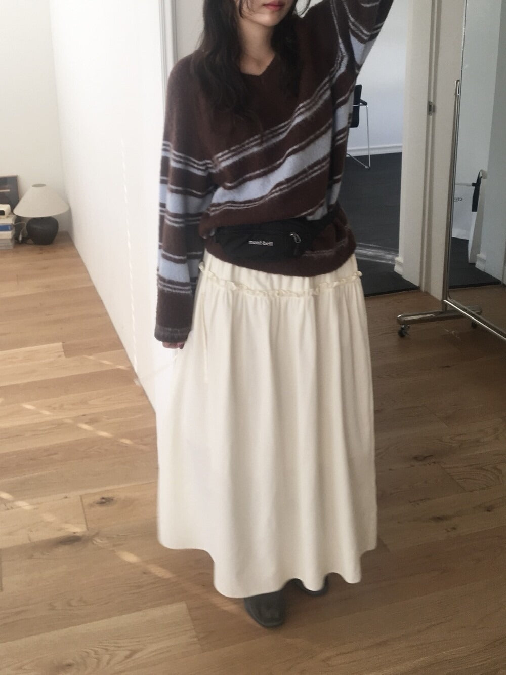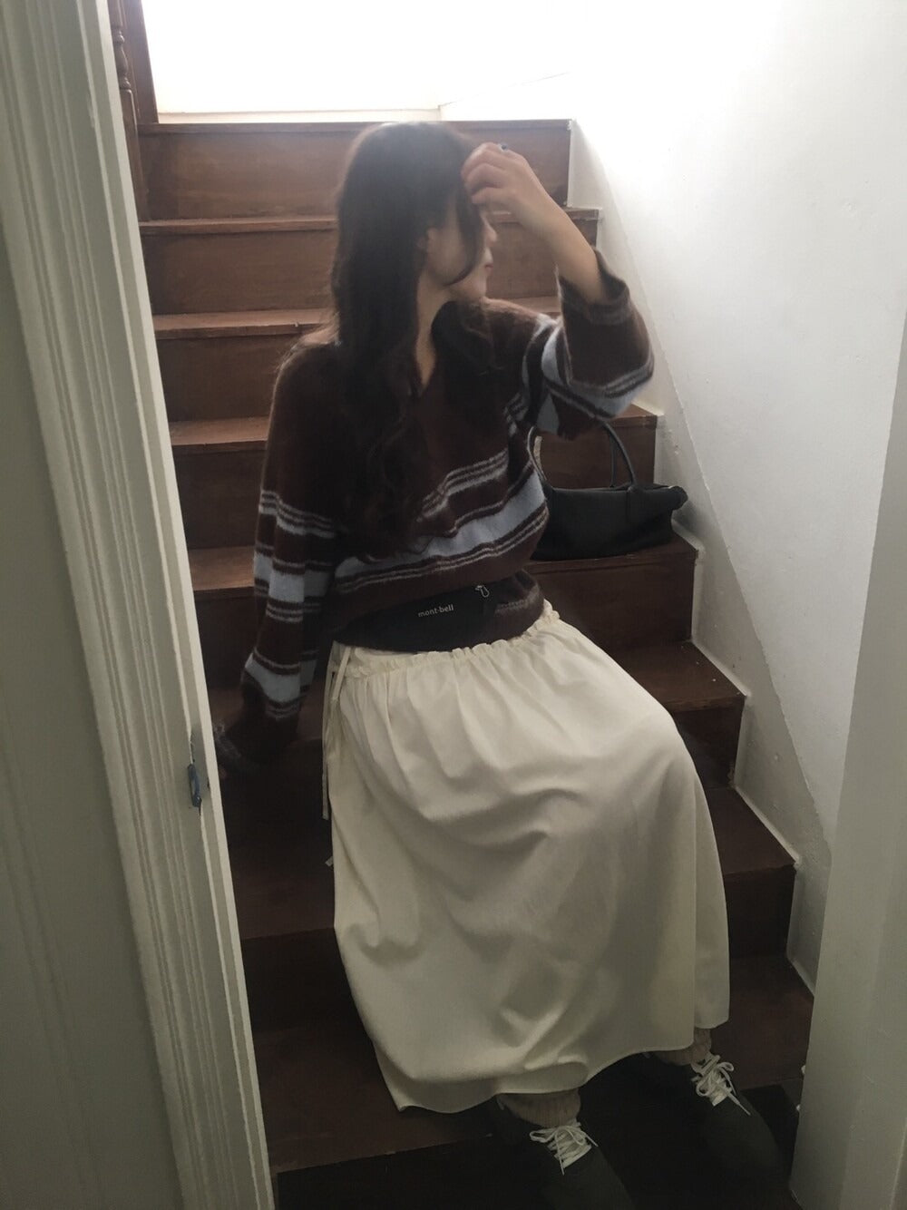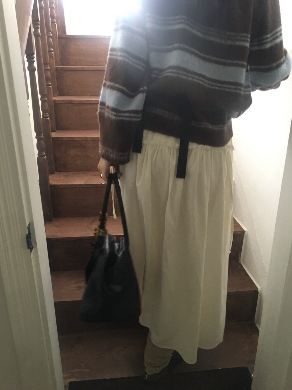 V領撞色條紋細節毛衣