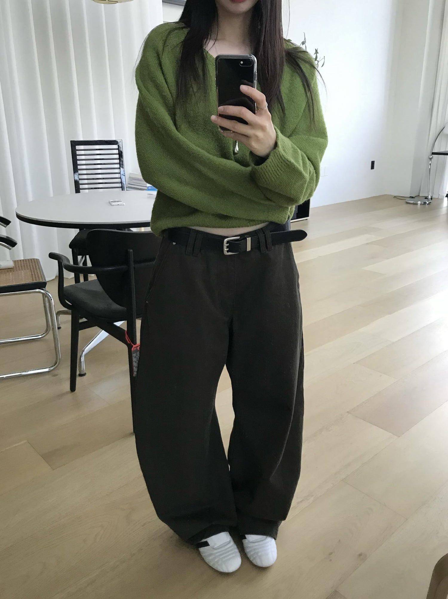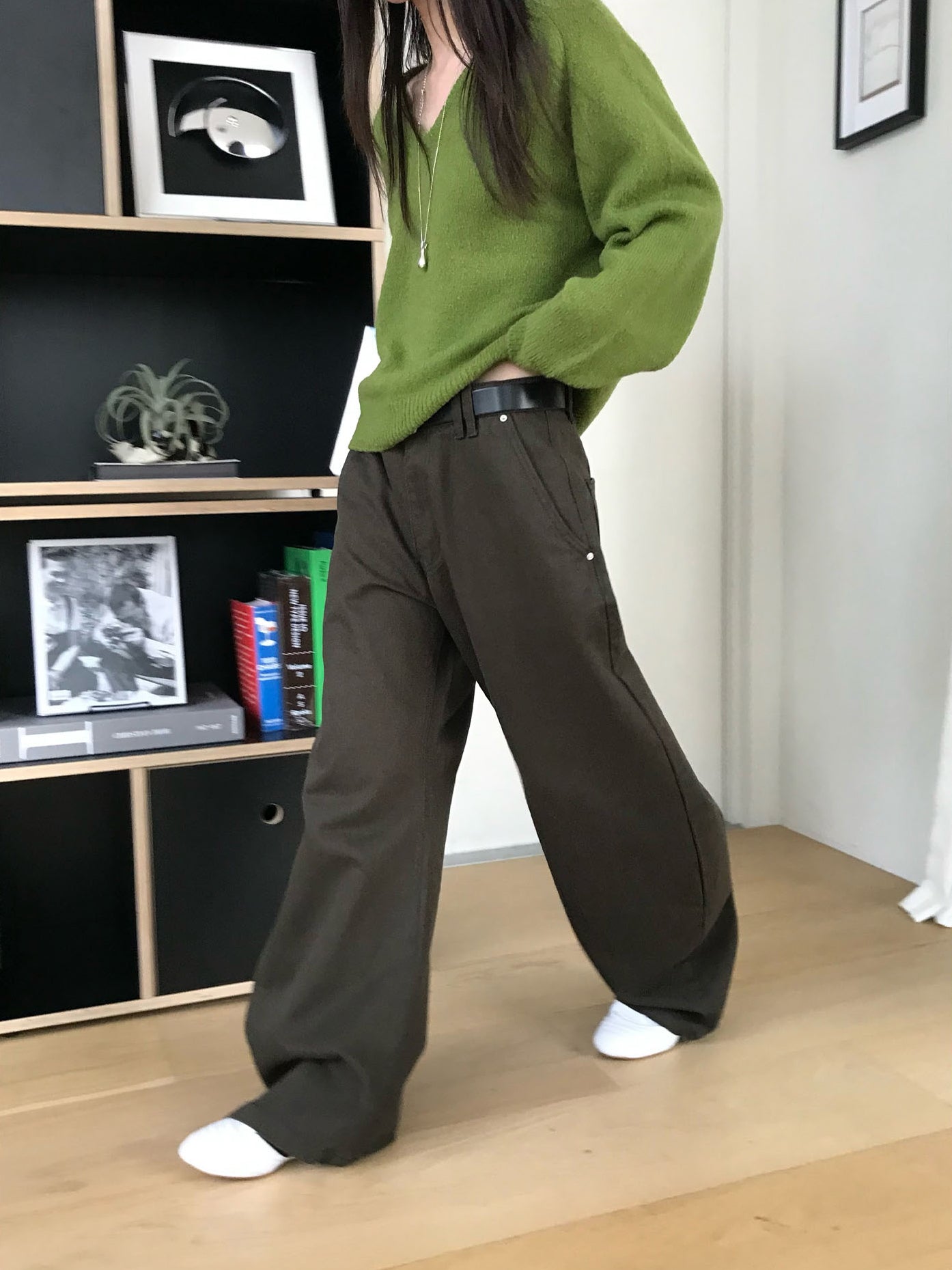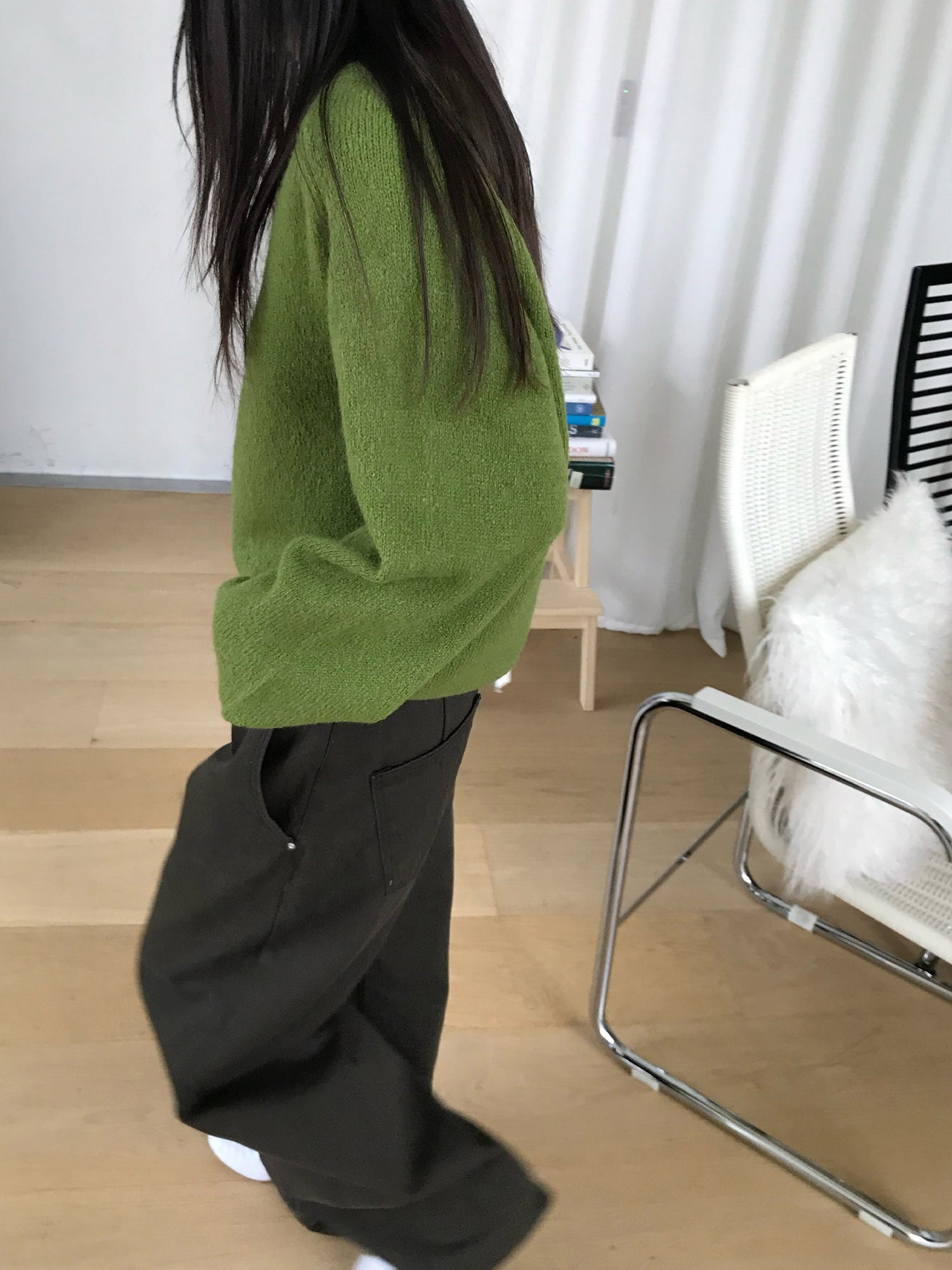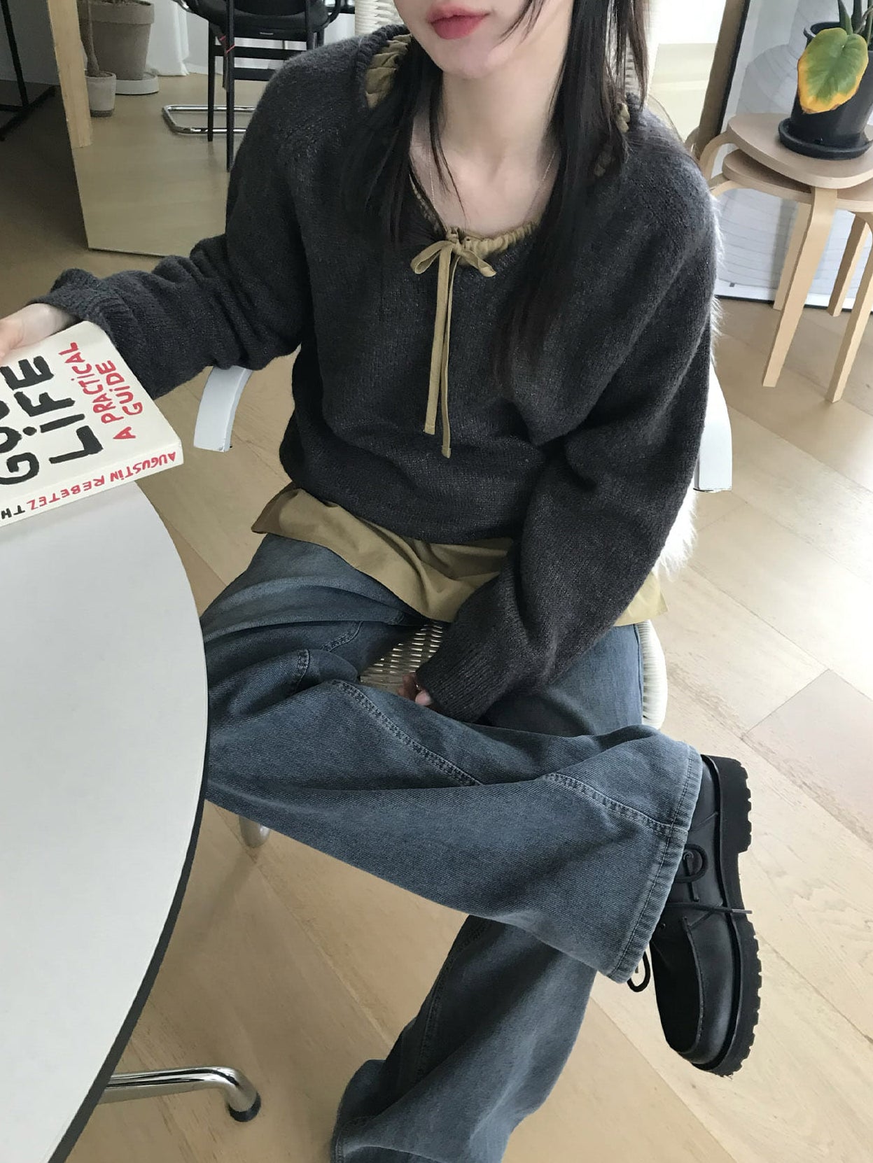 V領美肩線細節針織毛衣