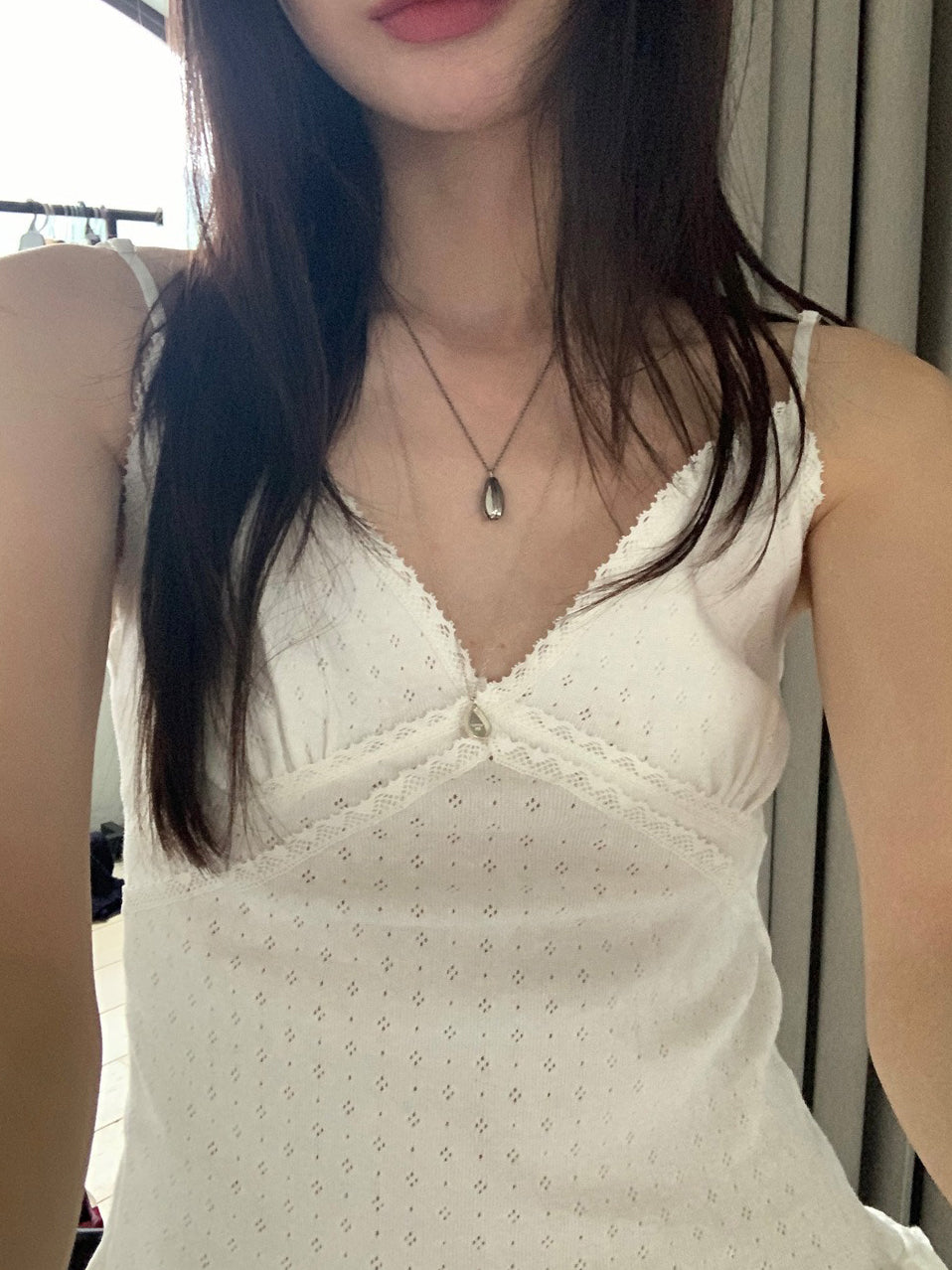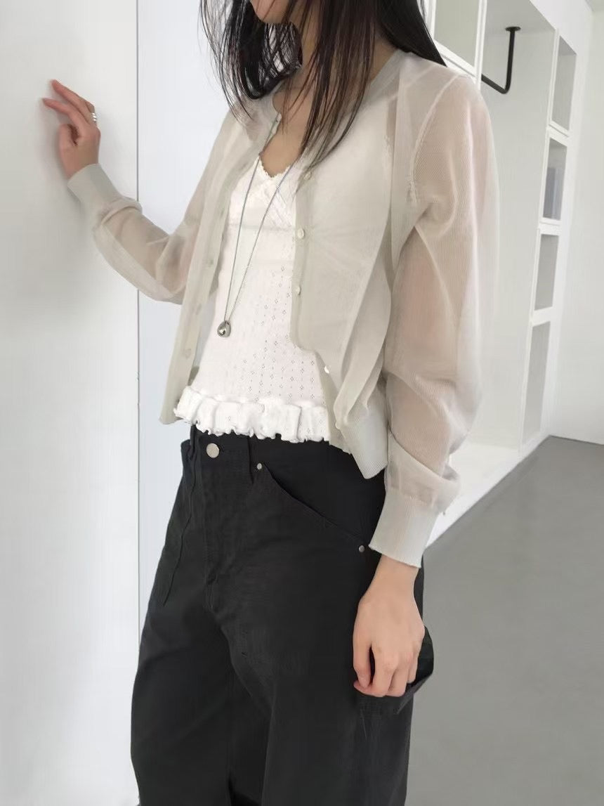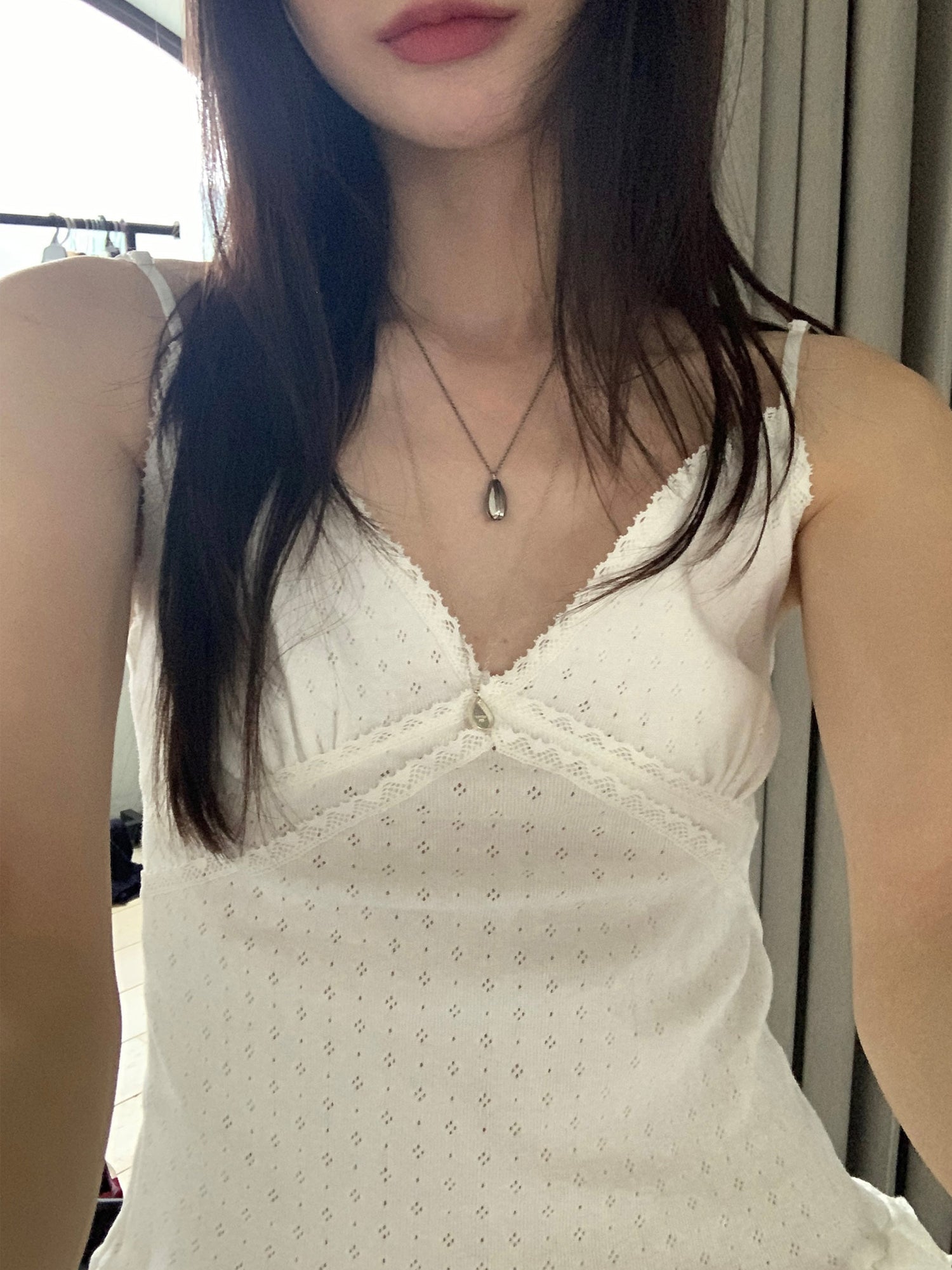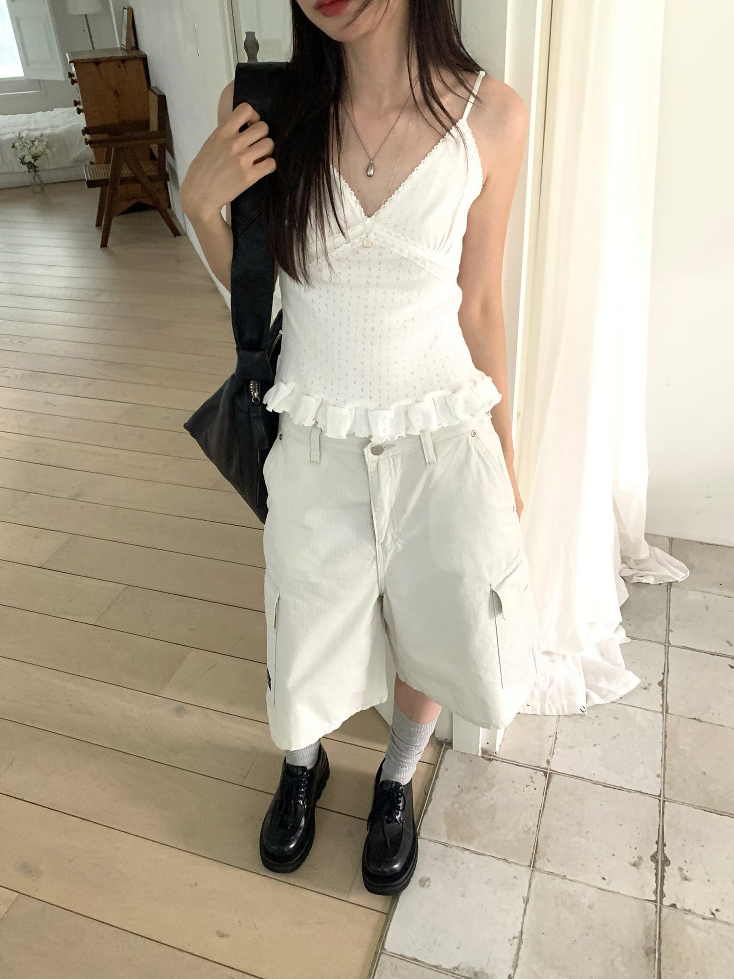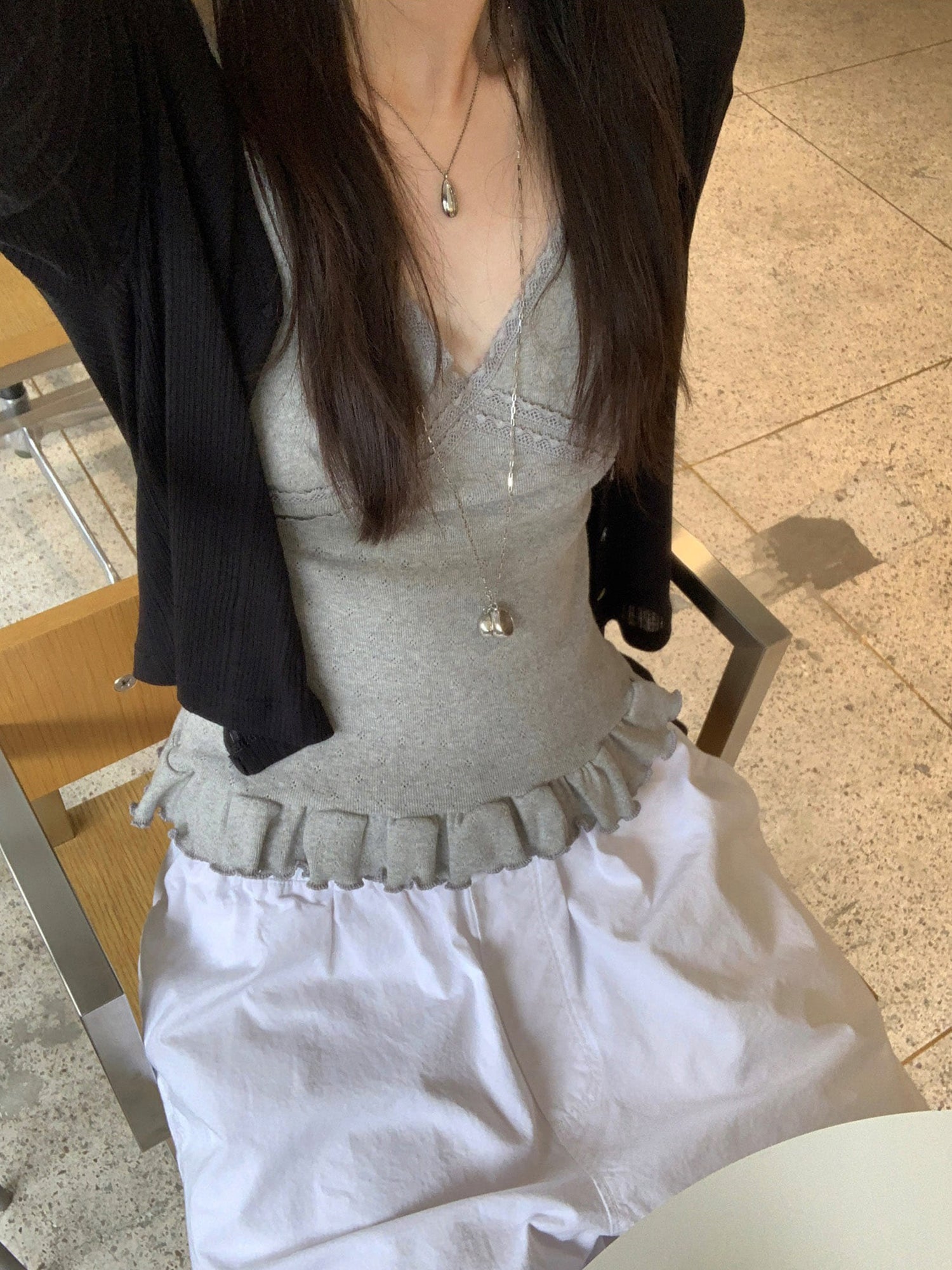 壓花蕾絲胸線細節荷葉邊背心