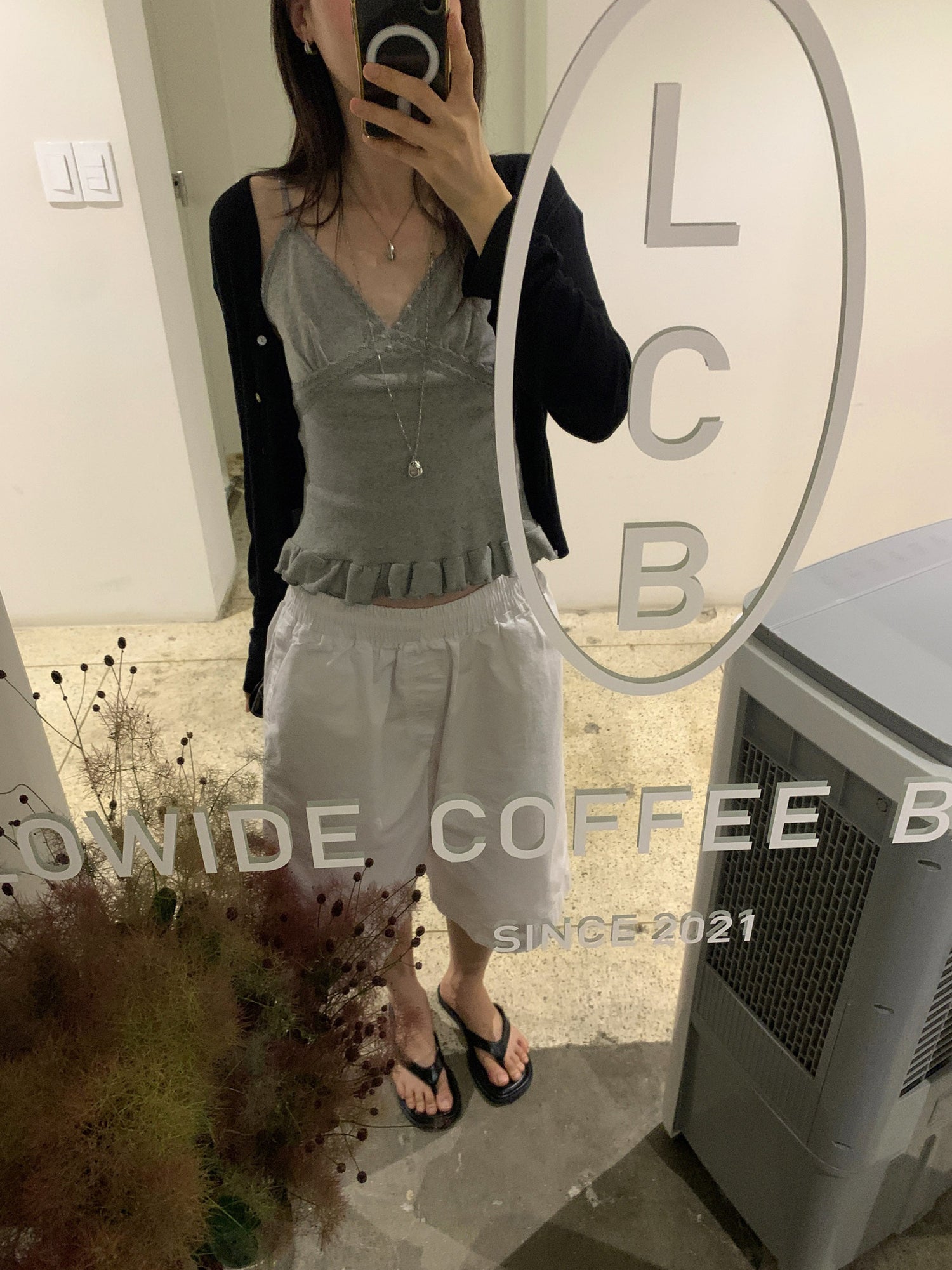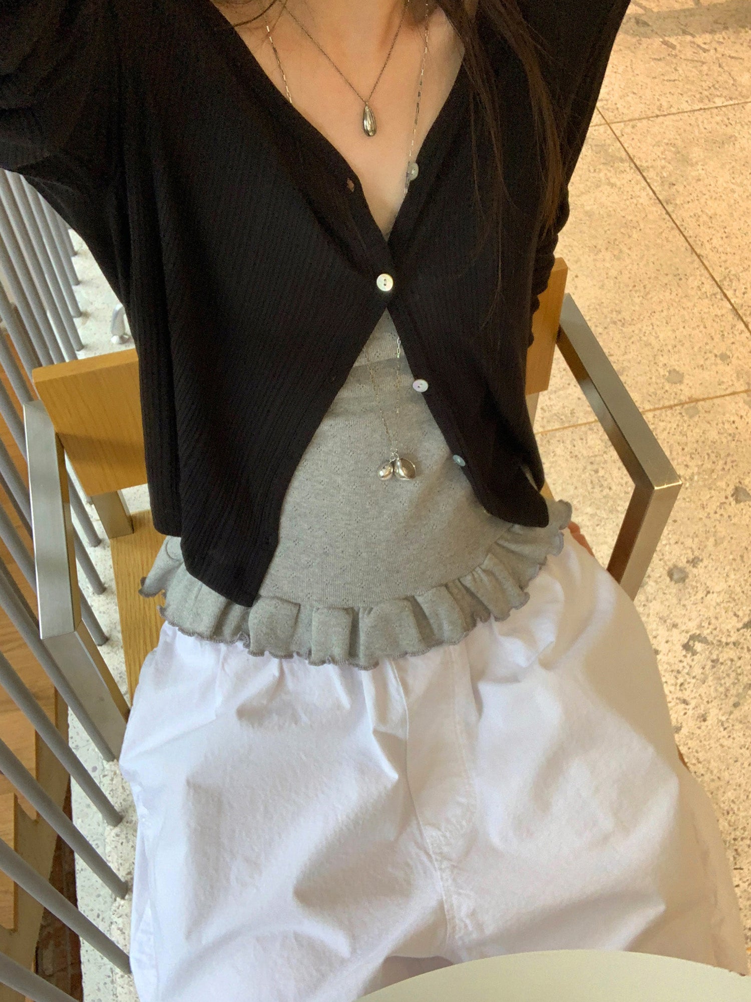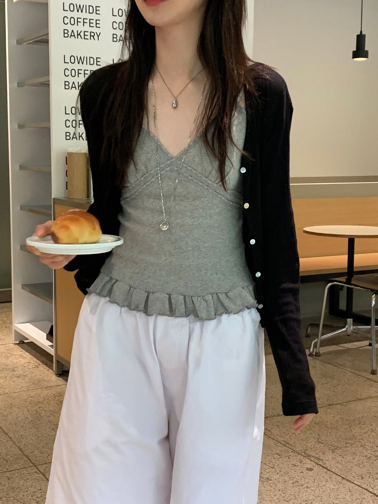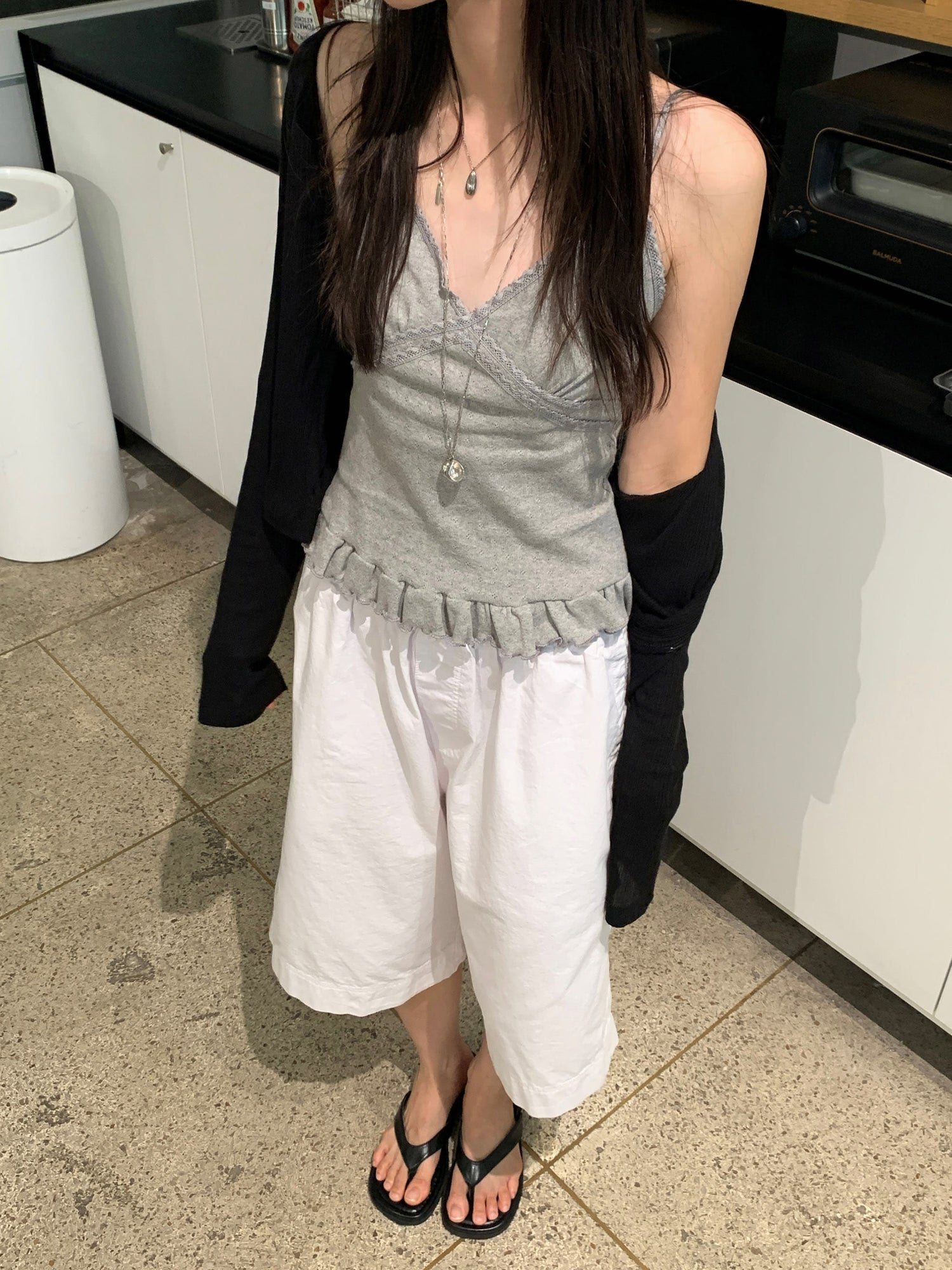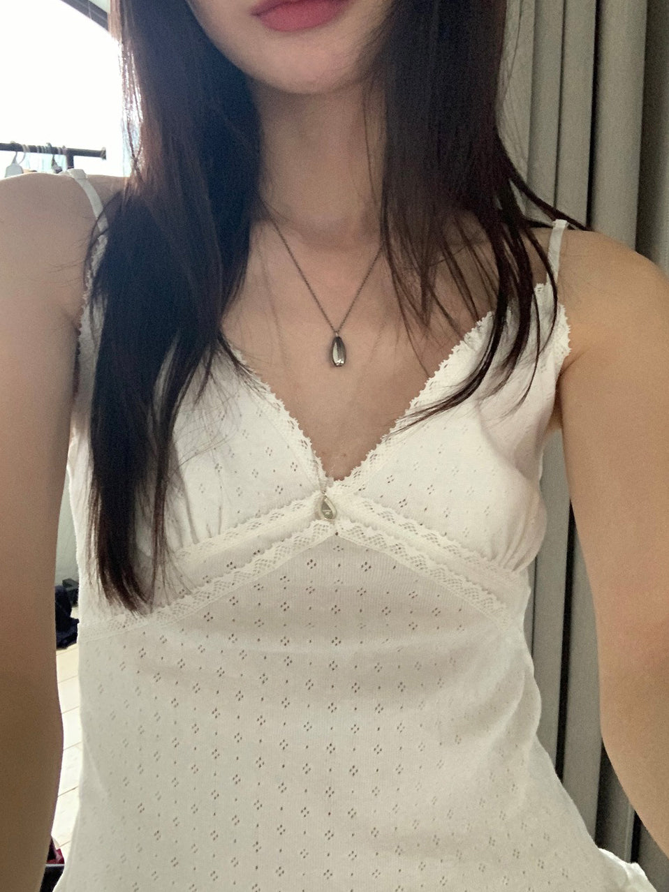 壓花蕾絲胸線細節荷葉邊背心