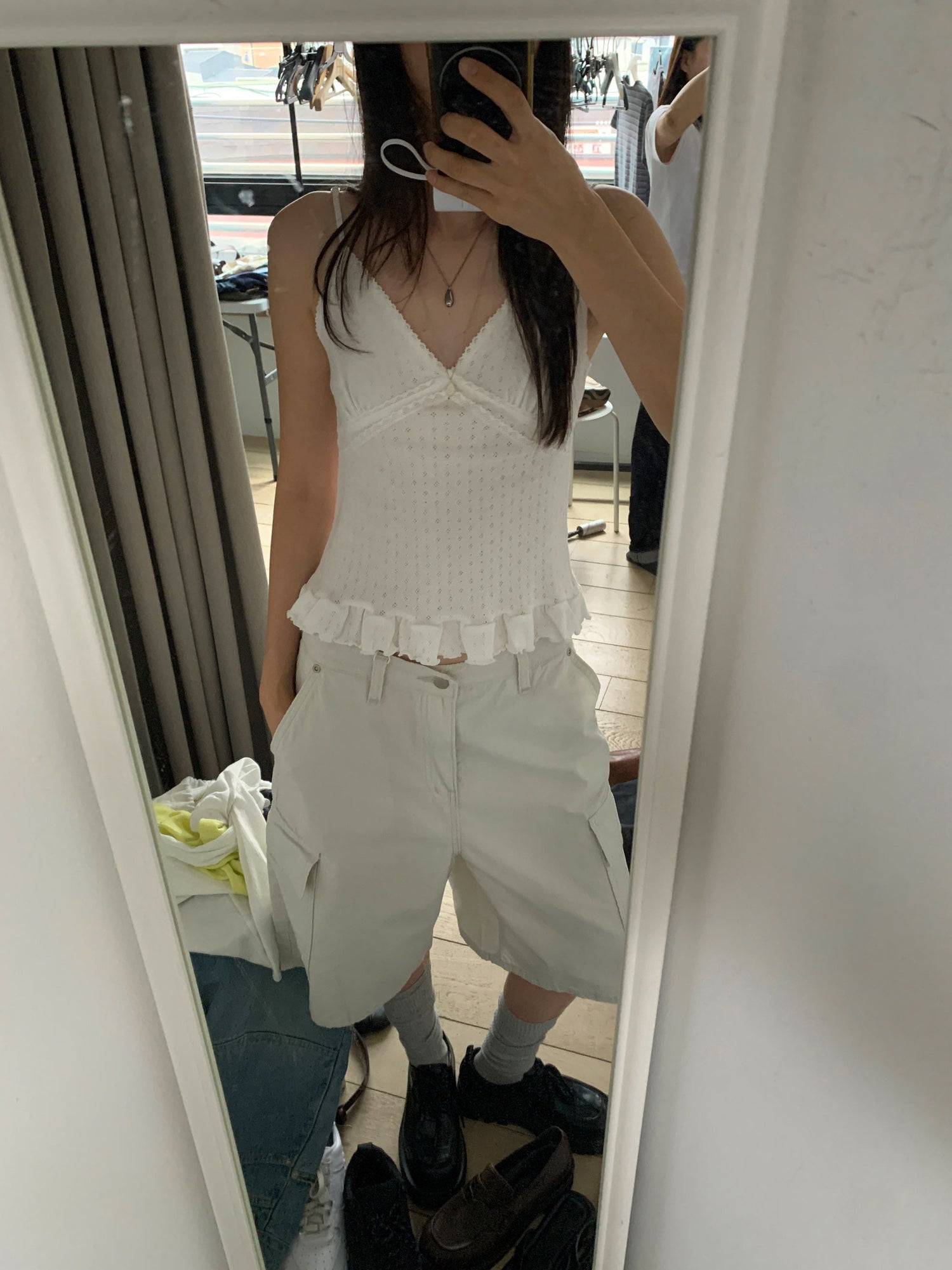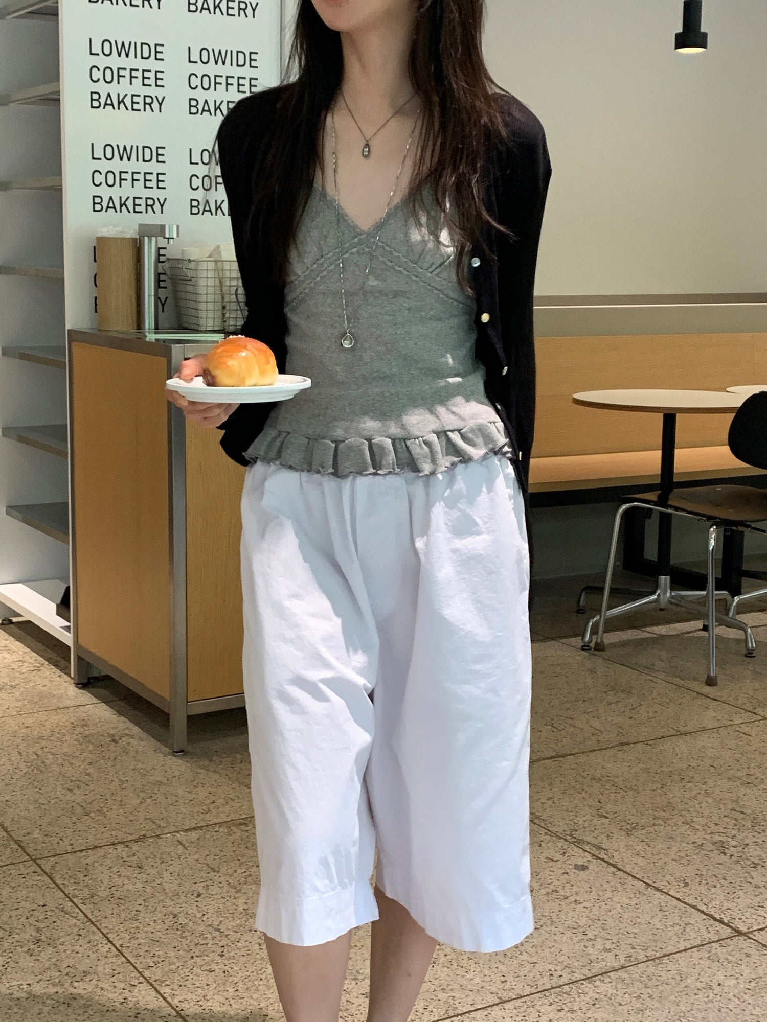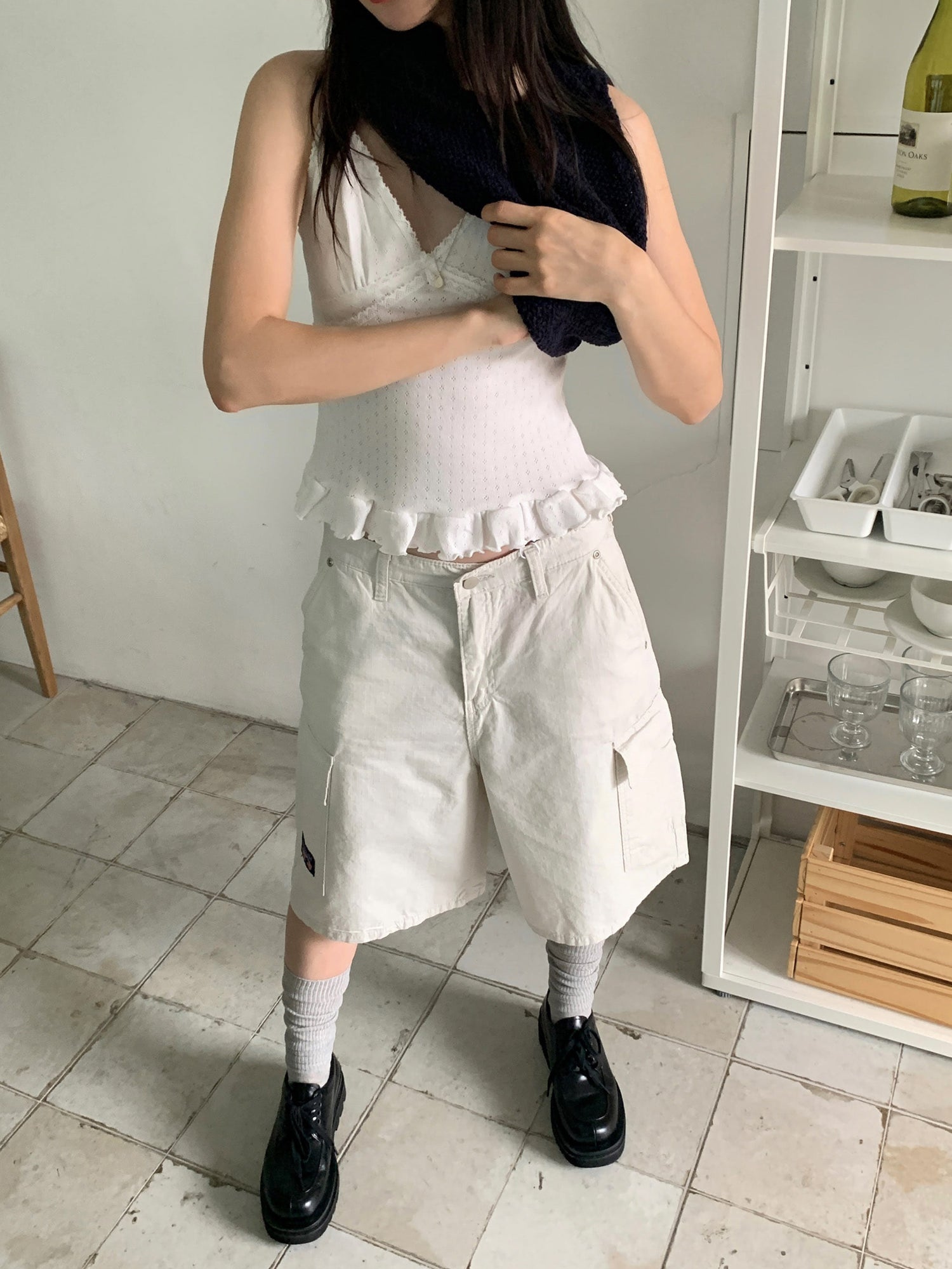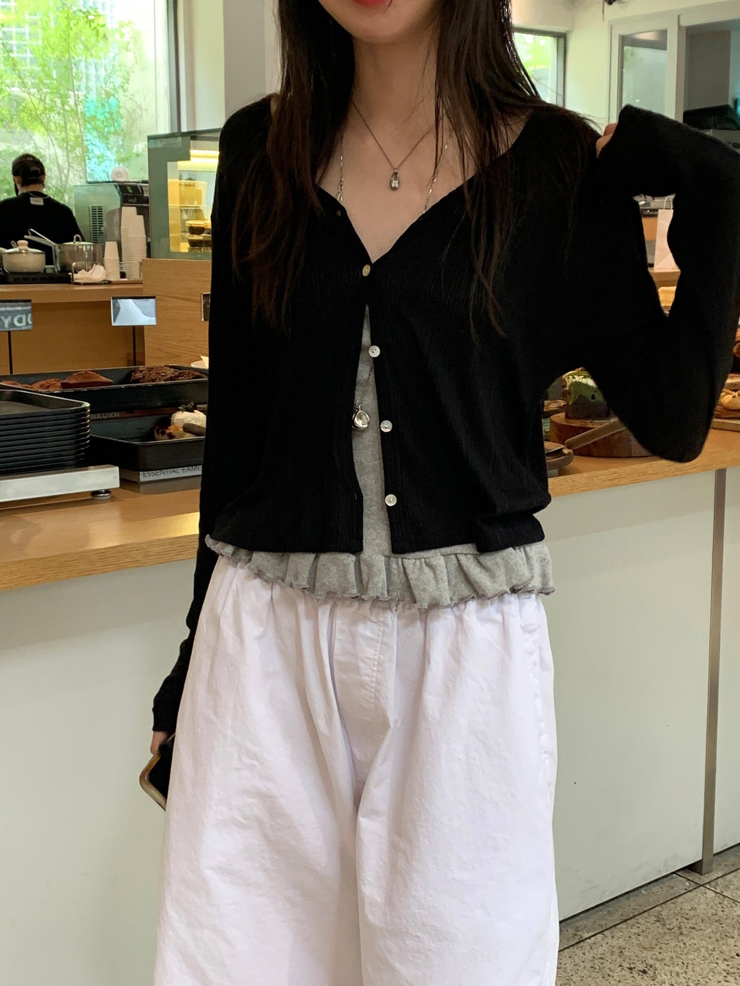 壓花蕾絲胸線細節荷葉邊背心