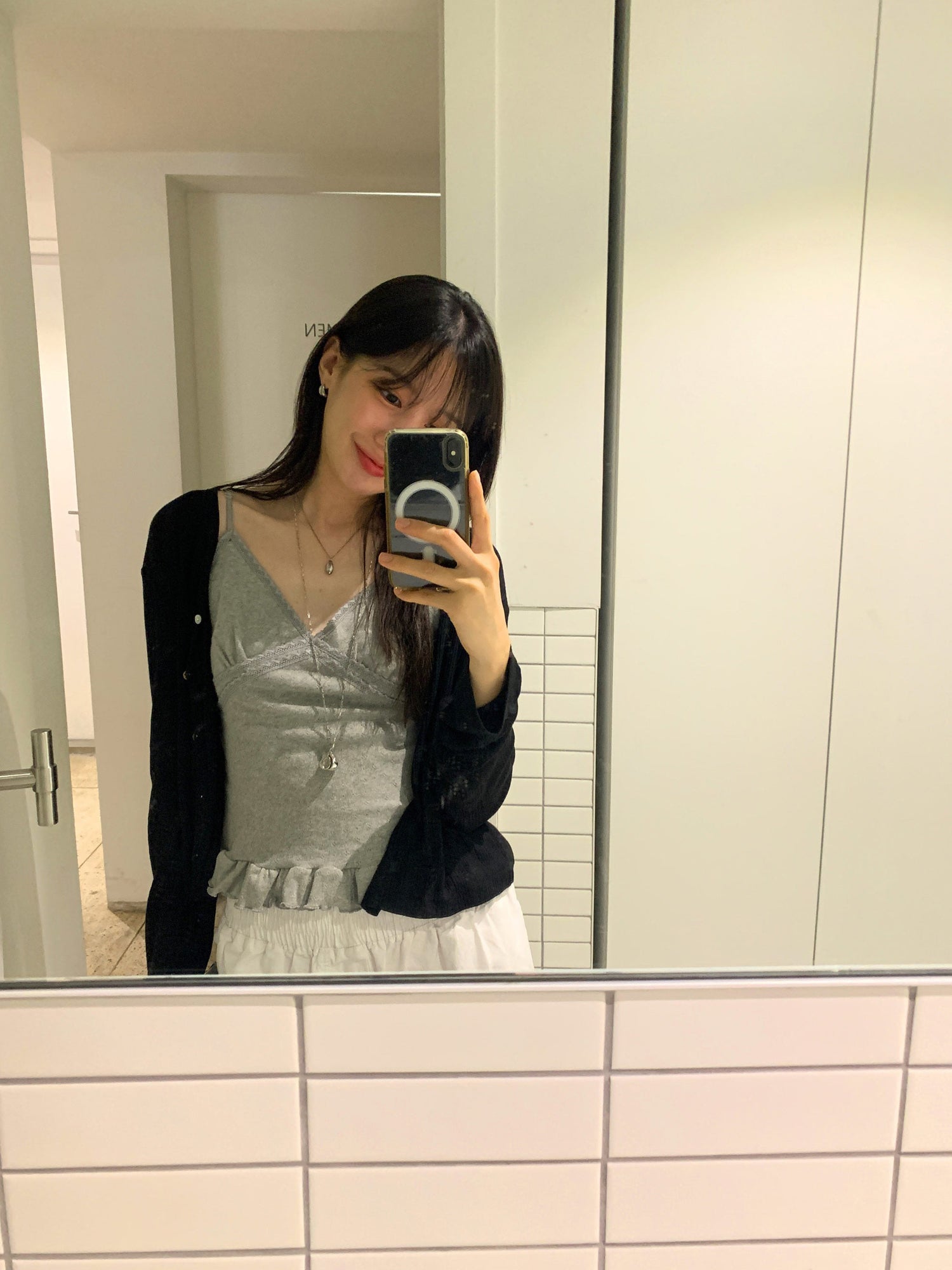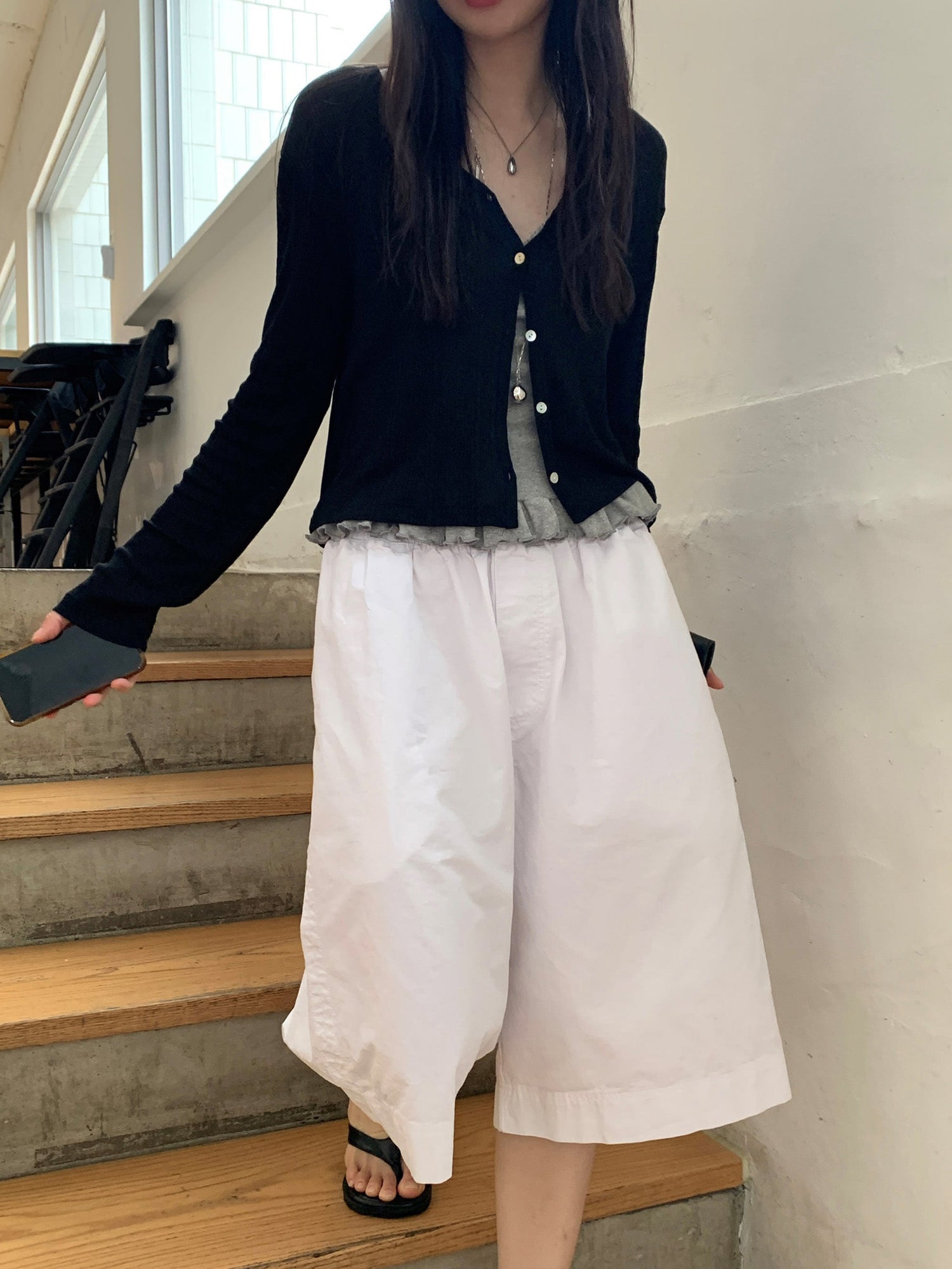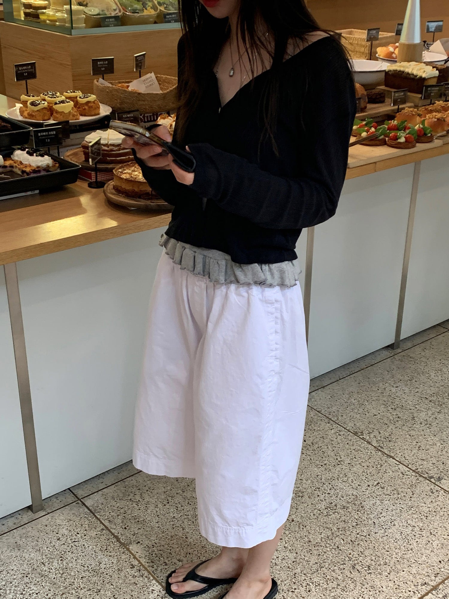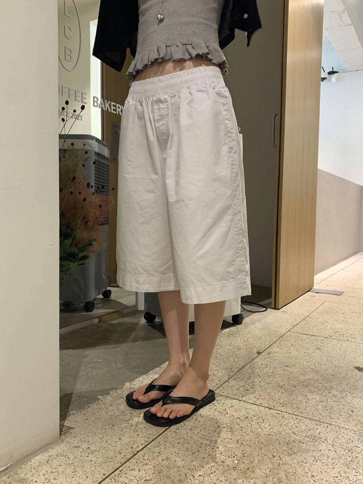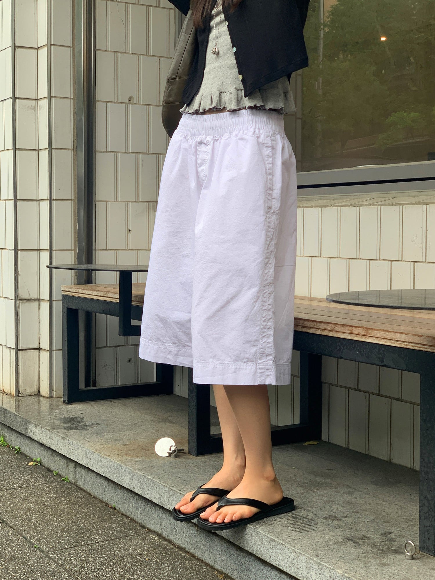 壓花蕾絲胸線細節荷葉邊背心