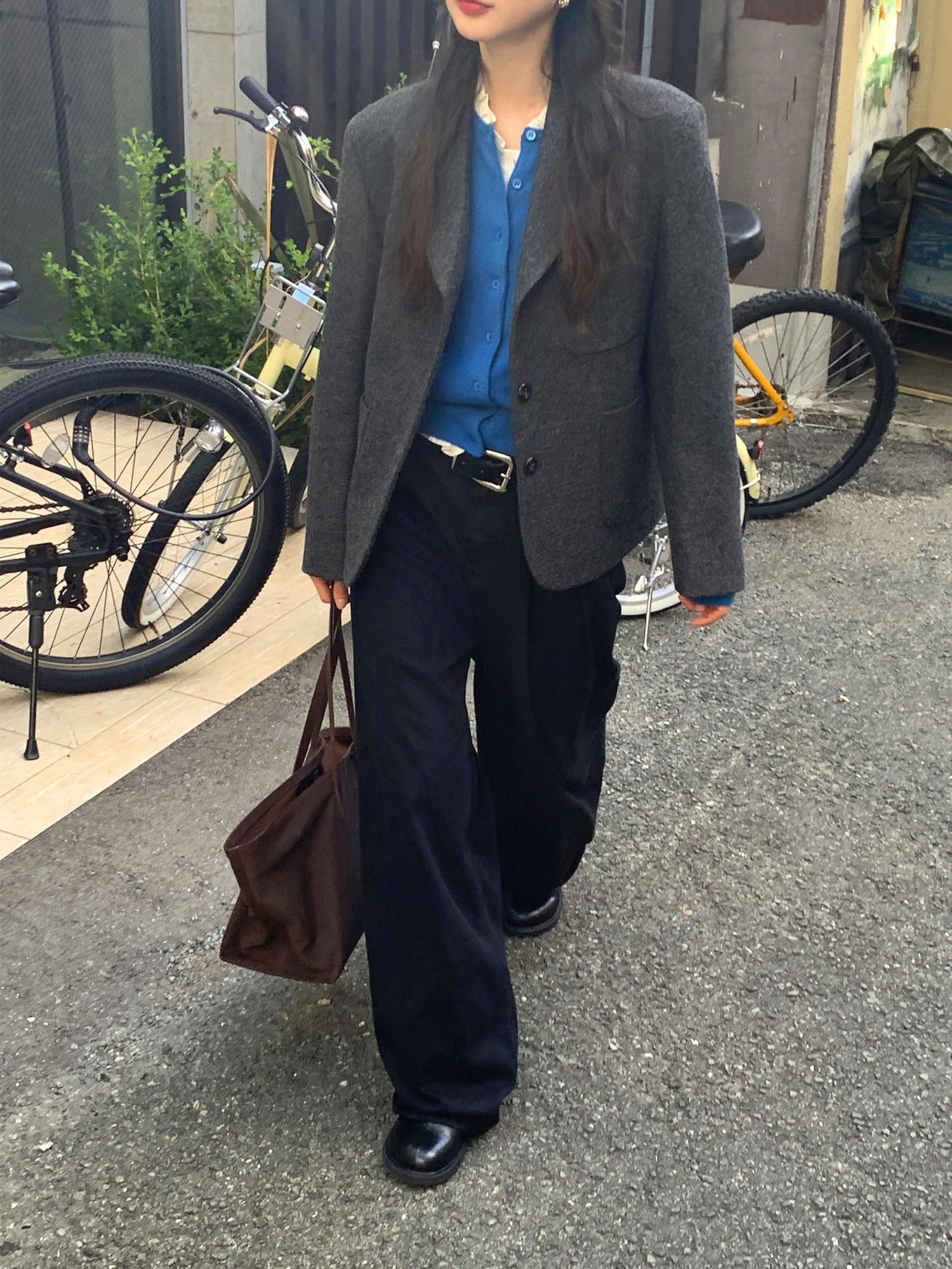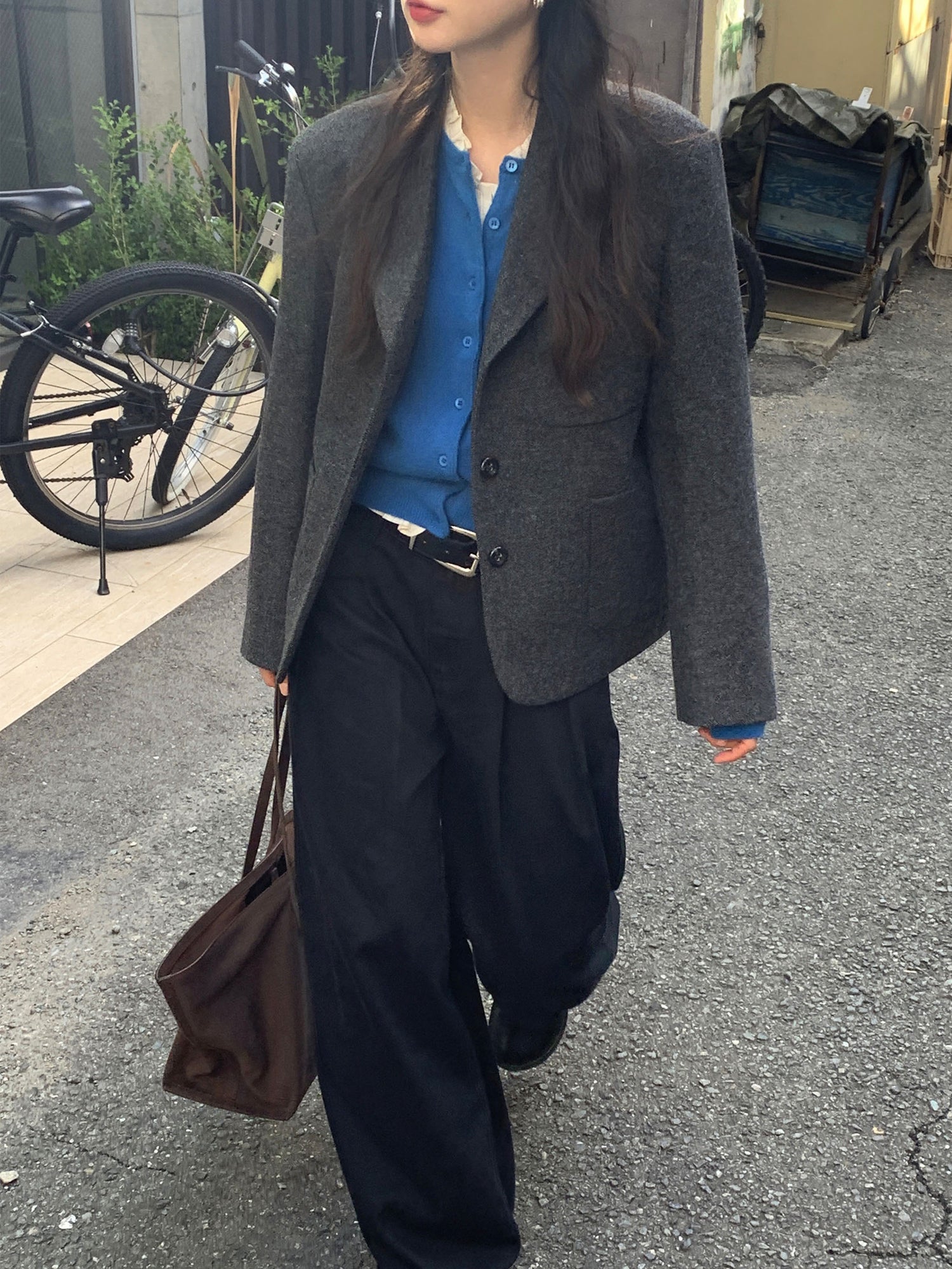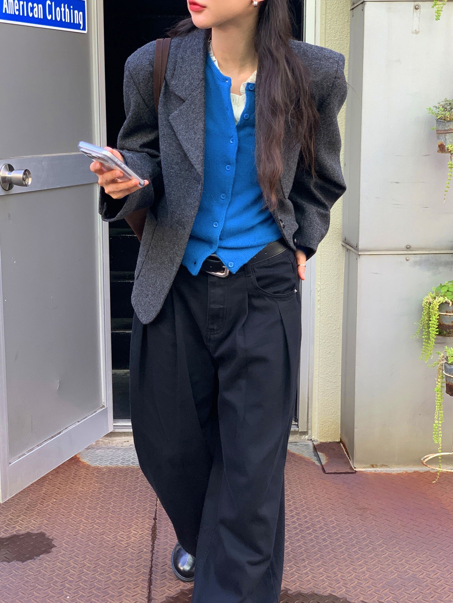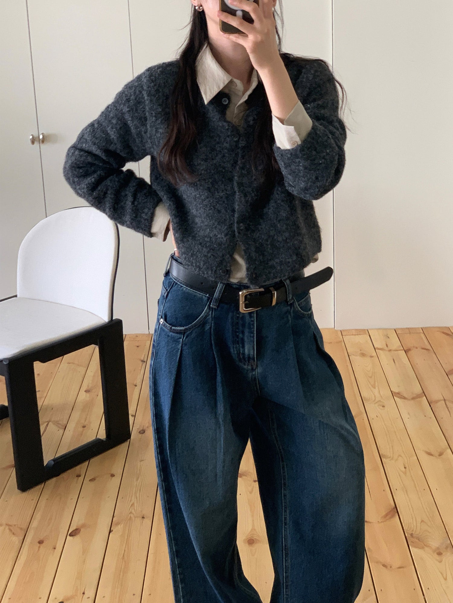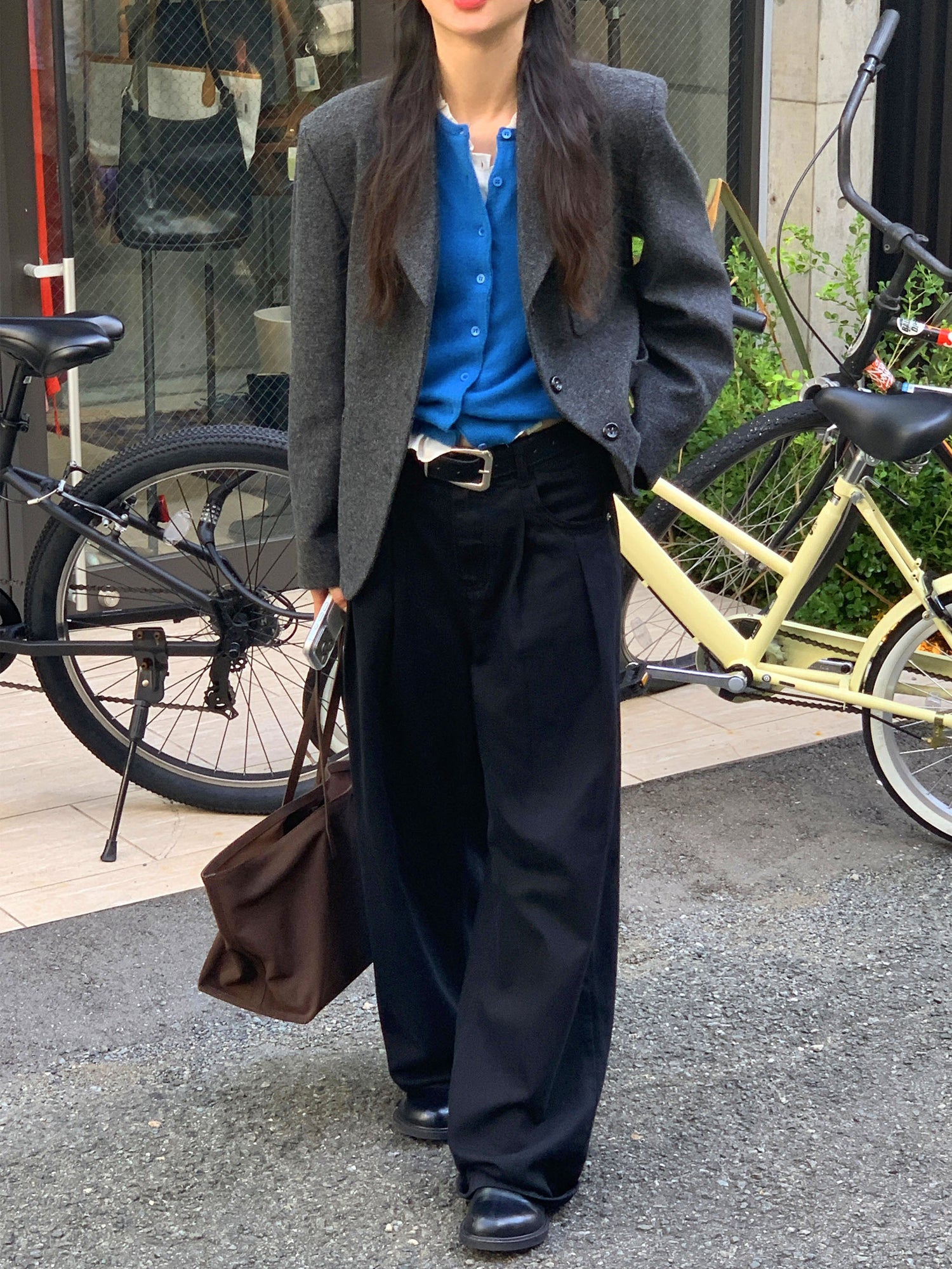 復古美色雙壓褶垂感闊褲(附皮帶)
