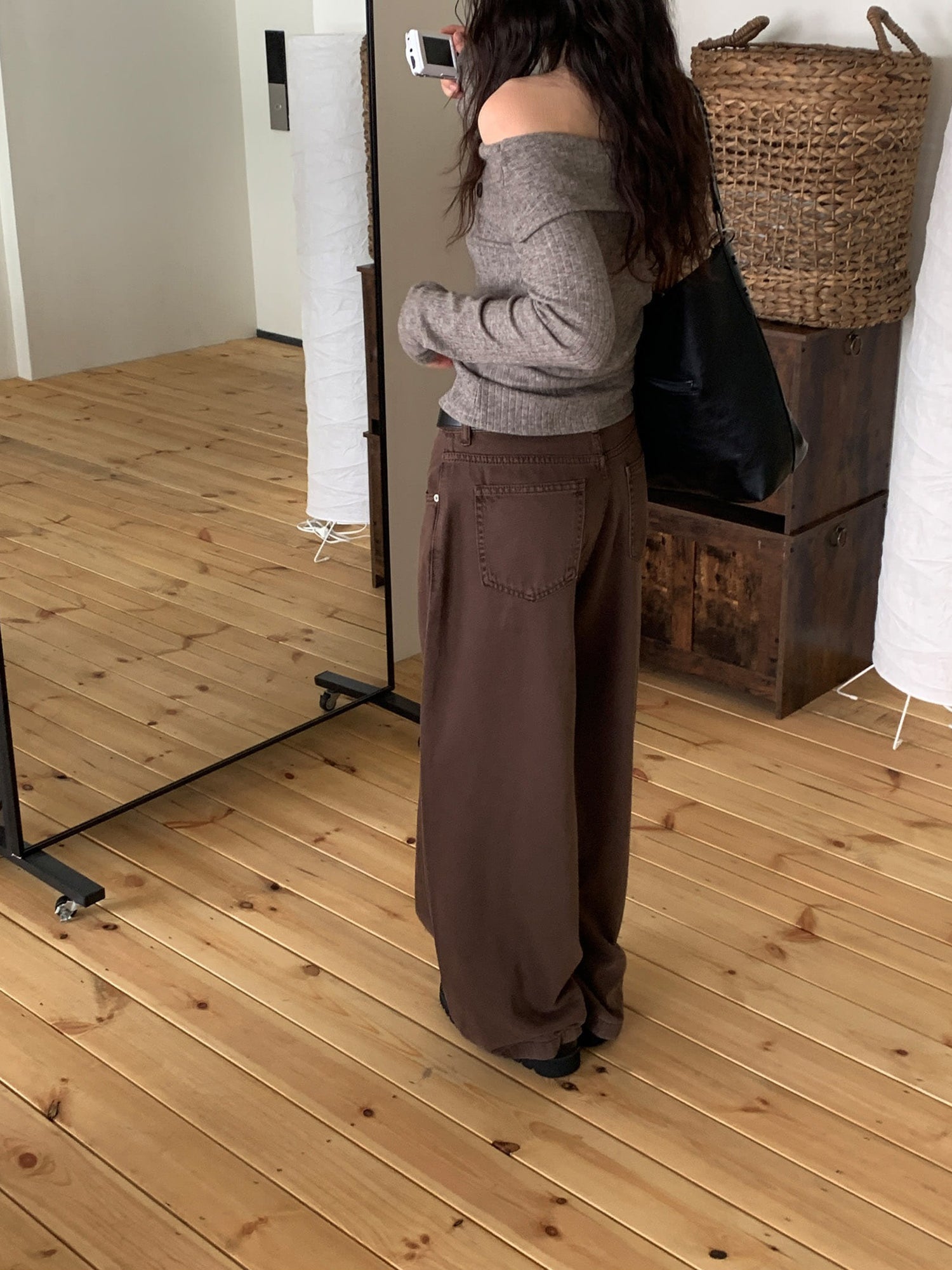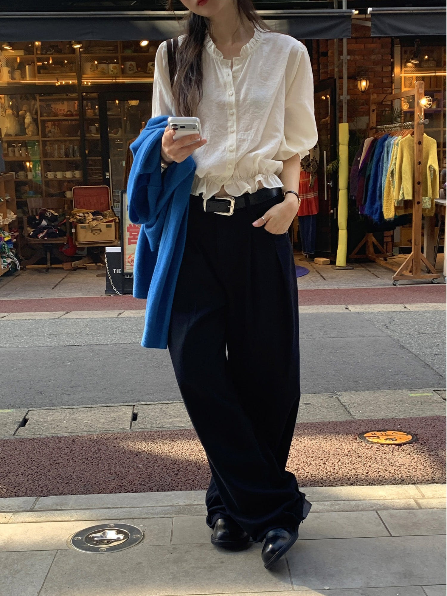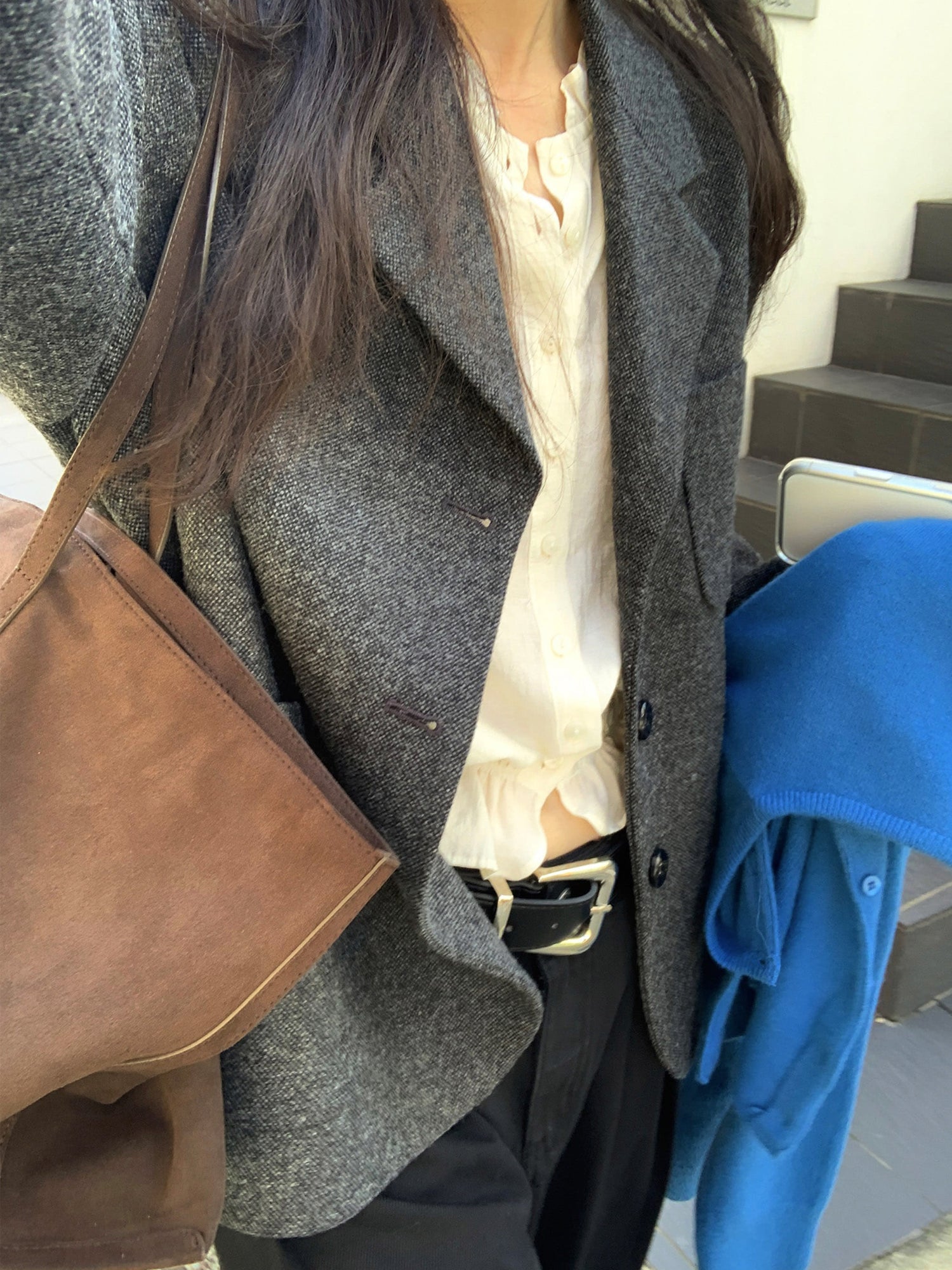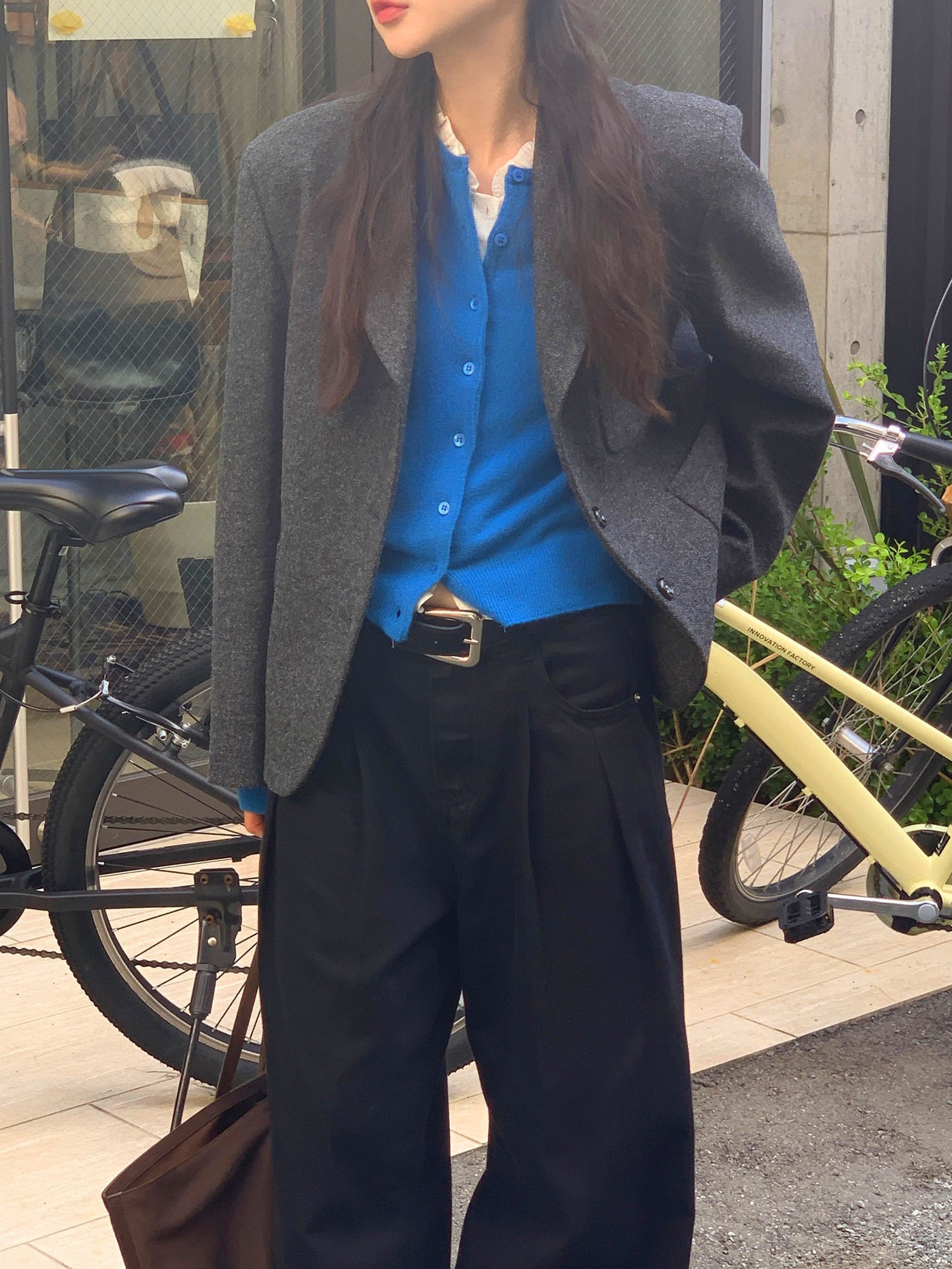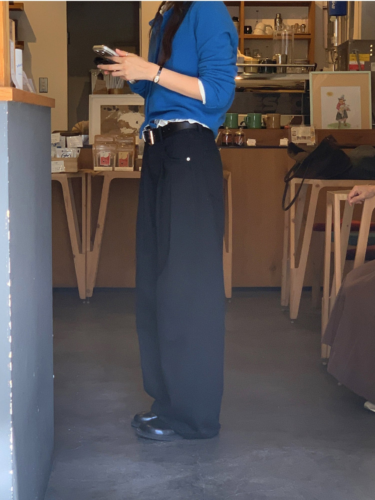 復古美色雙壓褶垂感闊褲(附皮帶)