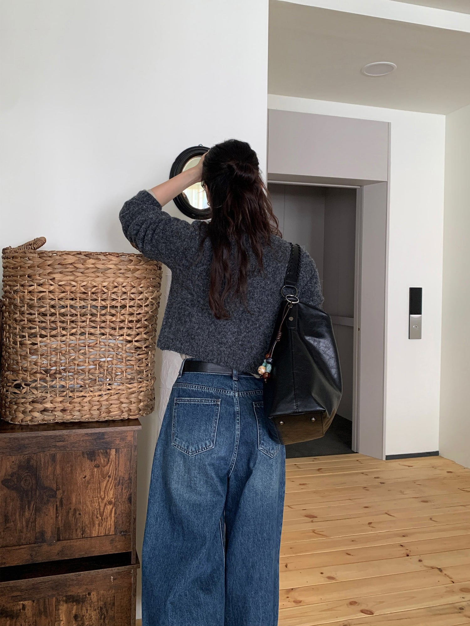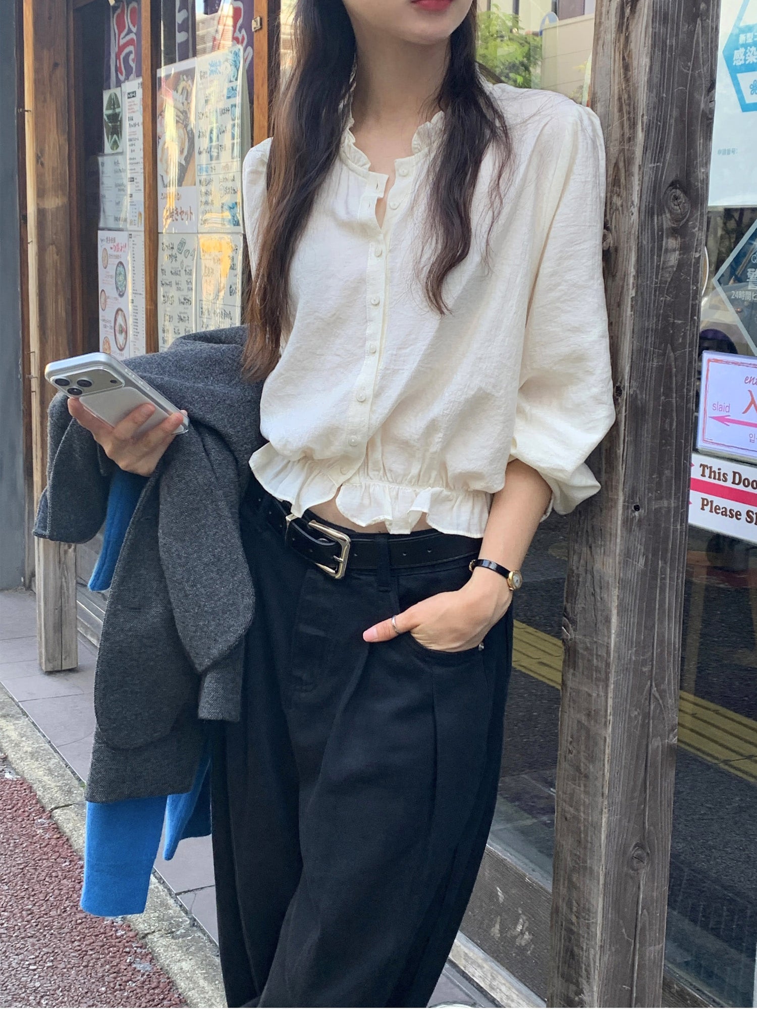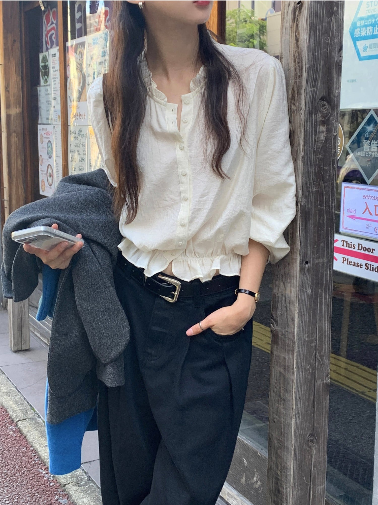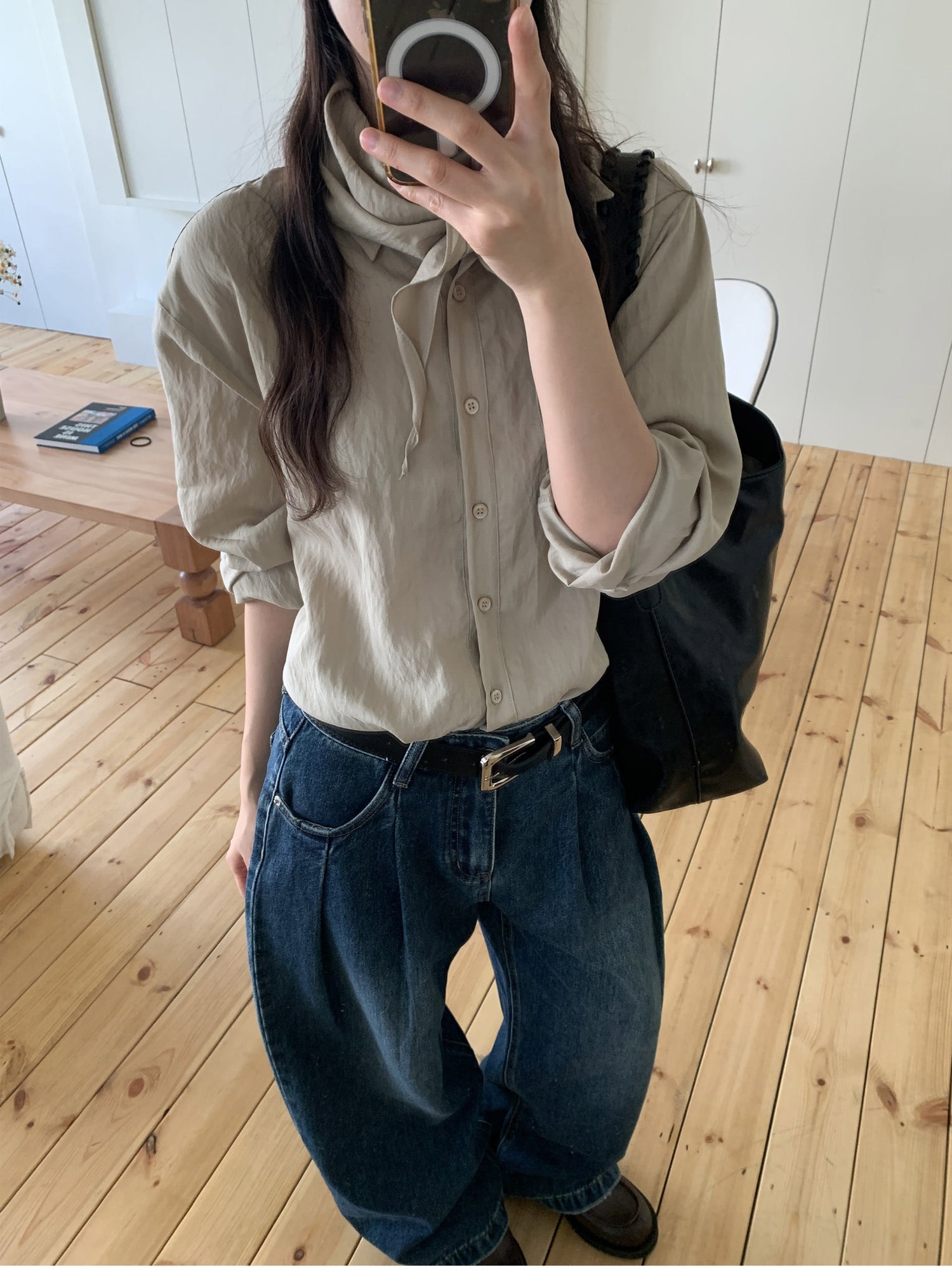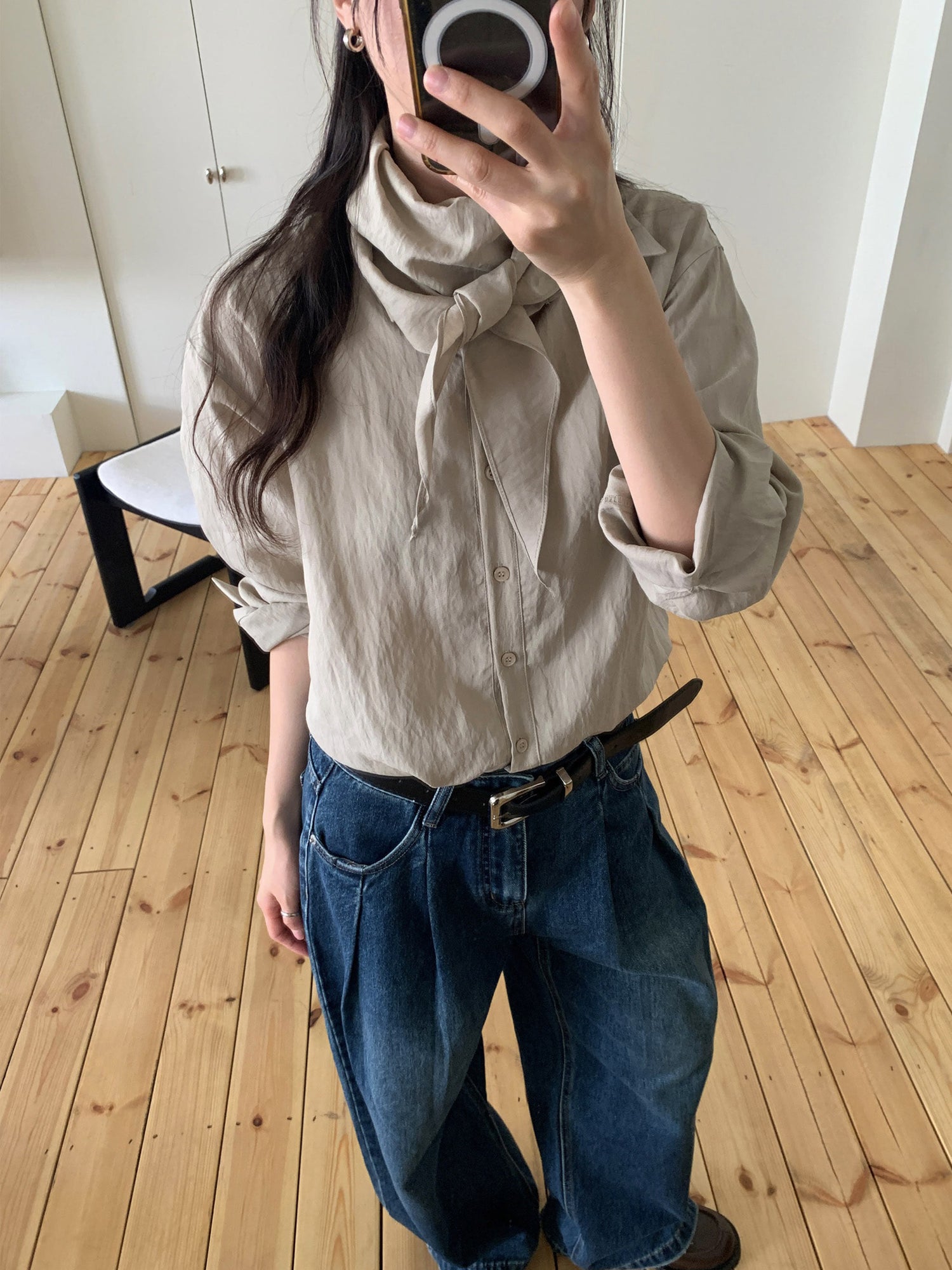 復古美色雙壓褶垂感闊褲(附皮帶)