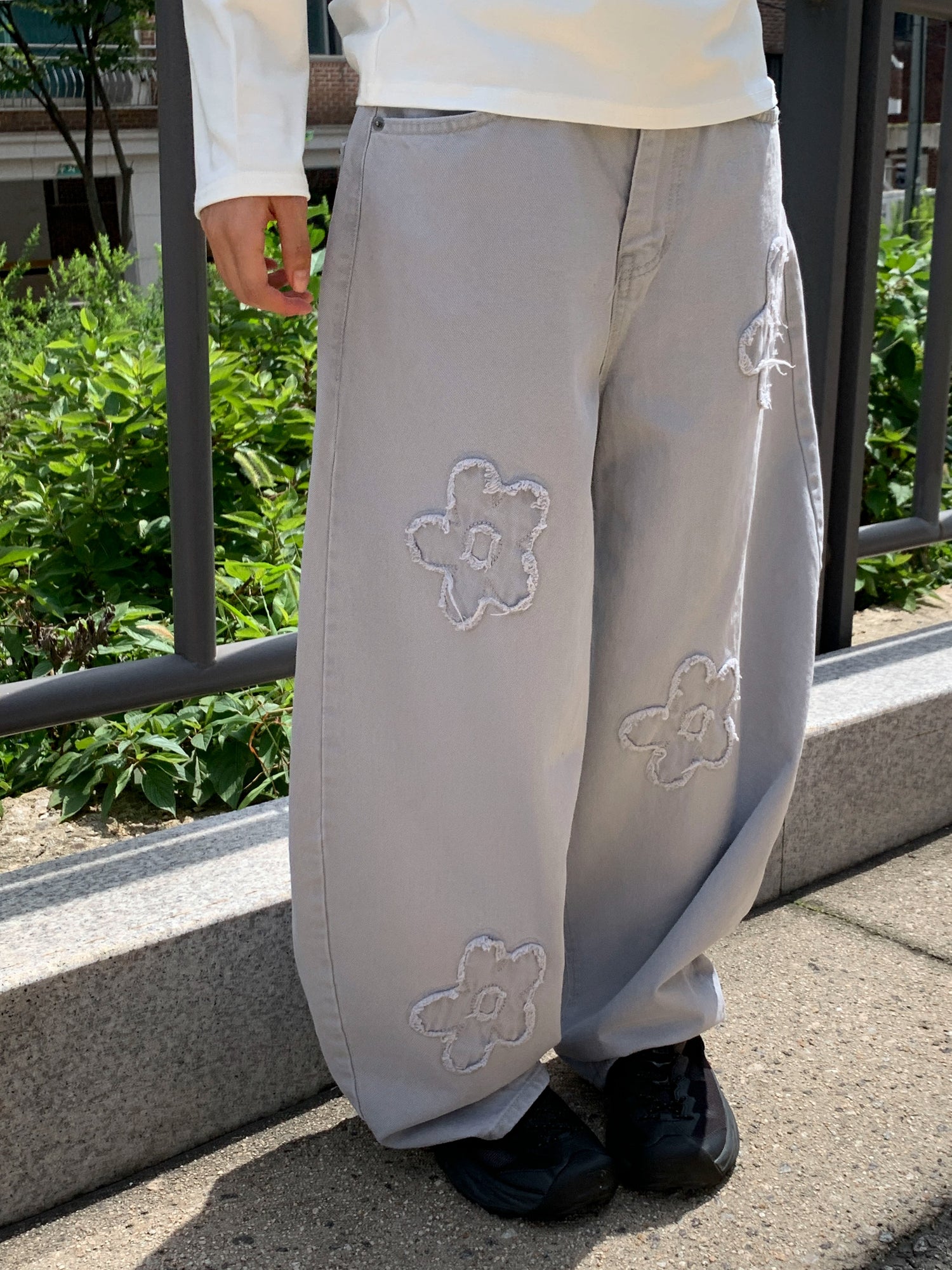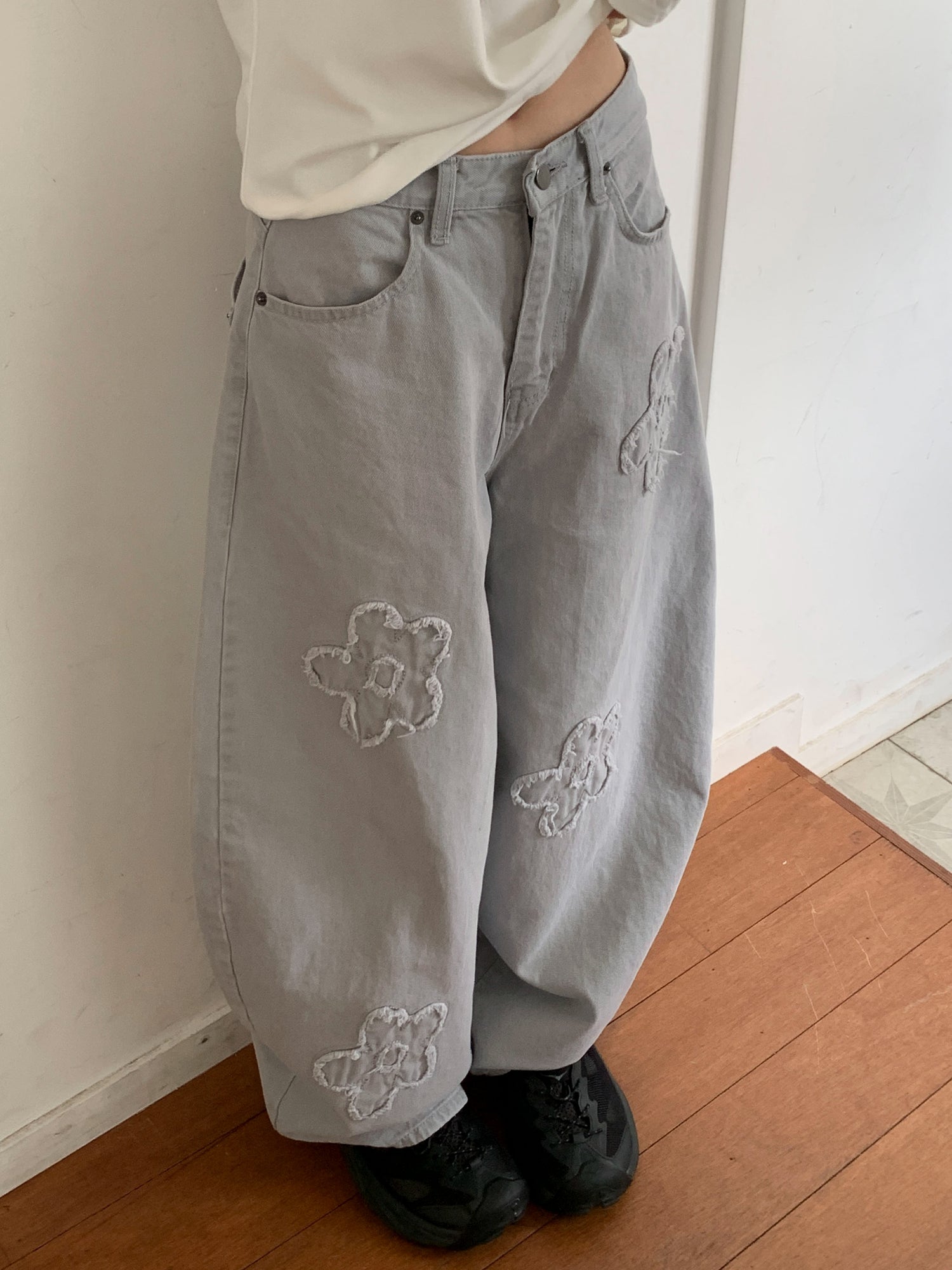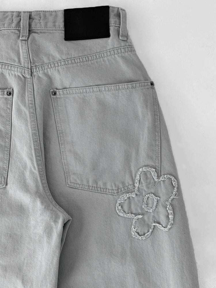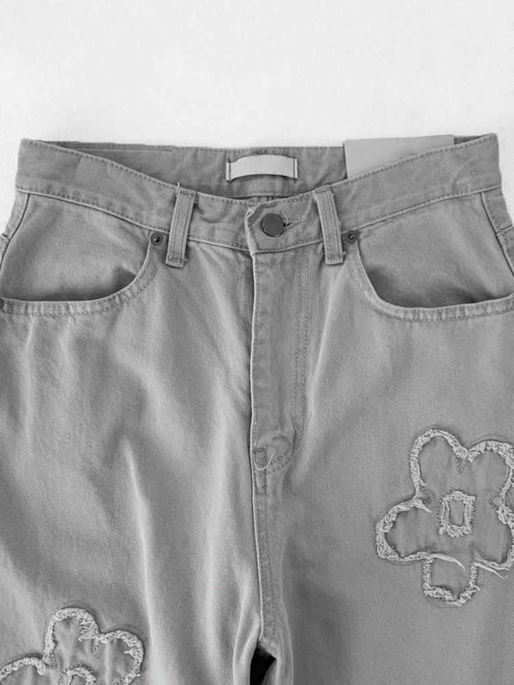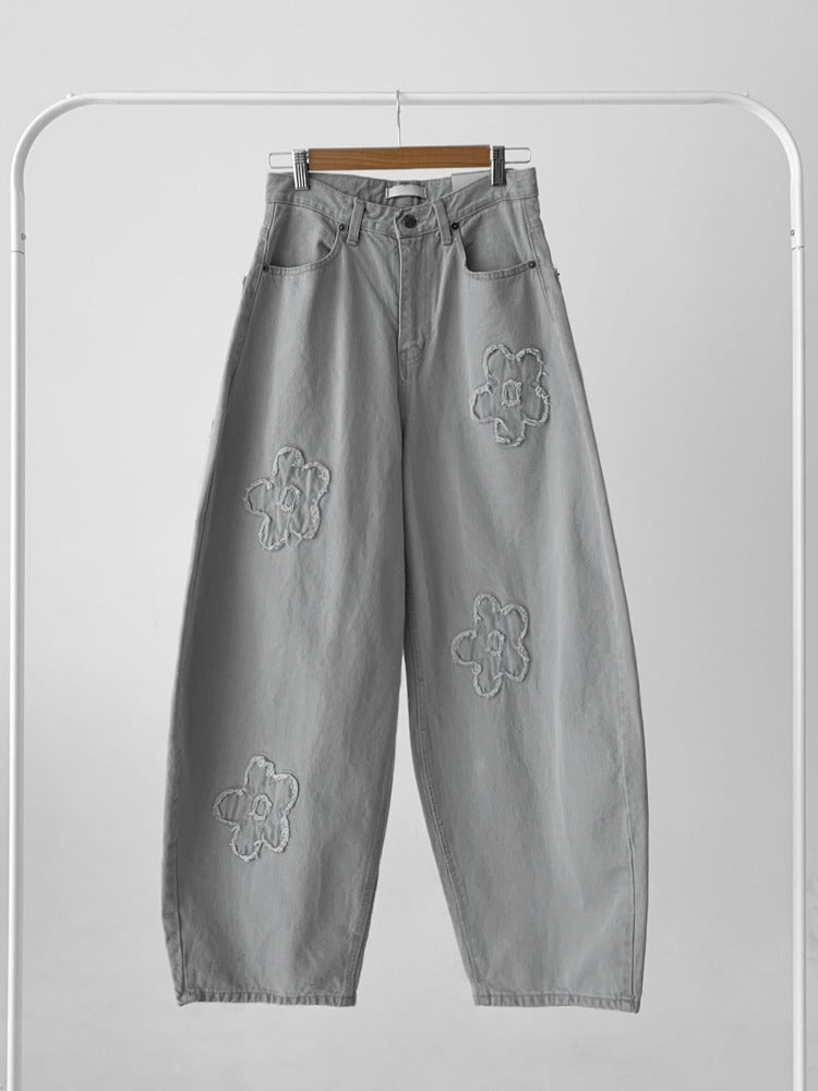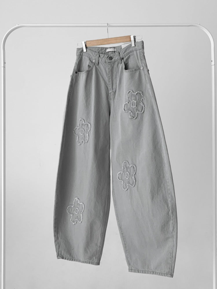 立體花造型細節繭型牛仔褲