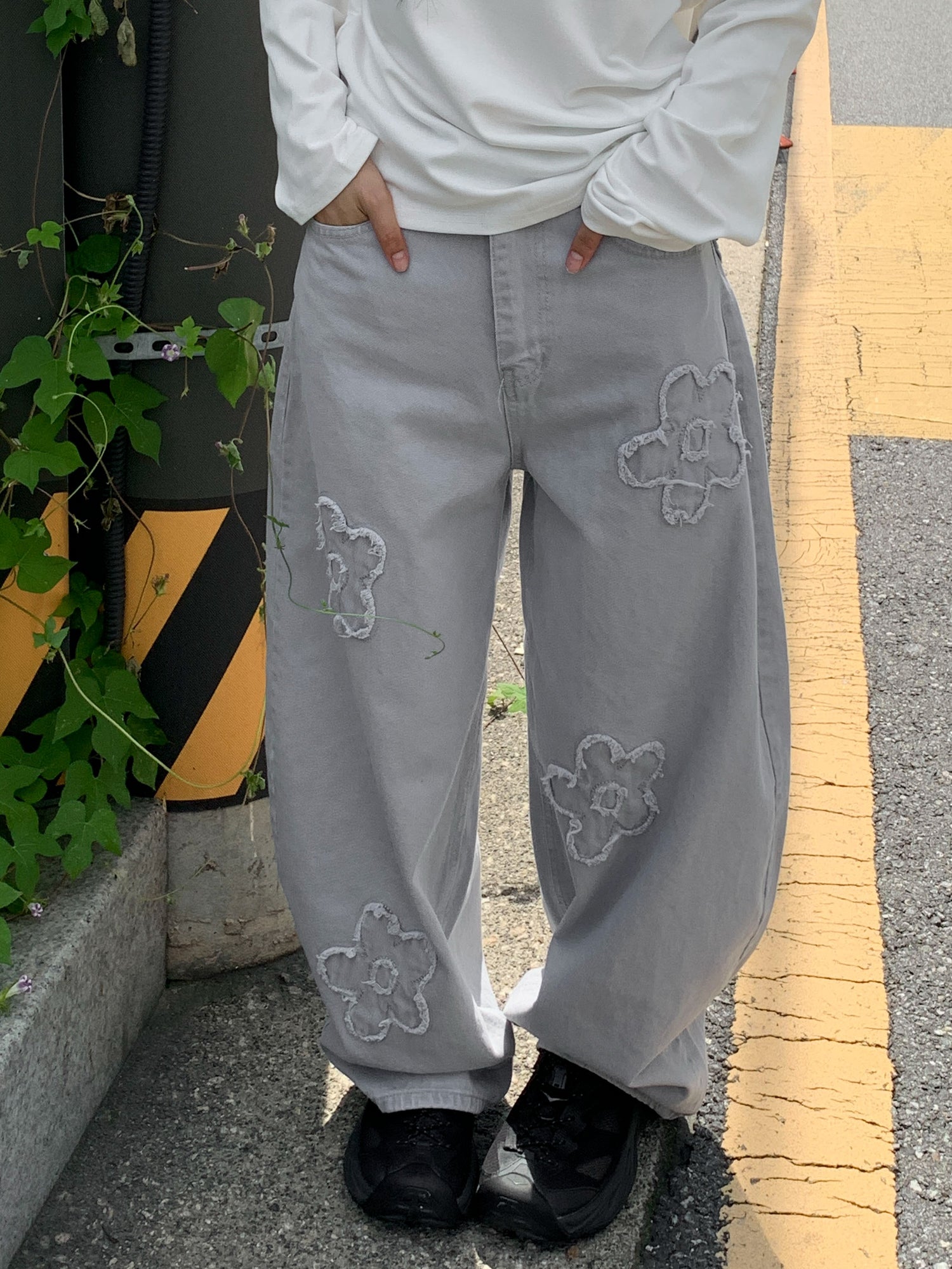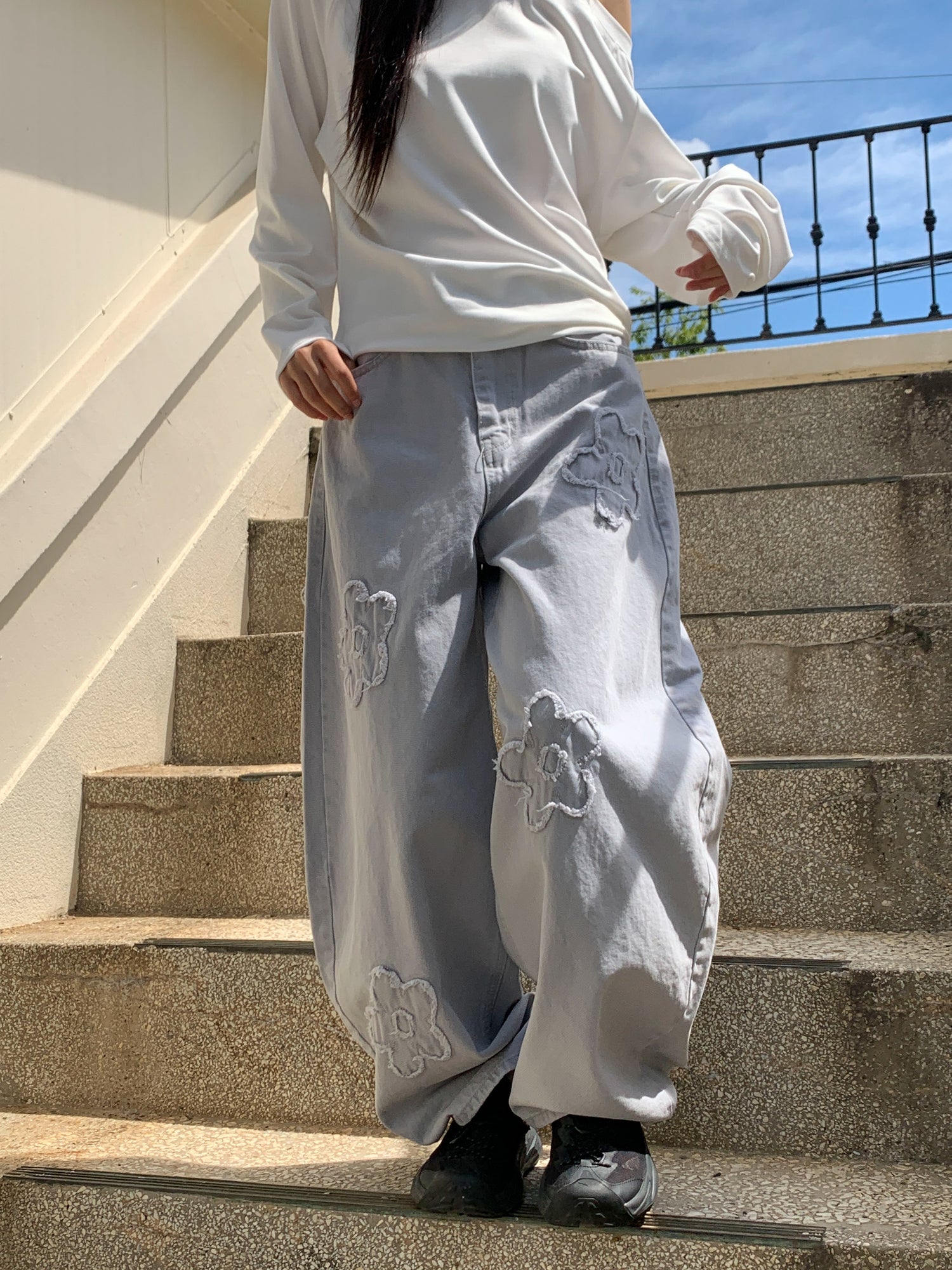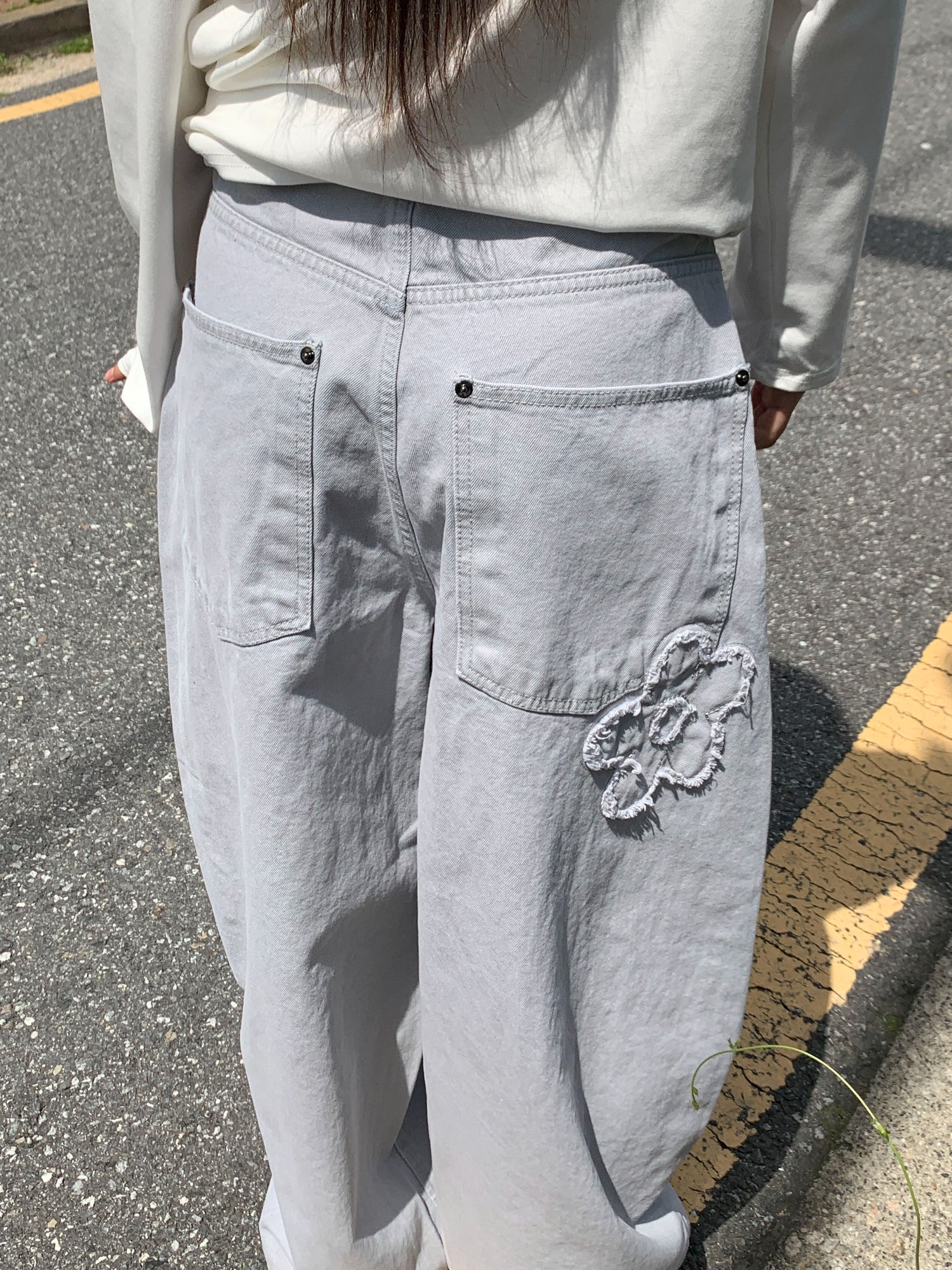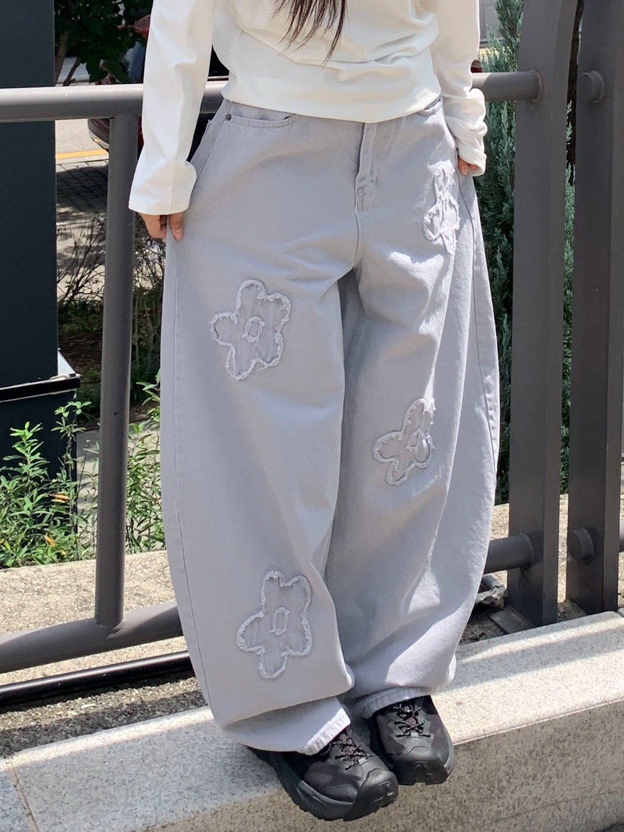 立體花造型細節繭型牛仔褲