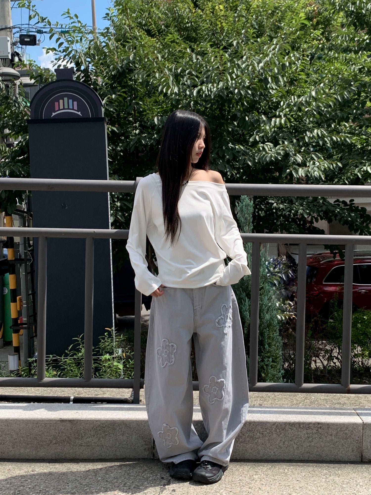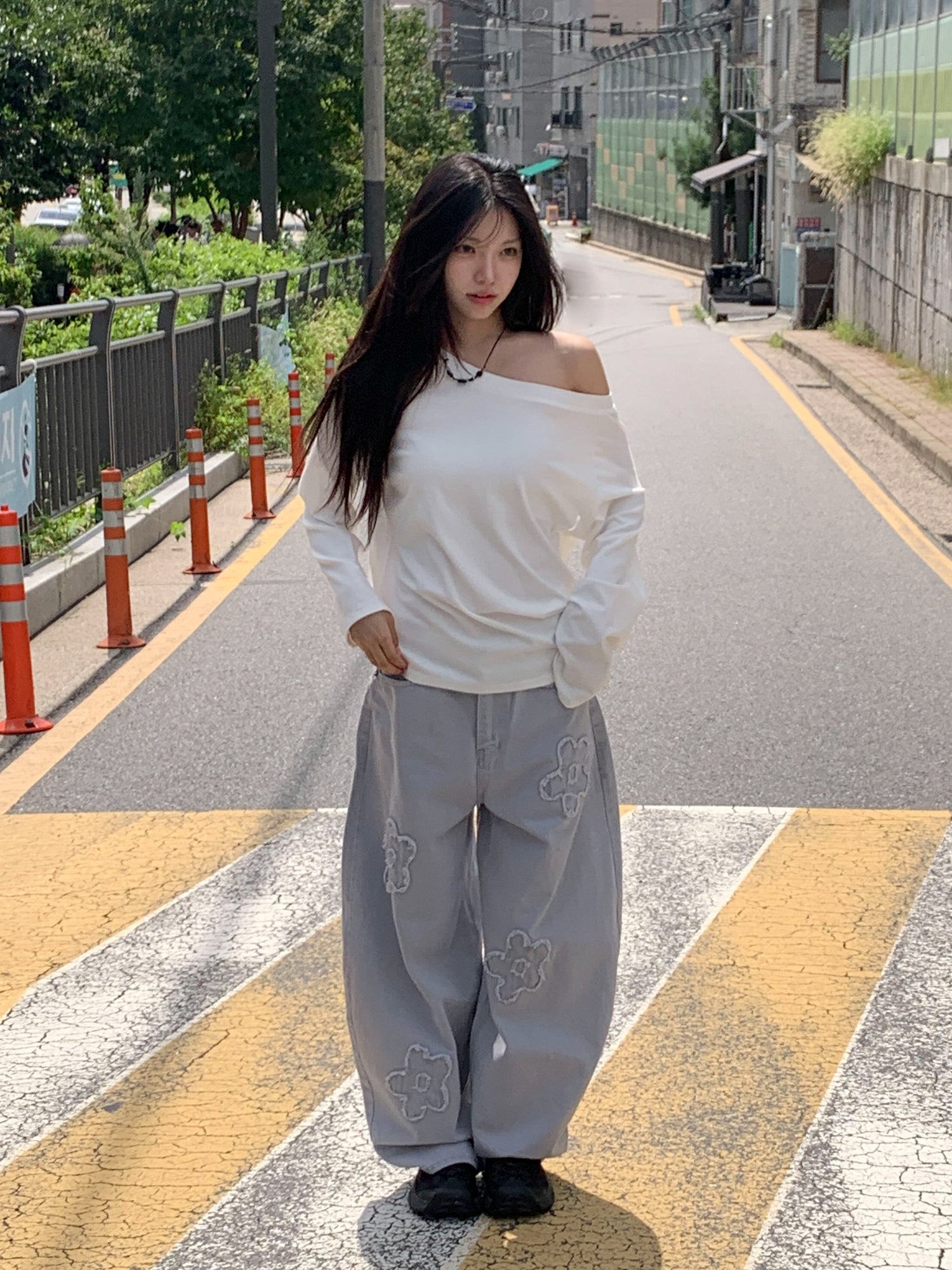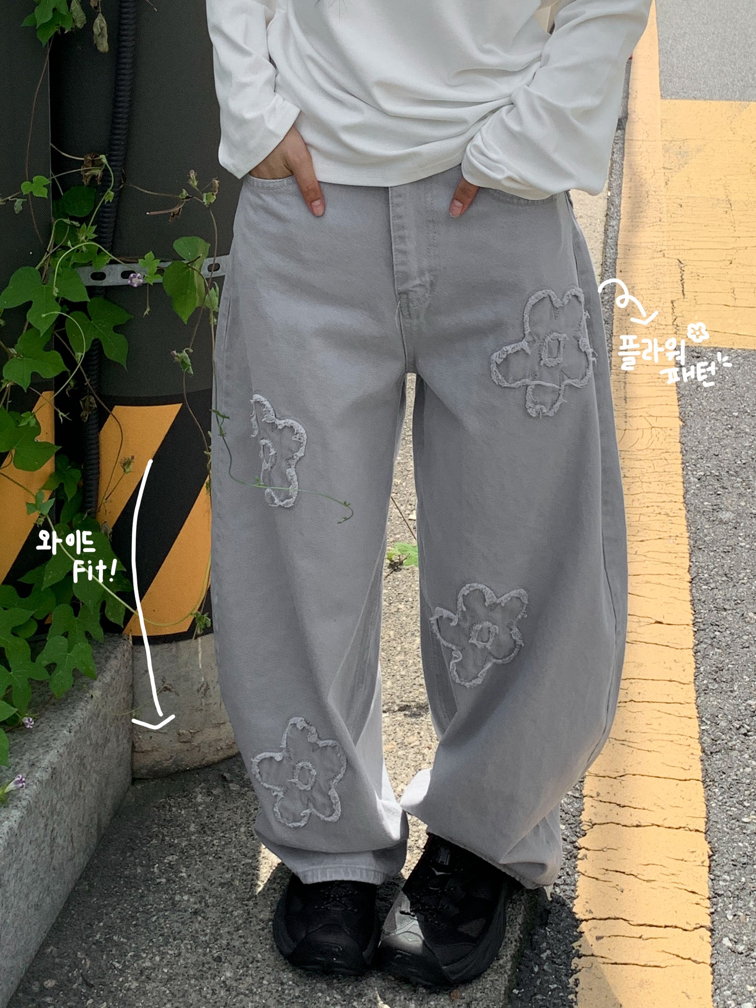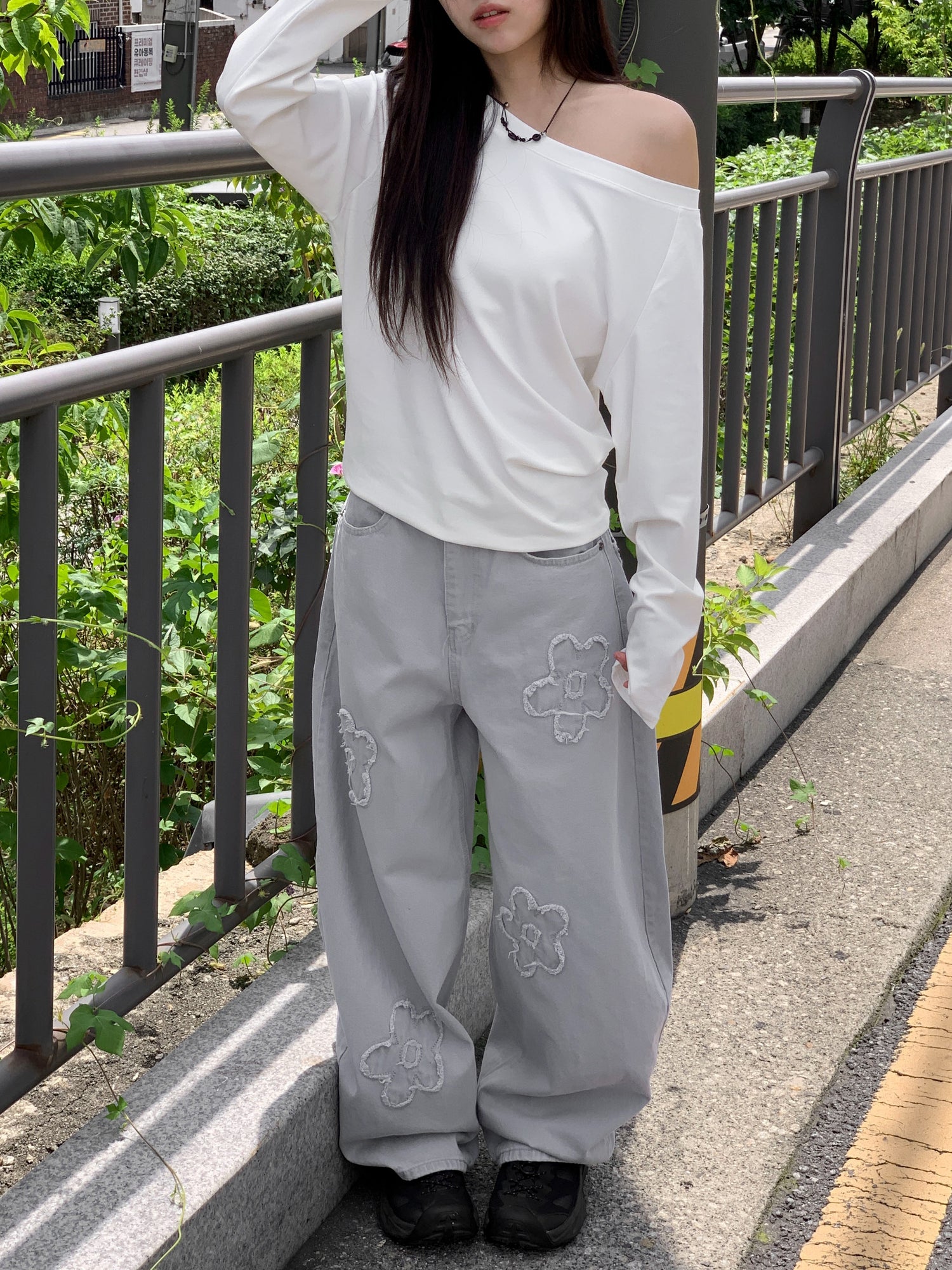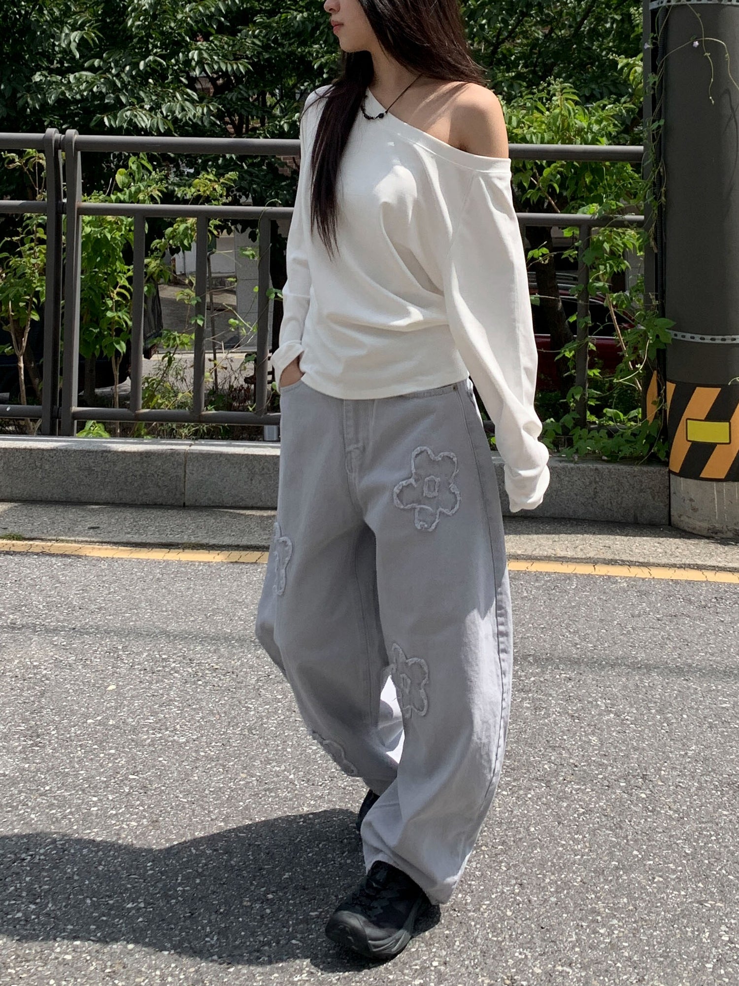 立體花造型細節繭型牛仔褲