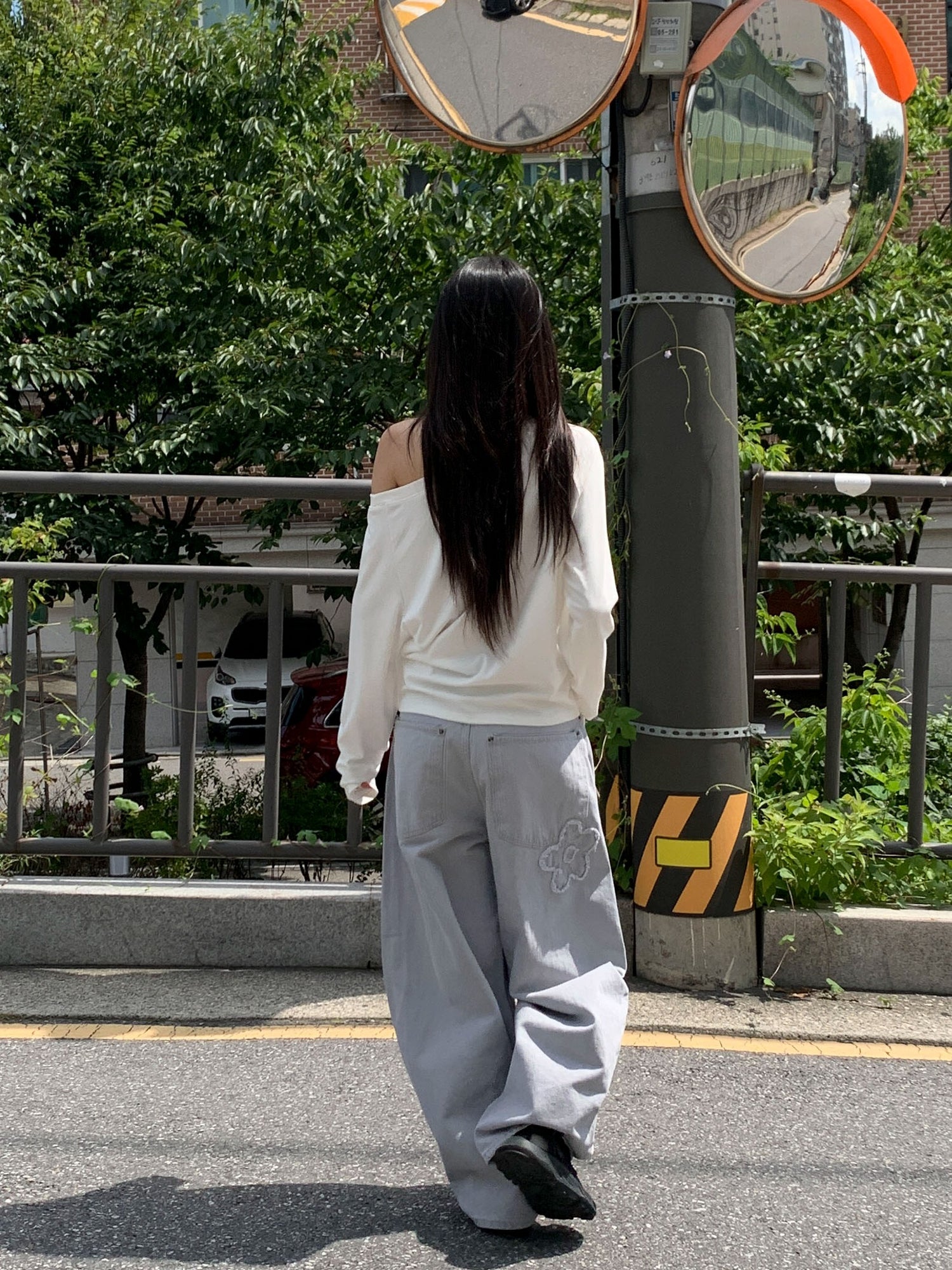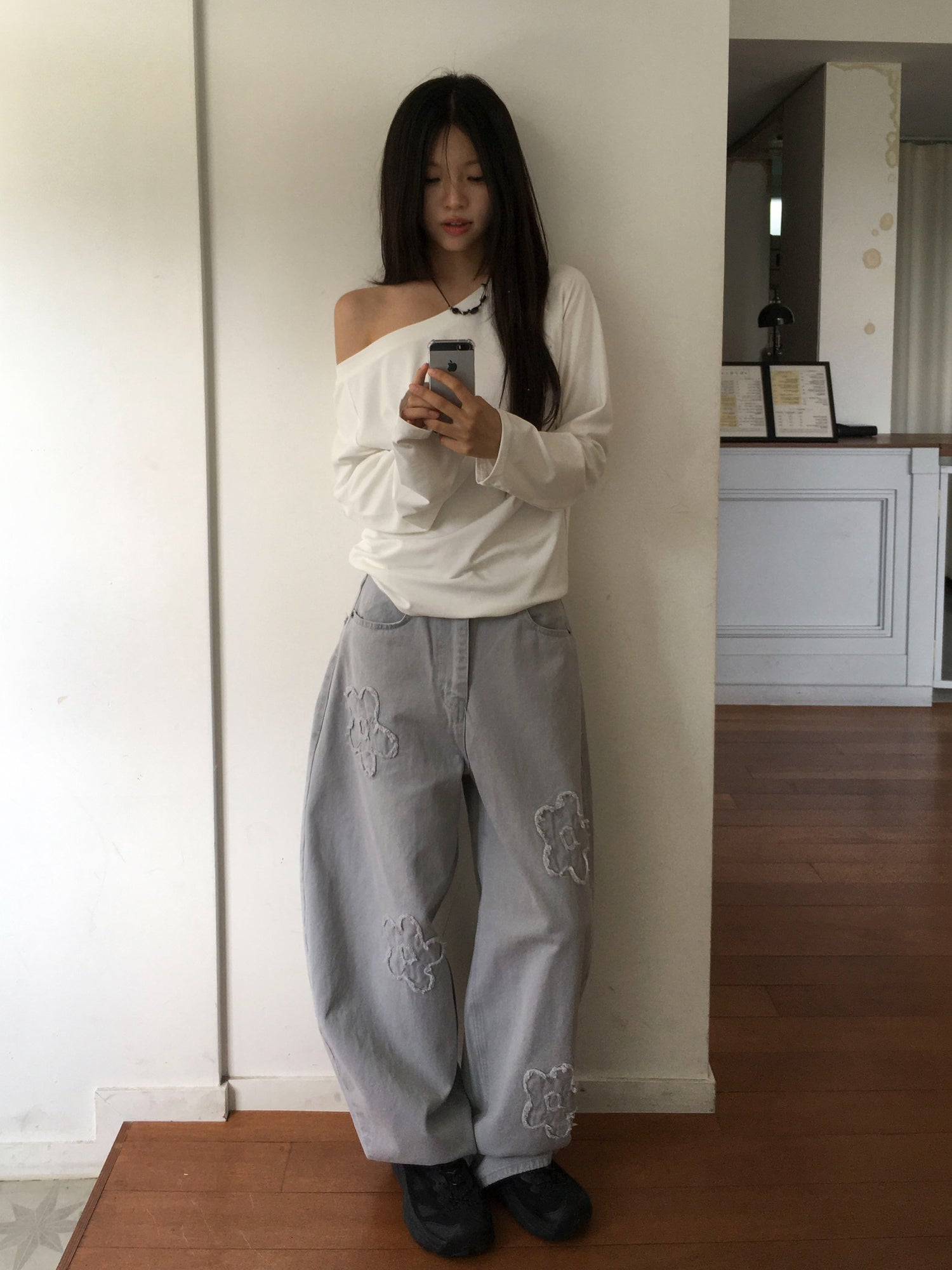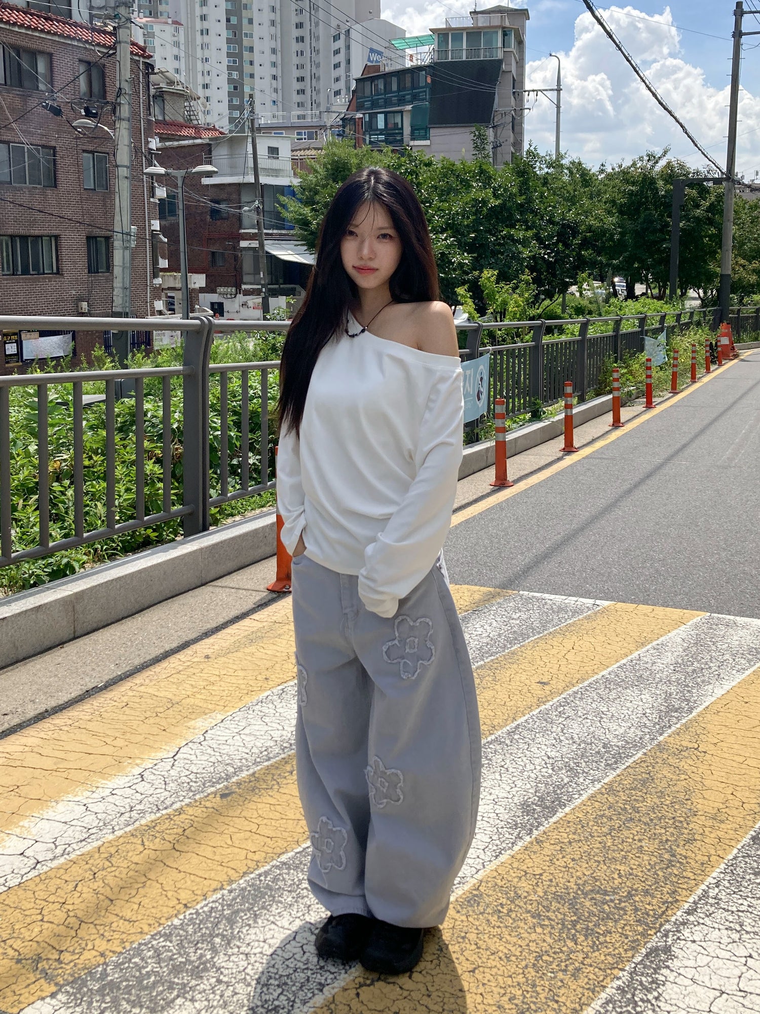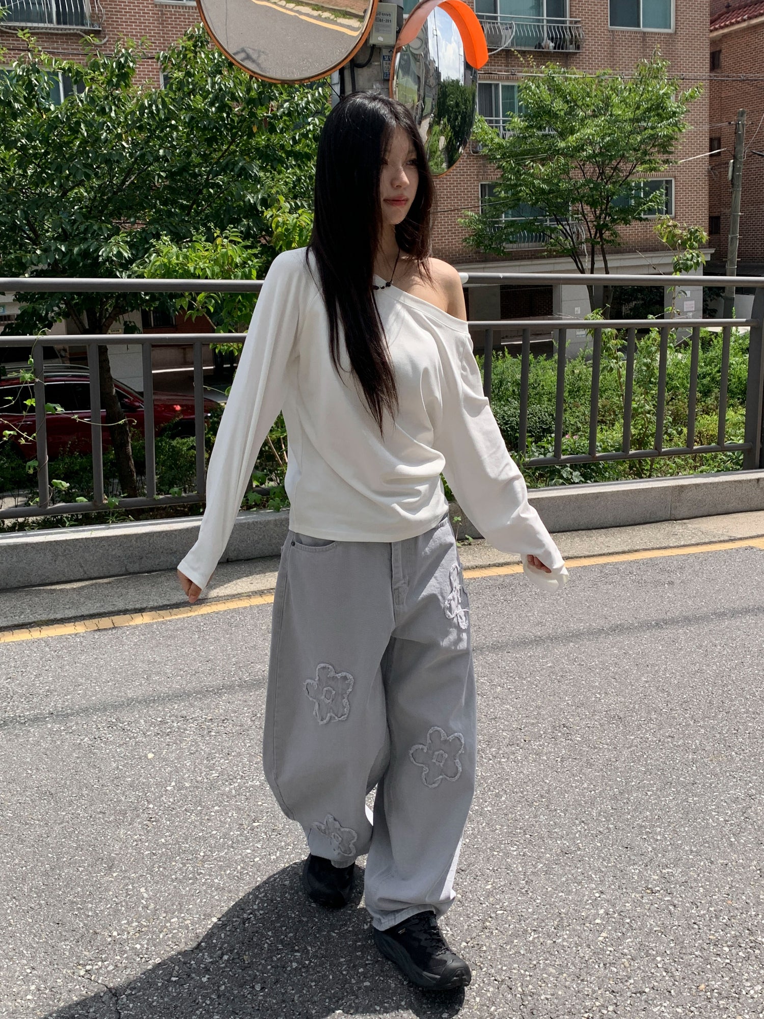 立體花造型細節繭型牛仔褲