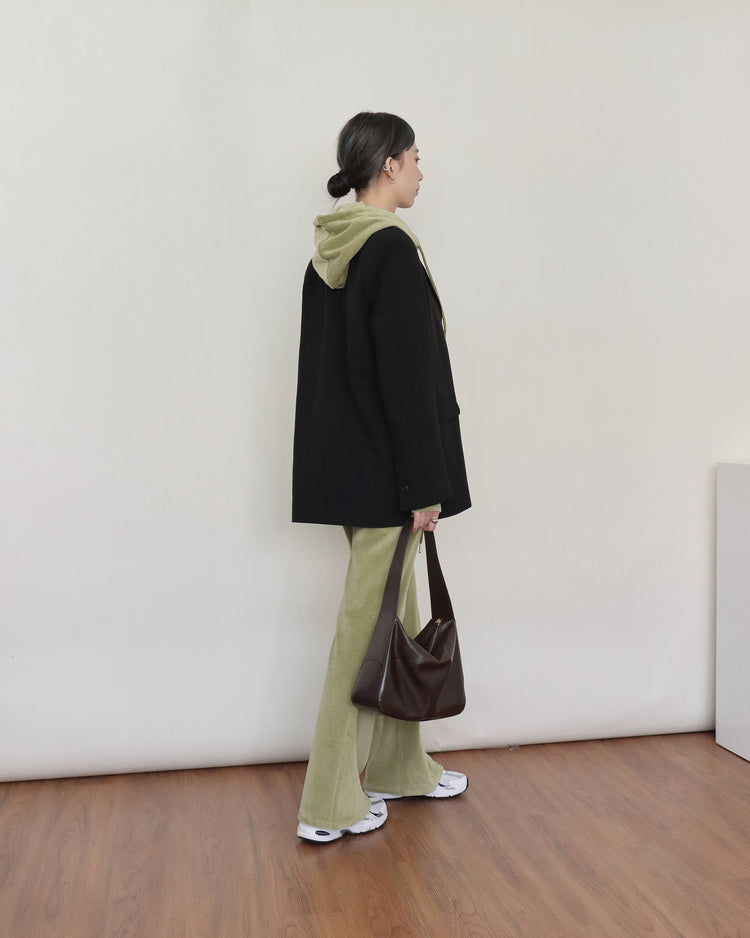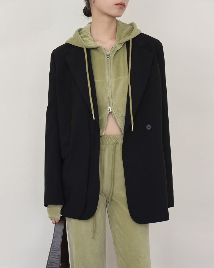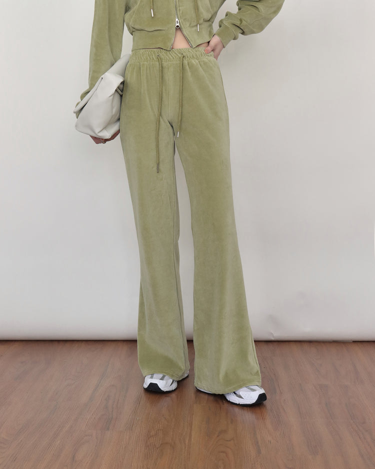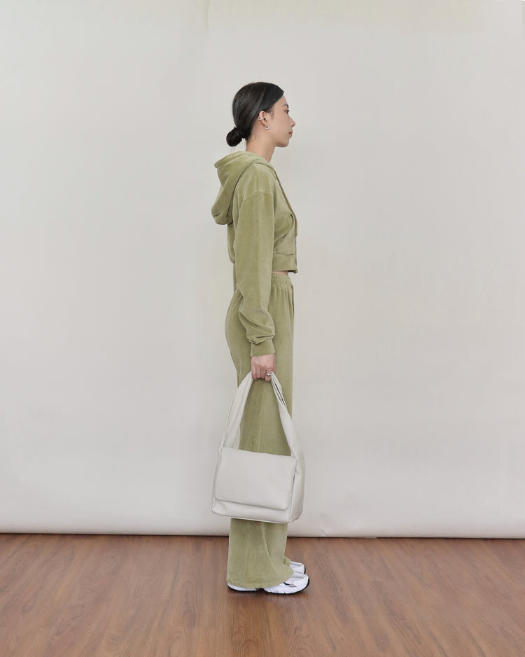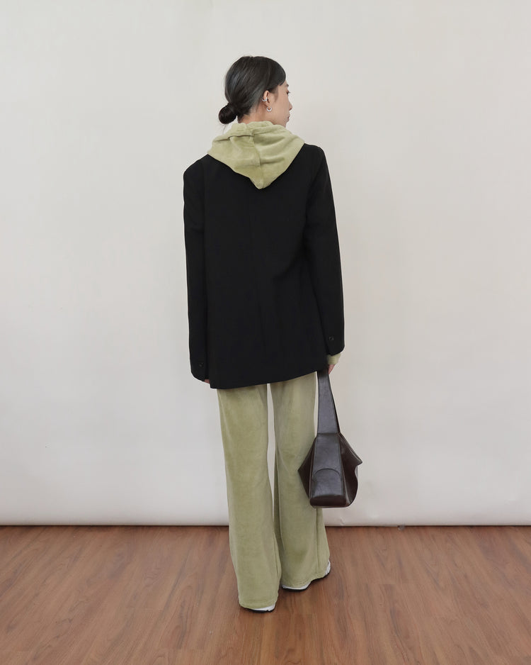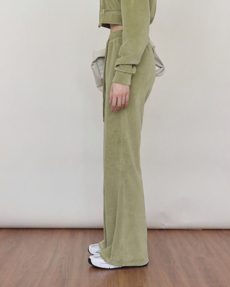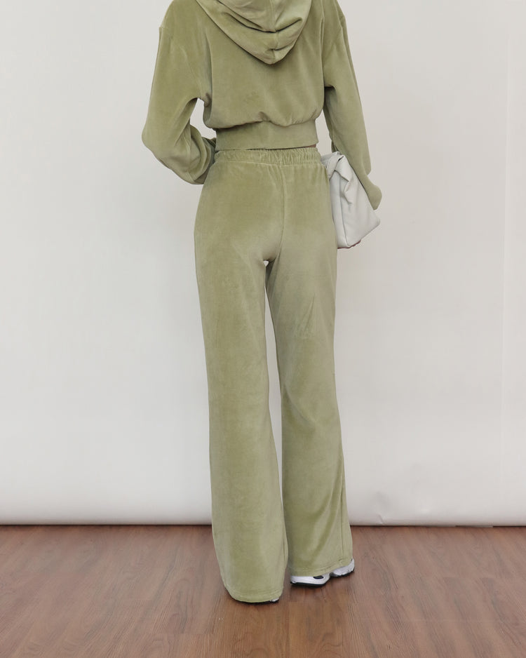 (Fitting)絨面連帽修身休閒套裝-草綠