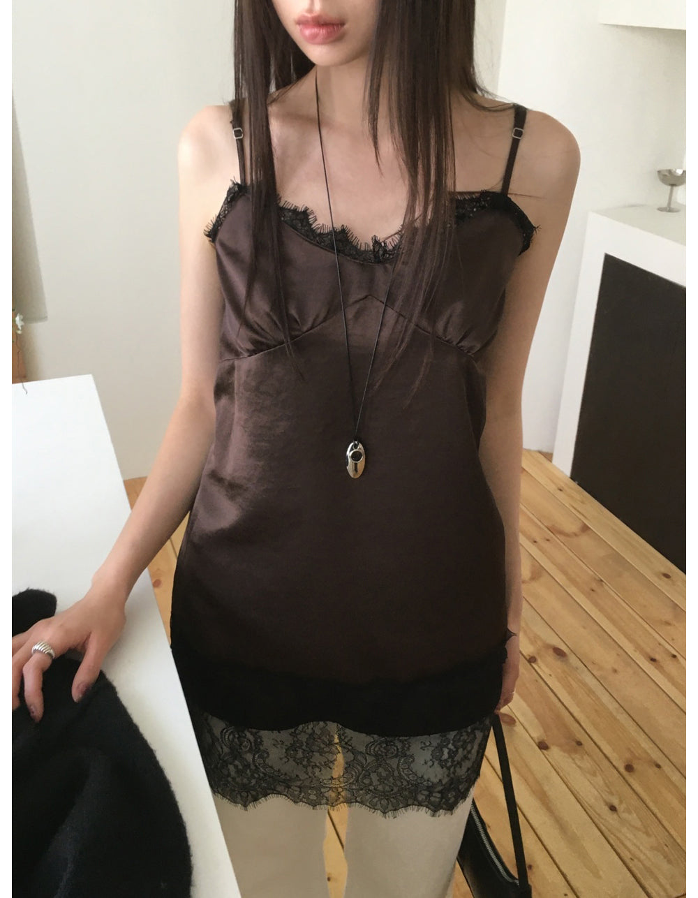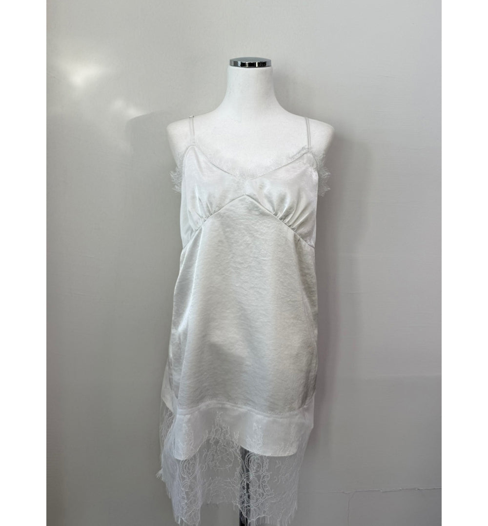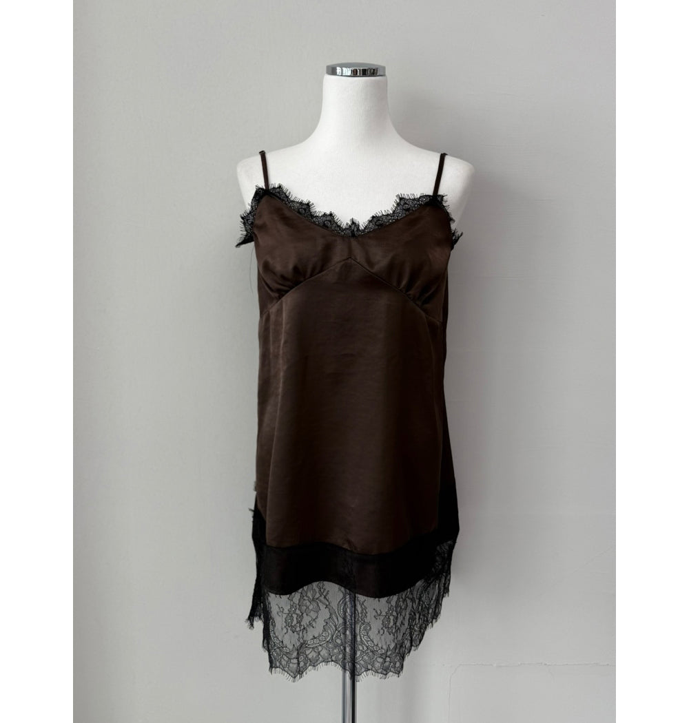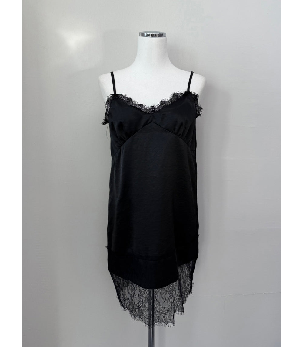 (現)美色蕾絲邊光澤感連身裙
