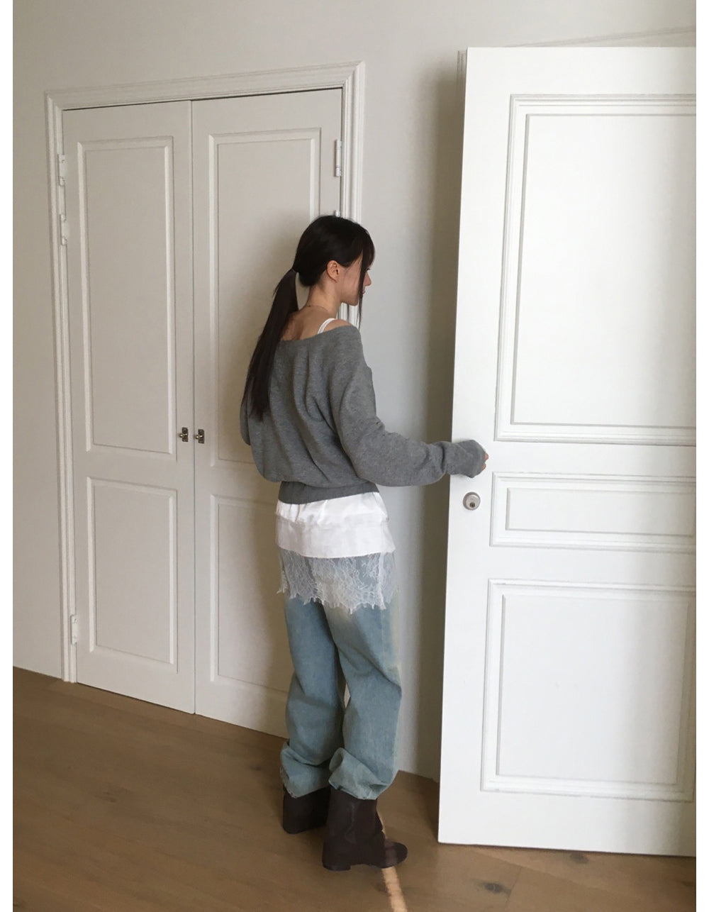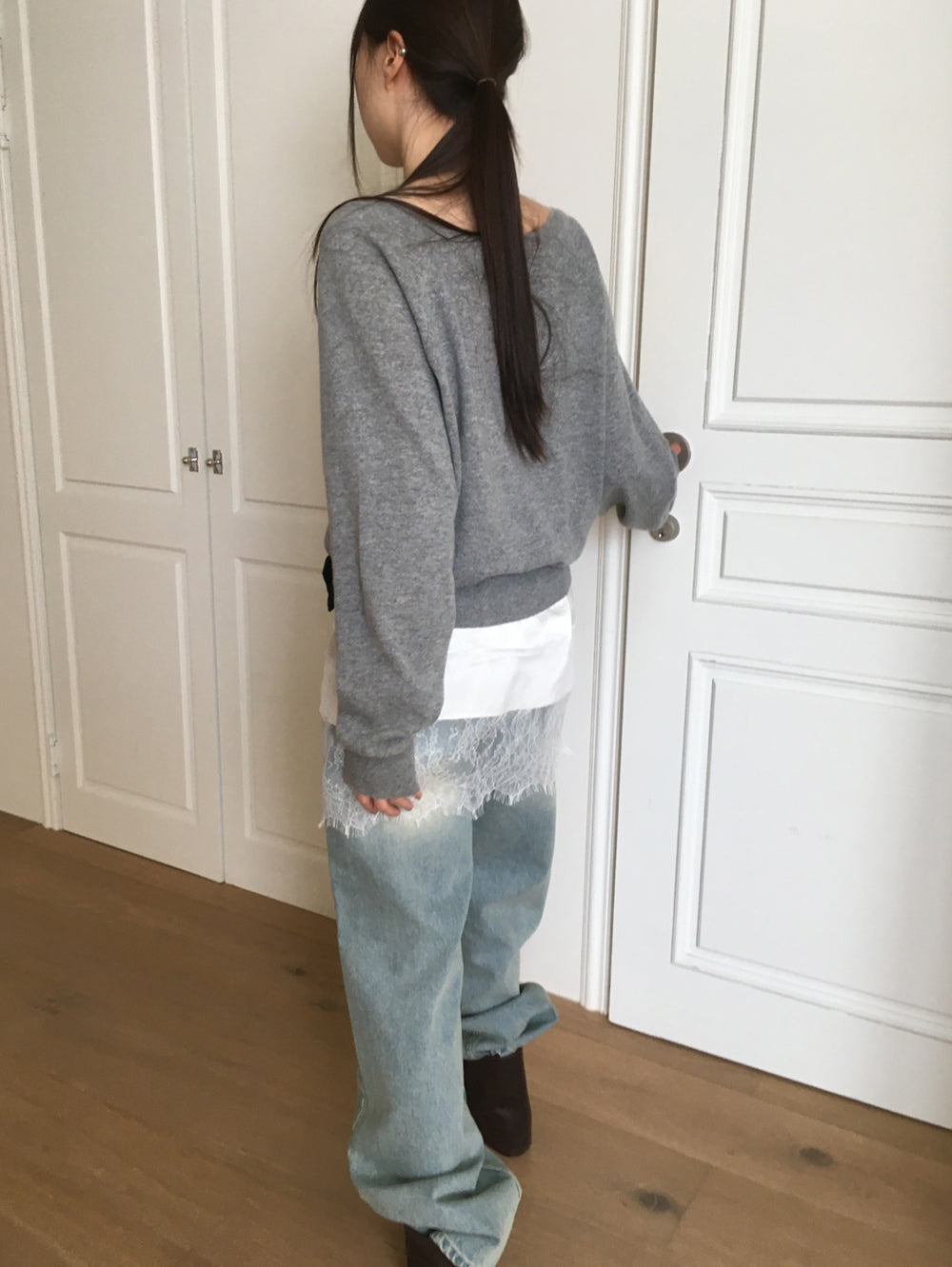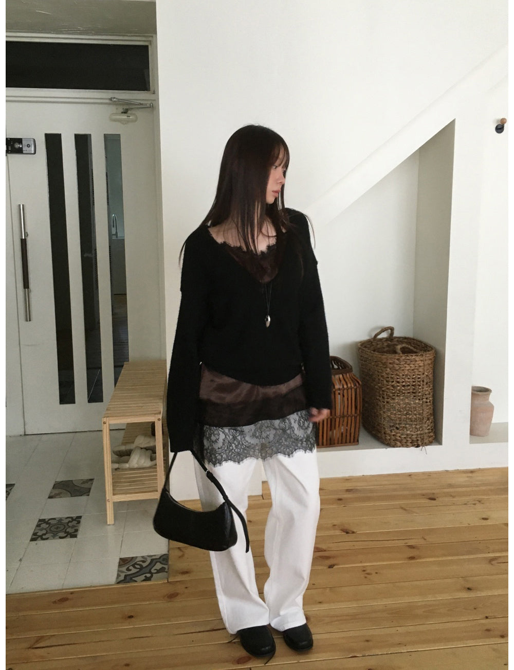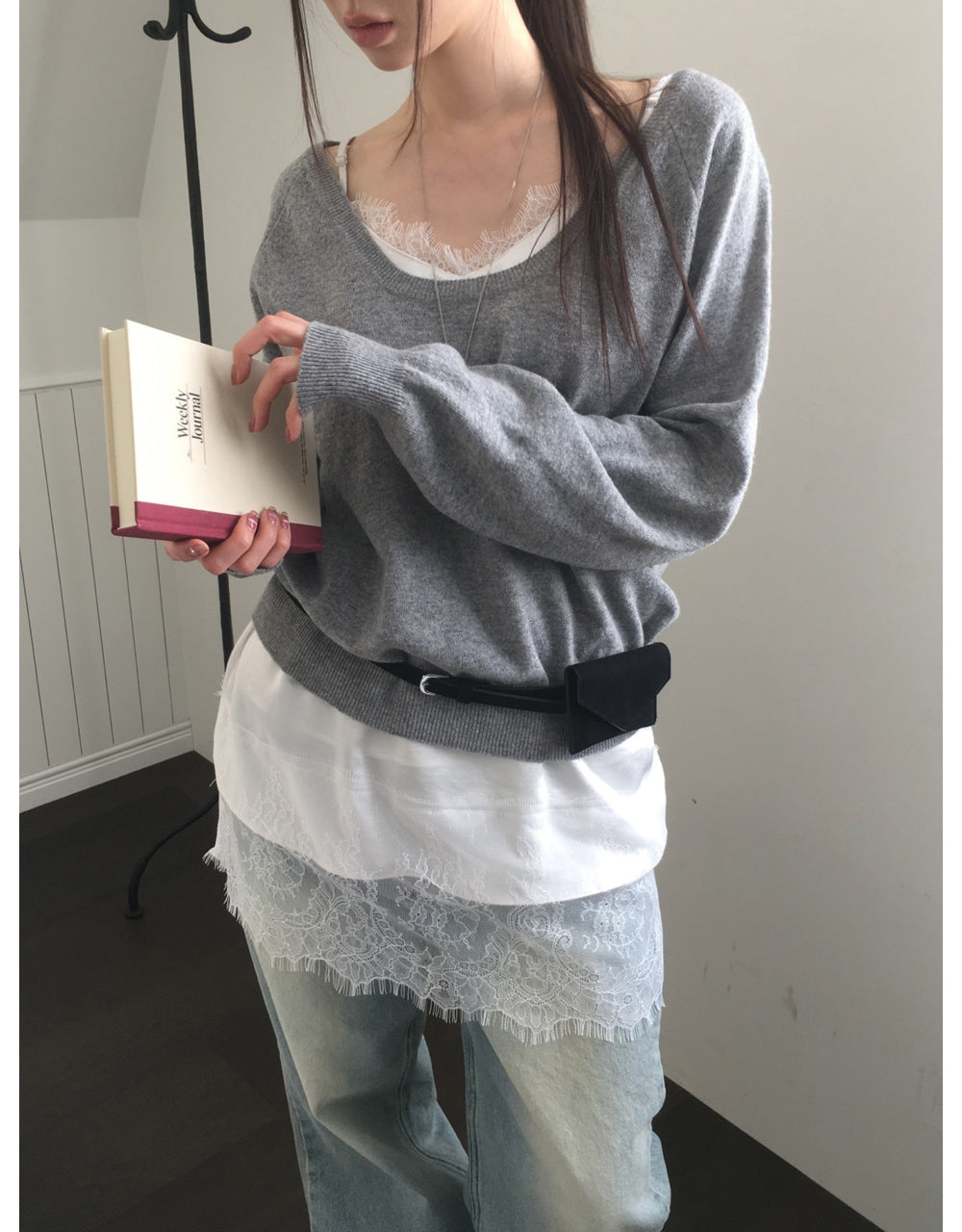 (現)美色蕾絲邊光澤感連身裙