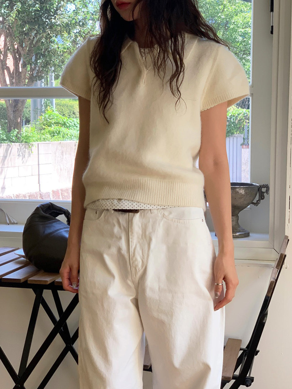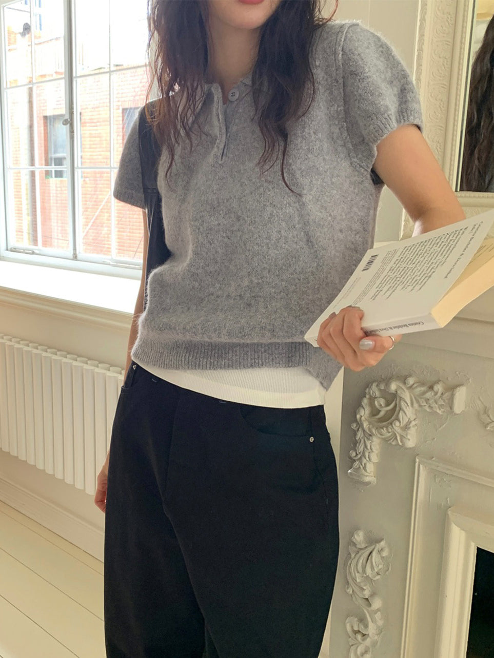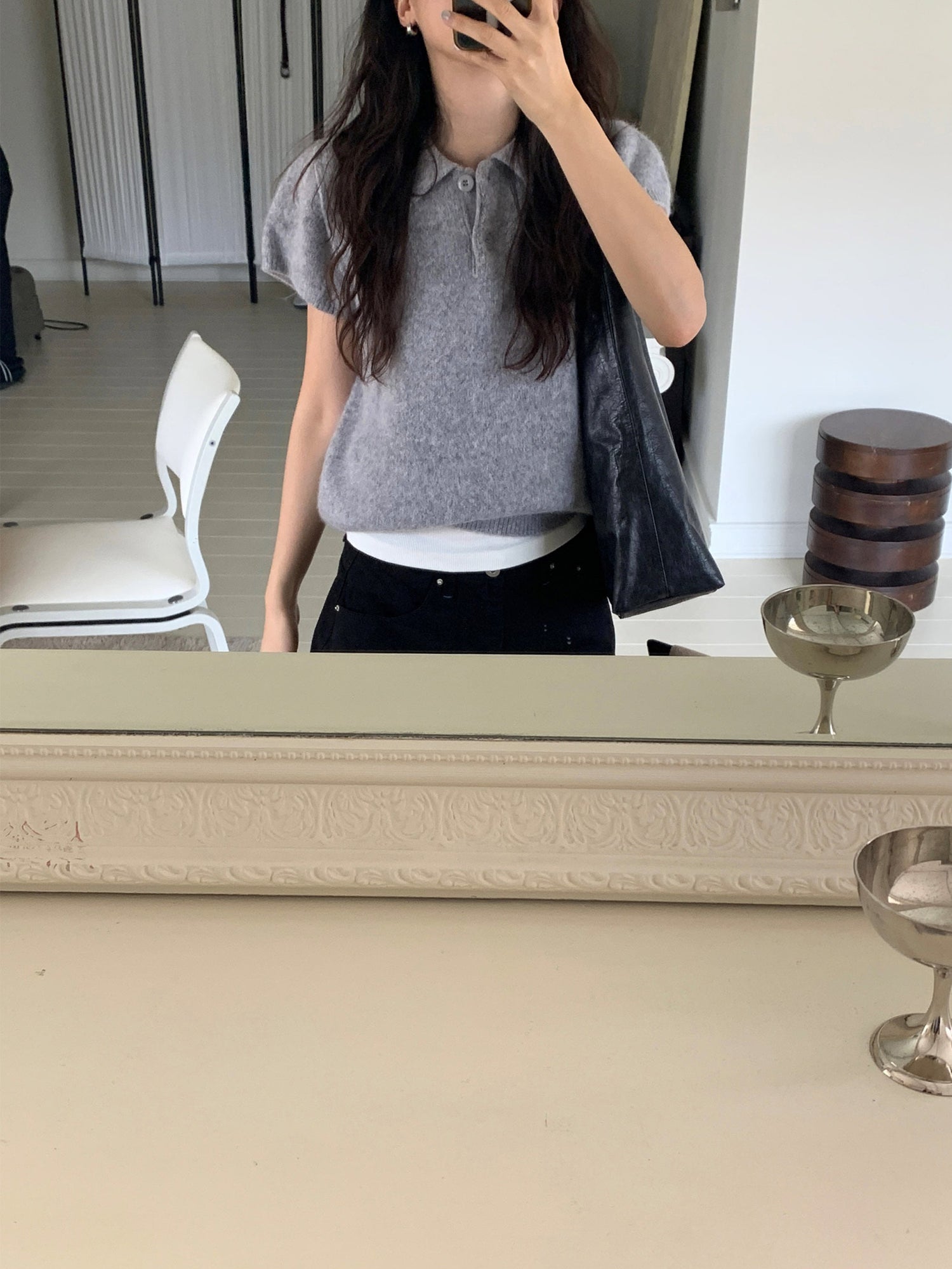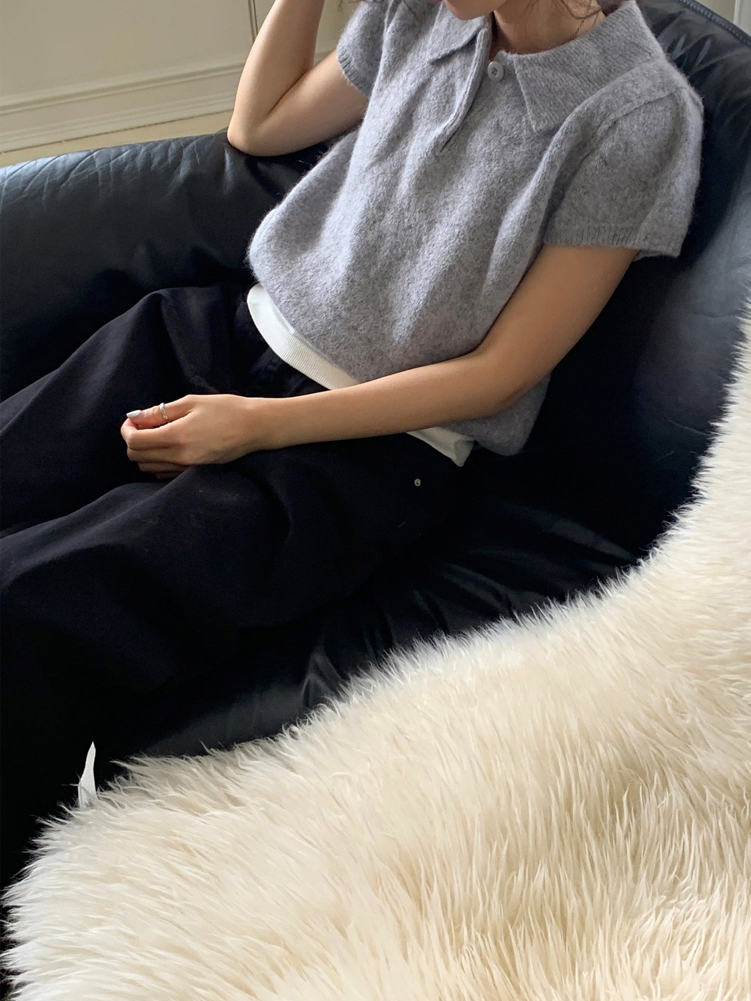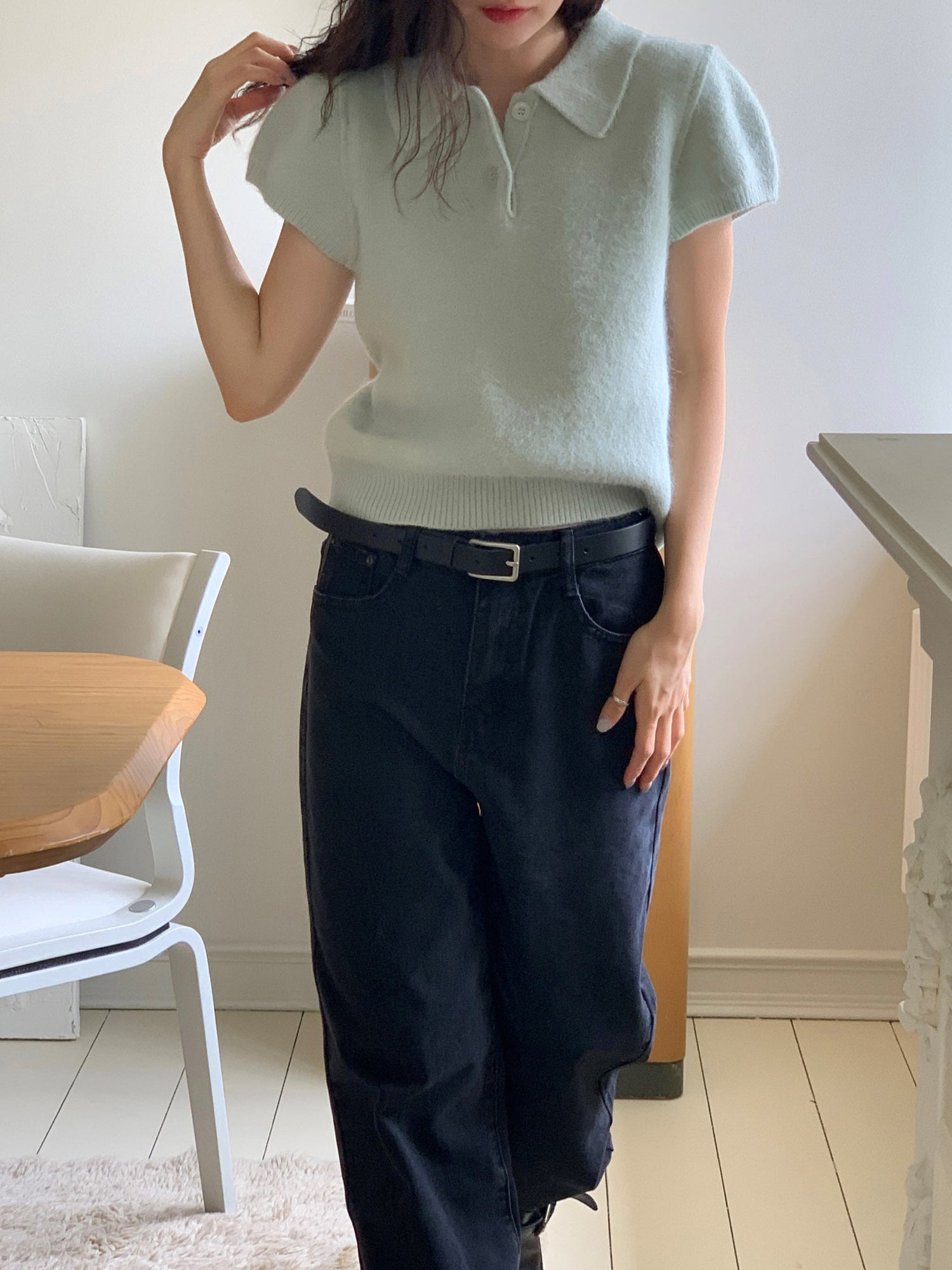 翻領扣鈕泡泡袖細節針織上衣