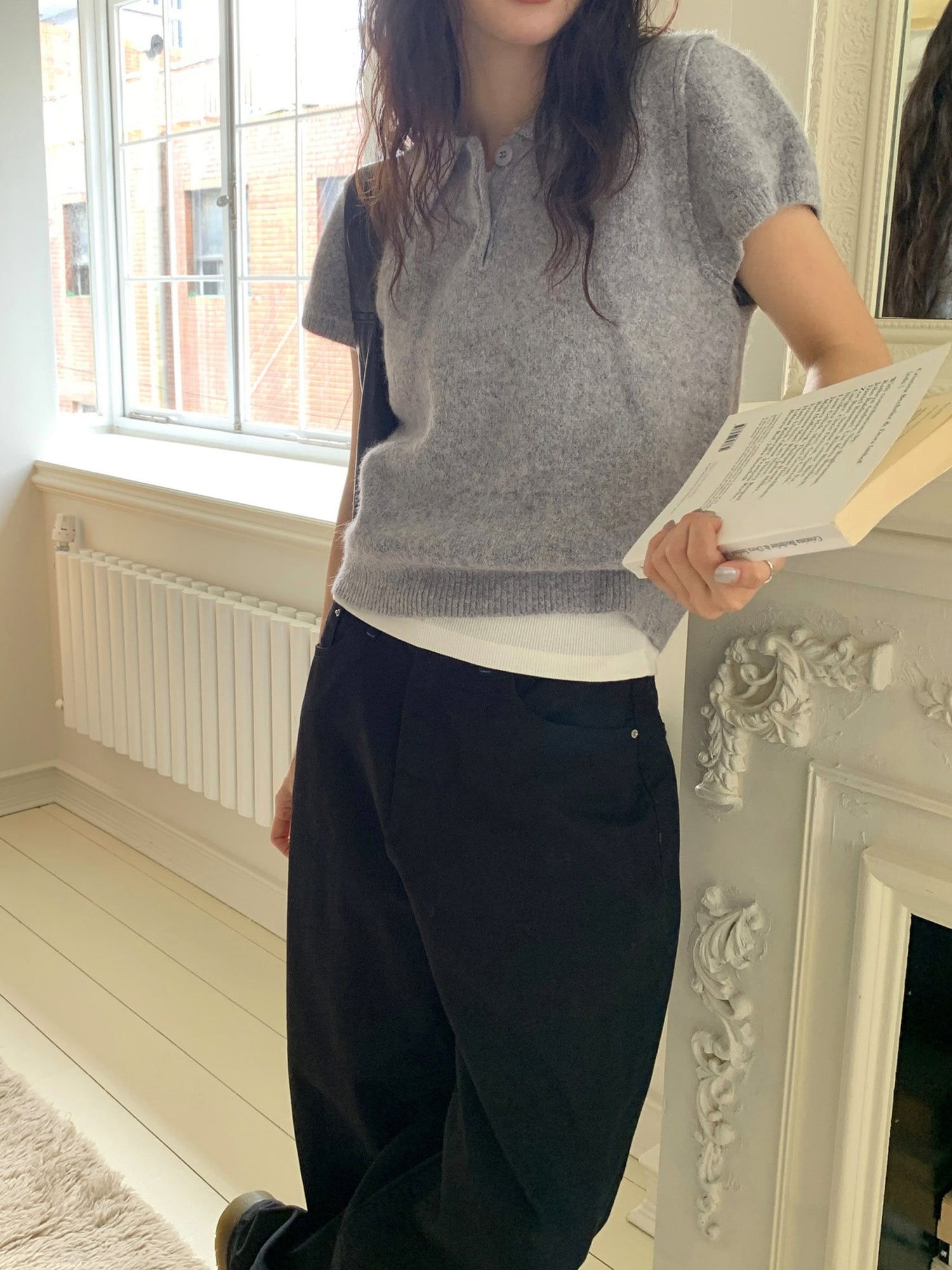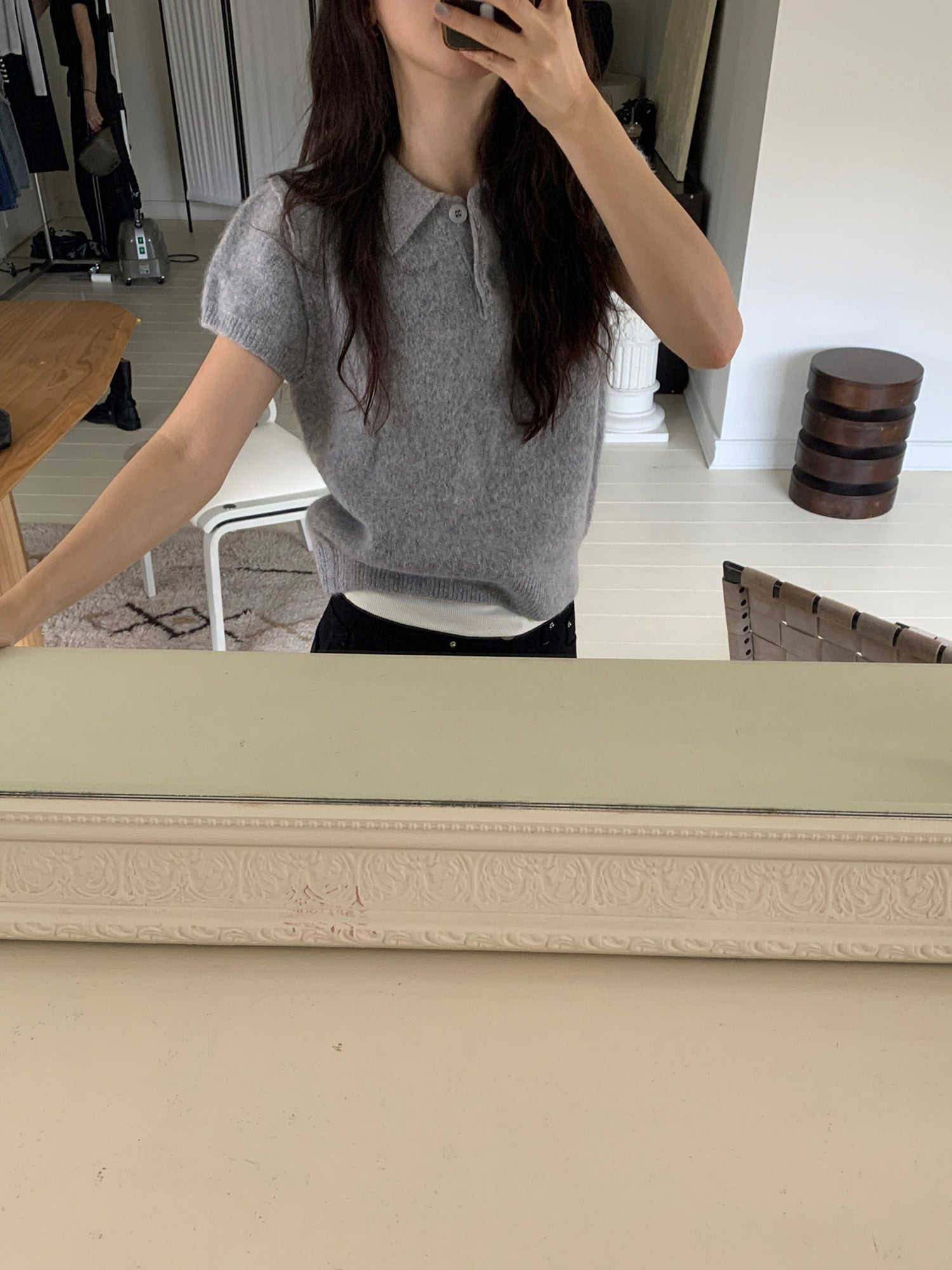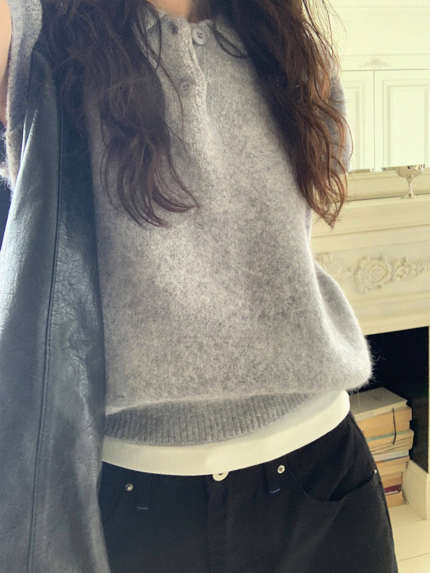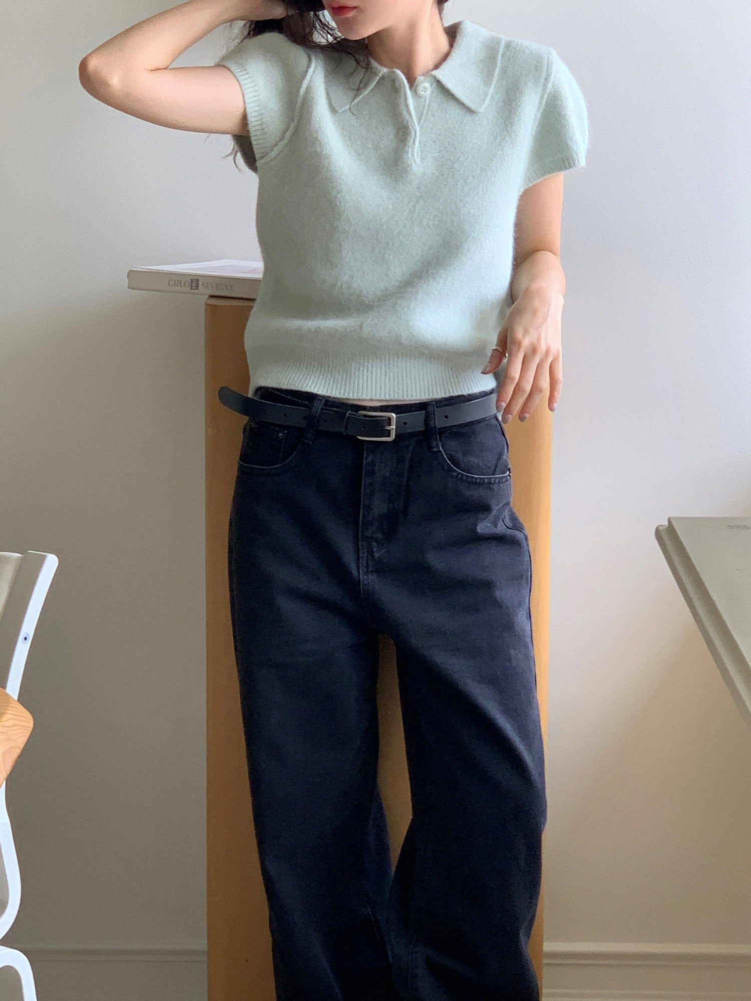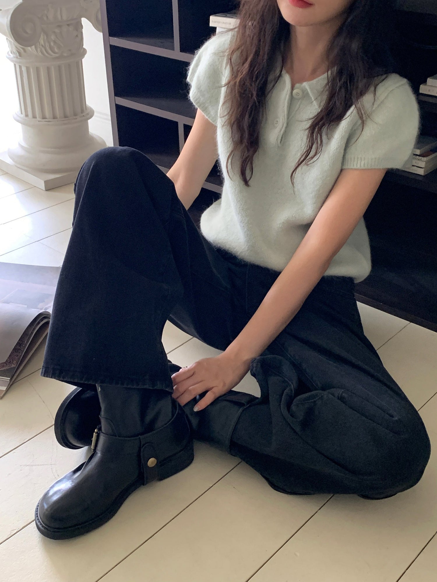 翻領扣鈕泡泡袖細節針織上衣