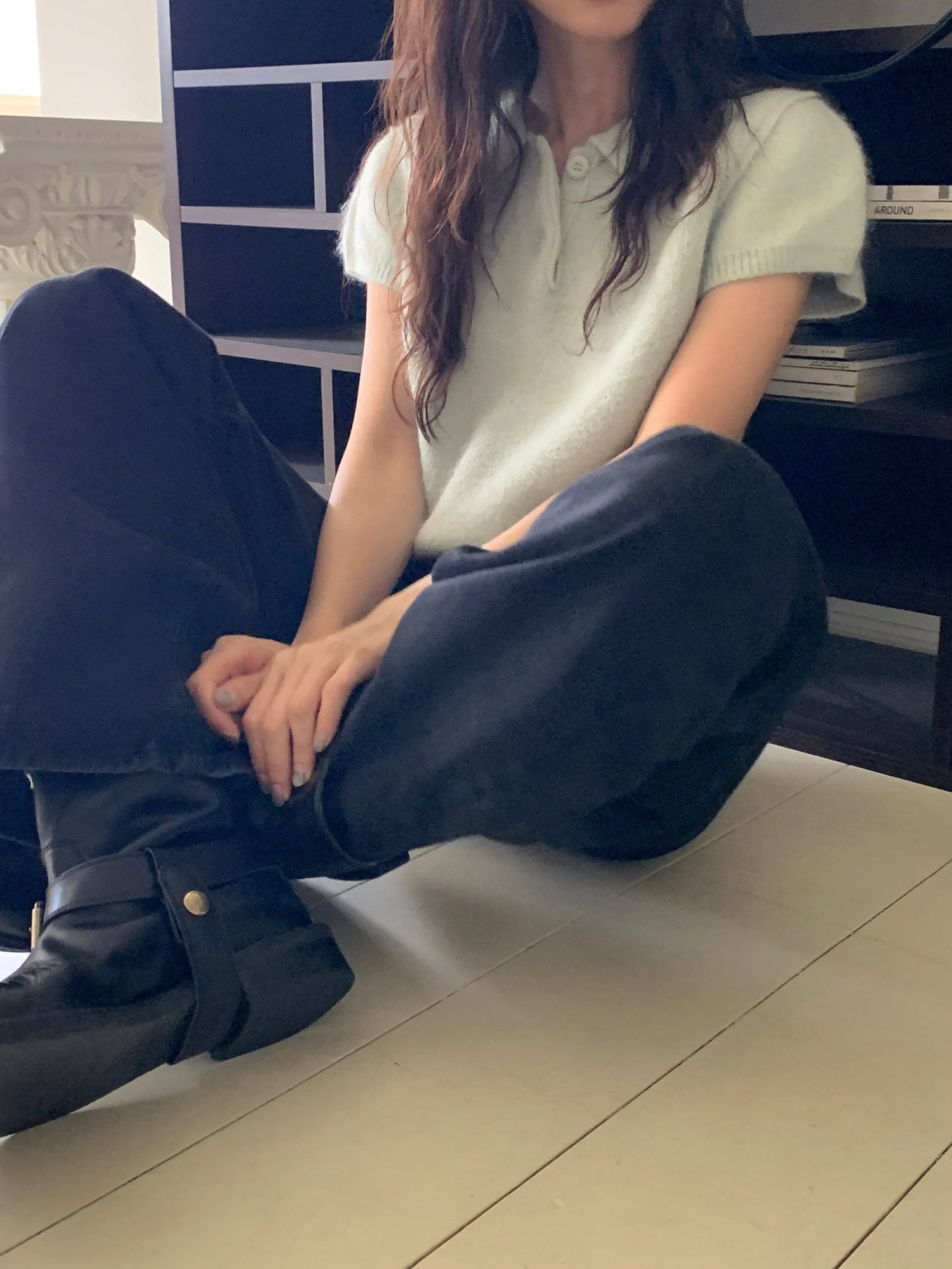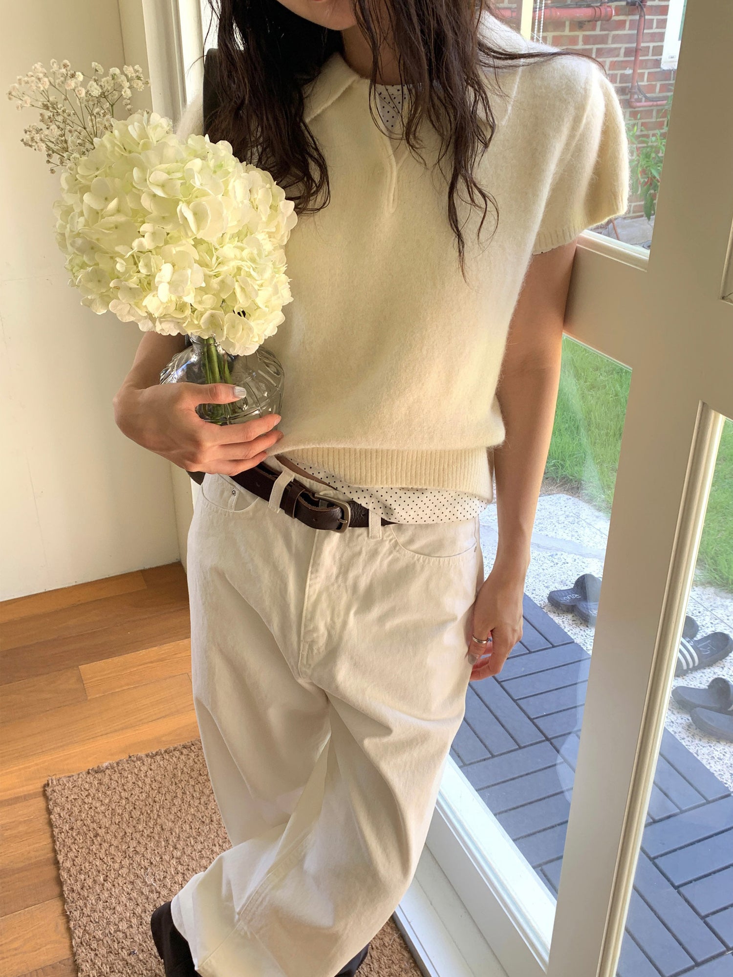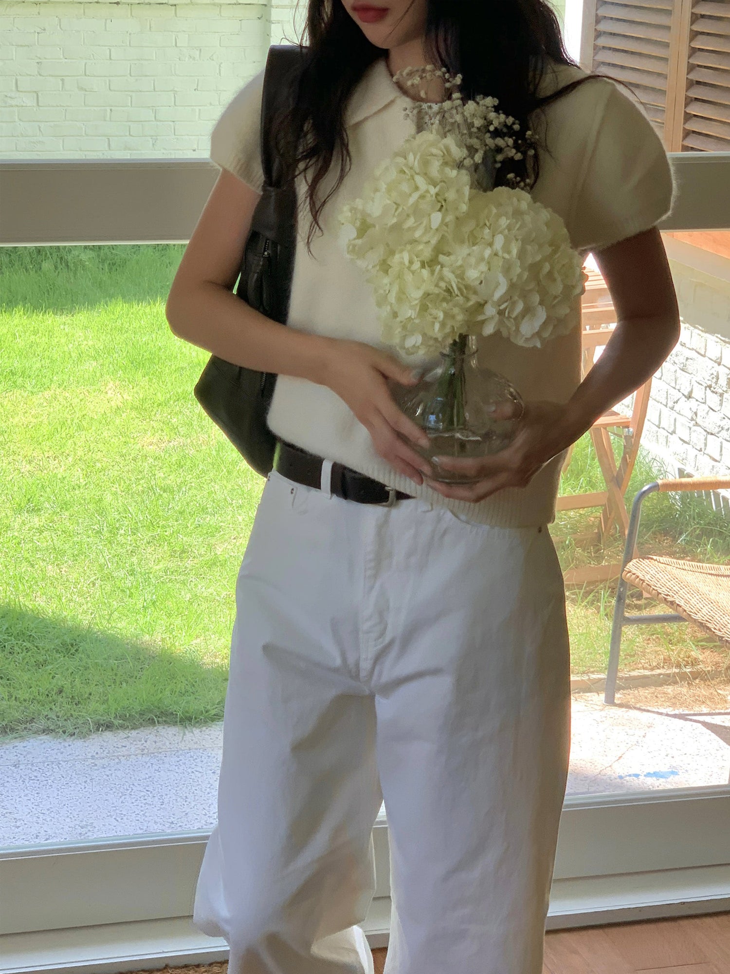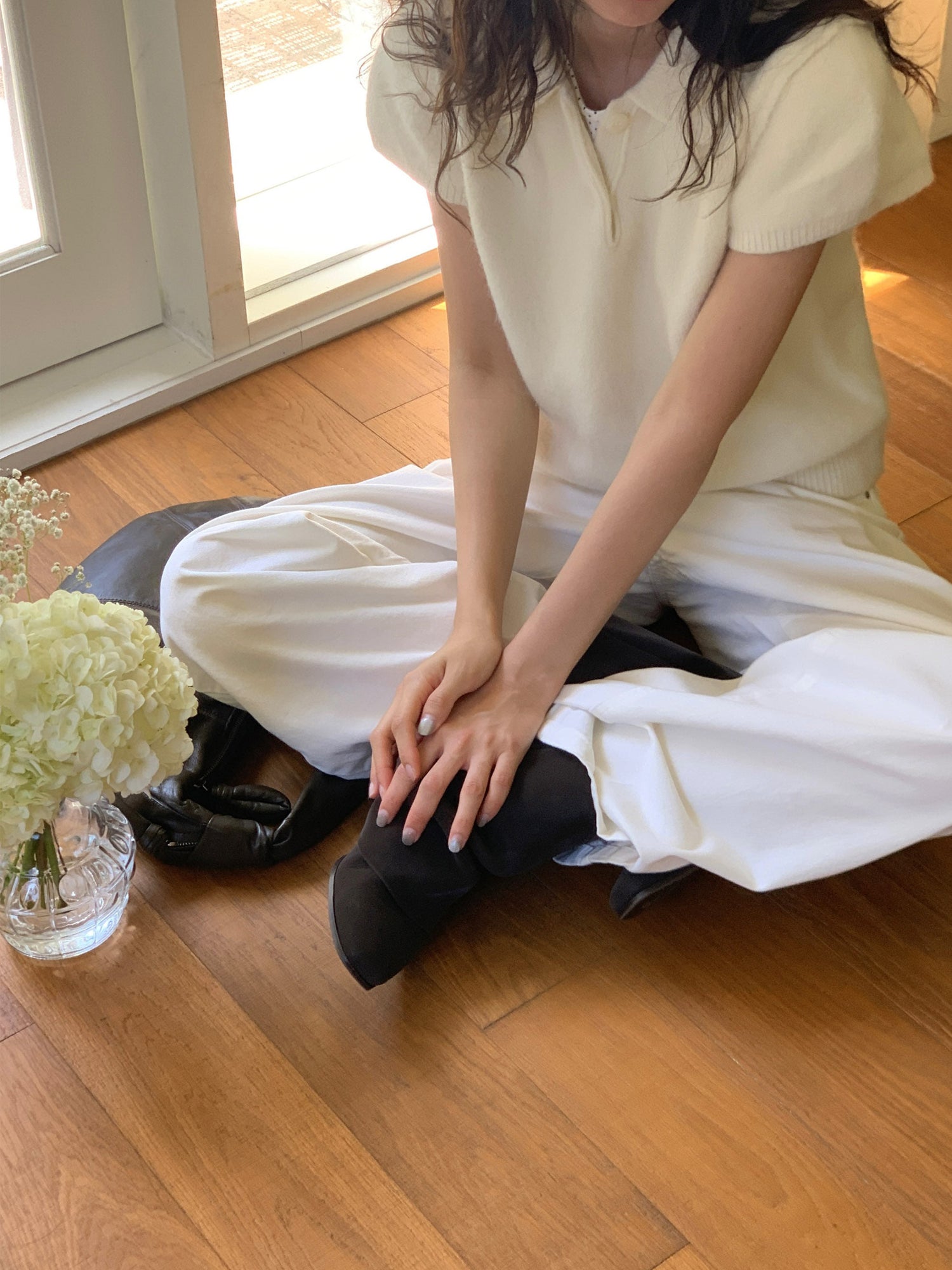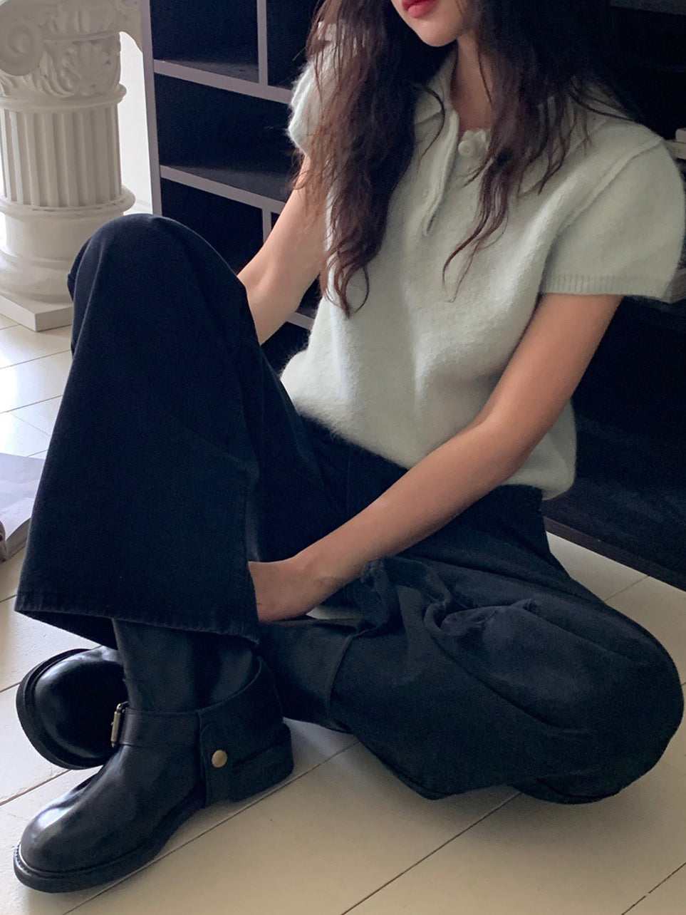 翻領扣鈕泡泡袖細節針織上衣