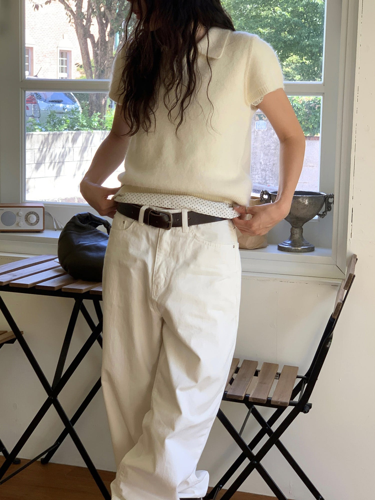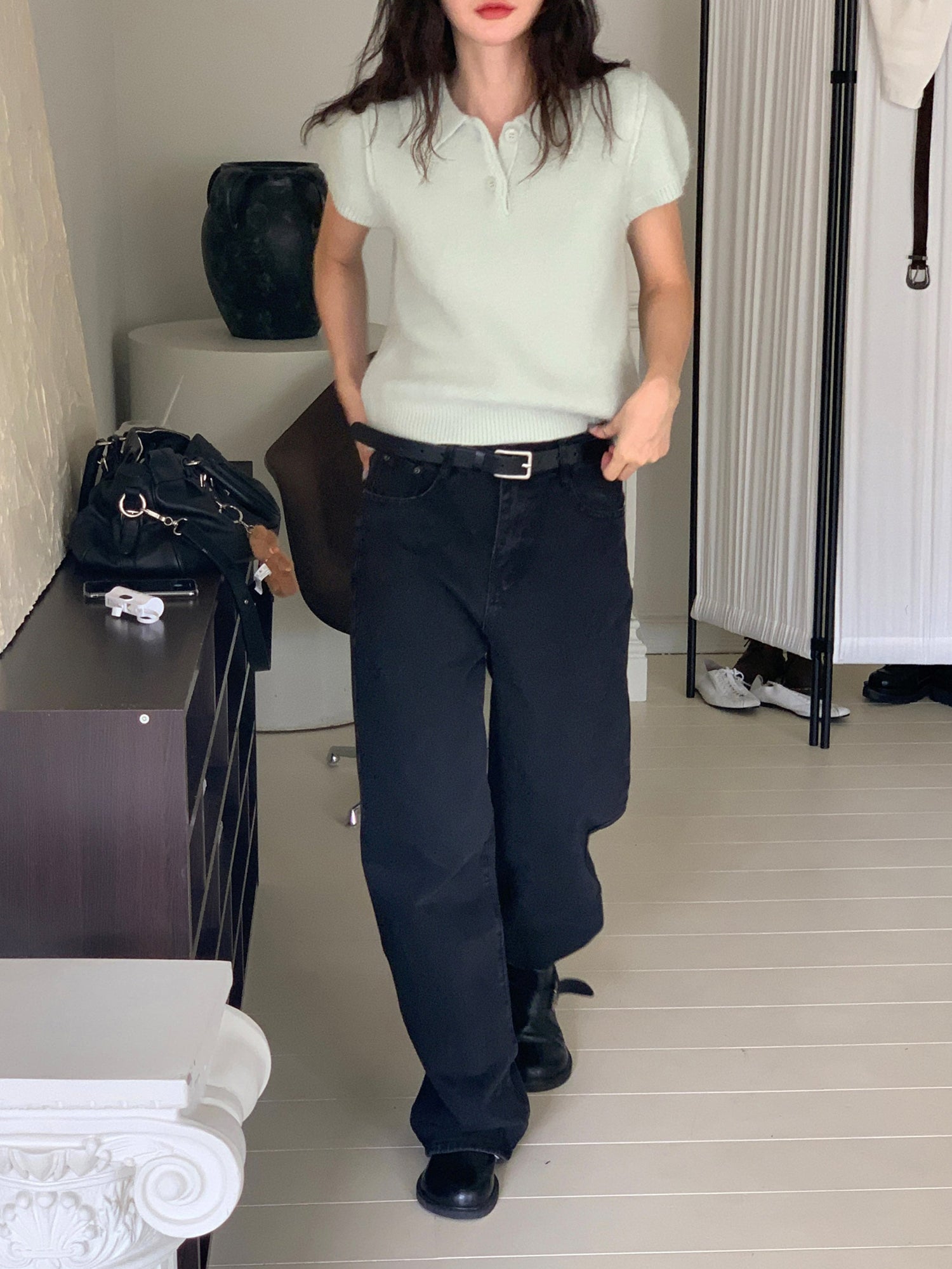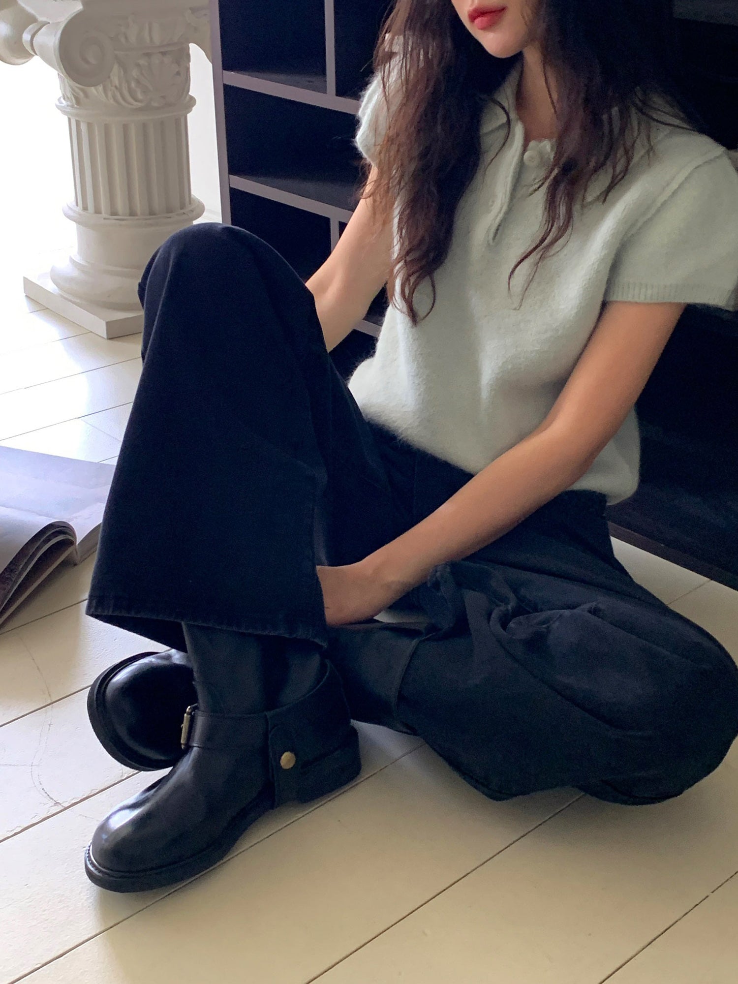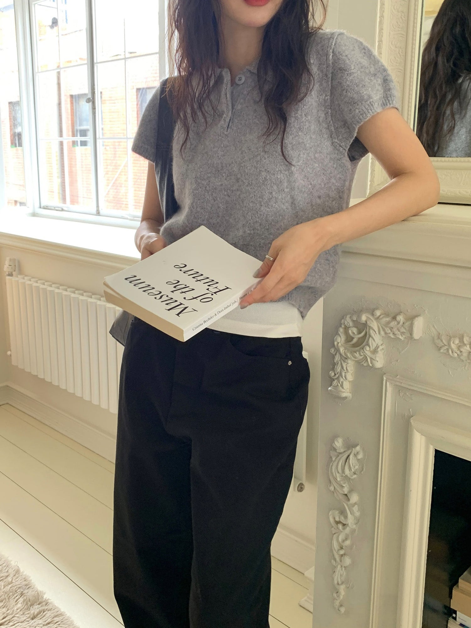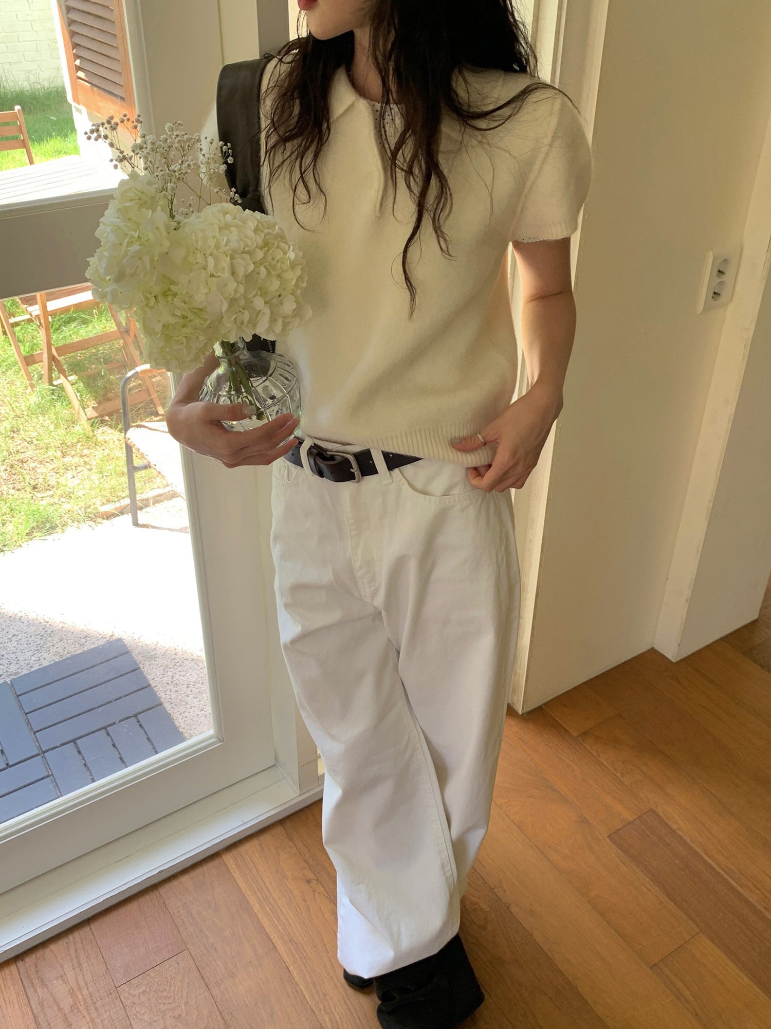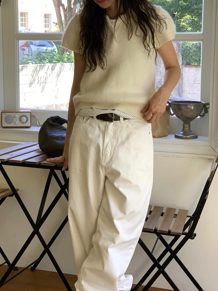 翻領扣鈕泡泡袖細節針織上衣