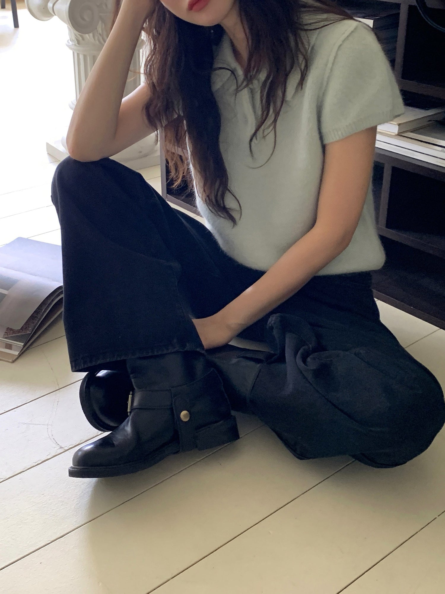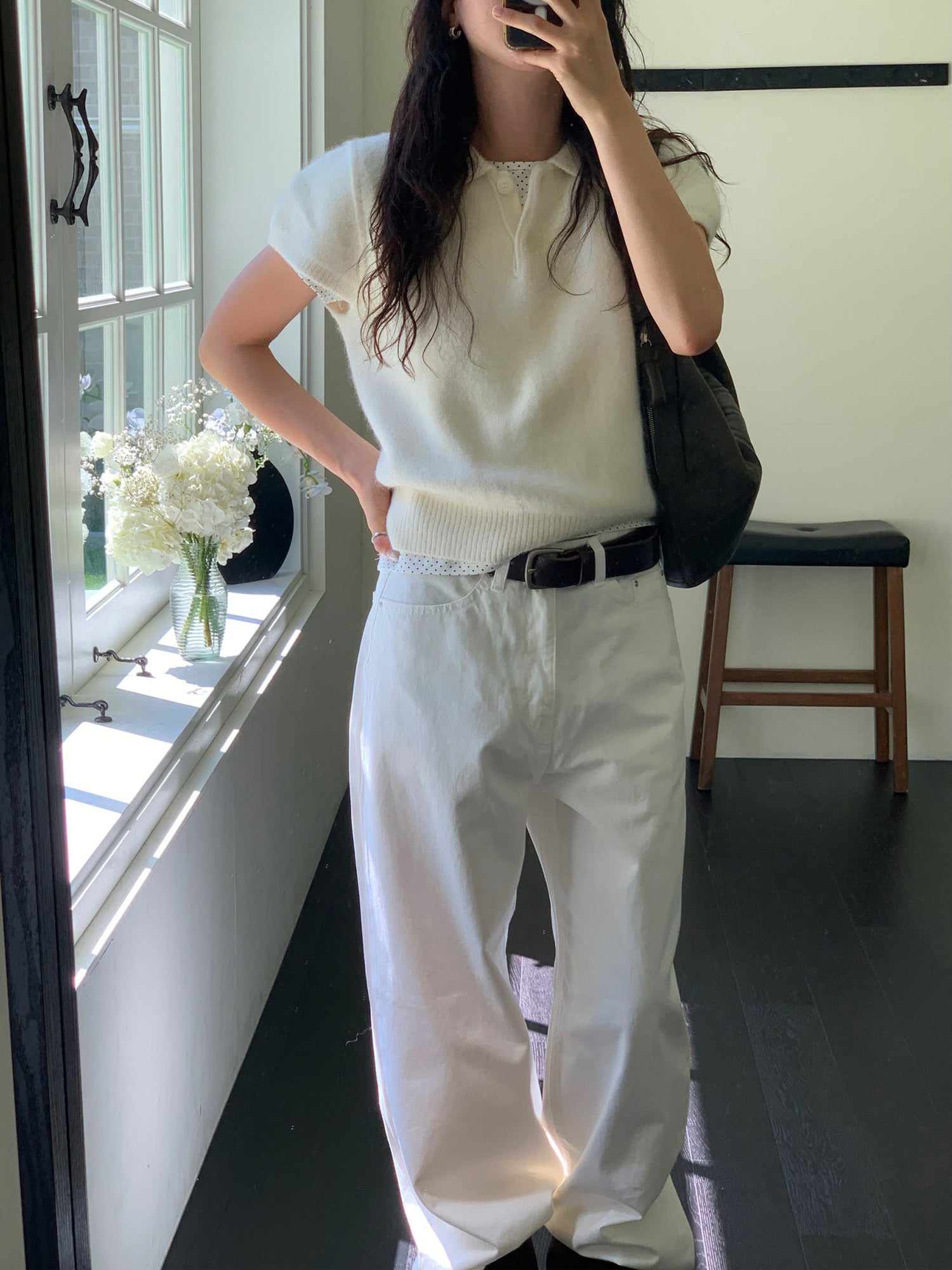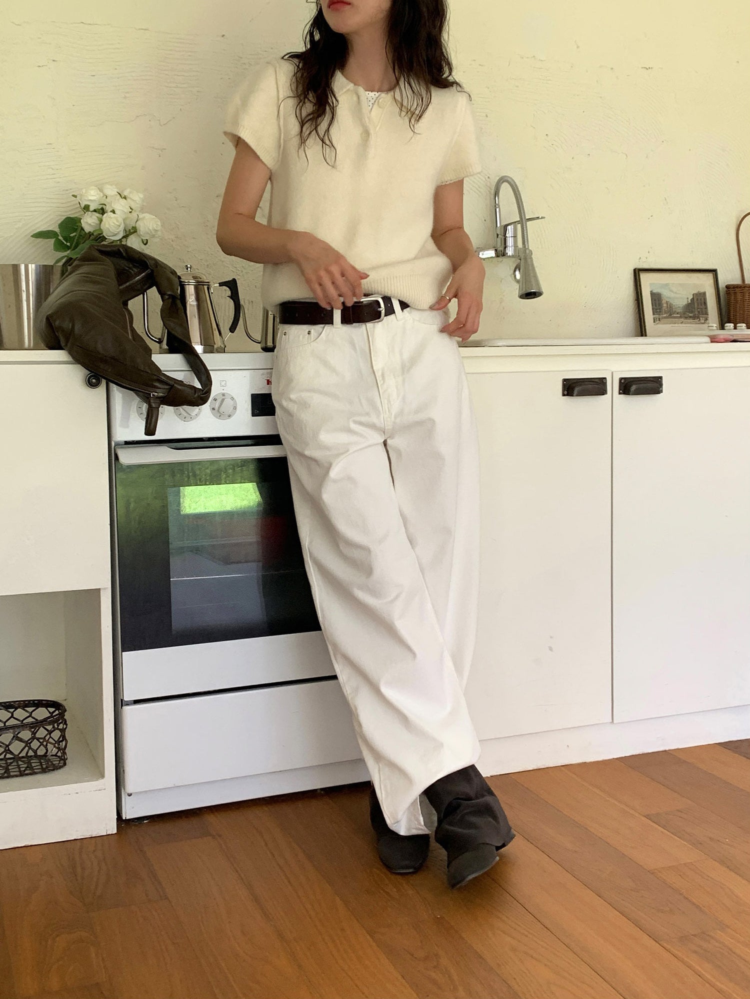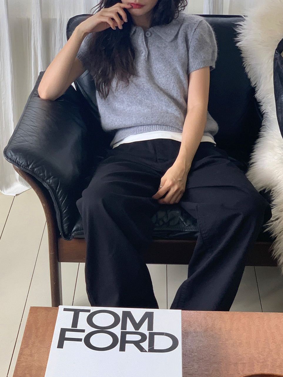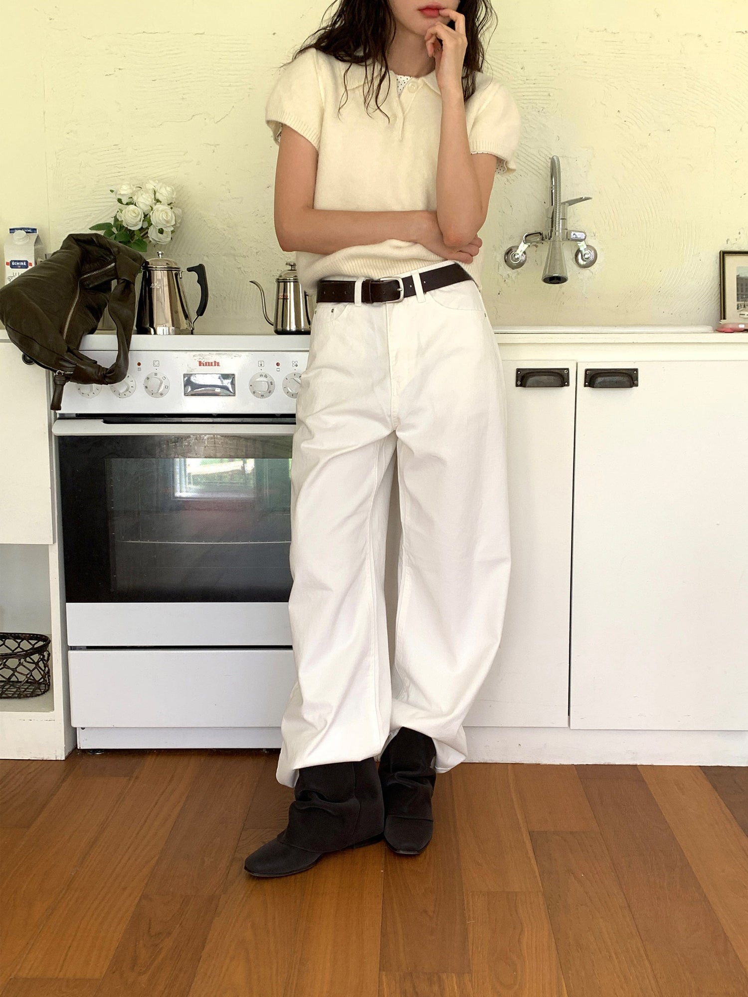 翻領扣鈕泡泡袖細節針織上衣