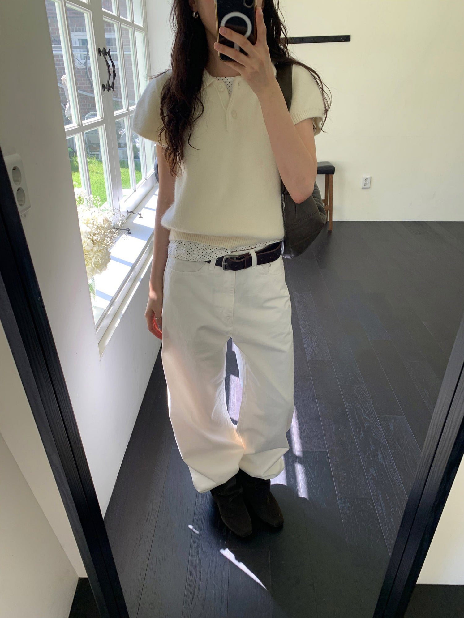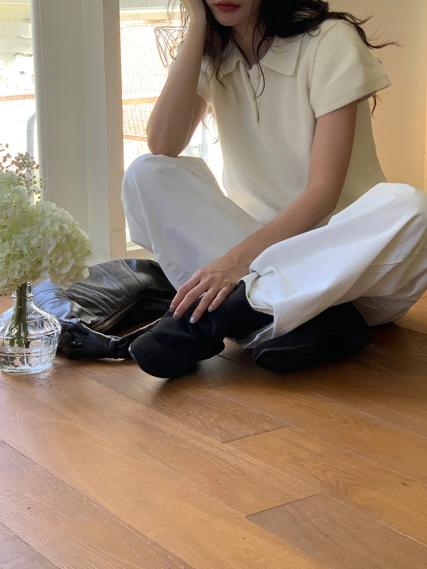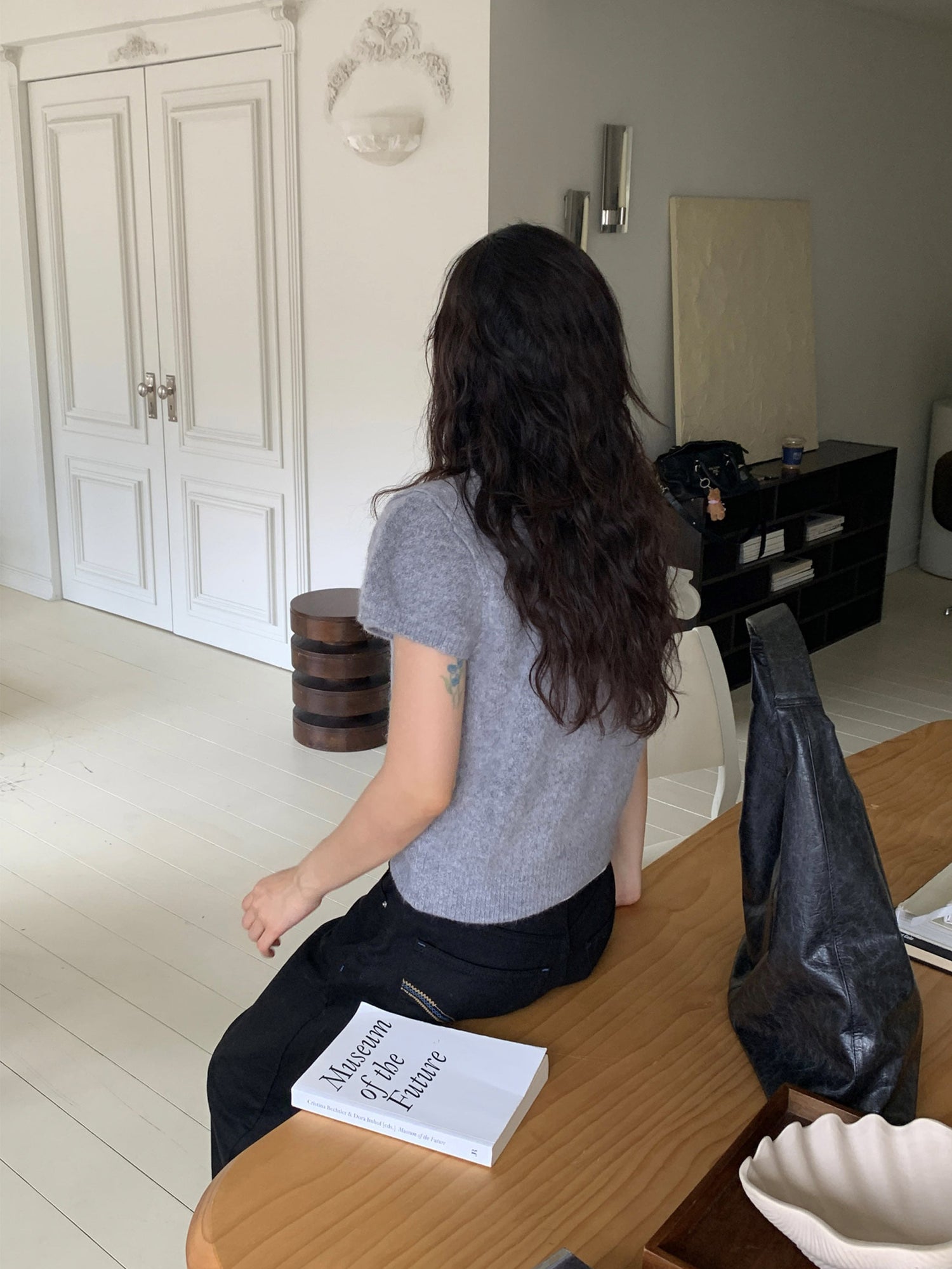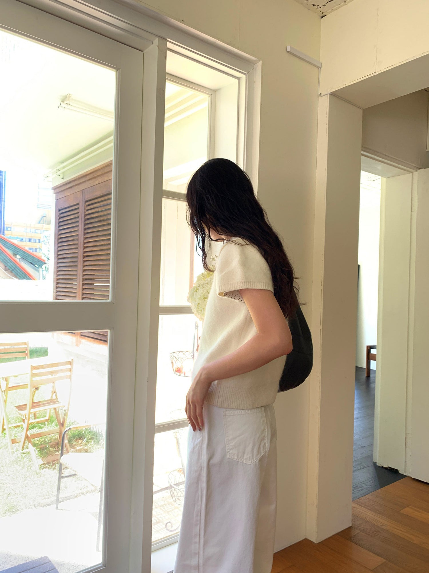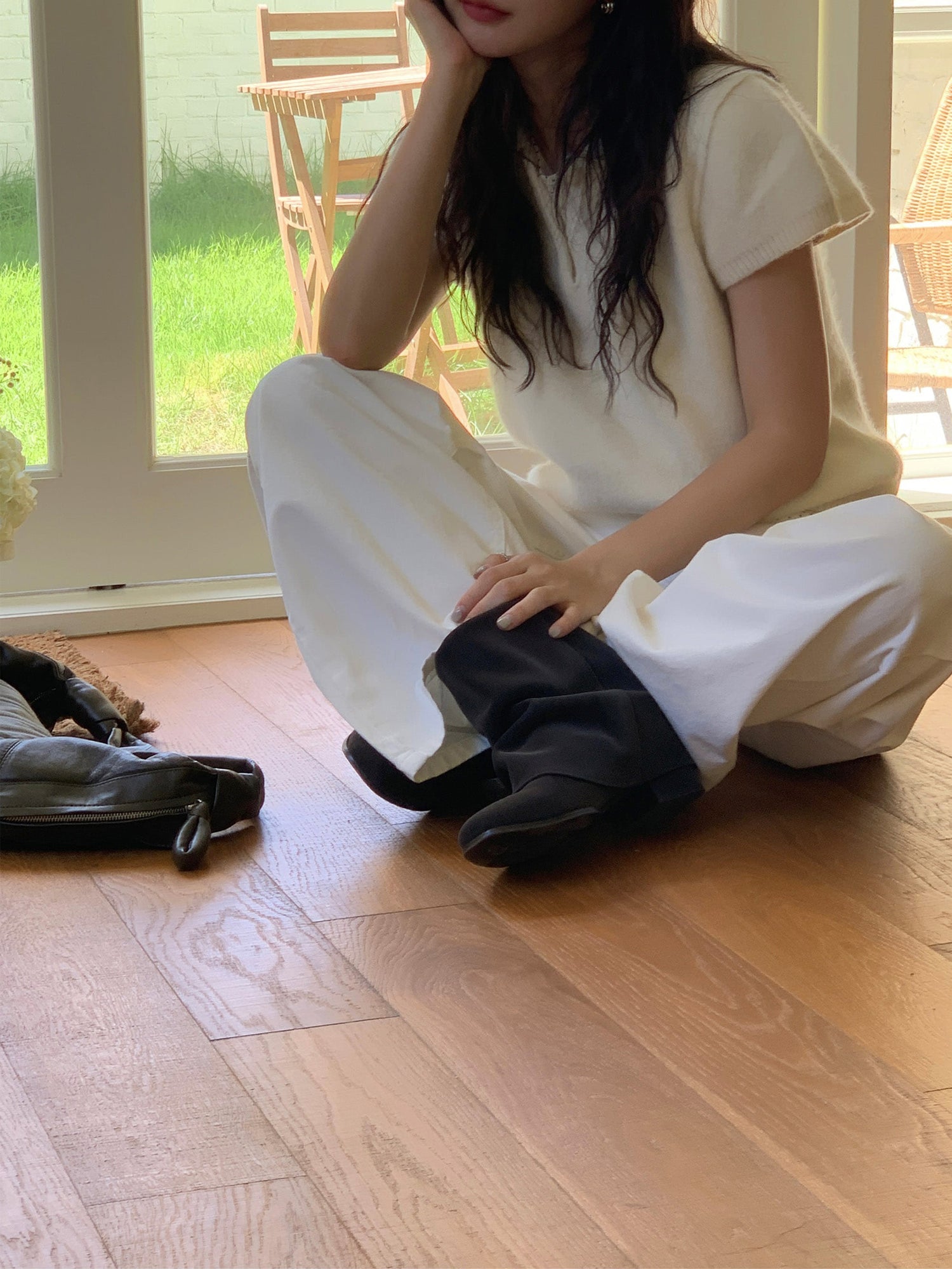 翻領扣鈕泡泡袖細節針織上衣