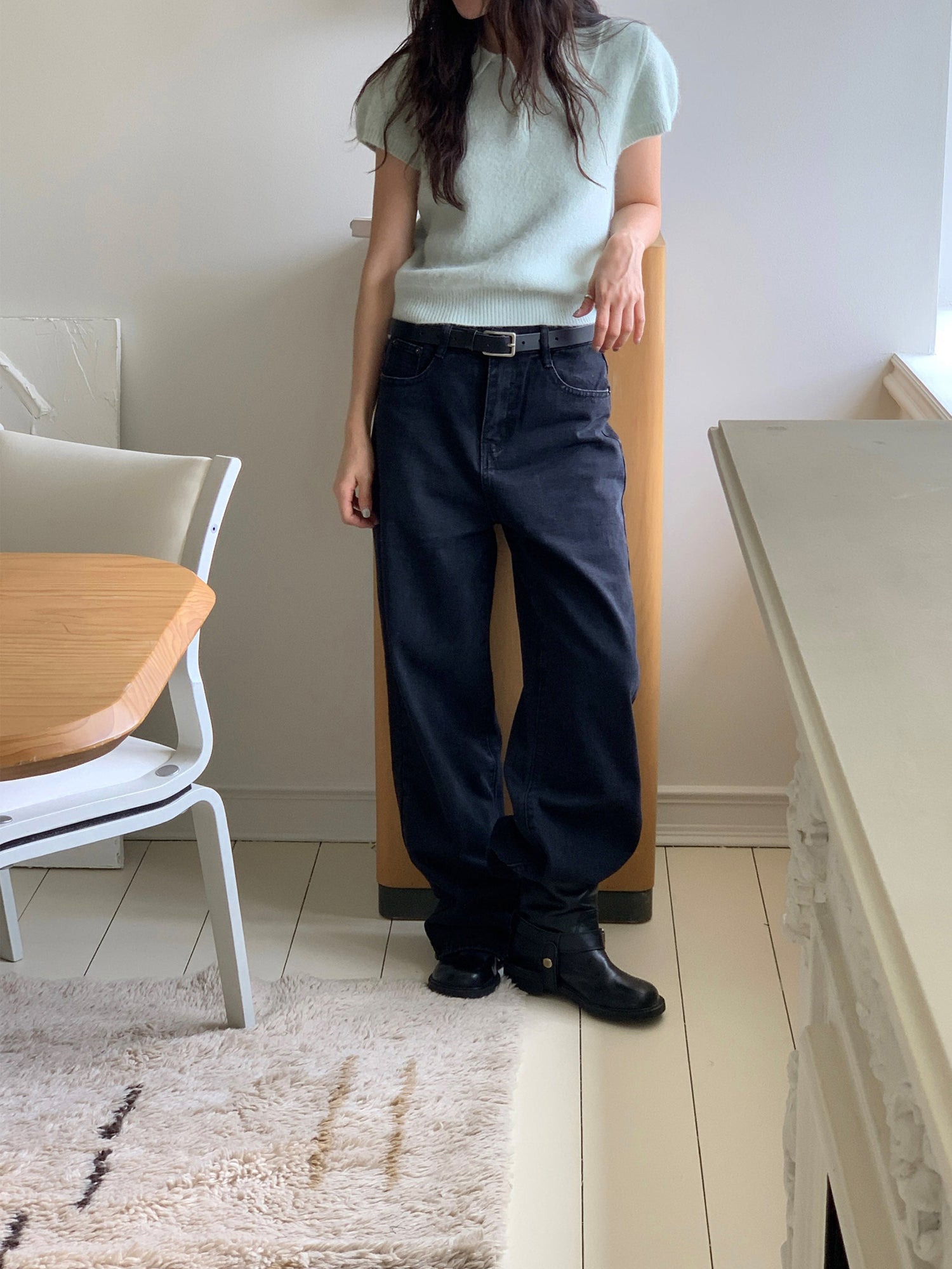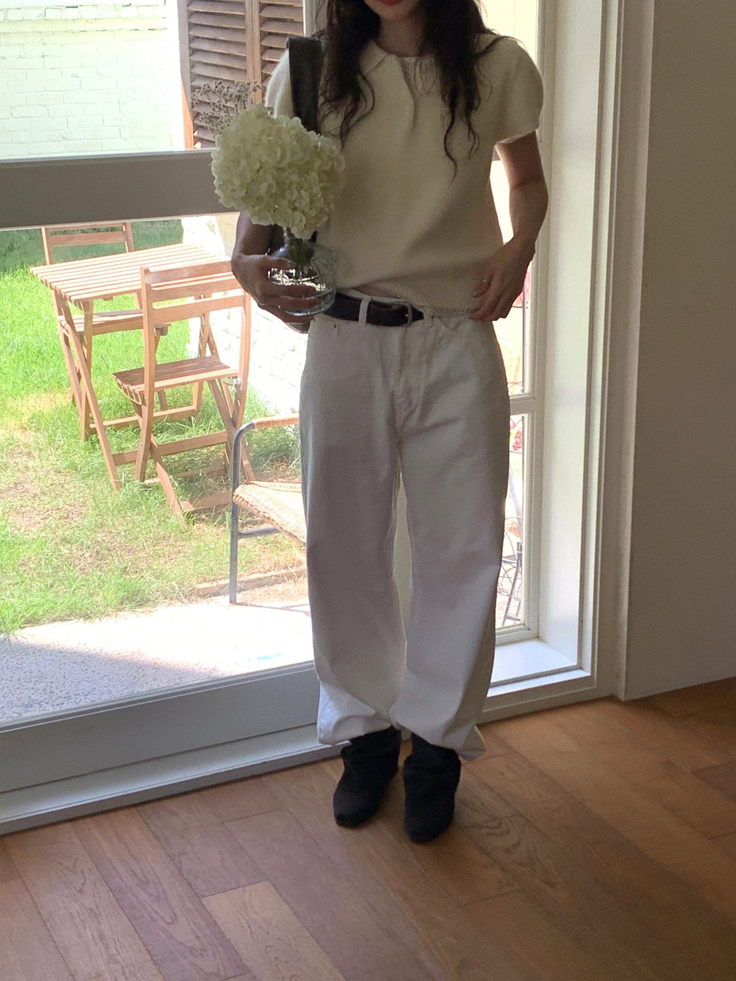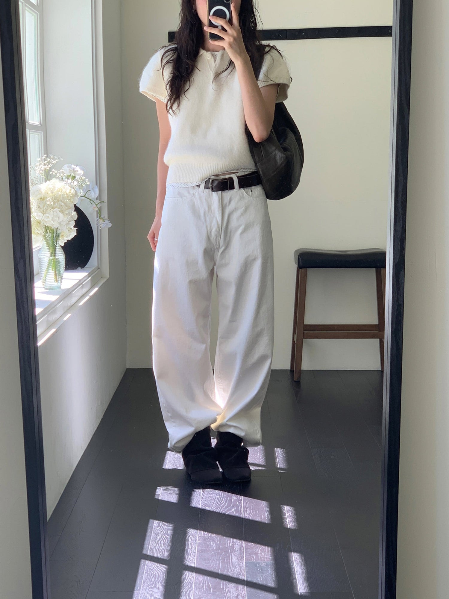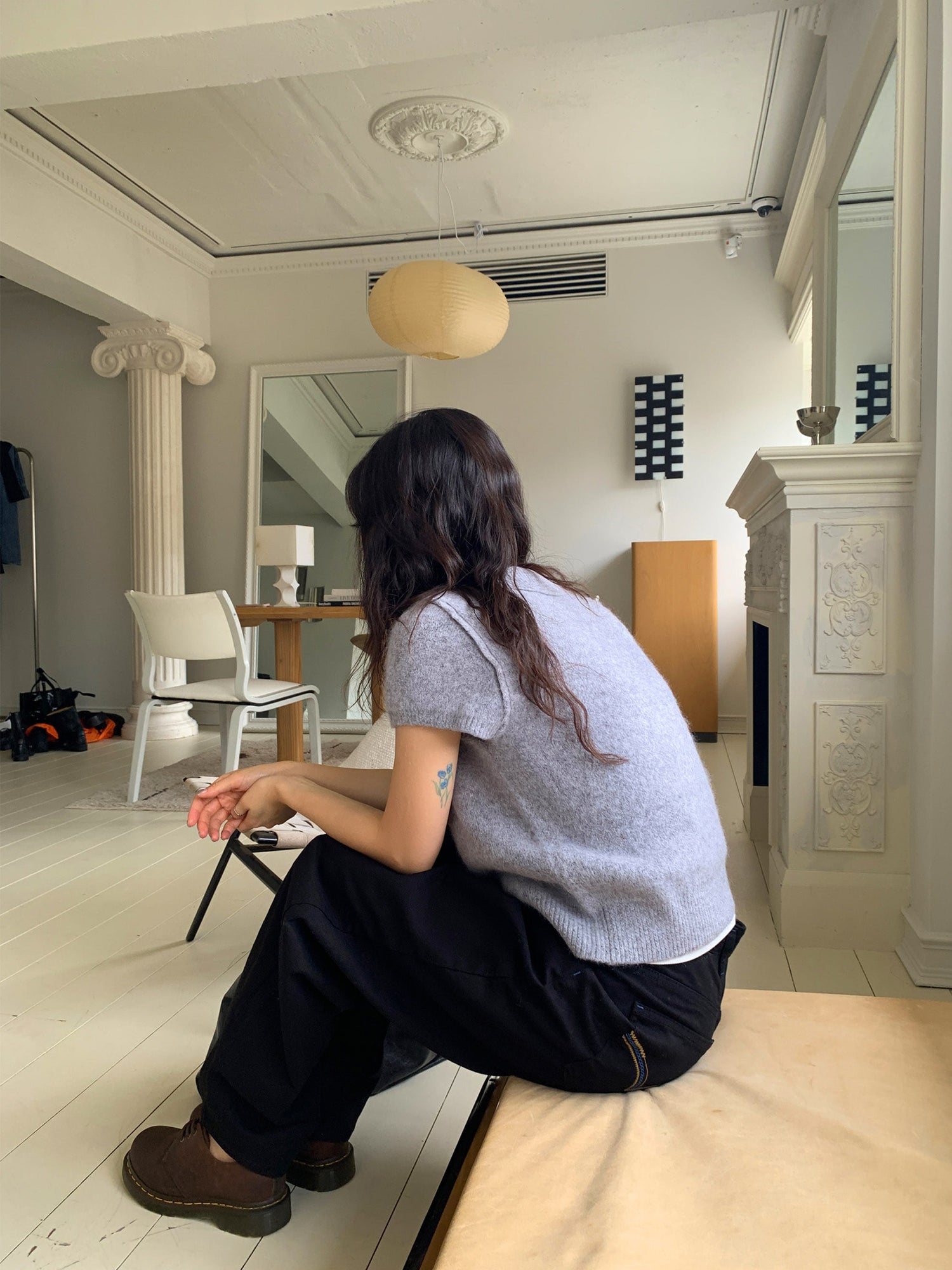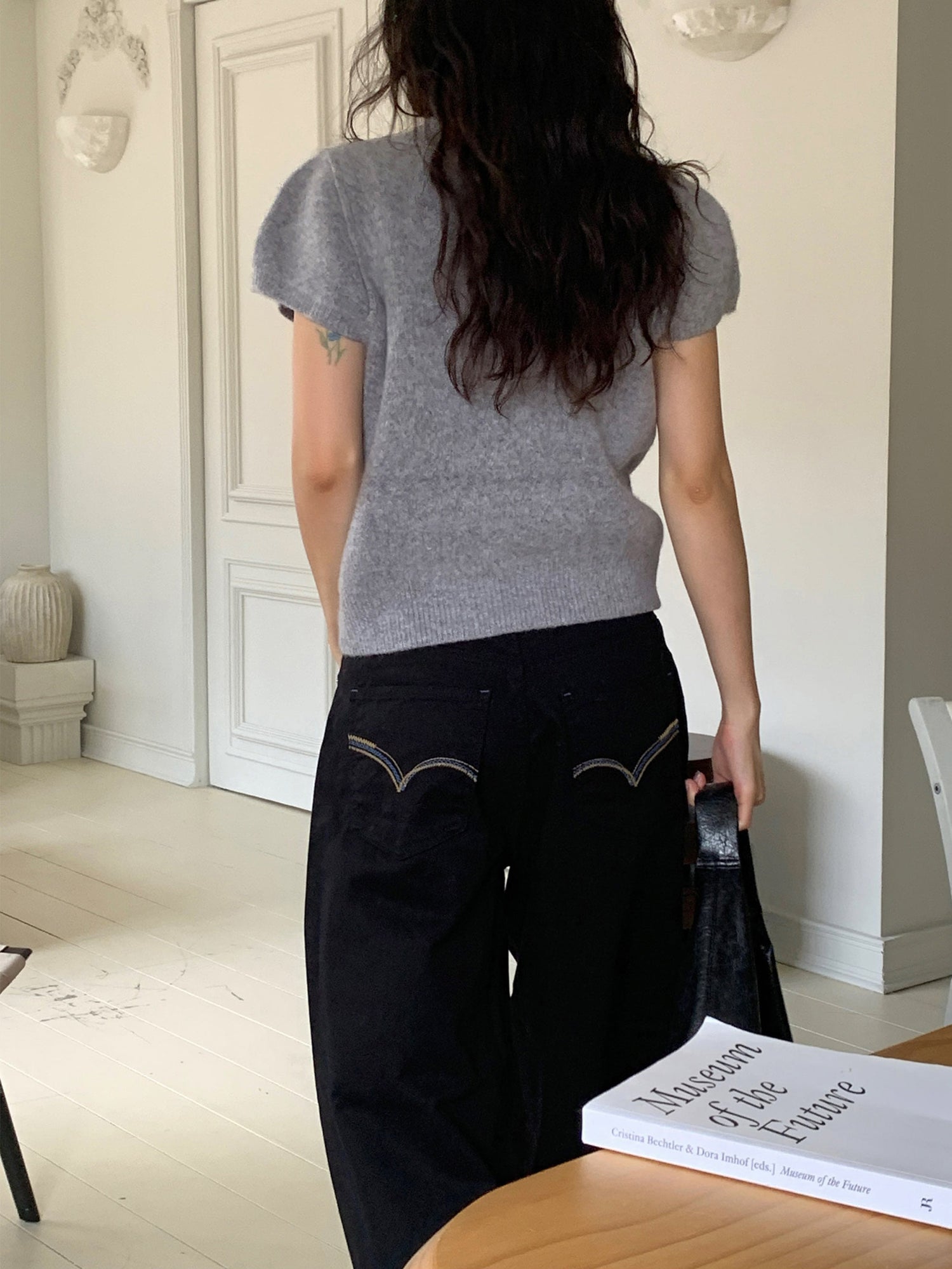 翻領扣鈕泡泡袖細節針織上衣