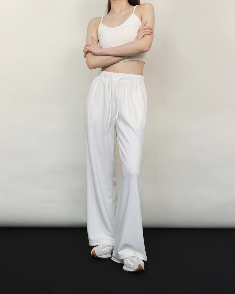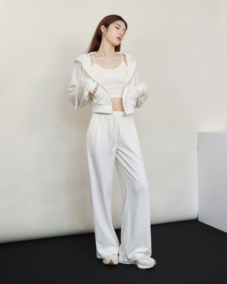 (Fitting)輕薄質感抽繩舒適褲-白色