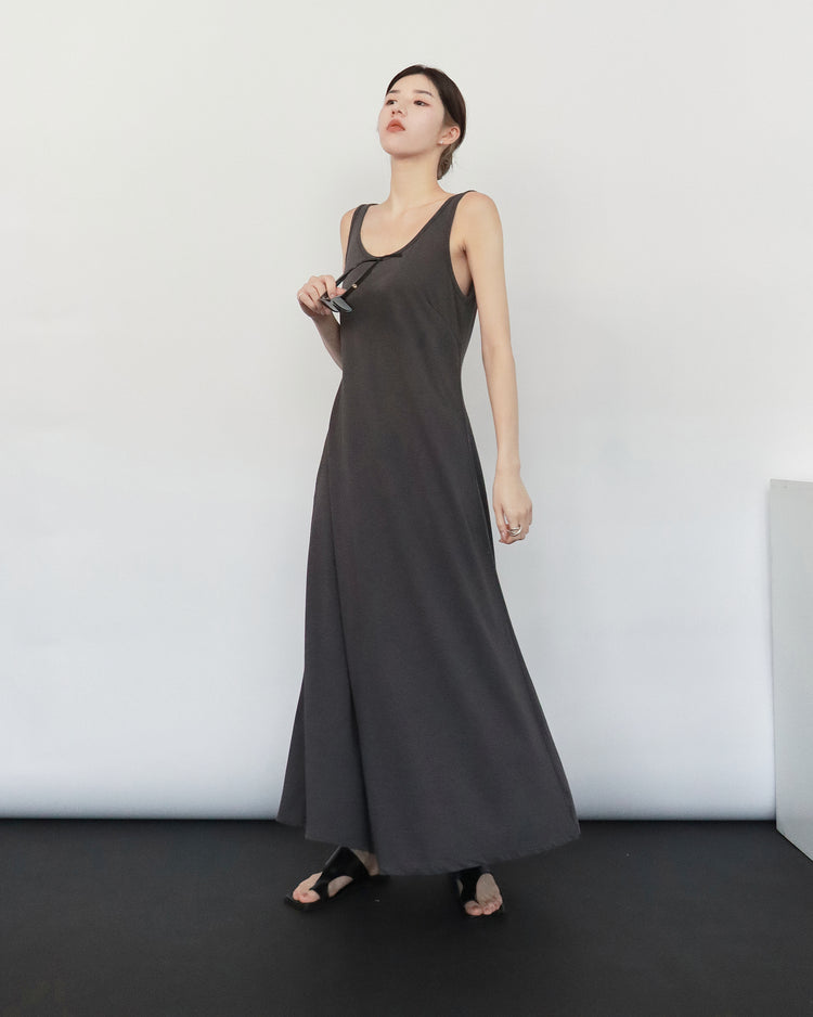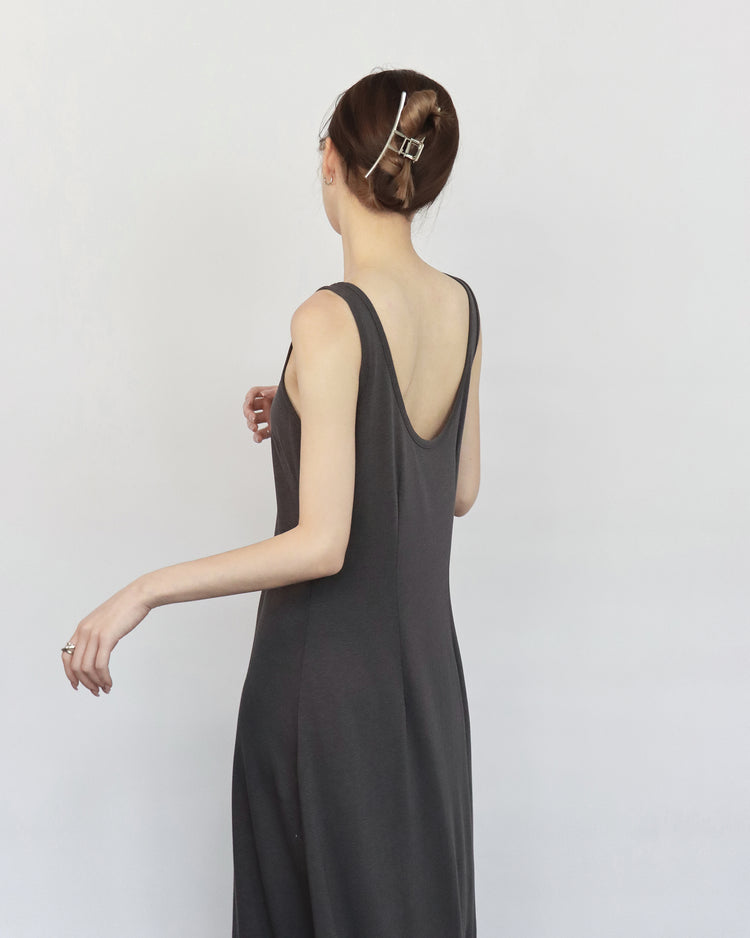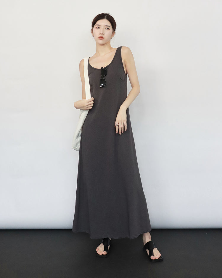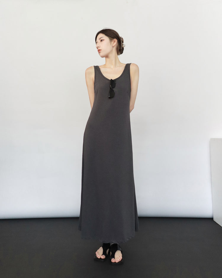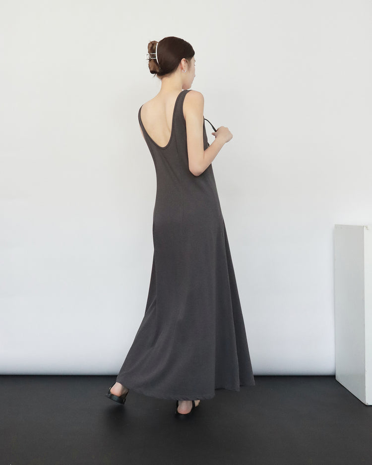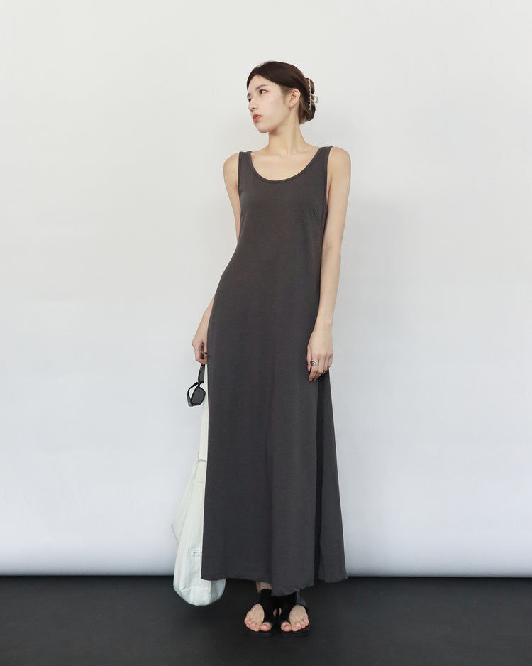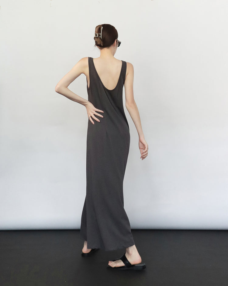 (現)輕薄露背垂感連身裙